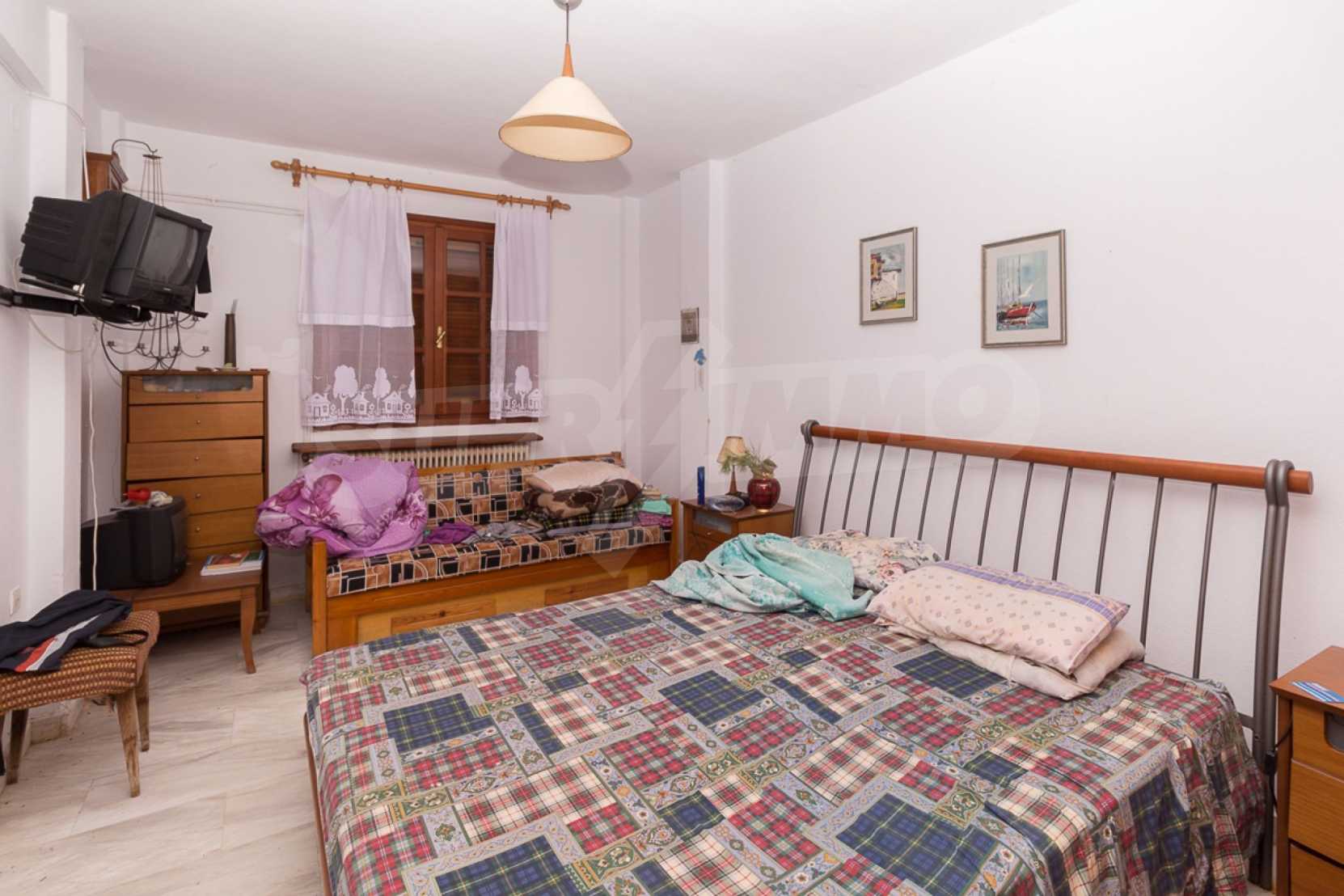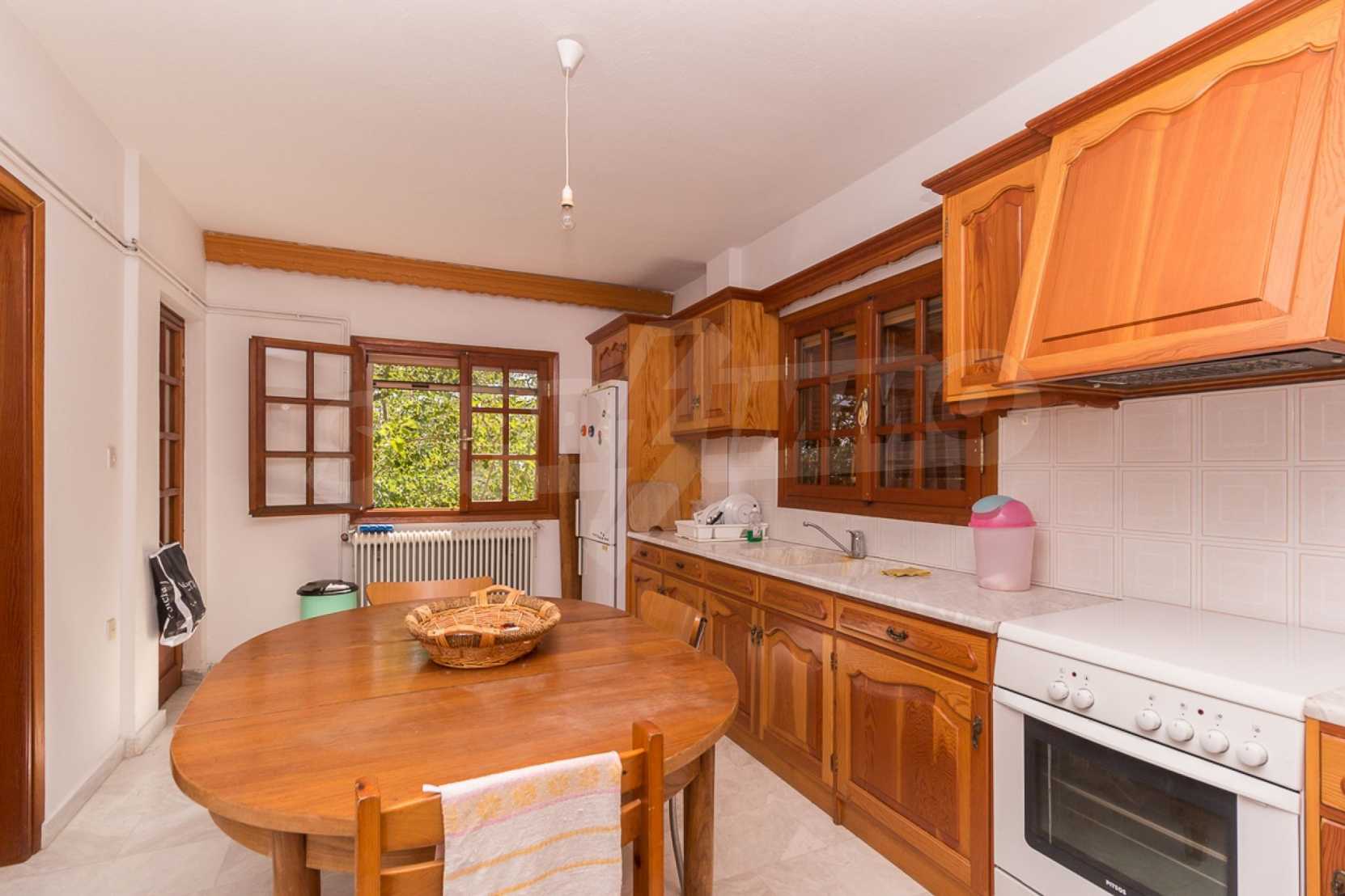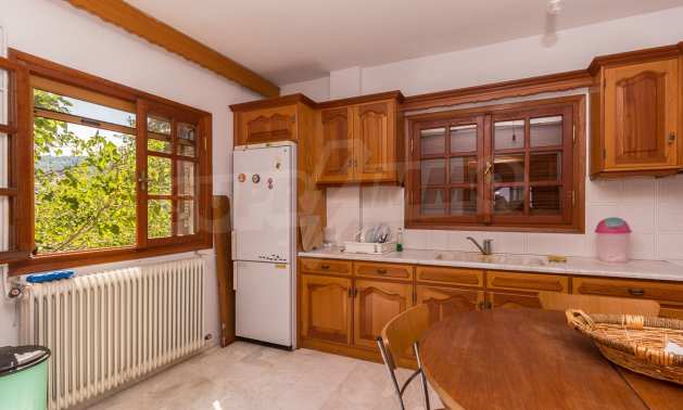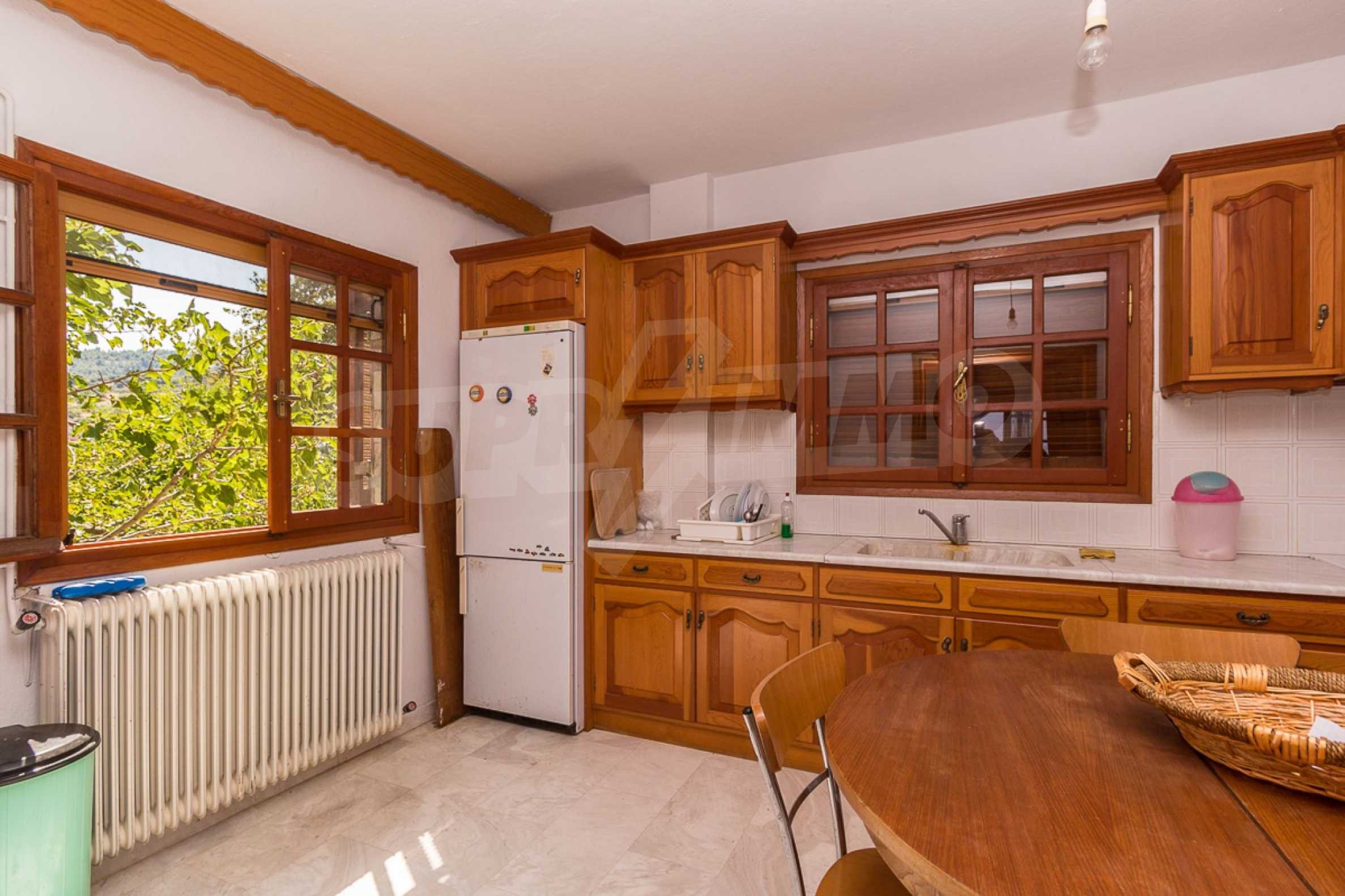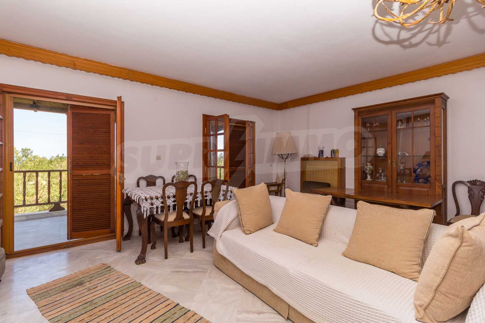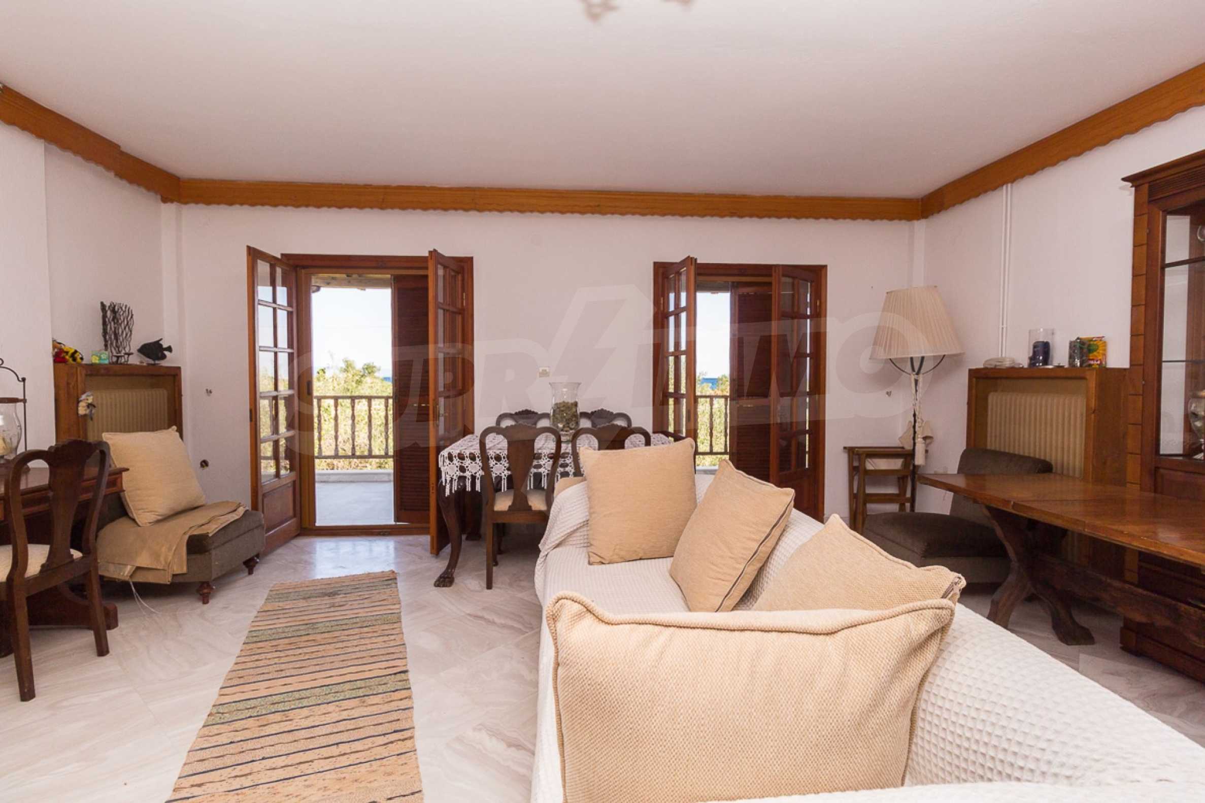 Предлагаме на вашето внимание къща с площ 300 кв.м. Година на строителство: 1985. Отоплението се осъществява посредством камина и локално парно. Имотът се предлага със следната степен на завършеност: дървена дограма. Имотът е снабден с септична яма. Важно е да се отбележи, че имотът разполага с: баня с тоалетна, килер, мазе и паркинг. От имота се разкрива гледка към морето.