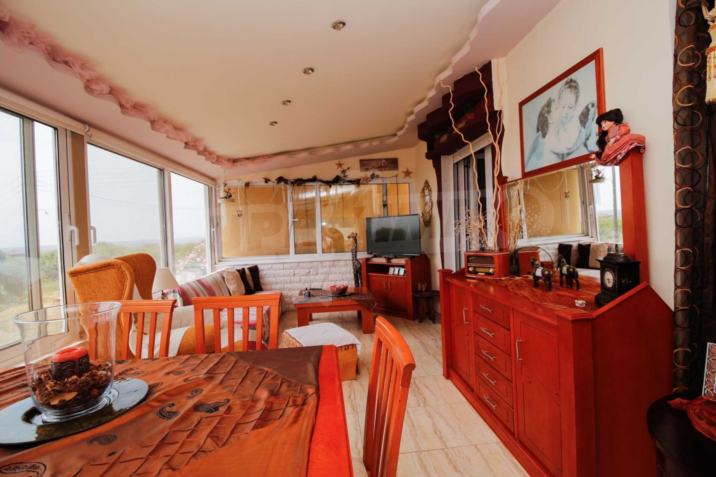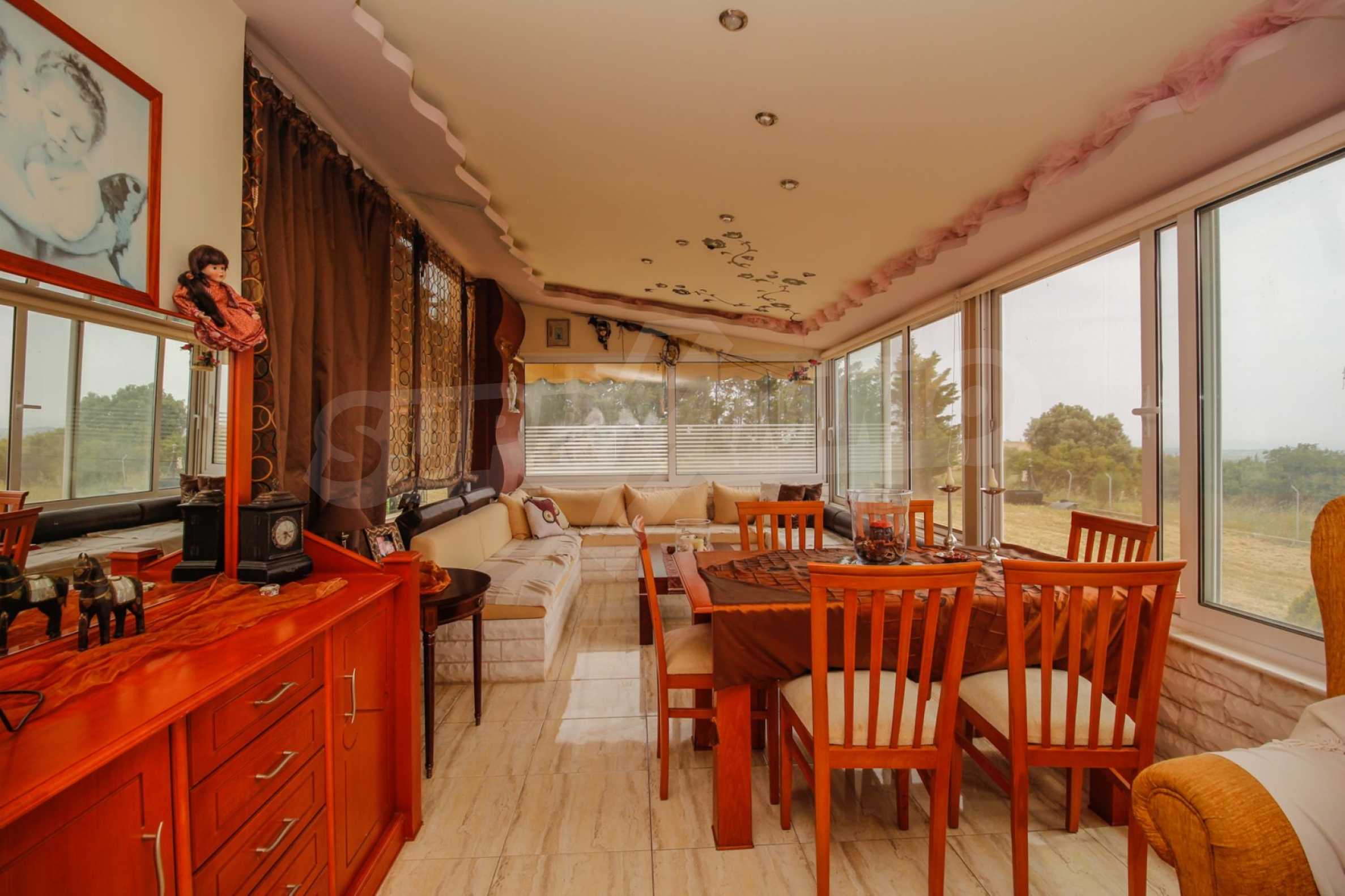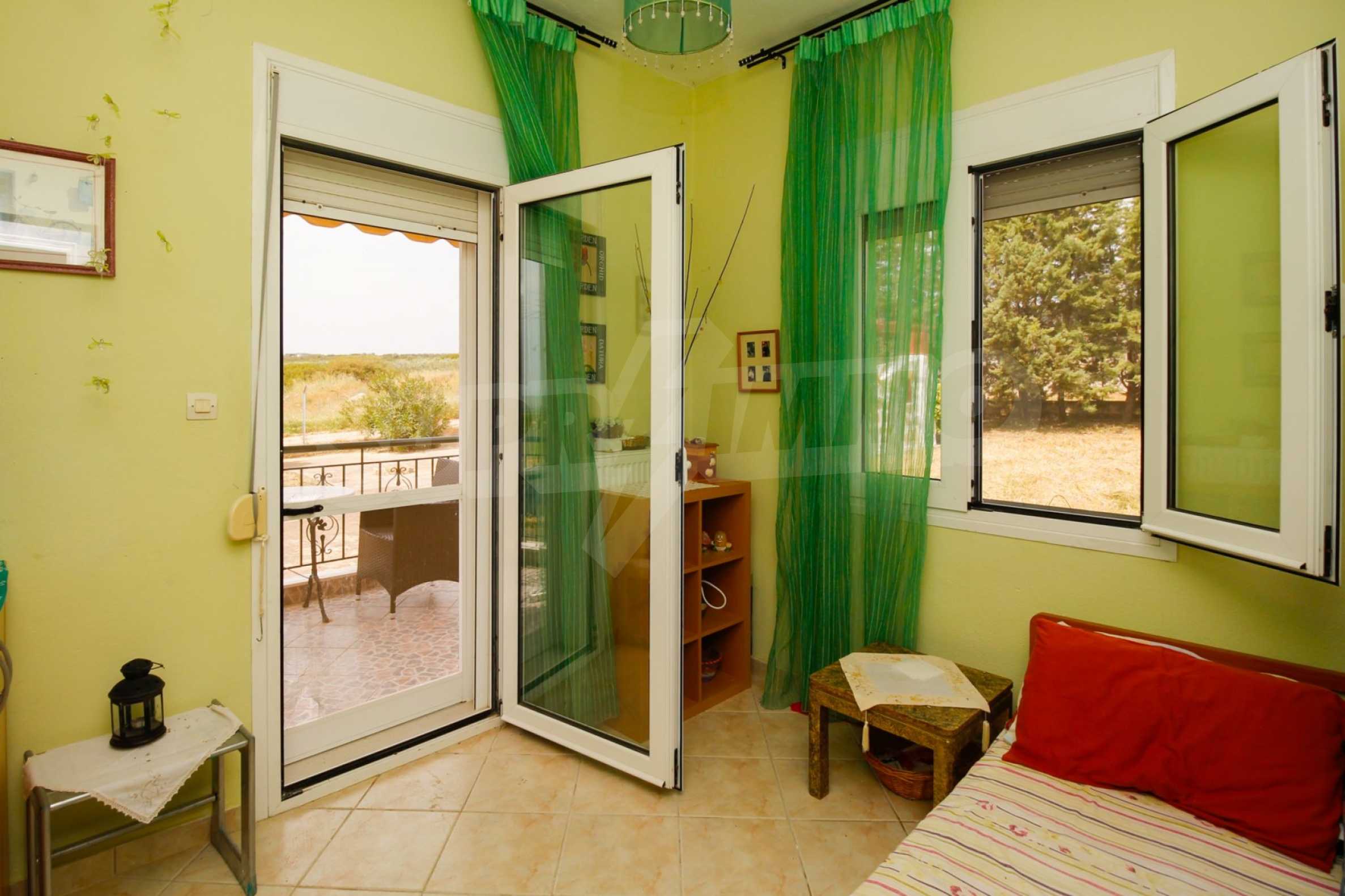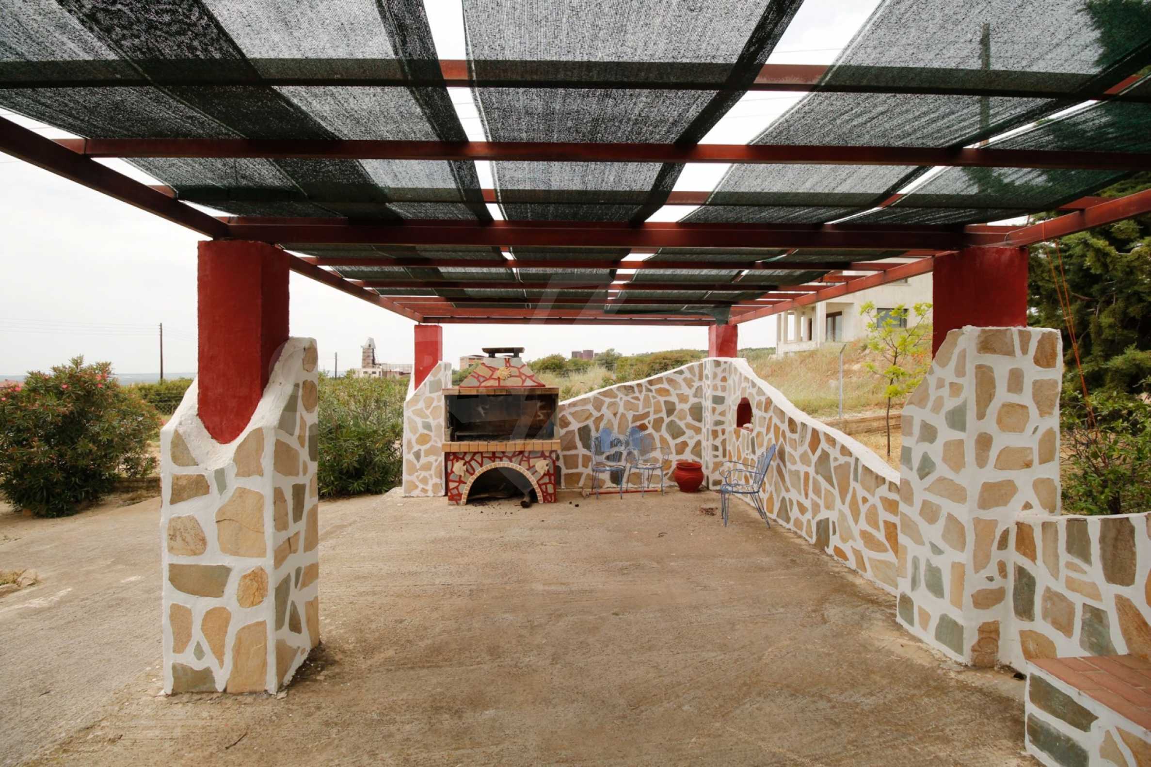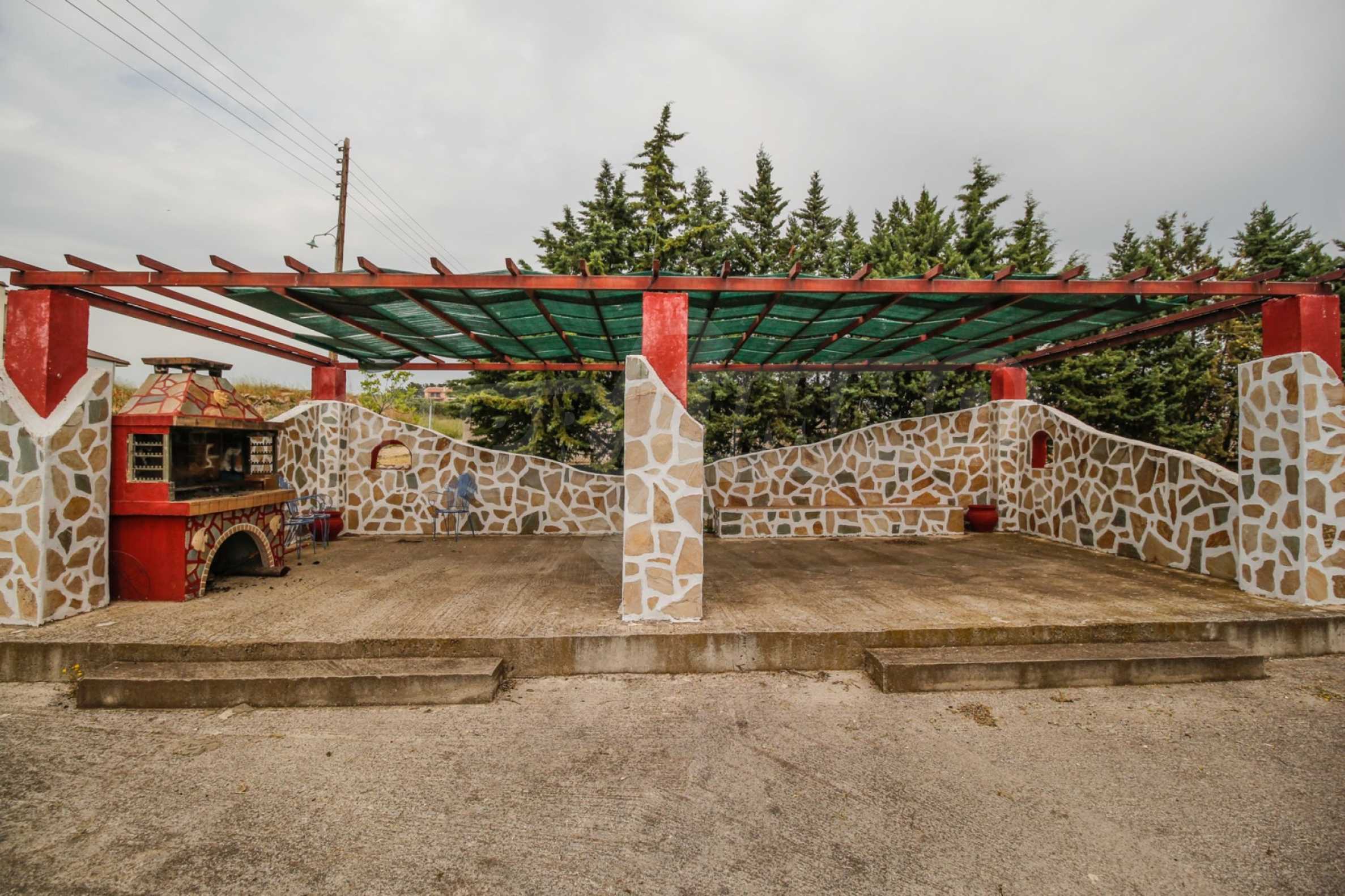 Предлагаме на вашето внимание къща с площ 200 кв.м. Година на строителство: 2005. Отоплението се осъществява посредством камина и локално парно. Имотът се предлага със следната степен на завършеност: алуминиева дограма. Имотът е снабден с септична яма. Важно е да се отбележи, че имотът разполага с: балкон, баня с тоалетна, килер и паркинг.