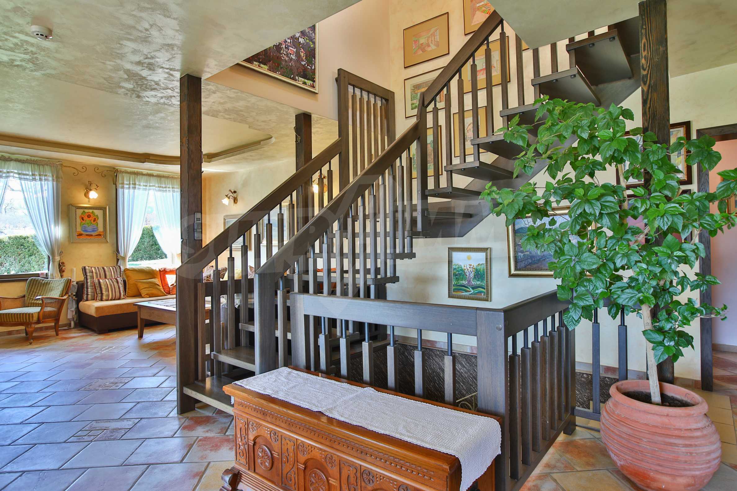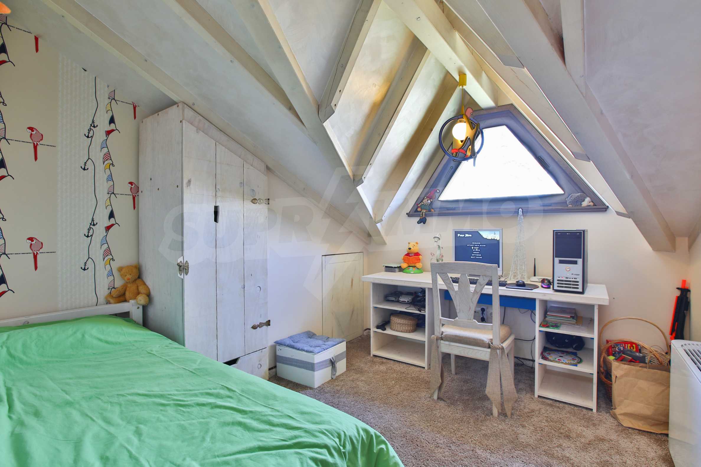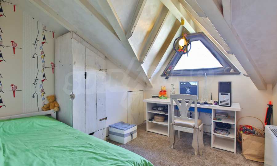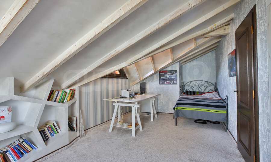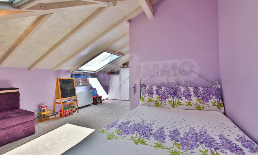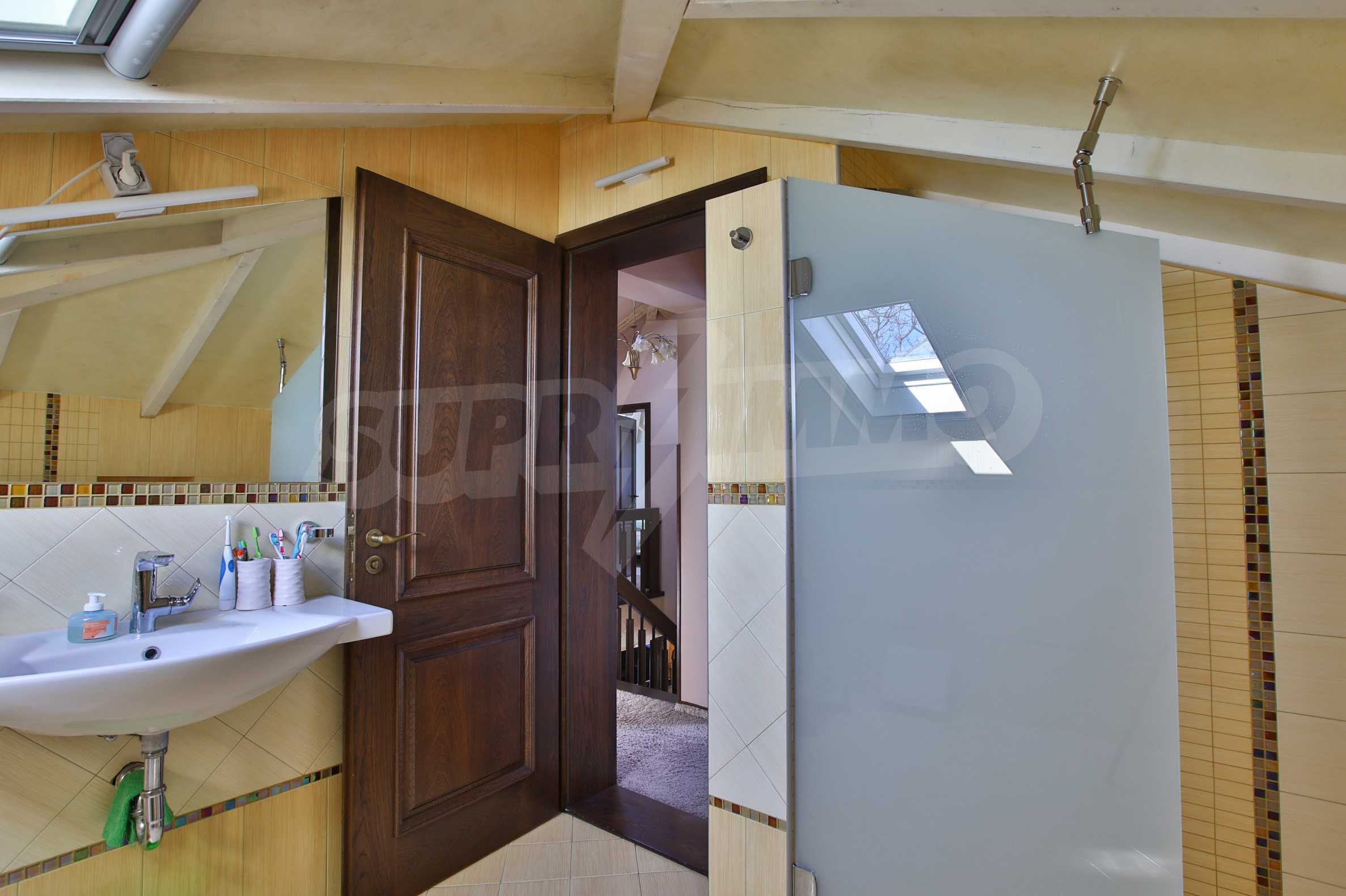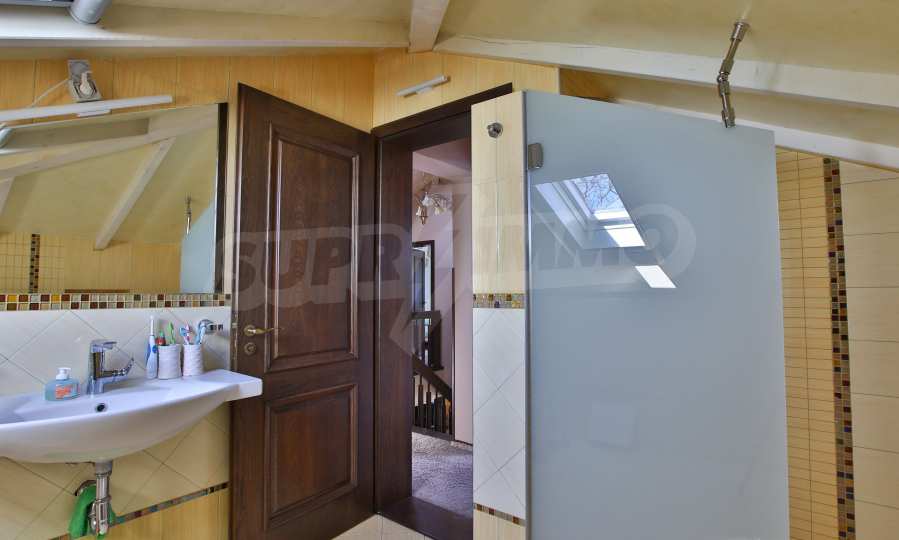Дограмата е дървен стъклопакет (дъб), покривните прозорци са "Велукс"