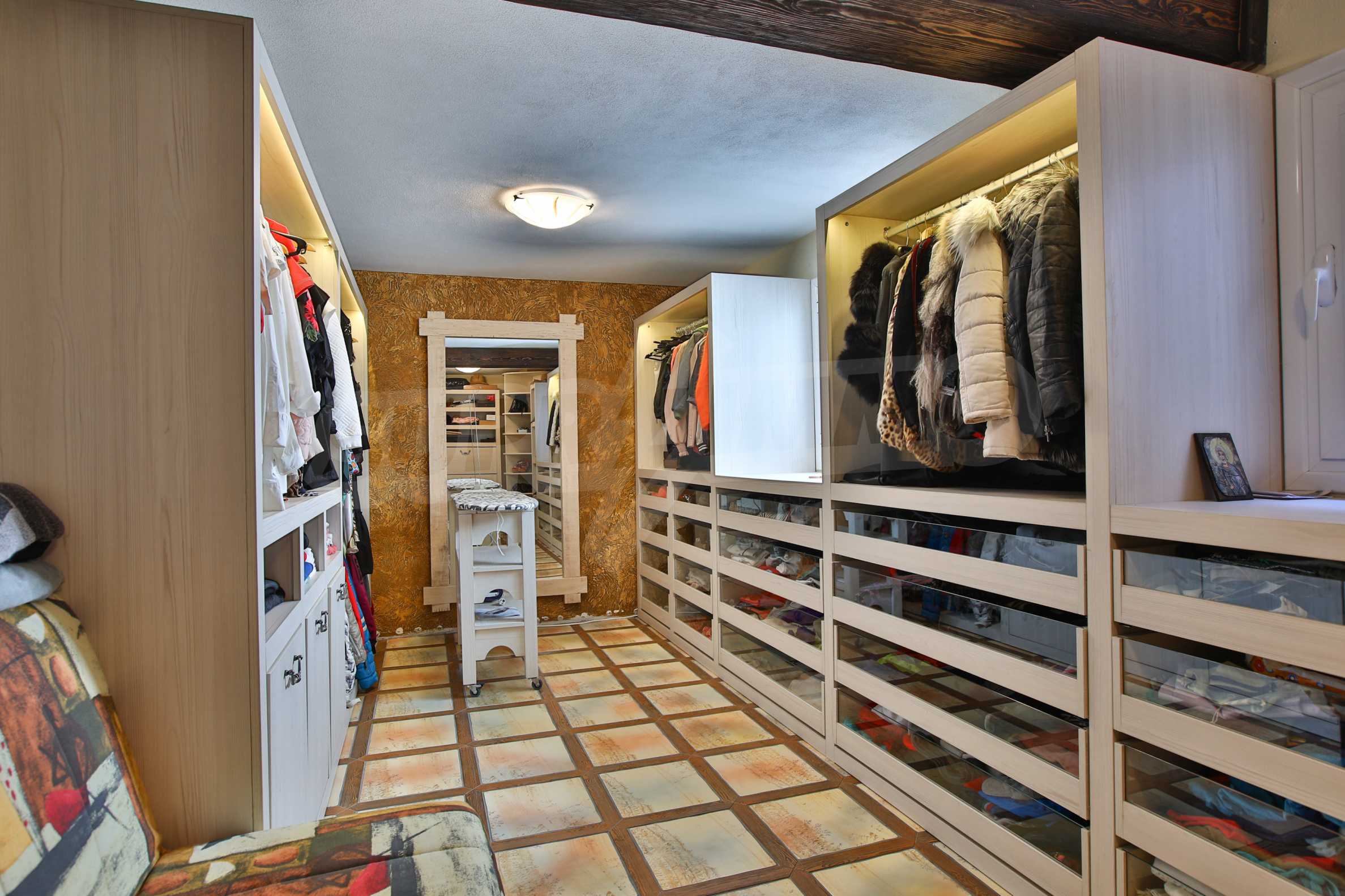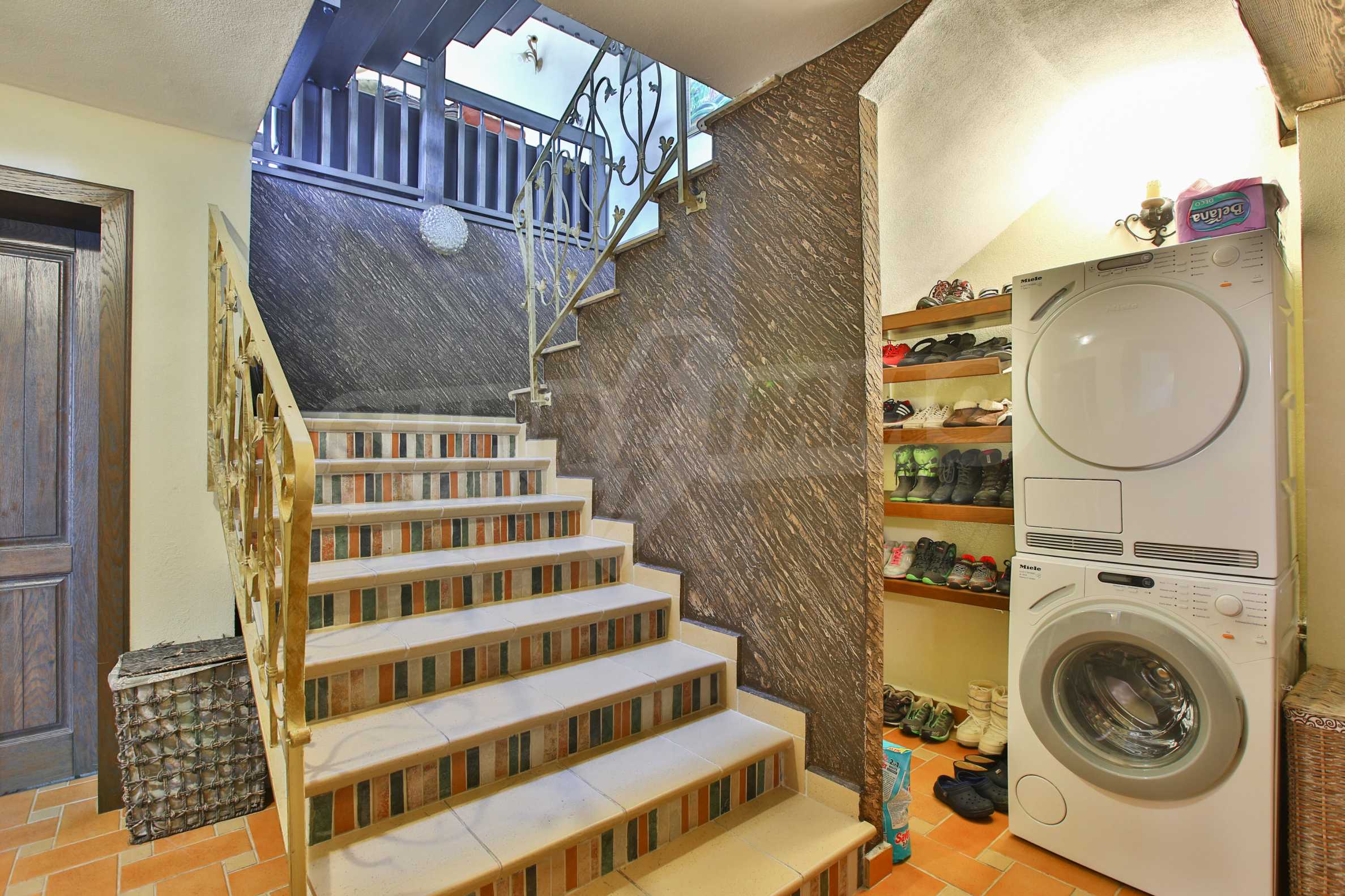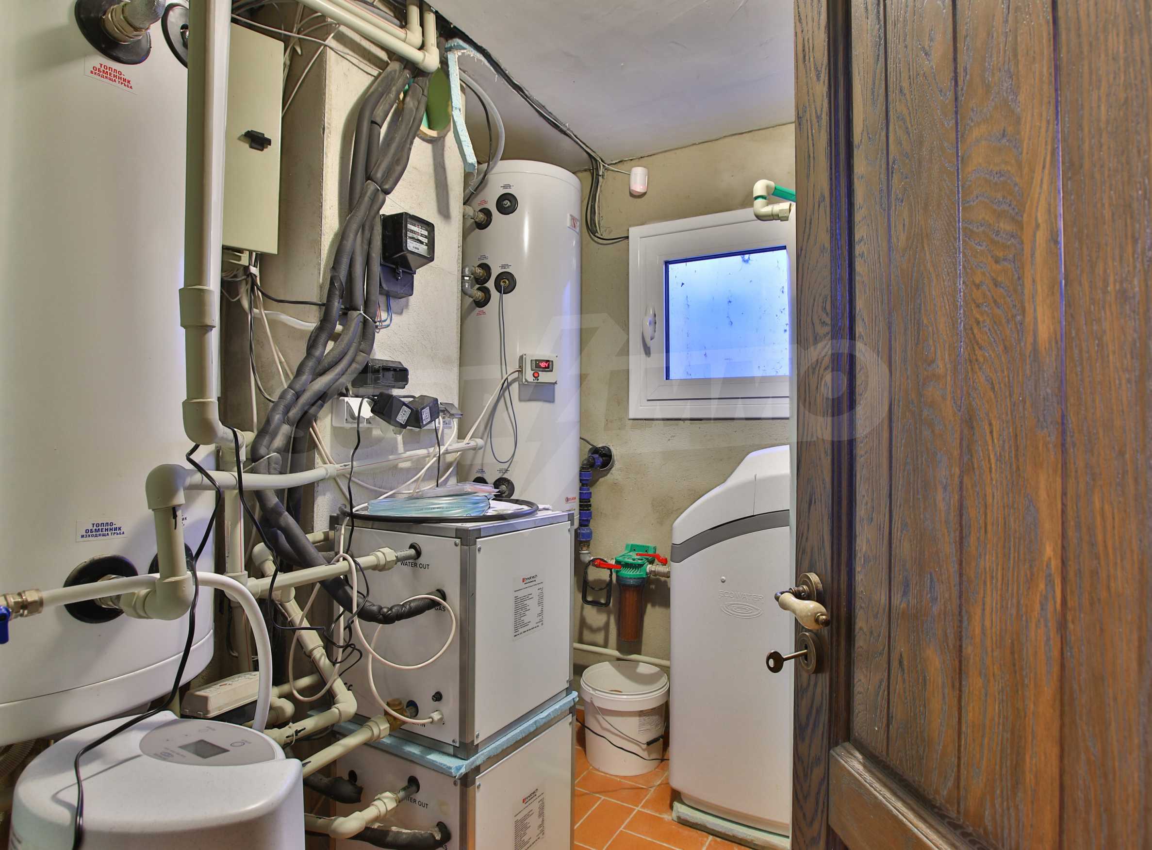 Сутерен - мазе, котелно, баня с тоалетна, гардеробна, помещение с камина, винарна