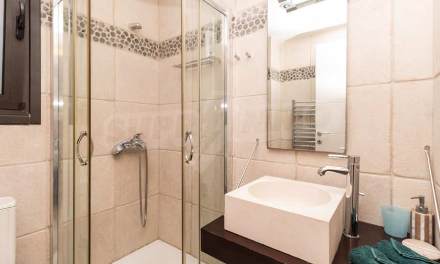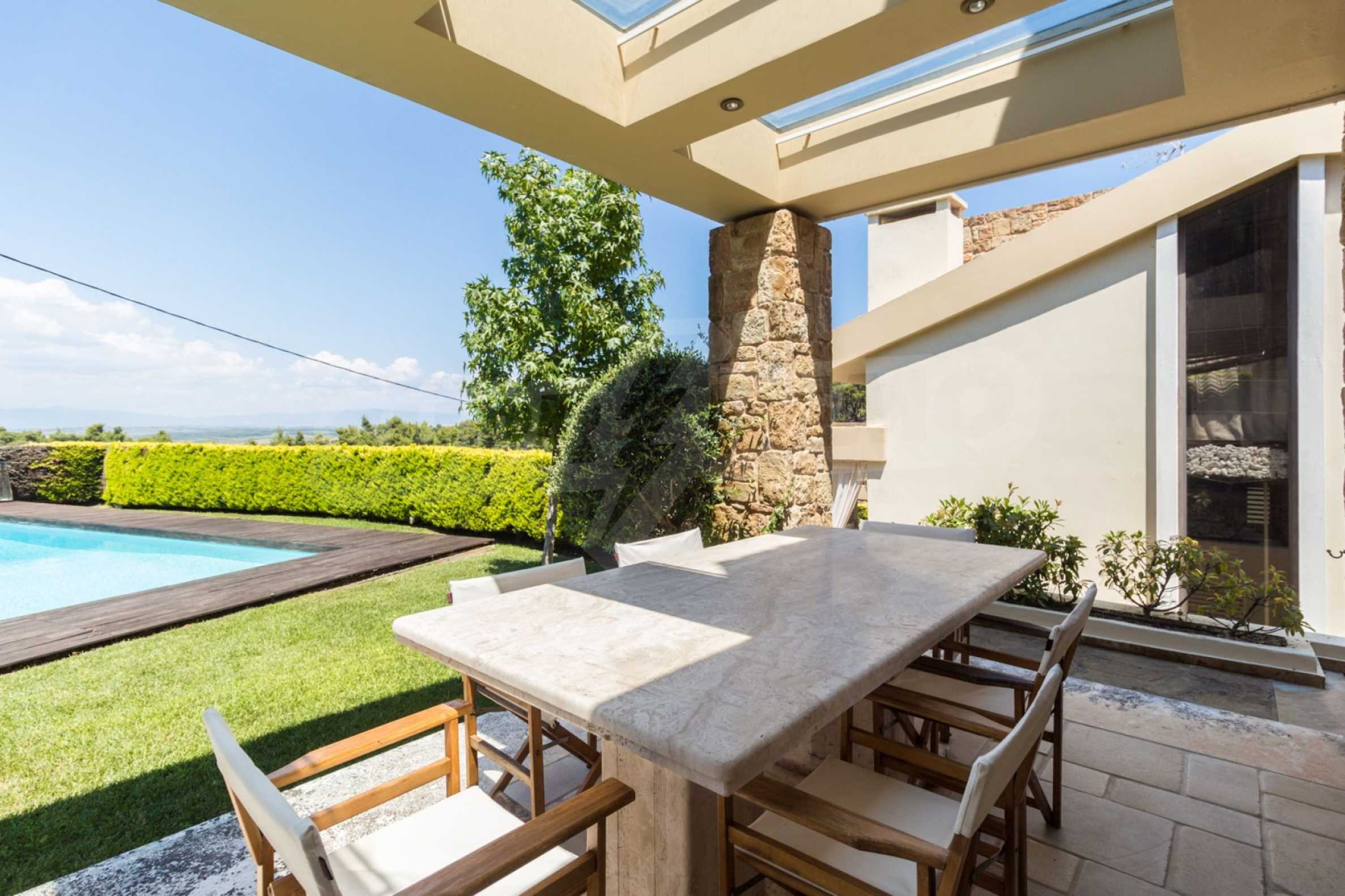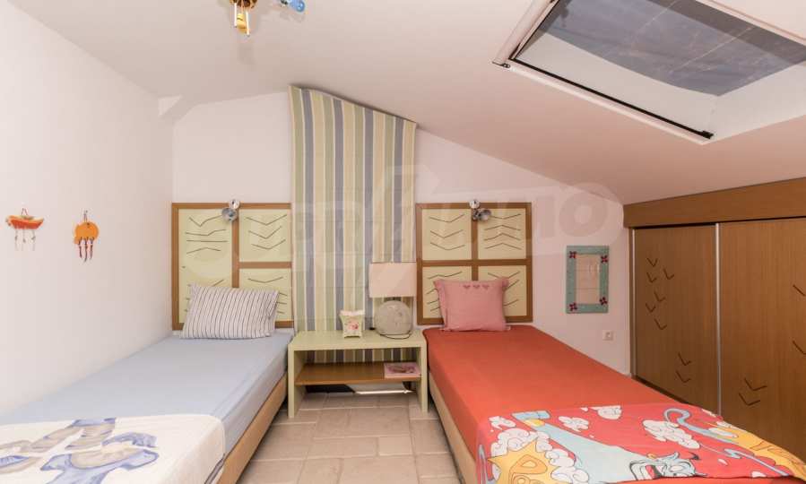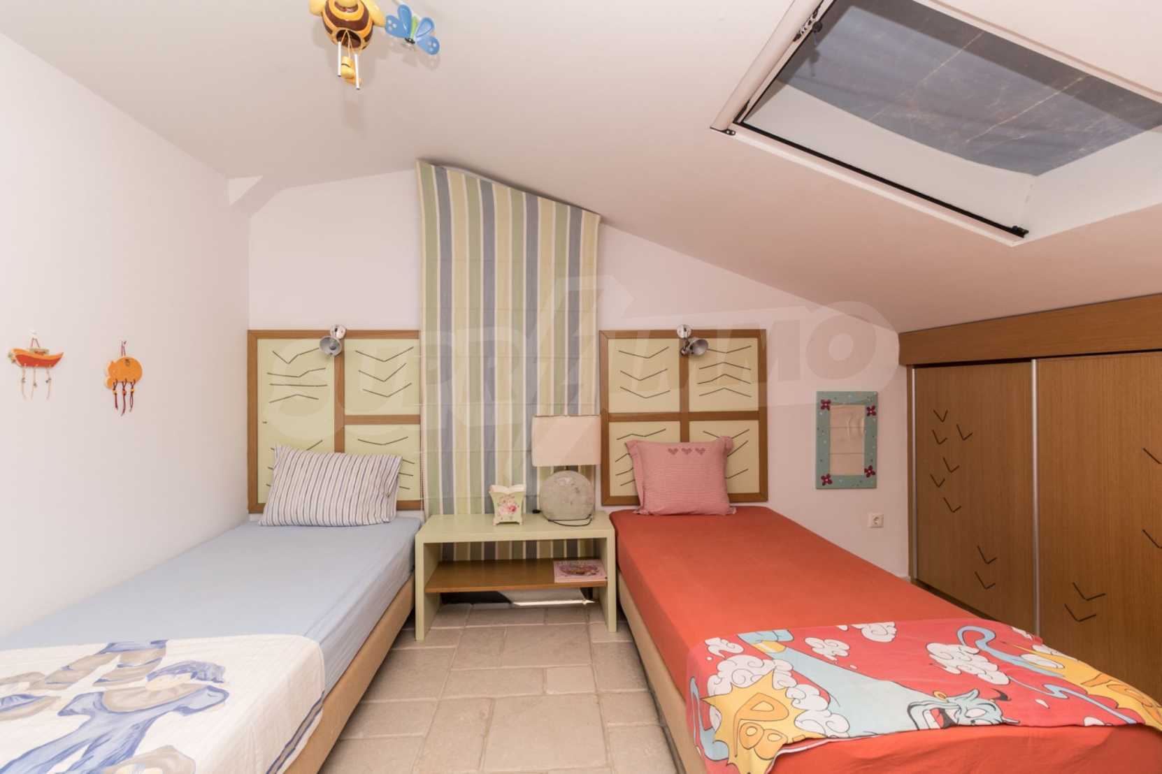 Предлагаме на вашето внимание къща с площ 135 кв.м. Година на строителство: 2004. Отоплението се осъществява посредством камина и локално парно. Има климатизация. Имотът се предлага със следната степен на завършеност: алуминиева дограма и блиндирана входна врата. Имотът е снабден с септична яма. Важно е да се отбележи, че имотът разполага с: балкон, баня с тоалетна, килер, мазе, паркинг, басейн и сот.