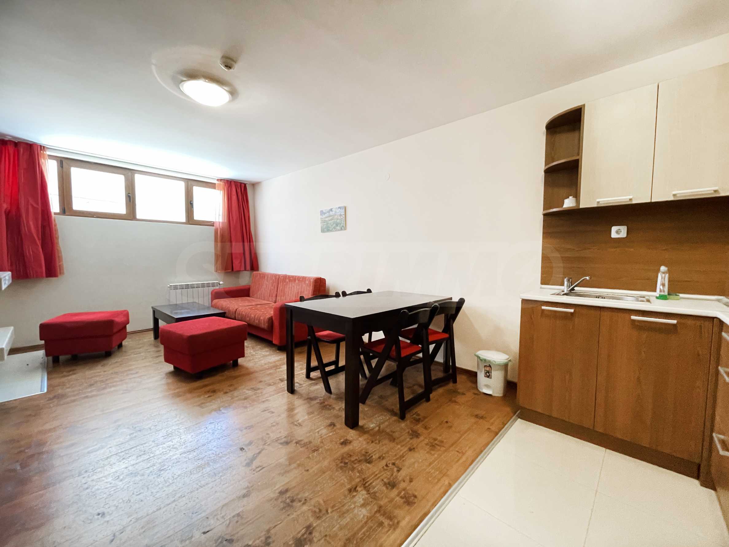 Ззавършено със стени – латекс, подове – дюшеме и терекот в коридора, дограма – ПВЦ.