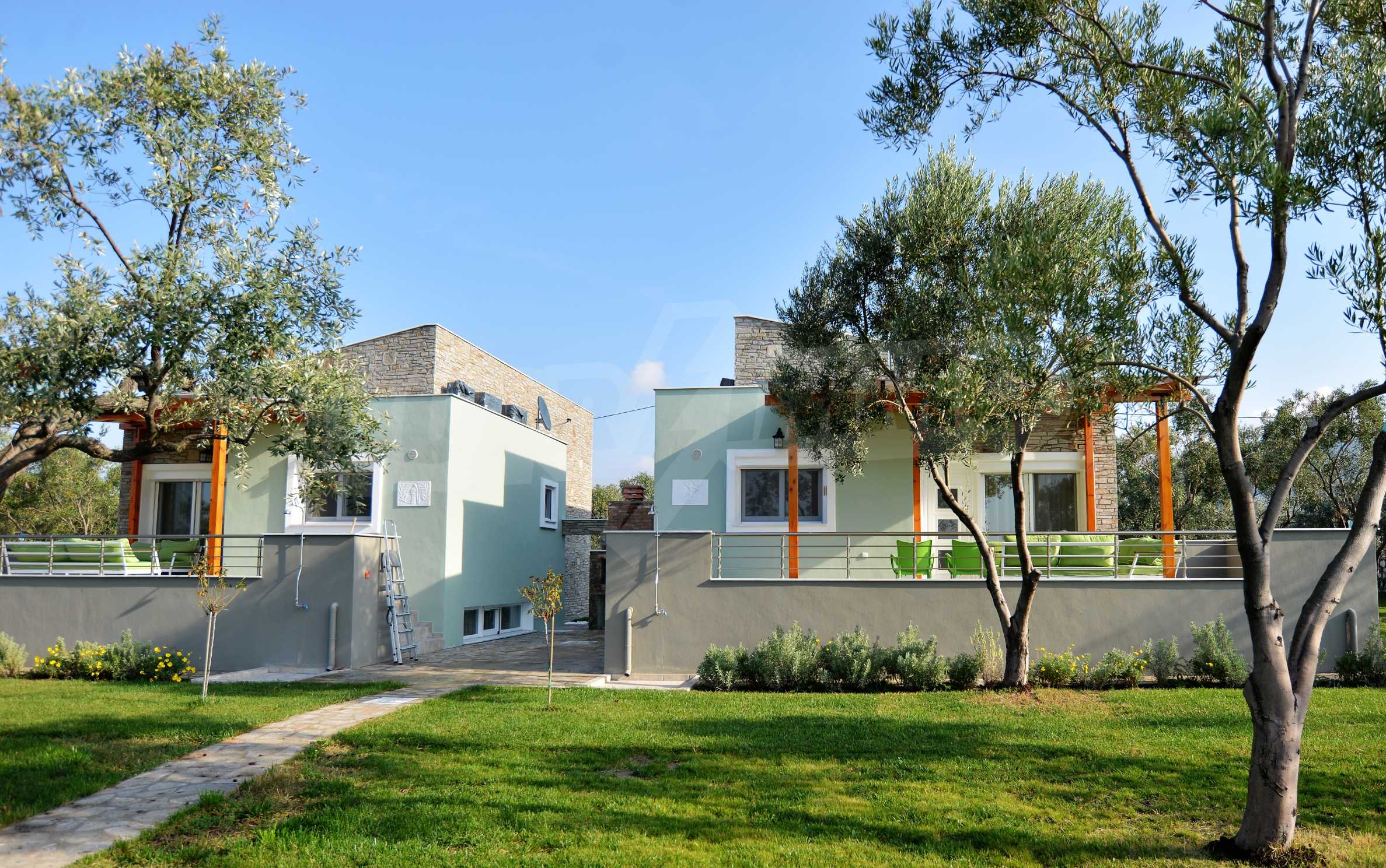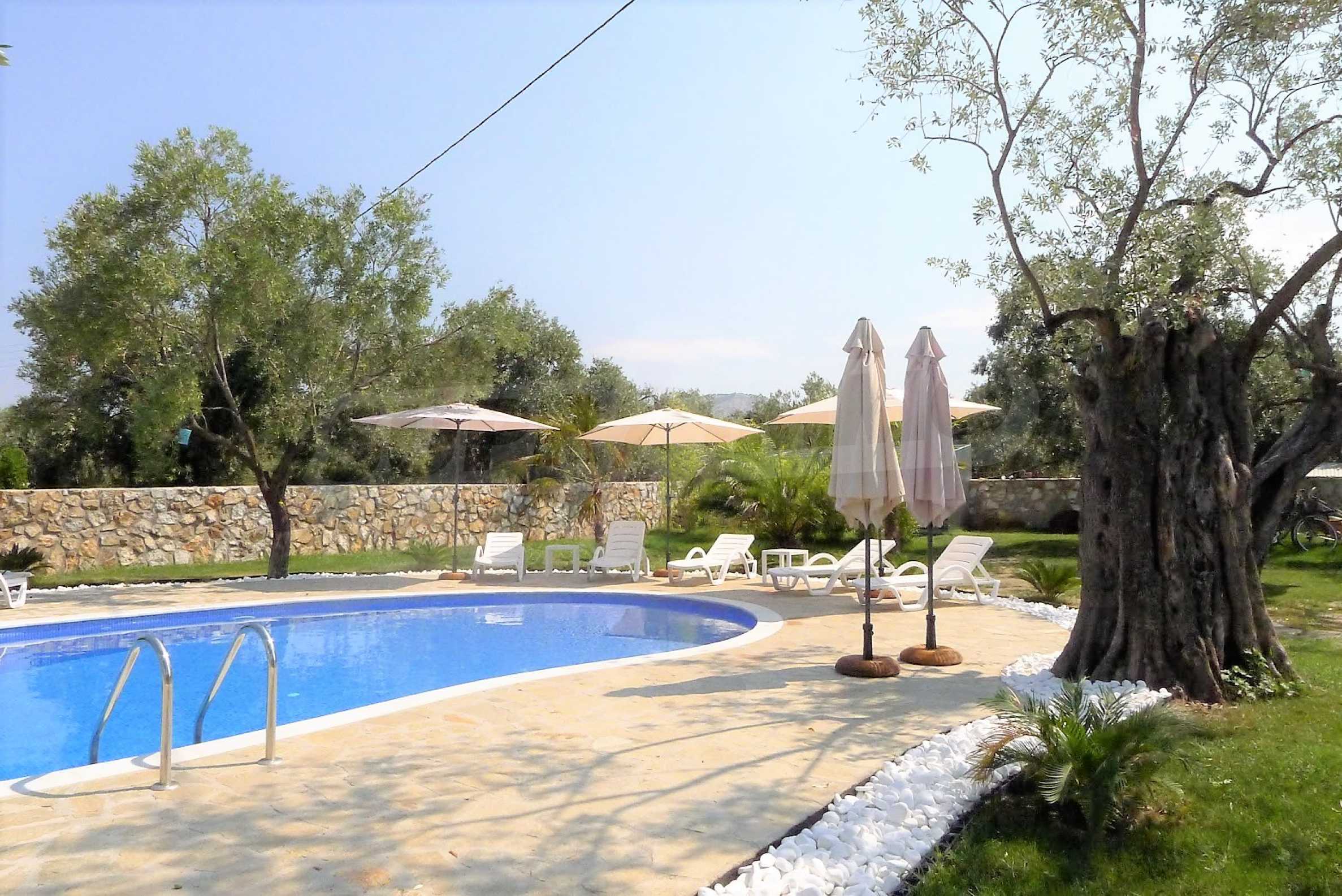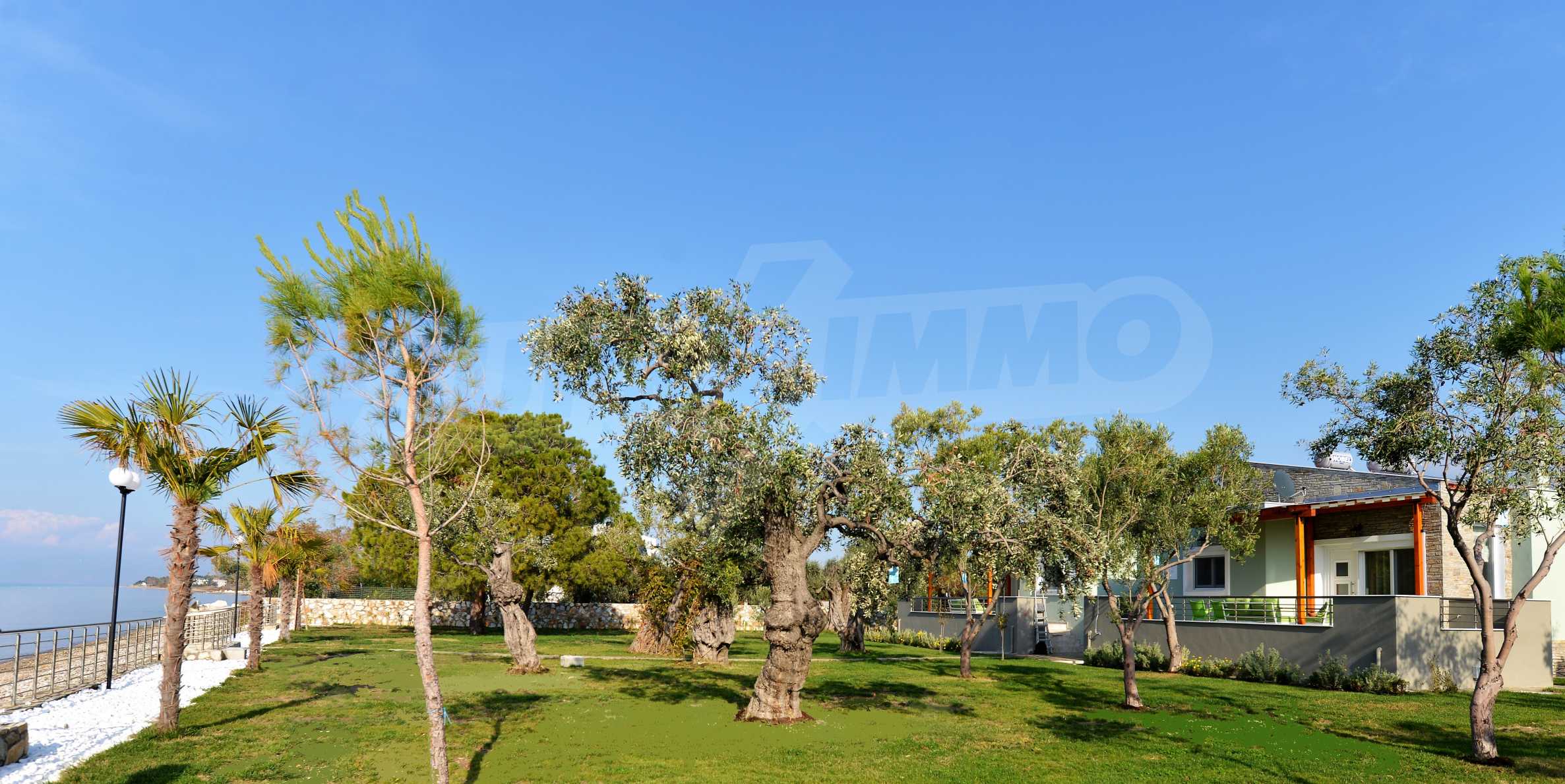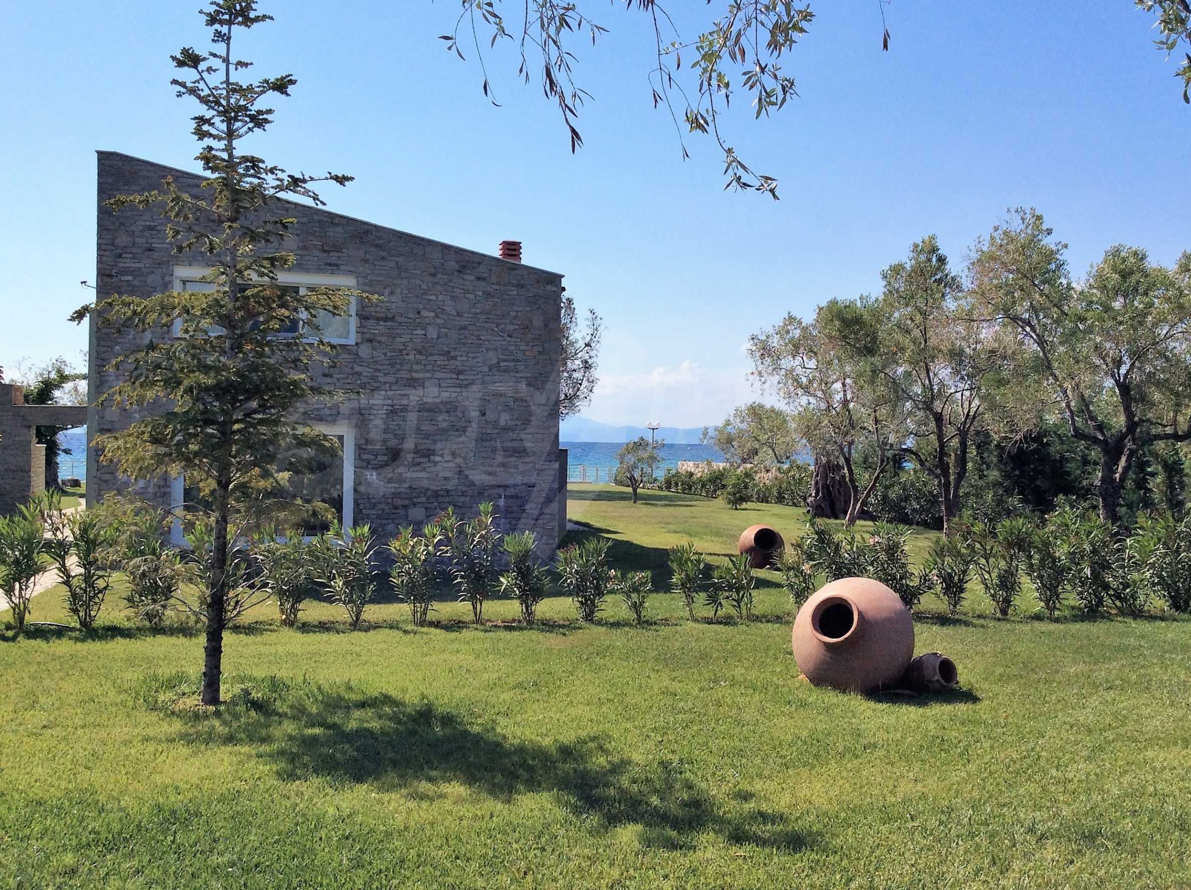 Представяме Ви ваканционен имот, самостоятелна къща в затворен комплекс първа линия на морето, състоящ се от три вили. Вилата разполага със собствен двор 1000 кв.м., басейн 50 кв.м. и директен достъп до плажа.