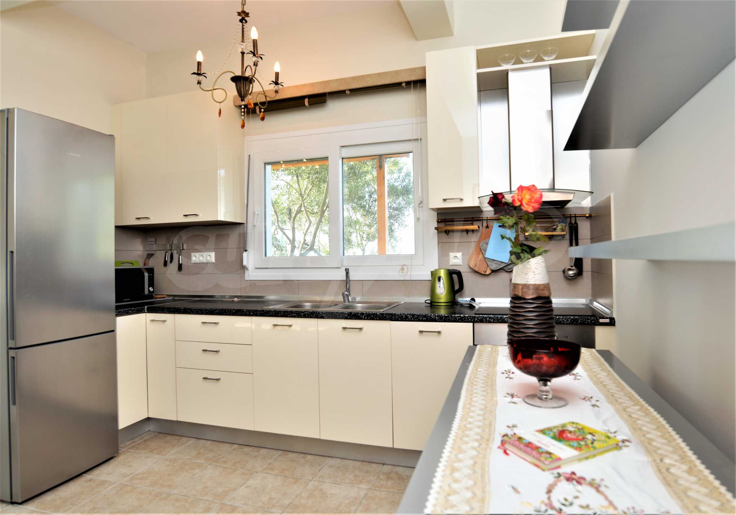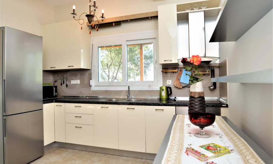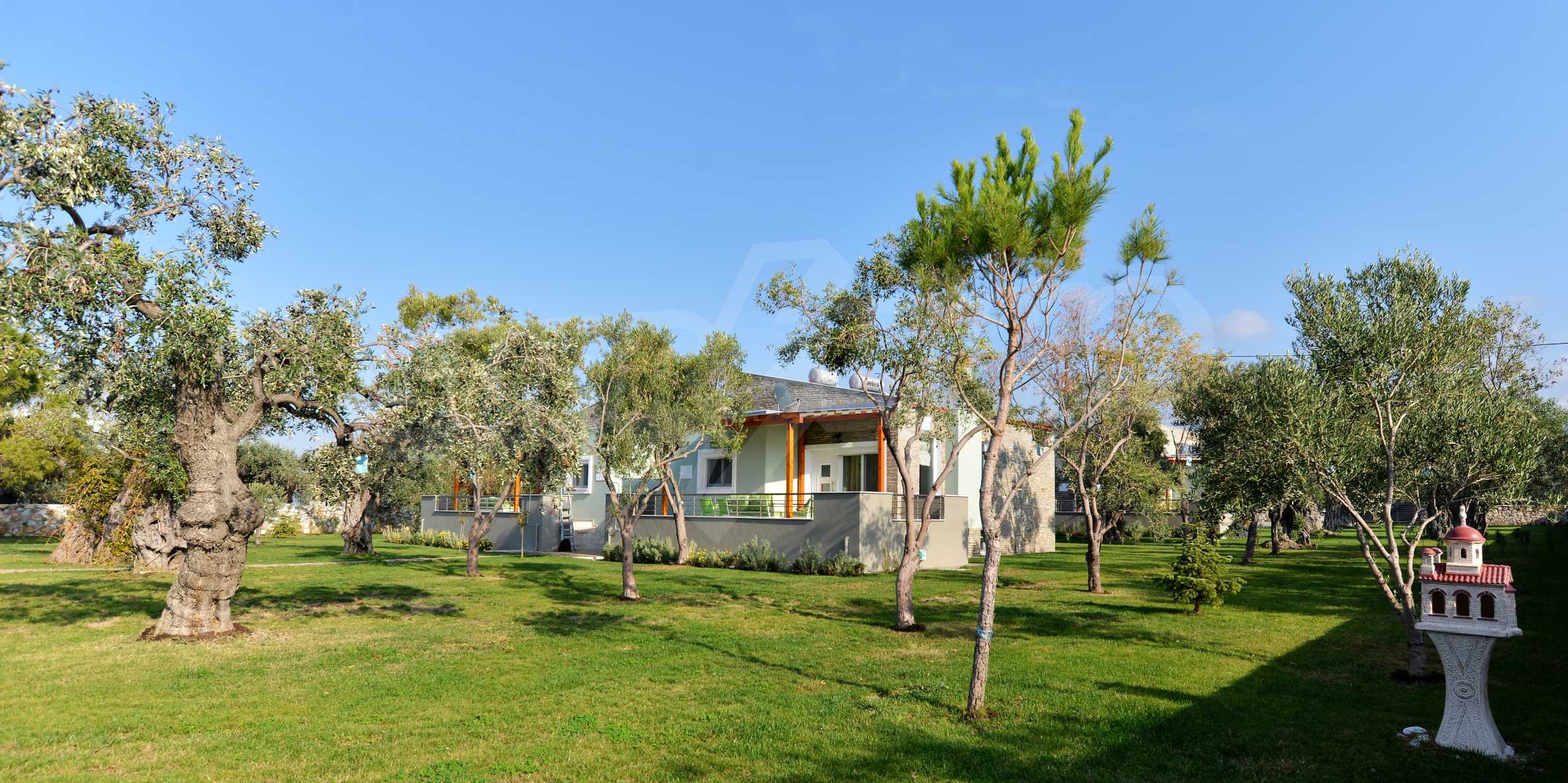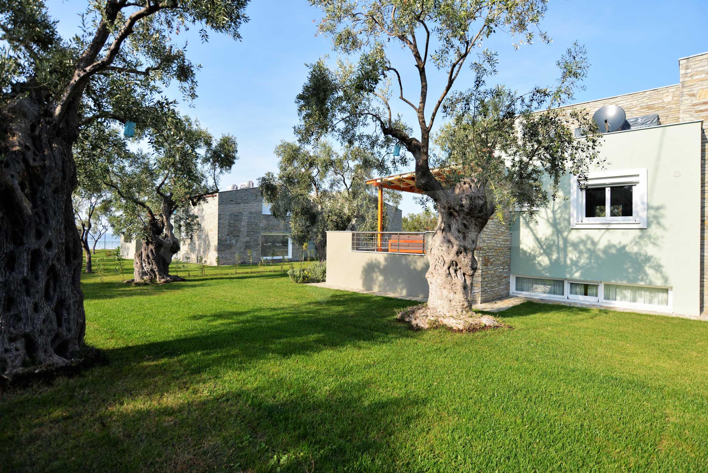 Представяме Ви ваканционен имот, самостоятелна къща в затворен комплекс първа линия на морето, състоящ се от три вили. Вилата разполага със собствен двор 1000 кв.м., басейн 50 кв.м. и директен достъп до плажа.