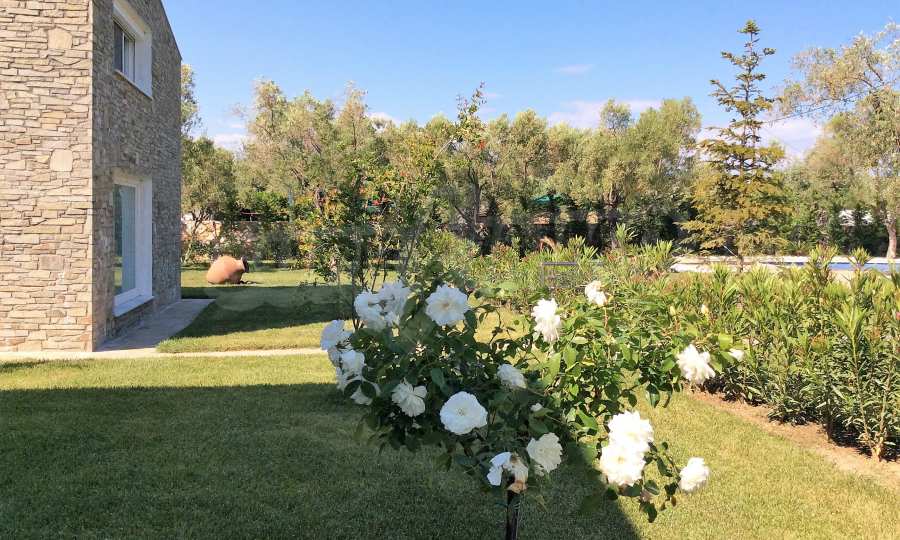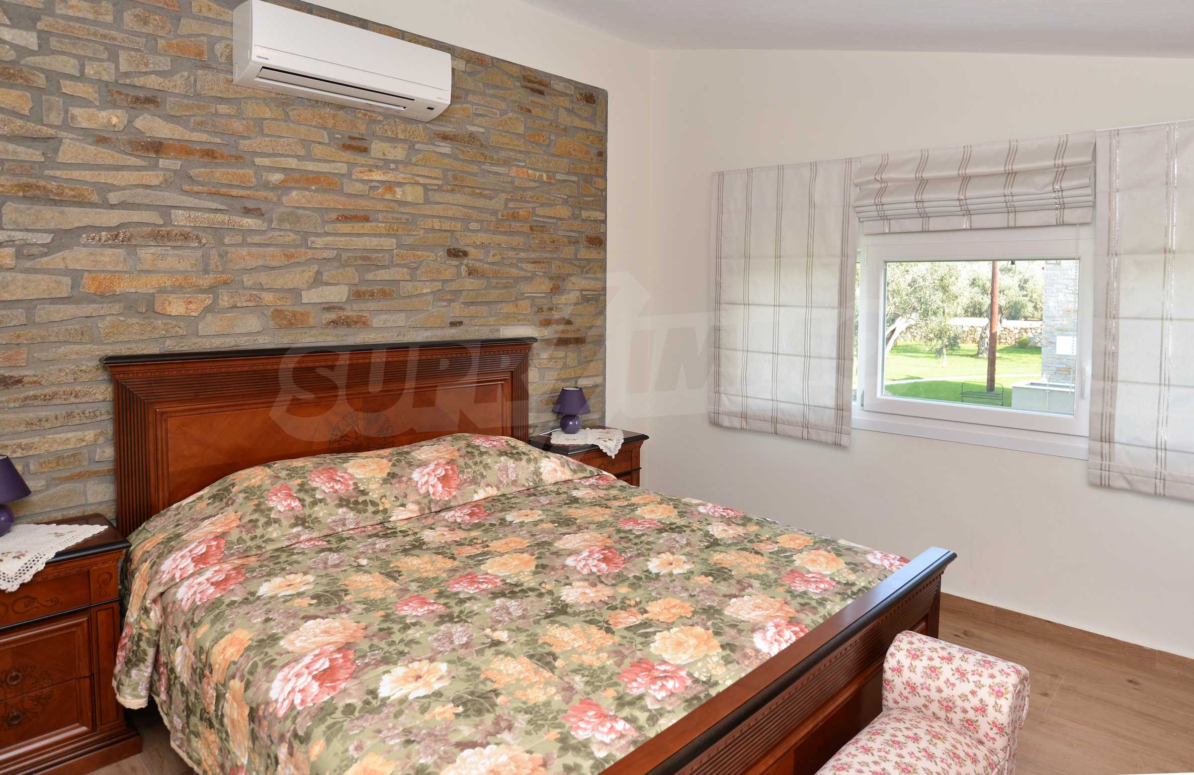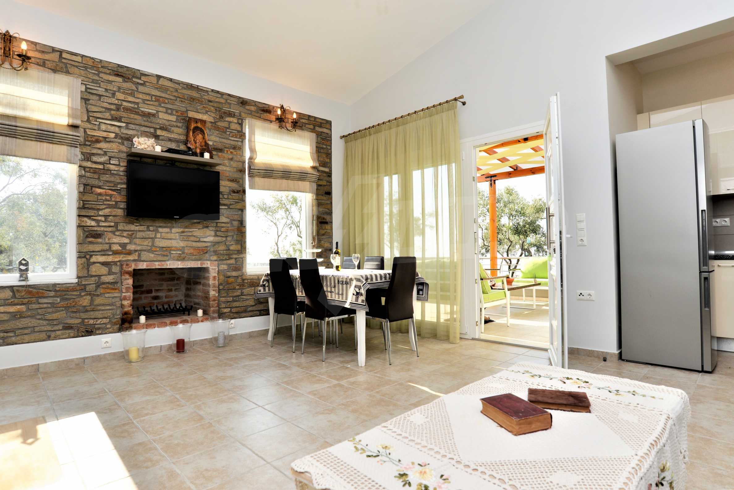 Къща с басейн в затворен комплекс от 3 къщи и достъп до плажа в курортното крайбрежно селище Принос на о. Тасос.