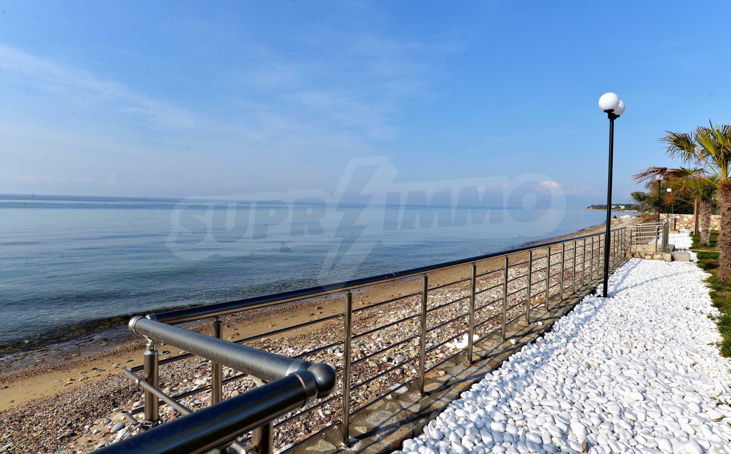 Представяме Ви ваканционен имот, самостоятелна къща в затворен комплекс първа линия на морето, състоящ се от три вили. Вилата разполага със собствен двор 1000 кв.м., басейн 50 кв.м. и директен достъп до плажа.