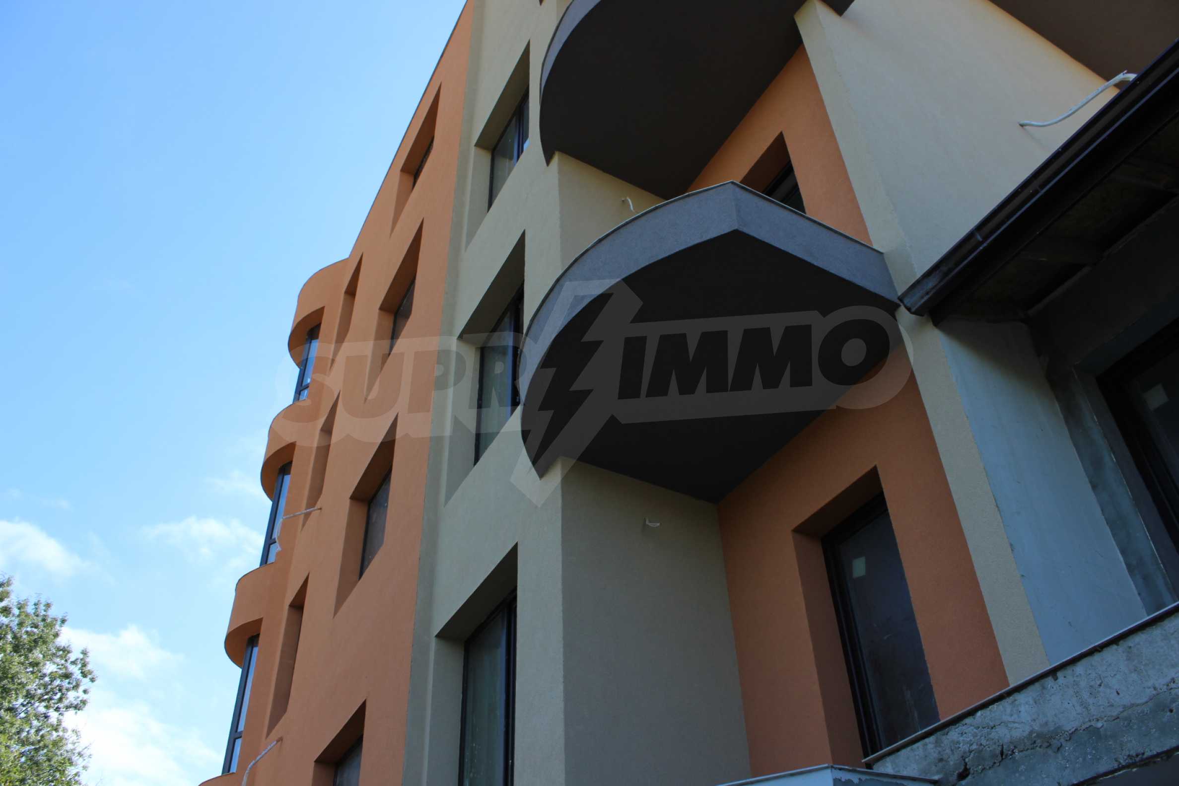 АПАРТАМЕНТИ: Светли с функционално разпределение и различна големина апартаменти и студиа с площи от 27 кв.м. до 84 кв.м., обслужвани от един вход. Разработени са няколко типа жилища: 11 броя студиа, 12 броя двустайни апартамента и 3 броя тристайни апартамента.