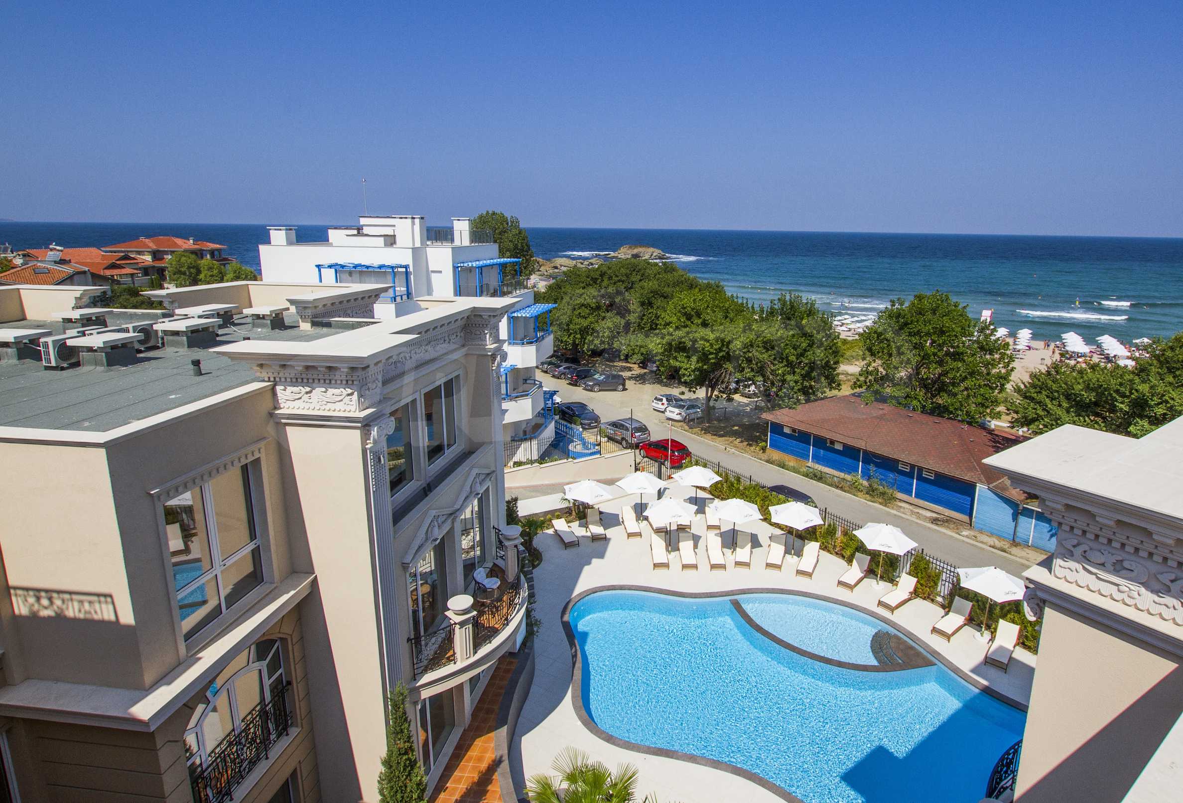 Елитната морска резиденция с първокласни удобства се намира над централния пясъчен плаж на популярния курорт, в близост до живописния скалист нос Амбелиц и в съседство с популярните плажни заведения. Само на 10 мин пеша се намира емблематичният плаж “Корал”, с неговата широка плажна ивица и чудесни пясъчни дюни. Центърът на Лозенец, с всички негови атракции, известни заведения и ресторанти, е на по-малко от 10 мин пеша.