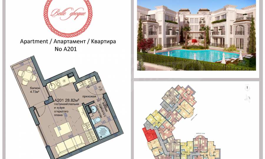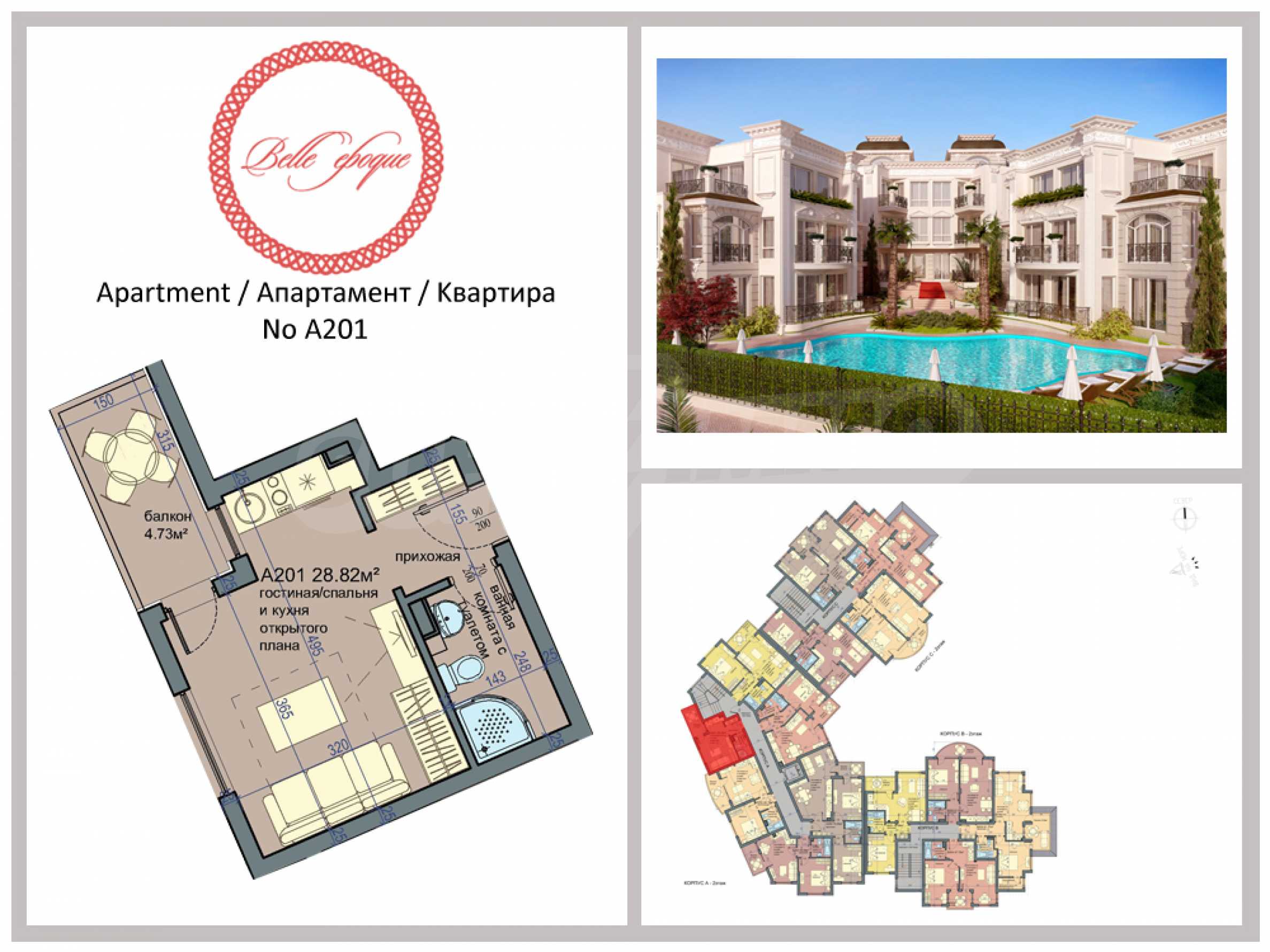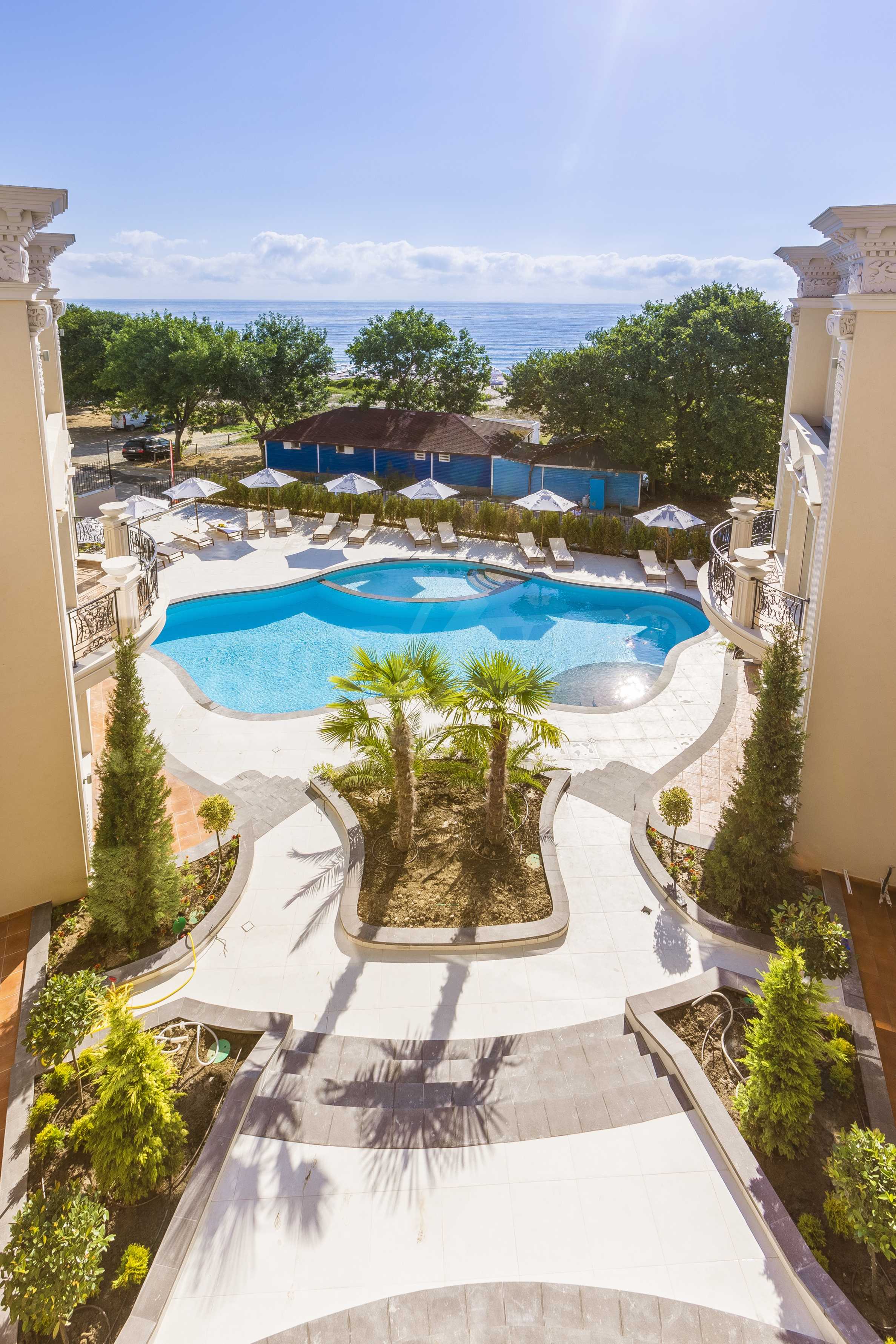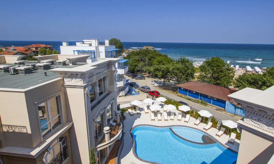 Представяме за под наем комфортно обзаведено студио със съвременно оборудване, разположено на първа линия море в комплекс "Belle Époque Beach Residence".