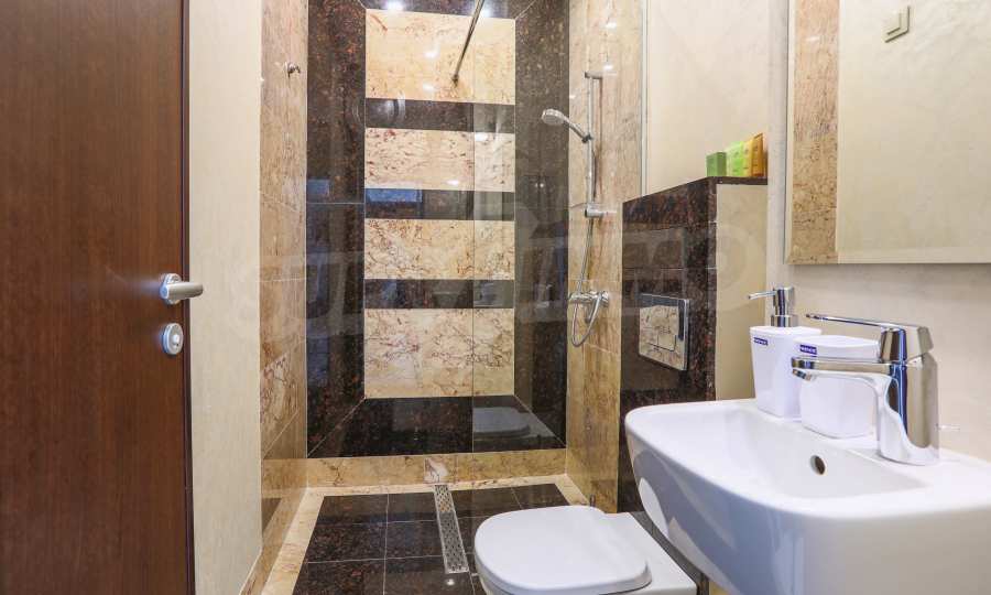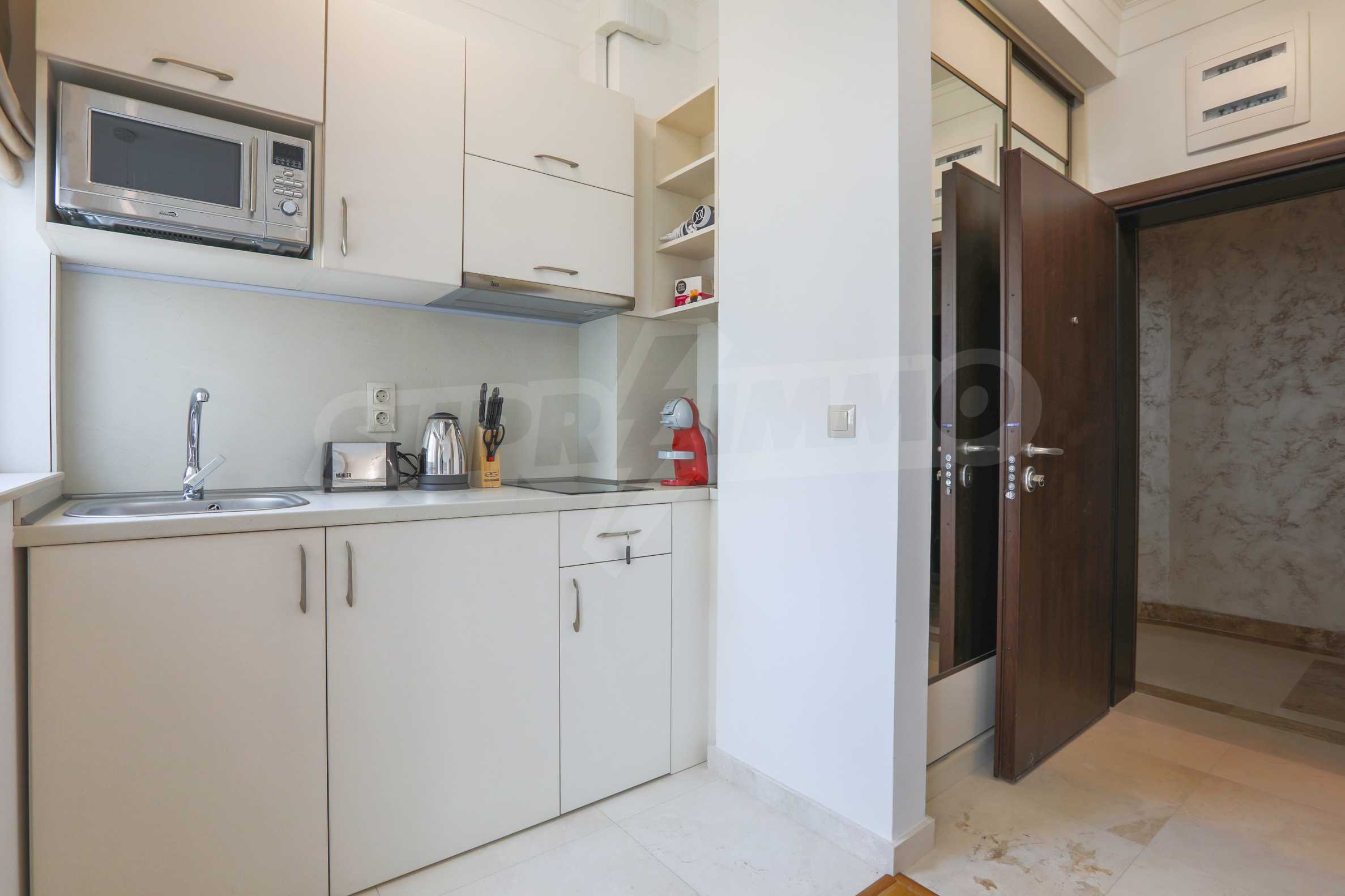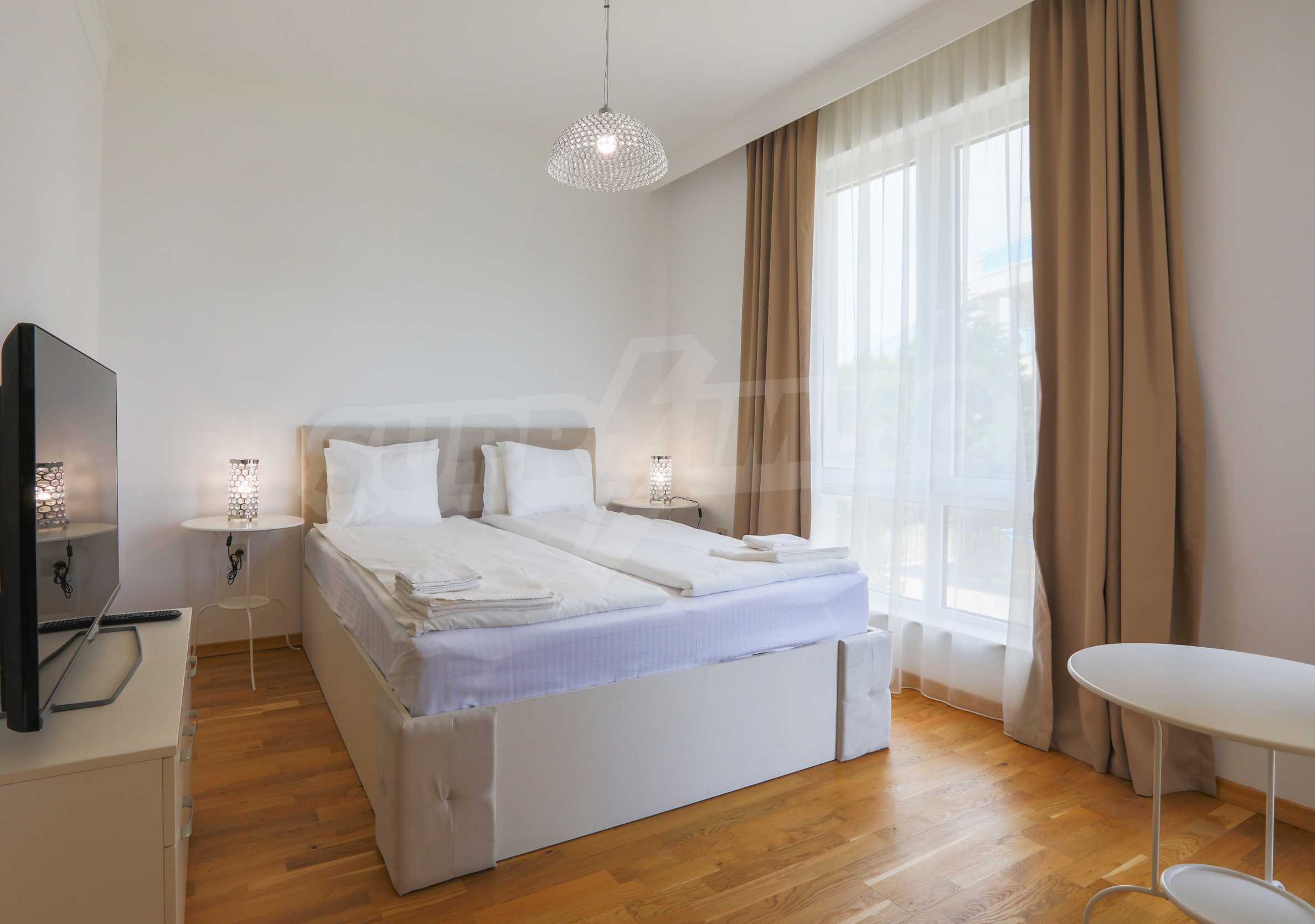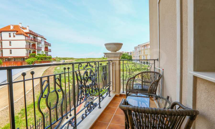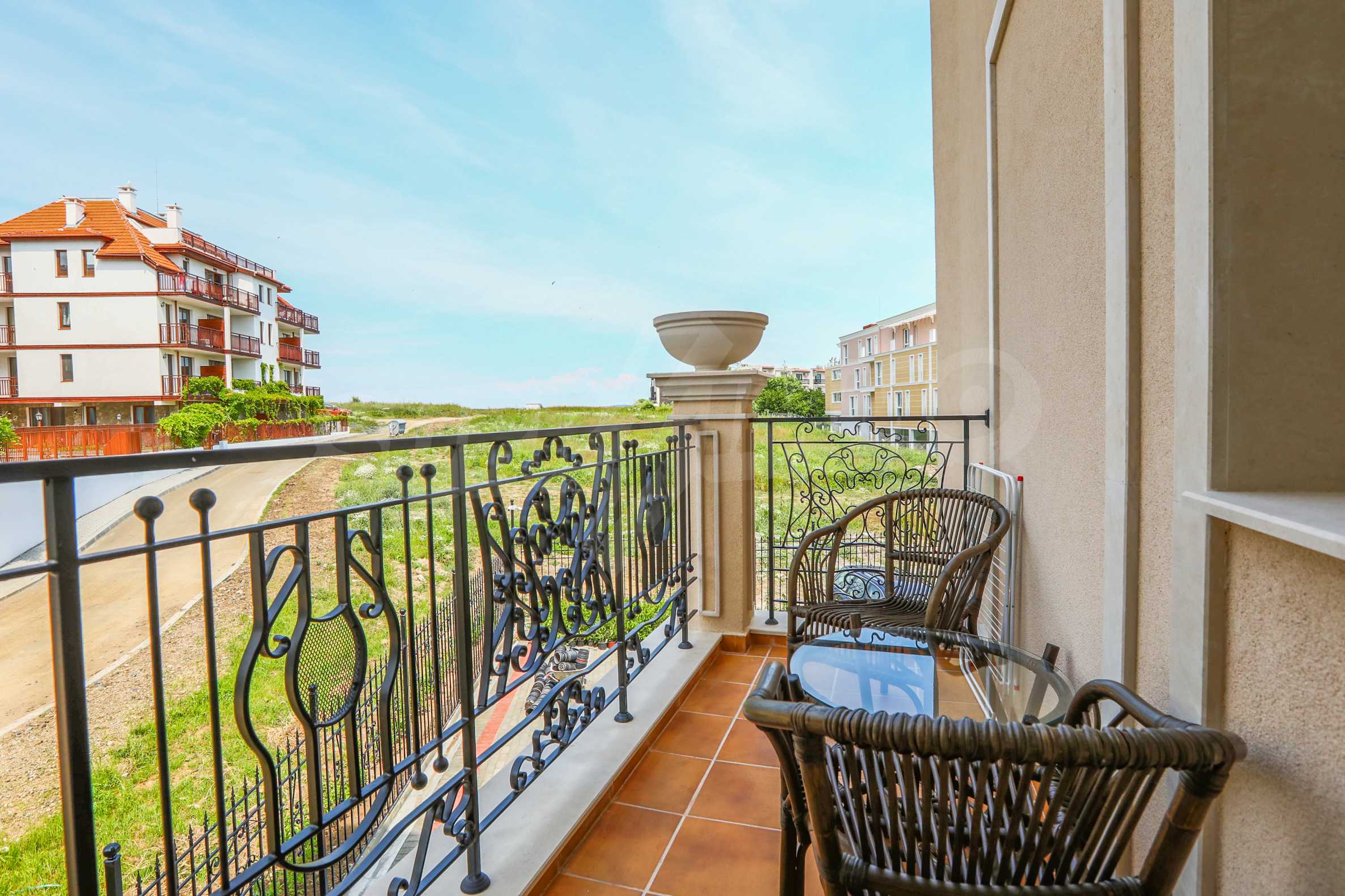 Студиото е с първокласни довършителни работи, което допринася за най-комфортното пребиваване и отдих на метри от пясъчния плаж. Имотът предлага съвременен интериор в светли тонове, комфортна зона-спалня, оборудвана кухня с електроуреди, мебели за съхранение, тераса с градински комплект за отдих и просторна баня.