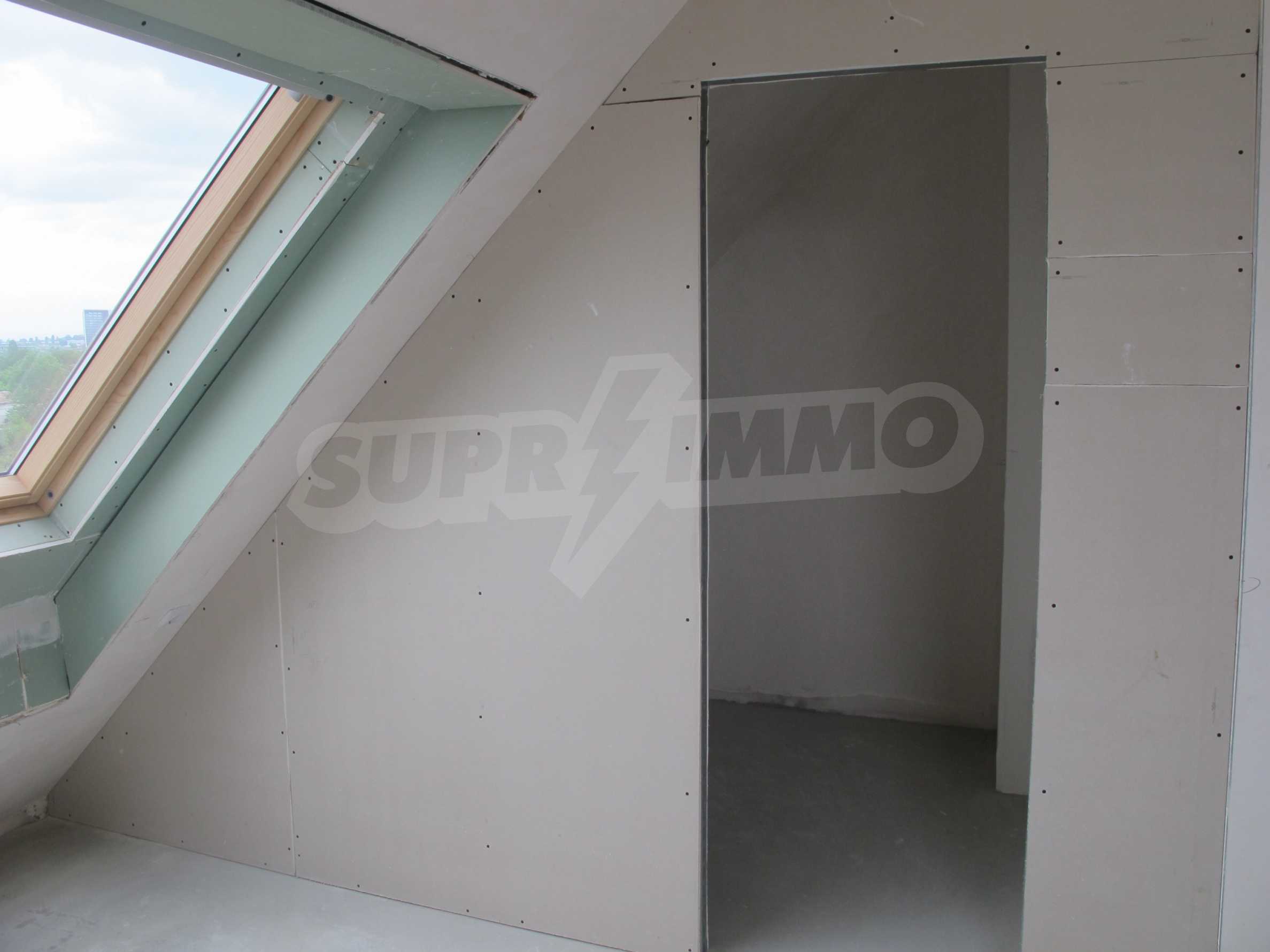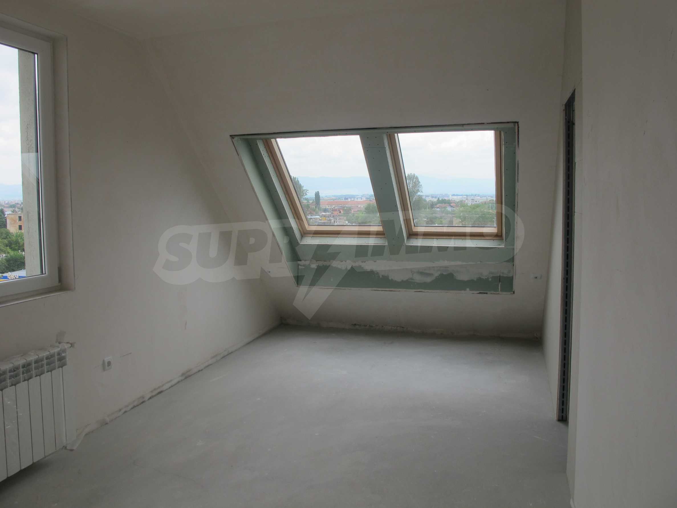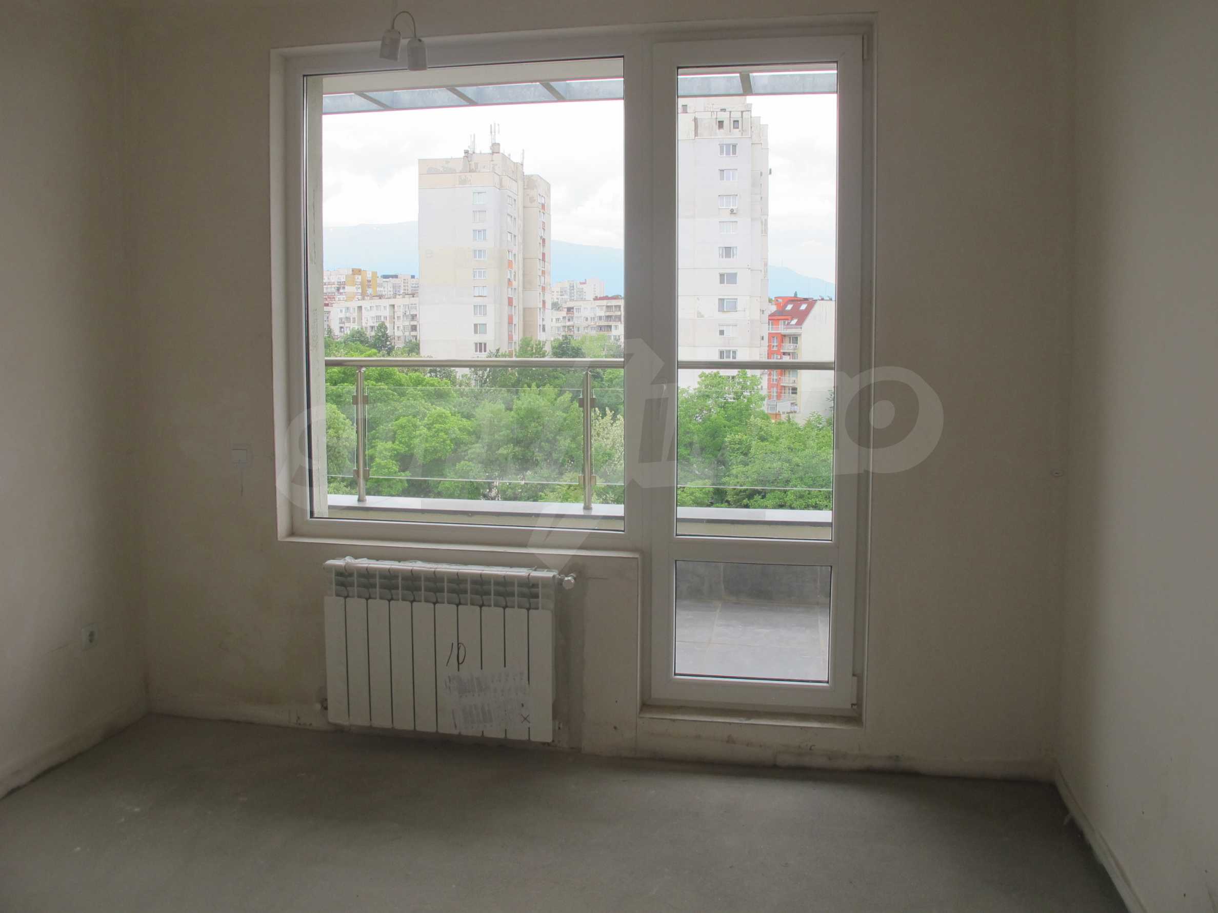 Жилището заема последен шести етаж в нова сграда с асансьор. Има тристранно изложение юг/запад/север. Предлага се със степен на завършеност: шпакловка и замазка.