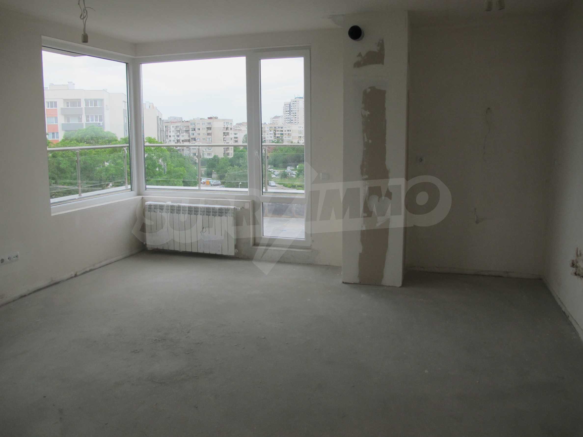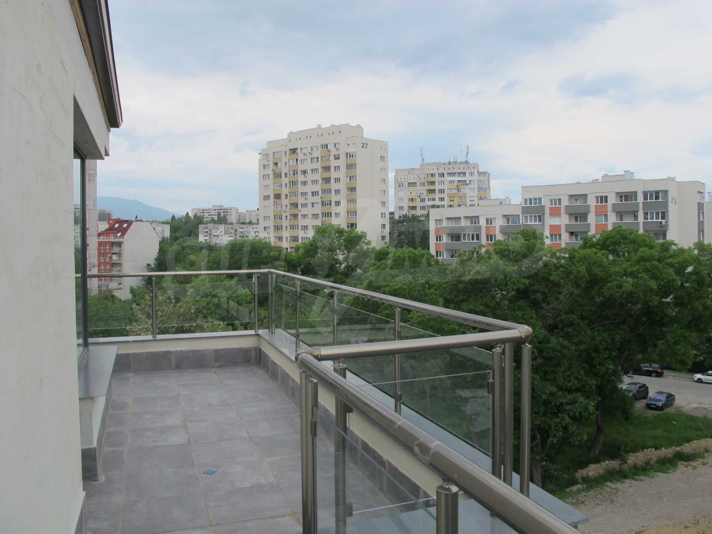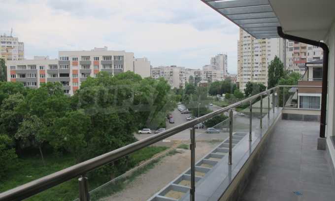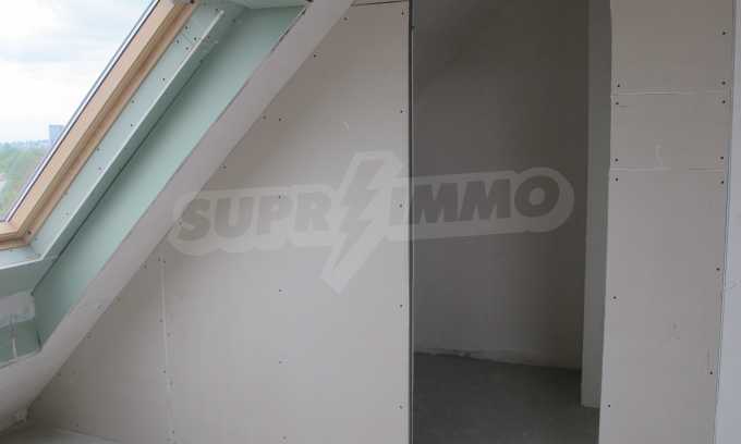 Жилището заема последен шести етаж в нова сграда с асансьор. Има тристранно изложение юг/запад/север. Предлага се със степен на завършеност: шпакловка и замазка.