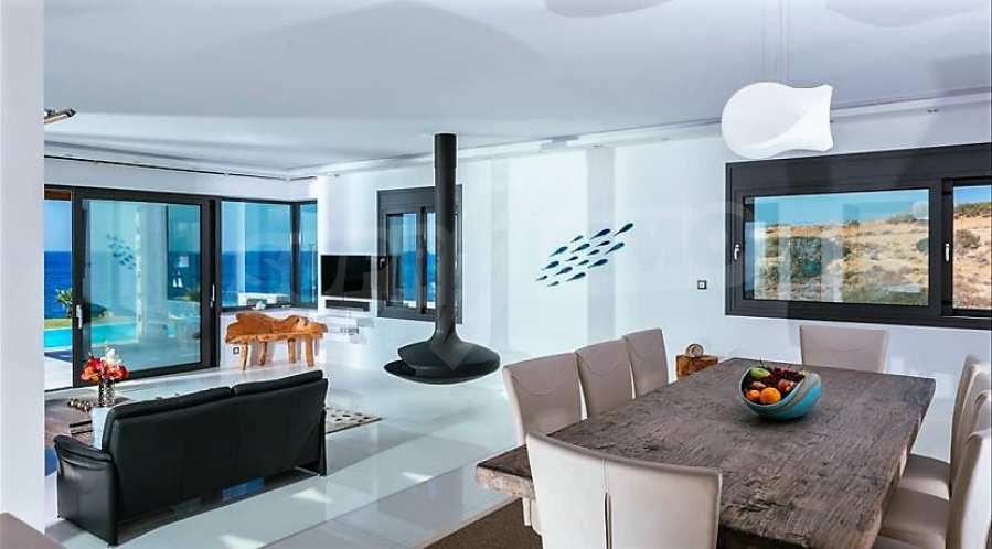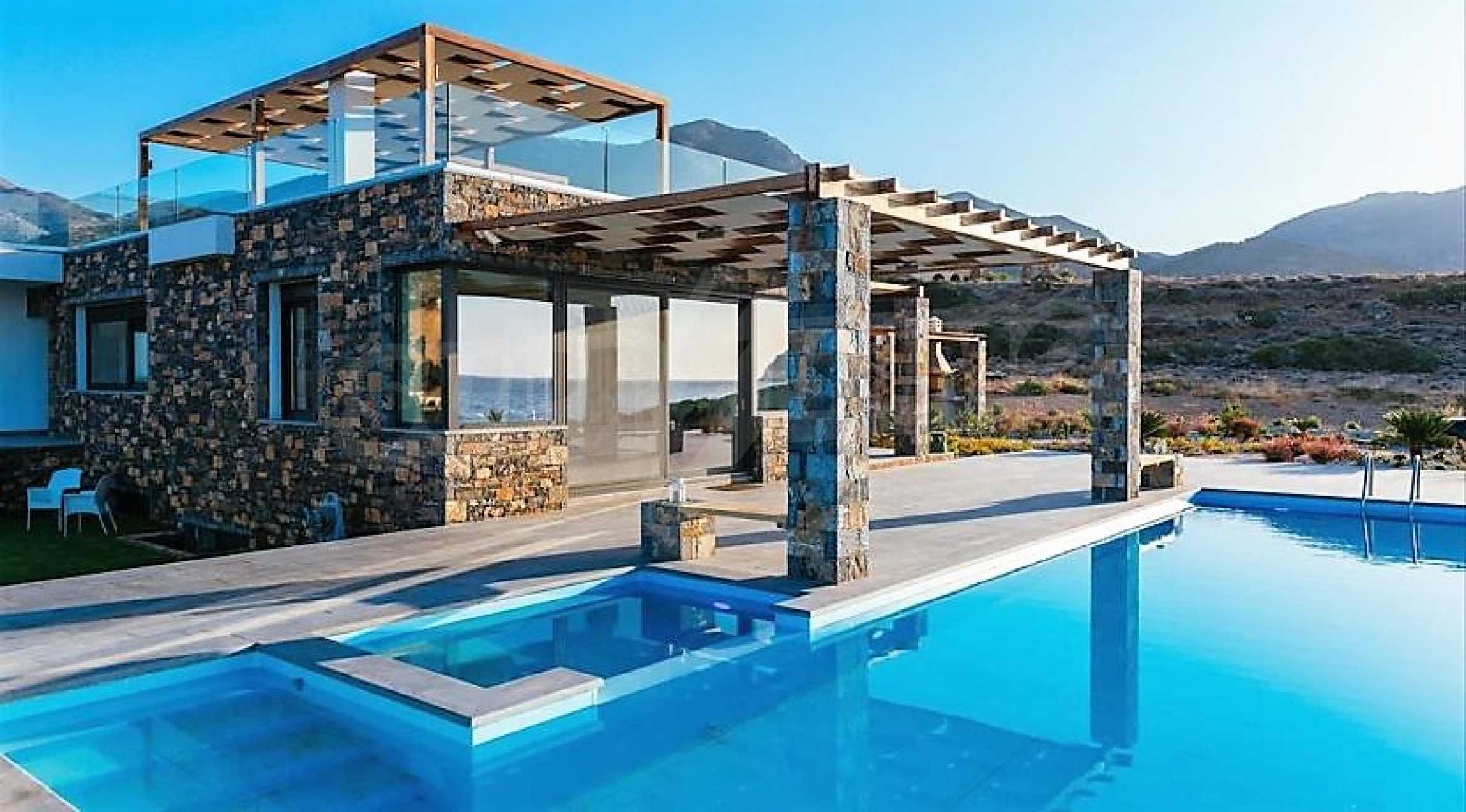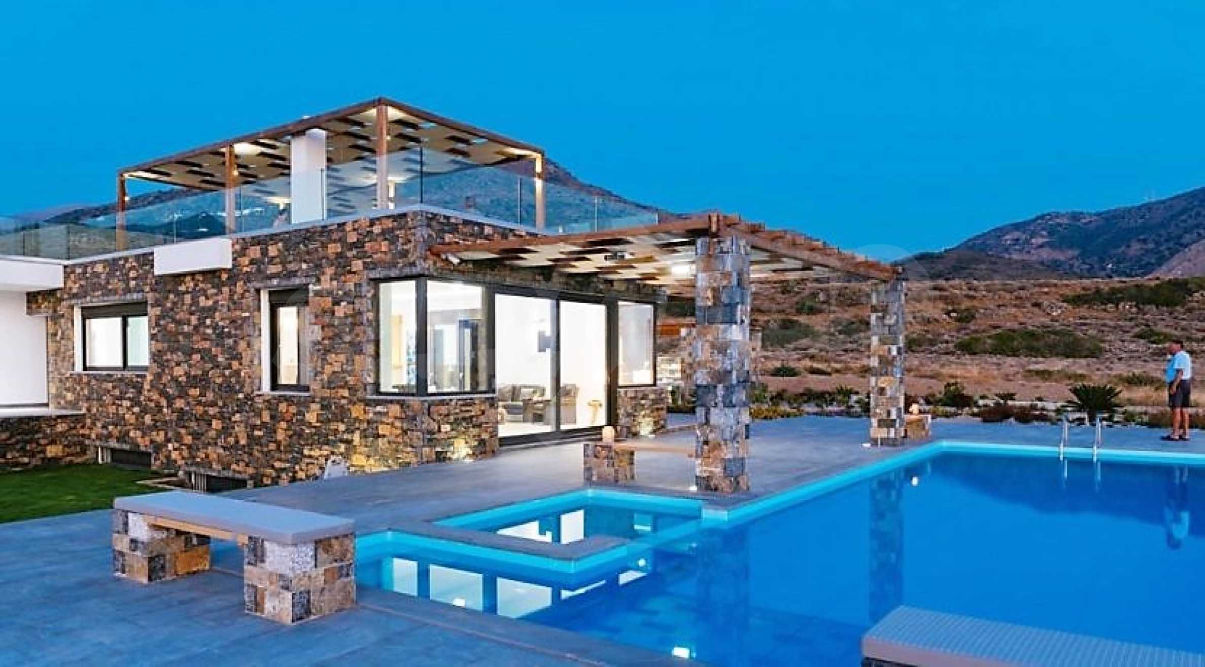 Представяме Ви този изключителен имот в Мохлос, района на Елунда остров Крит, каменна резиденция в островен стил проектирана и построена от швейцарска строителна компания. В построяването и обзавеждането на вилата са използвани висококачествени строителни материали, мебели и електроуреди от Швейцария, Германия, Франция, Италия и САЩ.