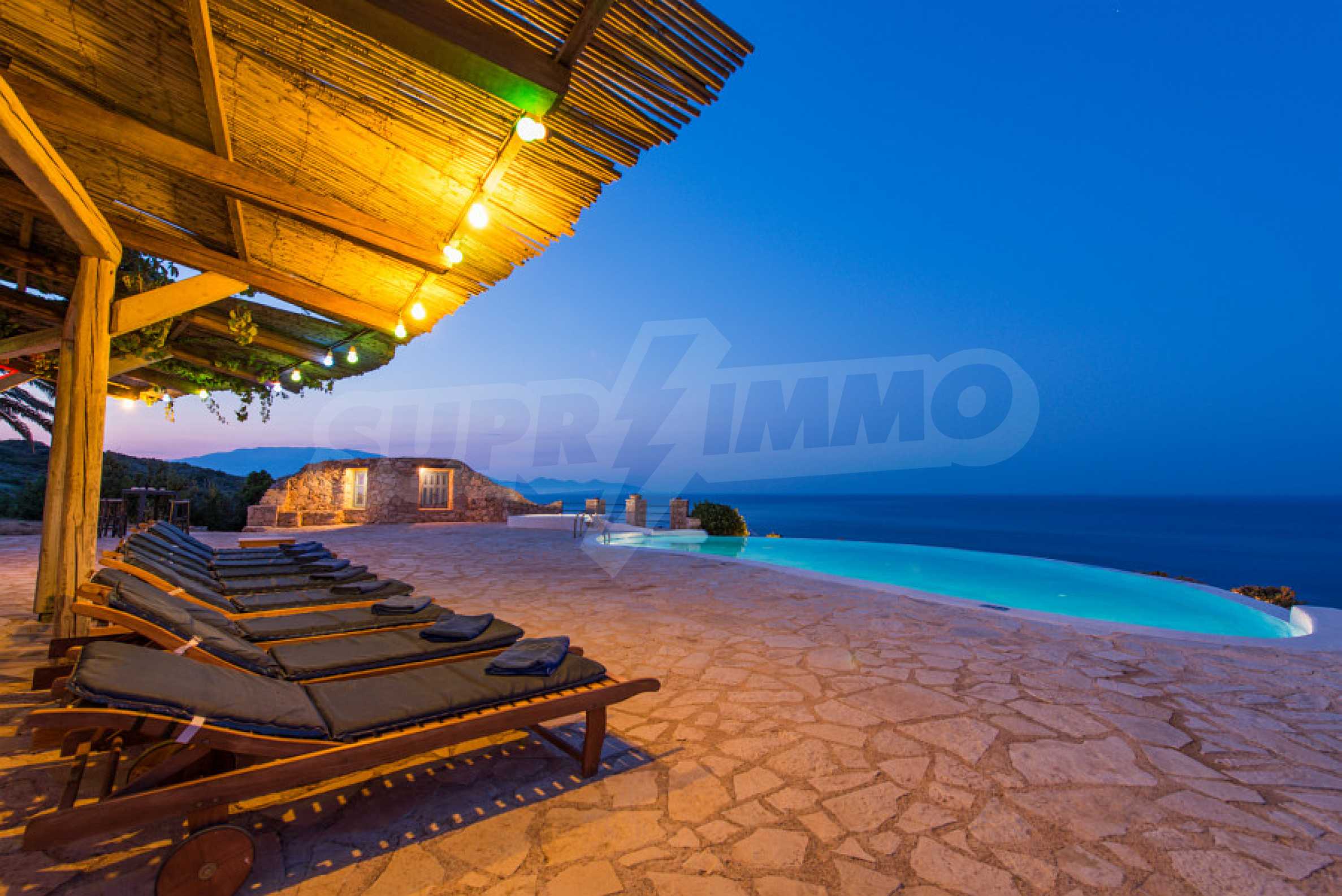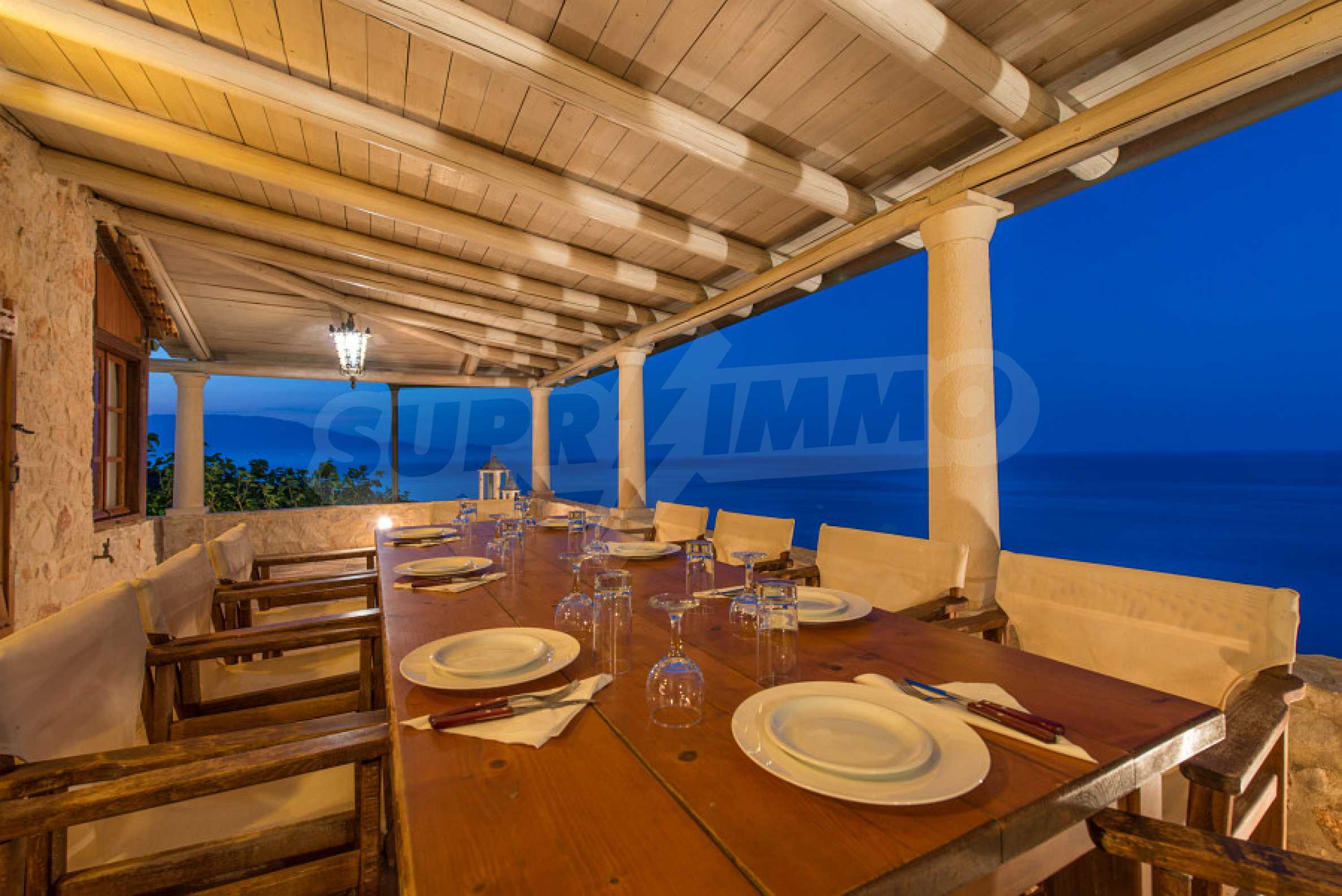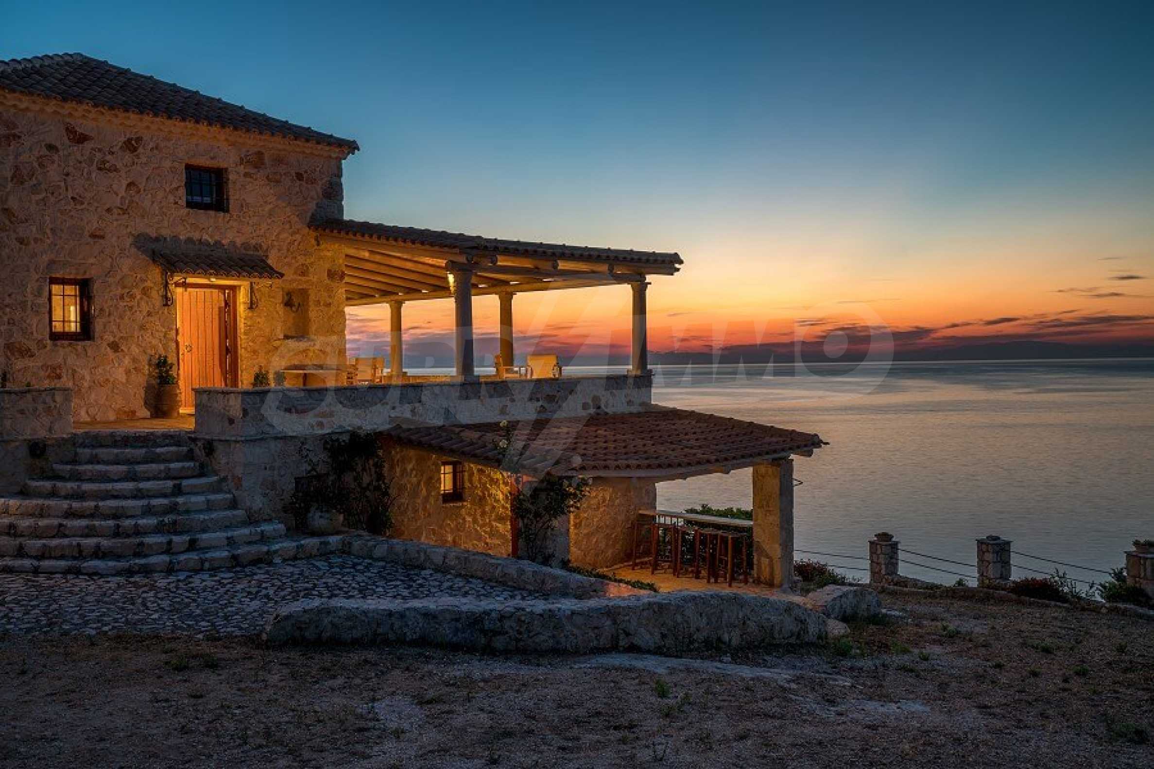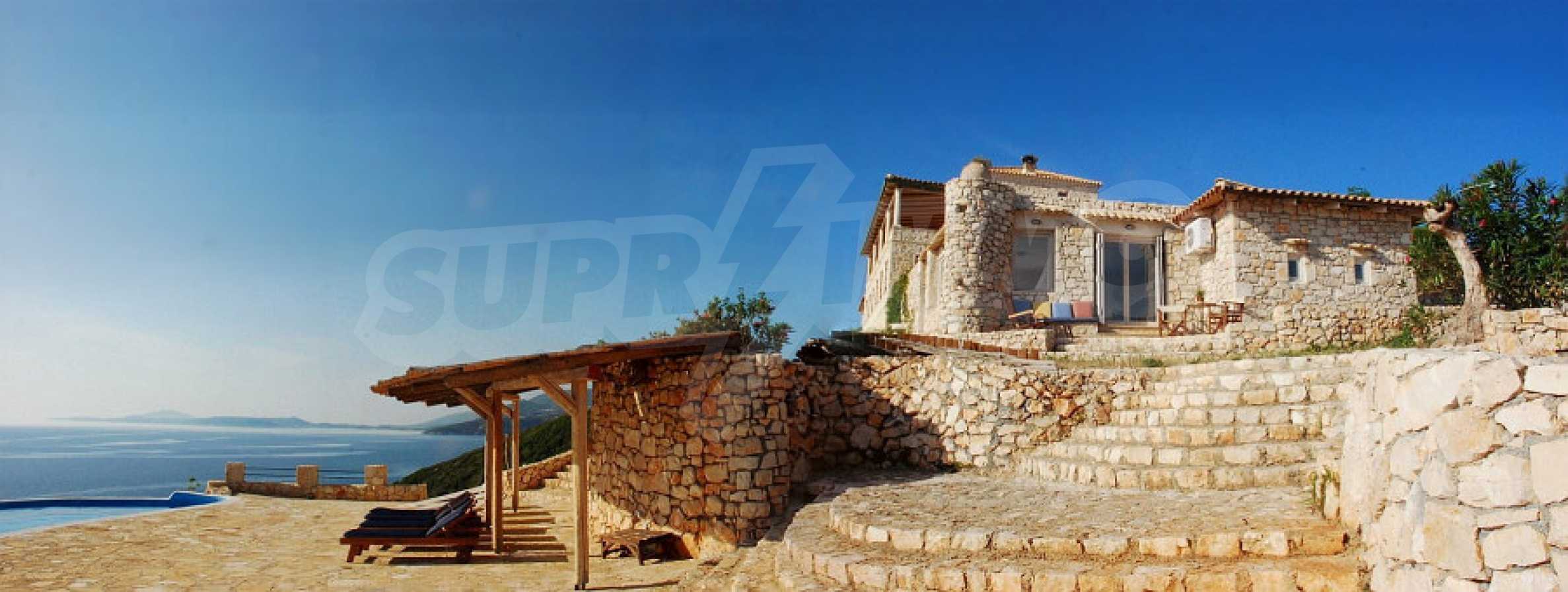 Имотът е разположен в парцел първа линия на морето с площ от 42 000 кв.м. и разполага с директен излаз на плажа, както и с безпрепятствен изглед към тюркоазените води на Йонийско море.