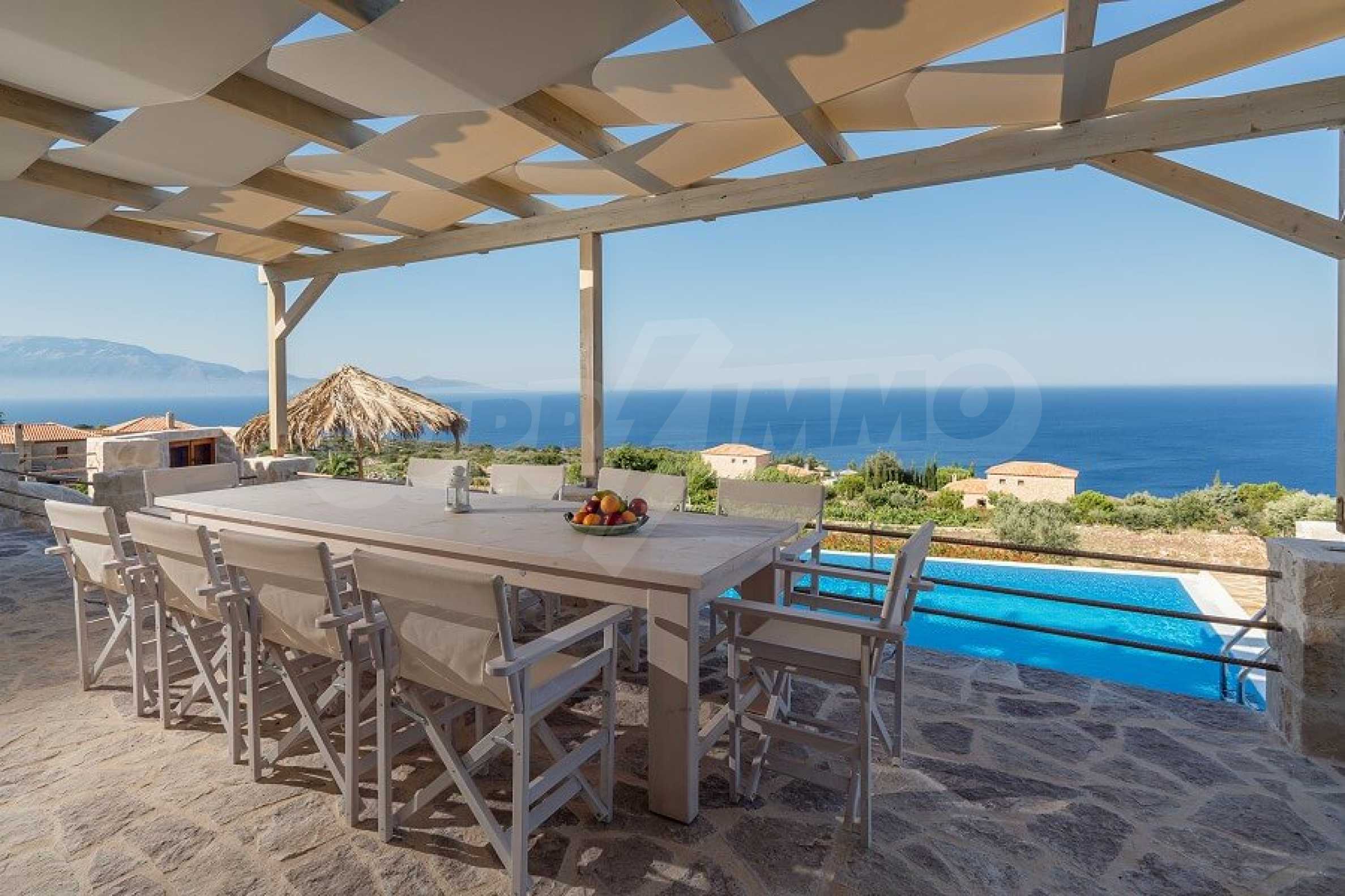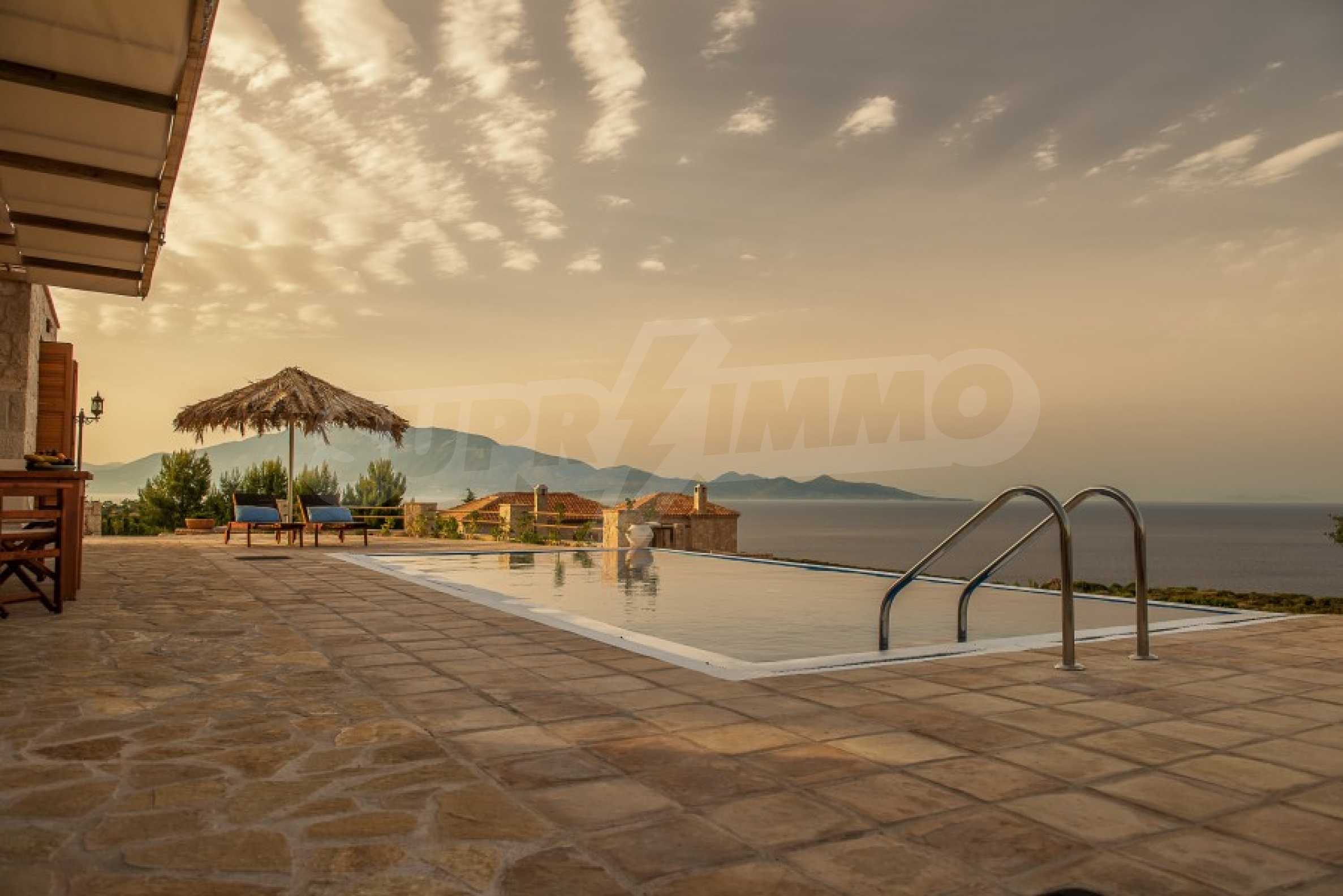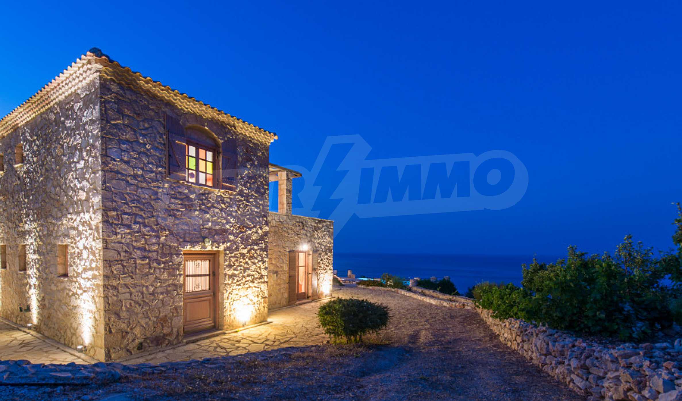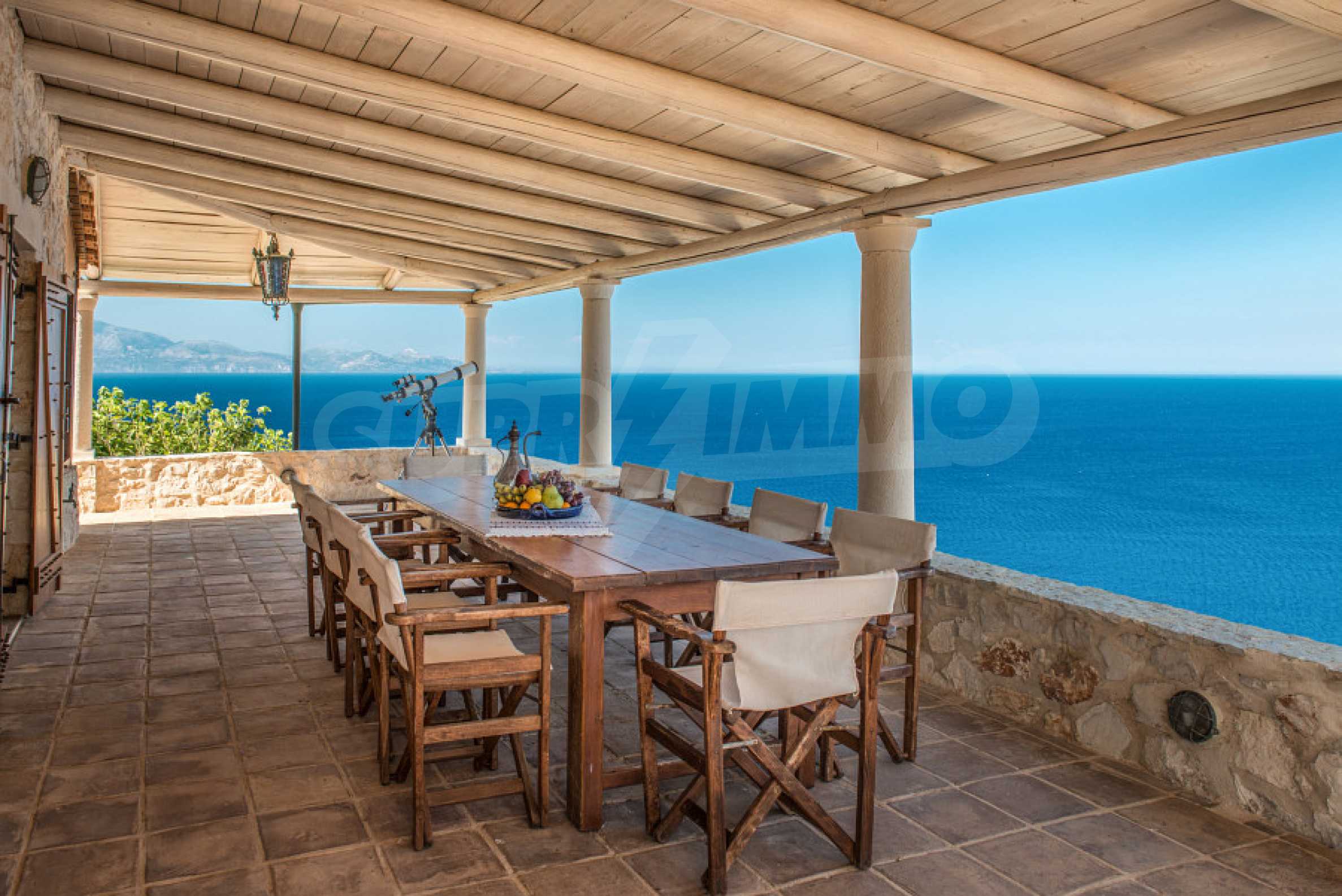 Имотът е разположен в парцел първа линия на морето с площ от 42 000 кв.м. и разполага с директен излаз на плажа, както и с безпрепятствен изглед към тюркоазените води на Йонийско море.