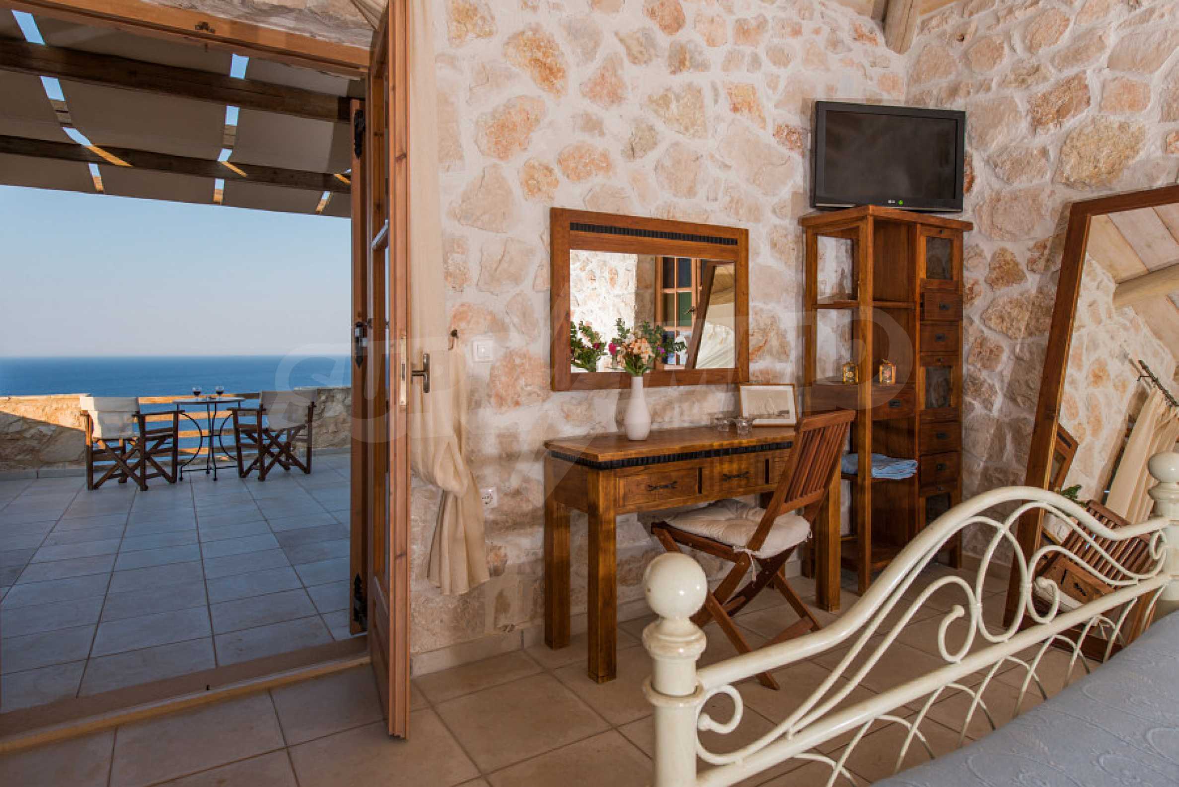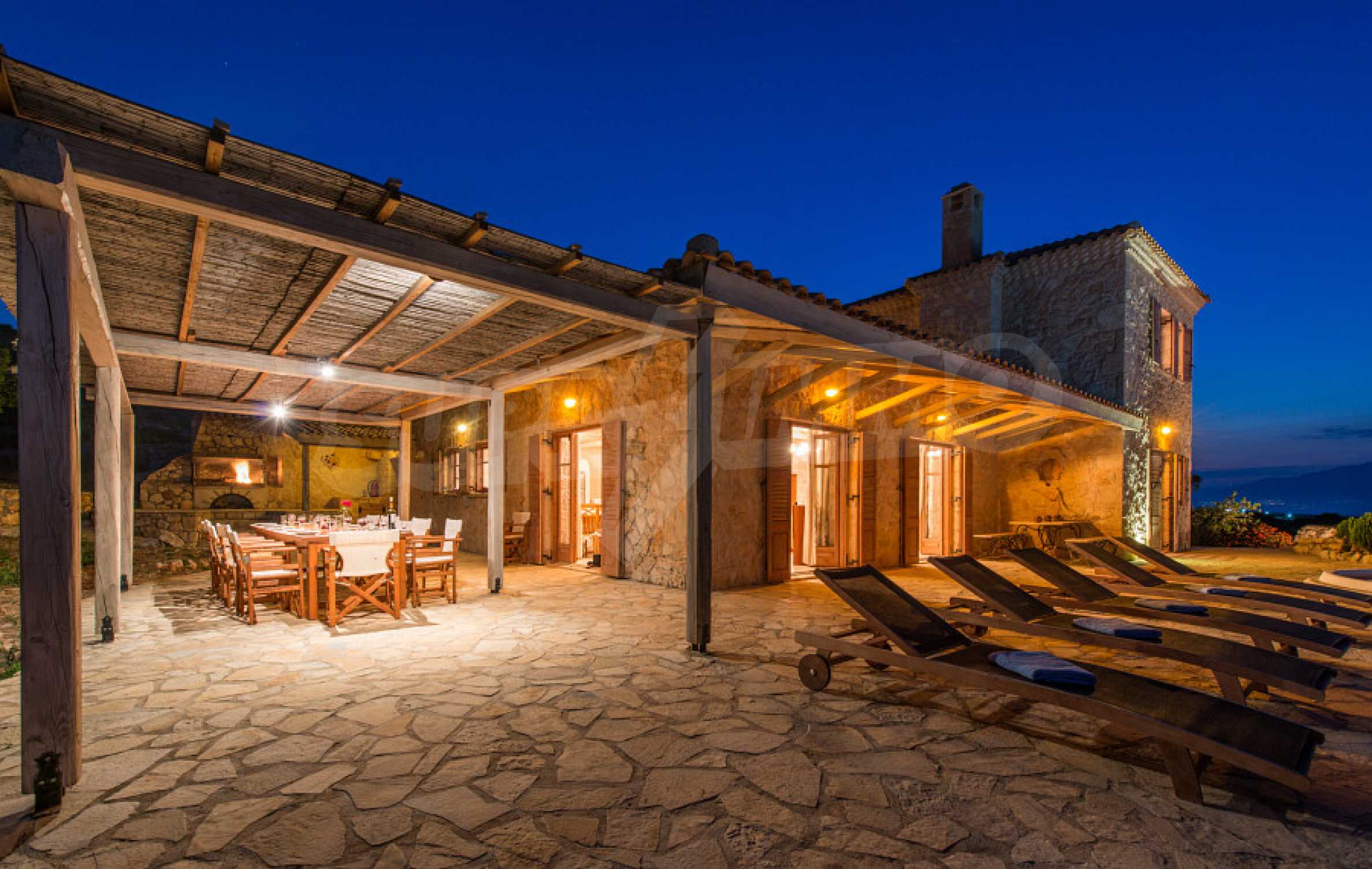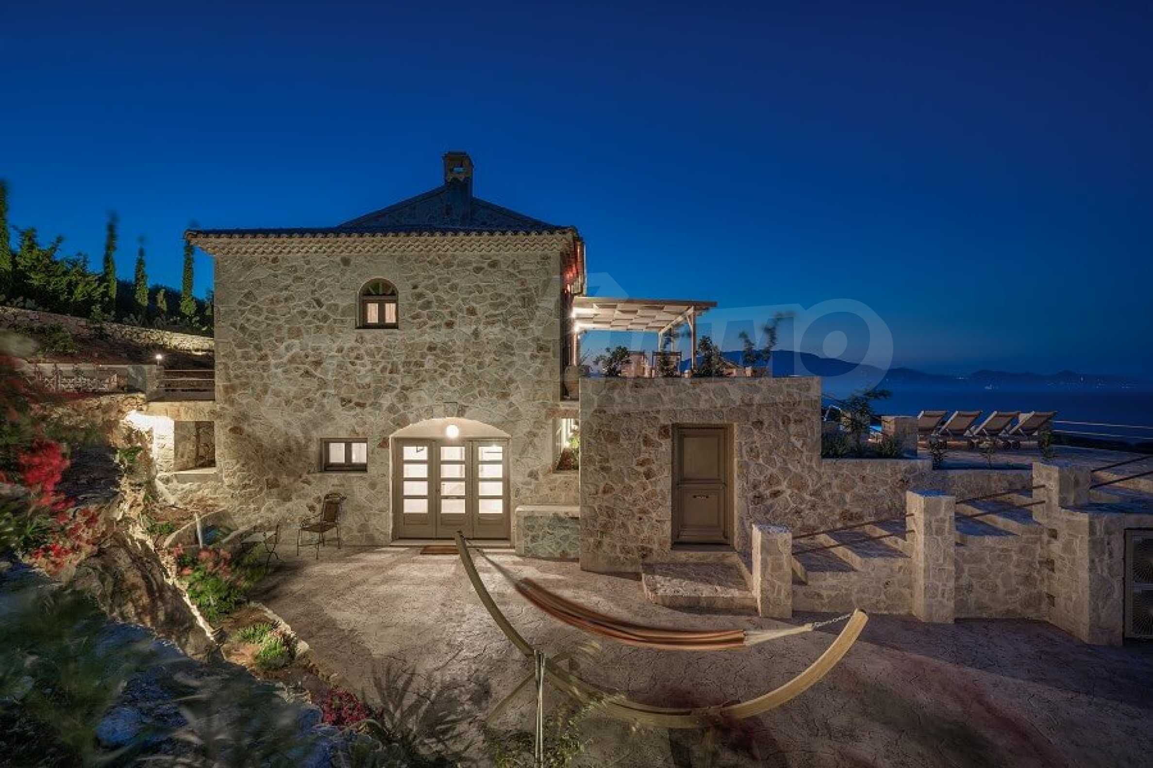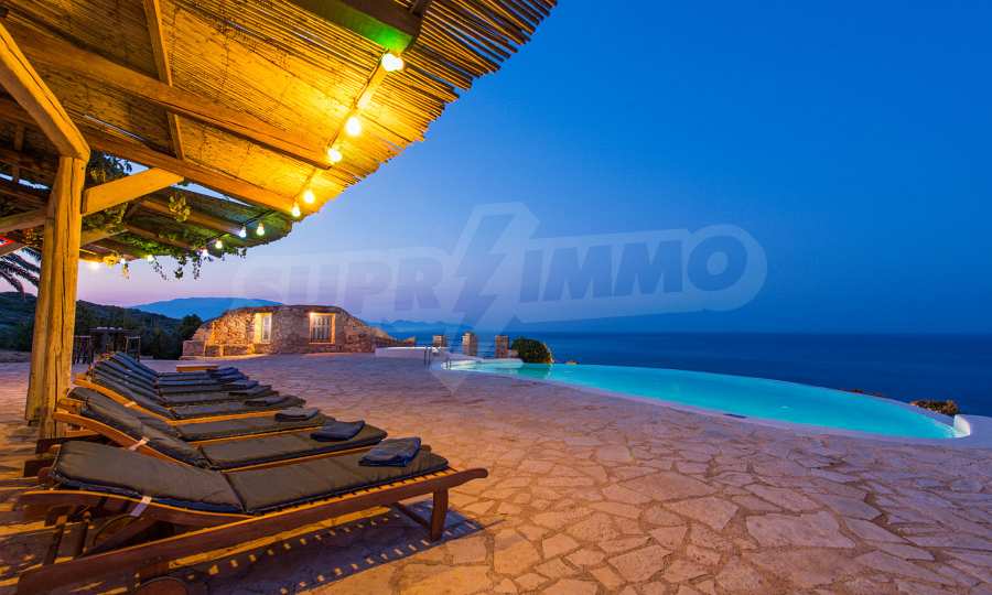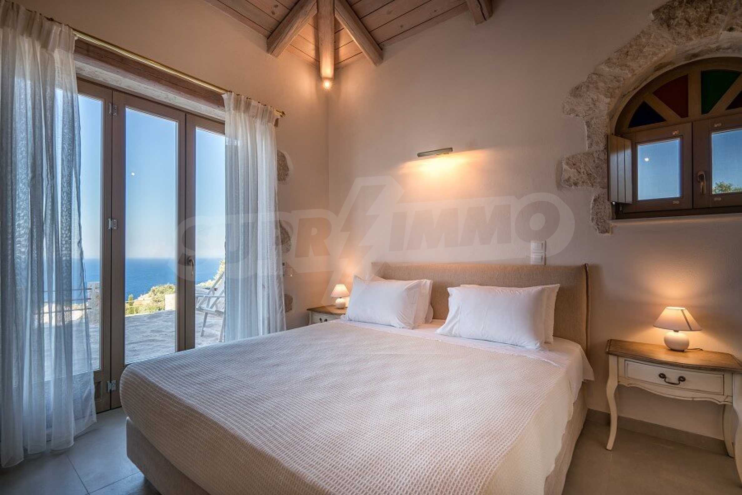 Имотът е разположен в парцел първа линия на морето с площ от 42 000 кв.м. и разполага с директен излаз на плажа, както и с безпрепятствен изглед към тюркоазените води на Йонийско море.