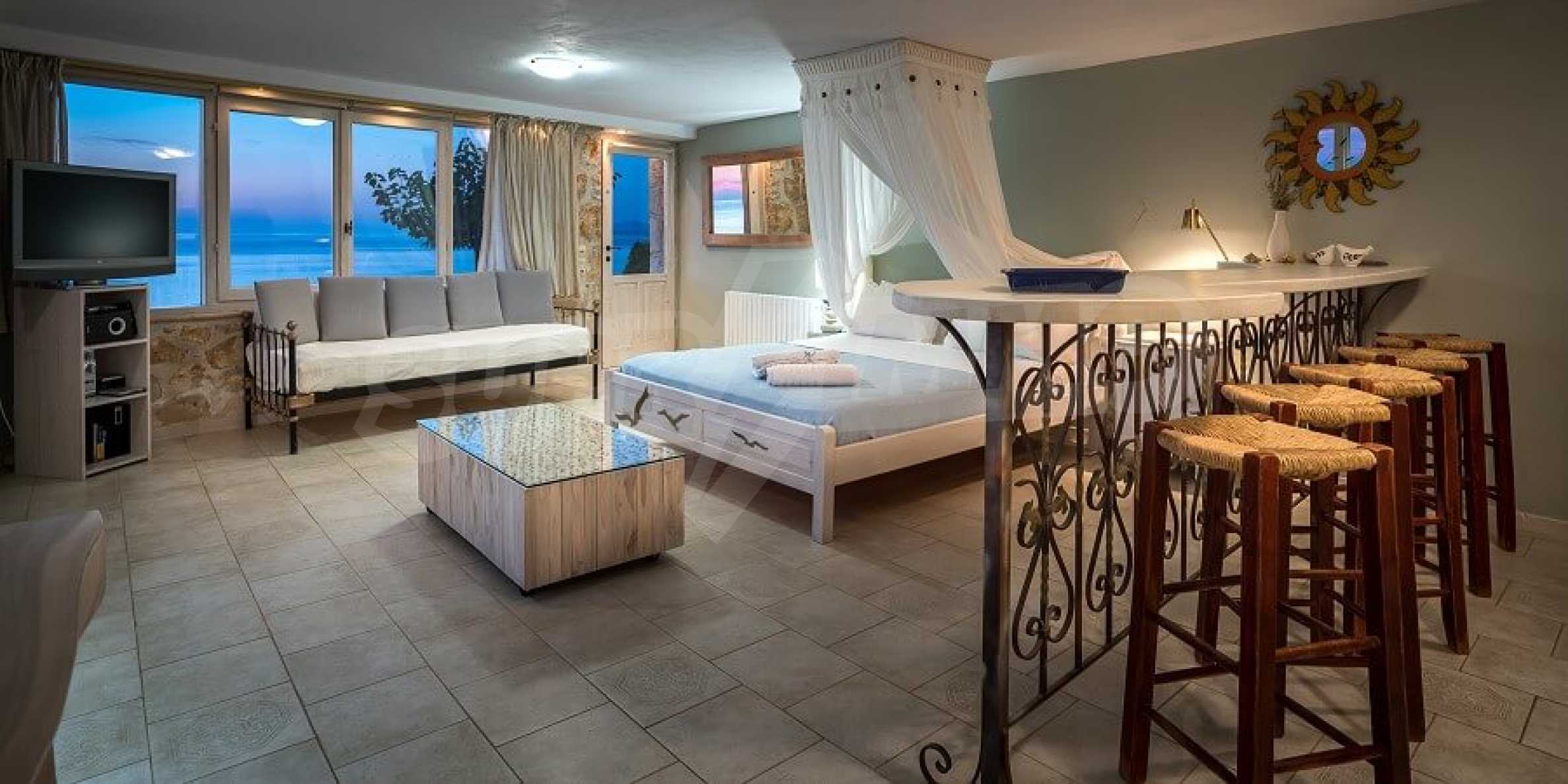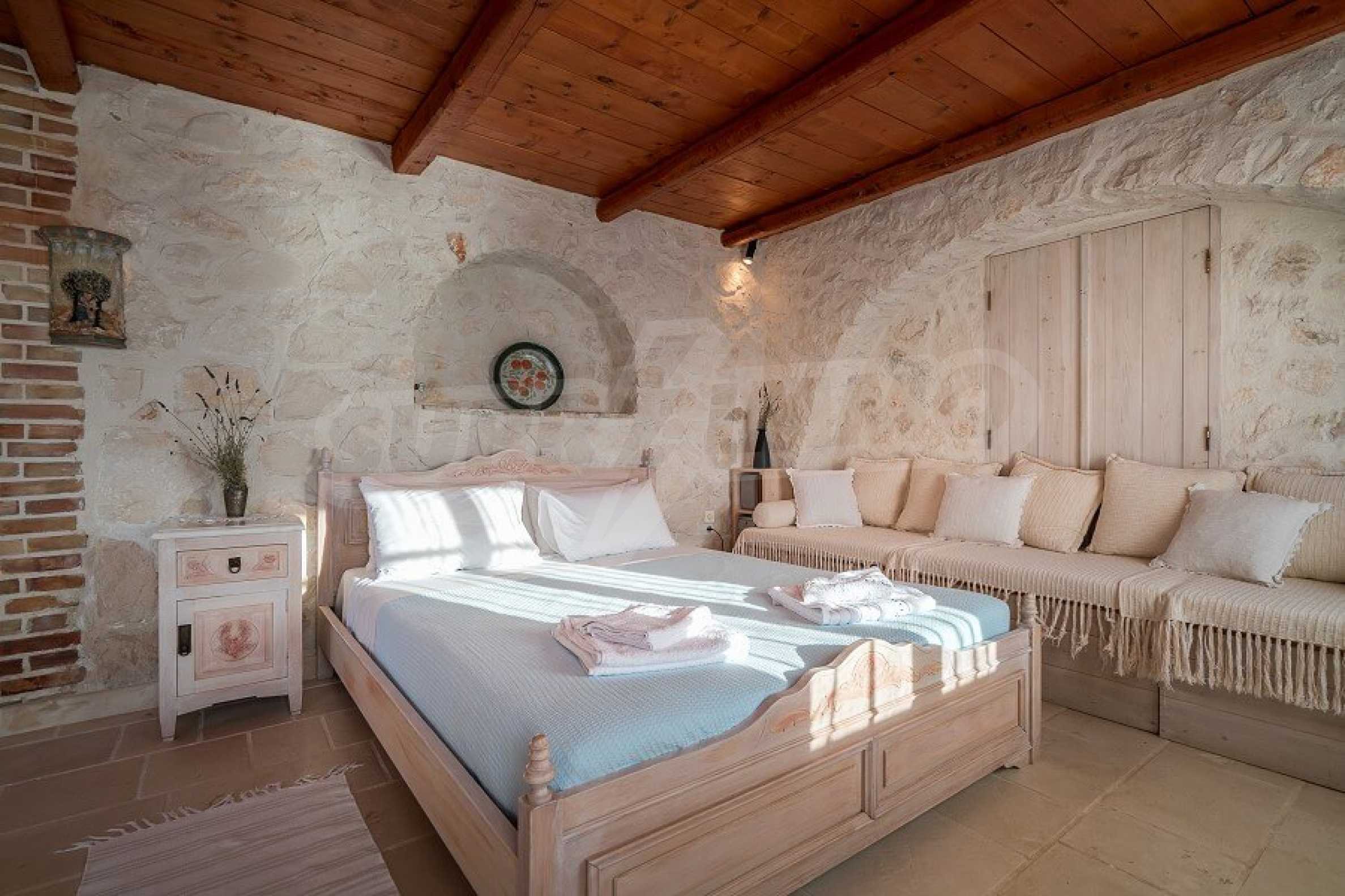 Със своята уникална локация, впечатляващ средиземноморски архитектурен стил, безкомпромисно и умело съчетан с прецизно подбрано рустиково обзавеждане, този комплекс може да бъде определен единствено и само като шедьовър на архитектурното изкуство.