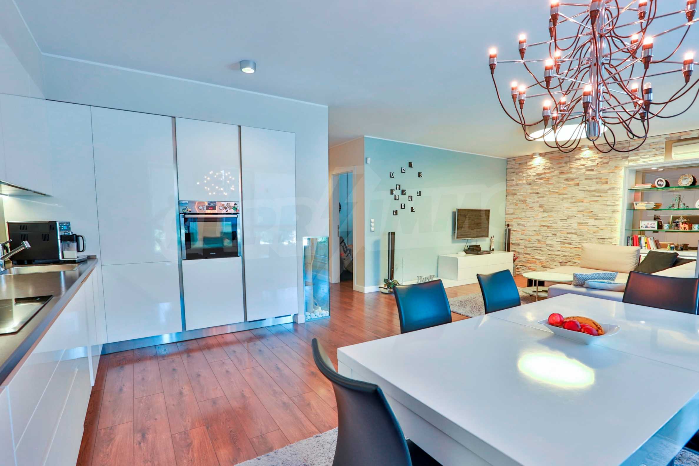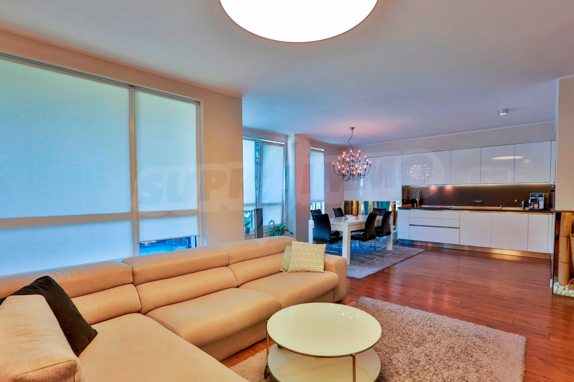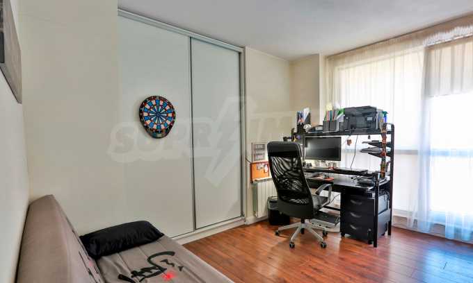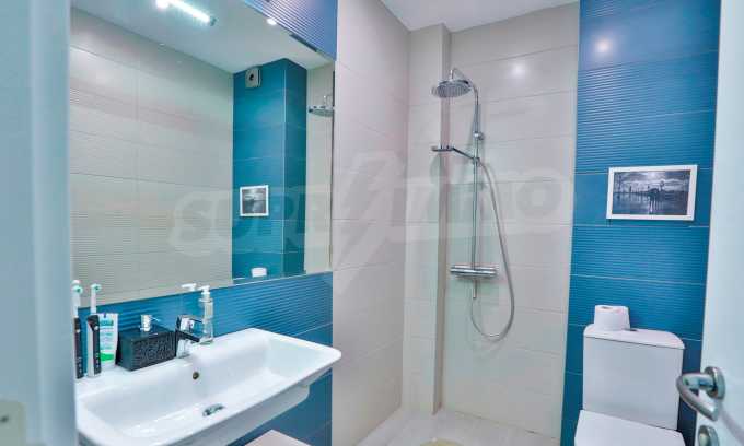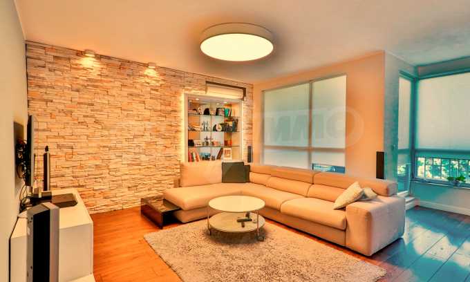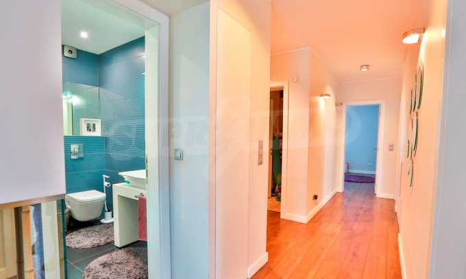 Жилището заема трети жилищен етаж в сграда с асансьор и луксозни общи части на общо шест етажа. Разполага с три изложения – юг, север, запад. Предлага се със следните довършителни работи: