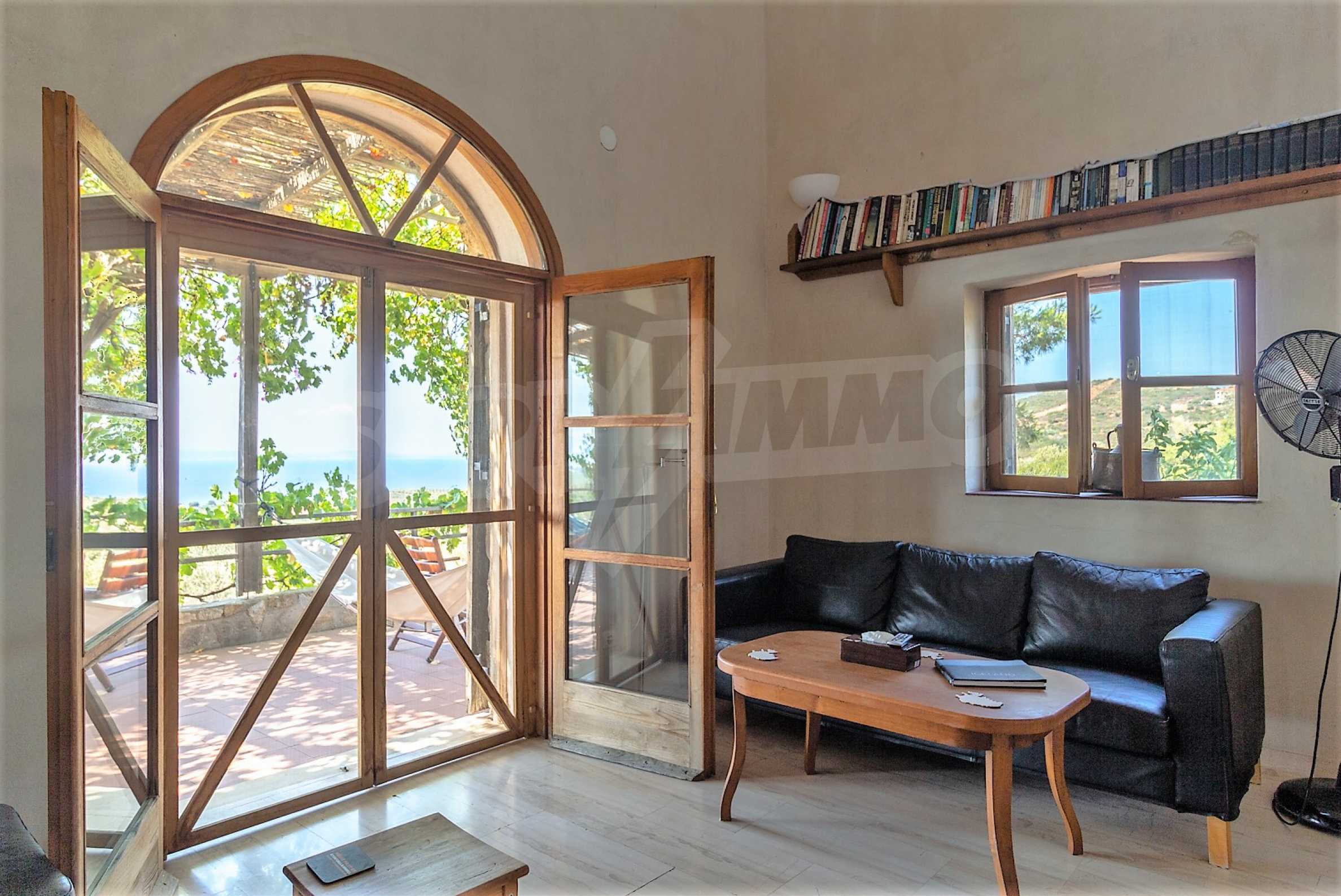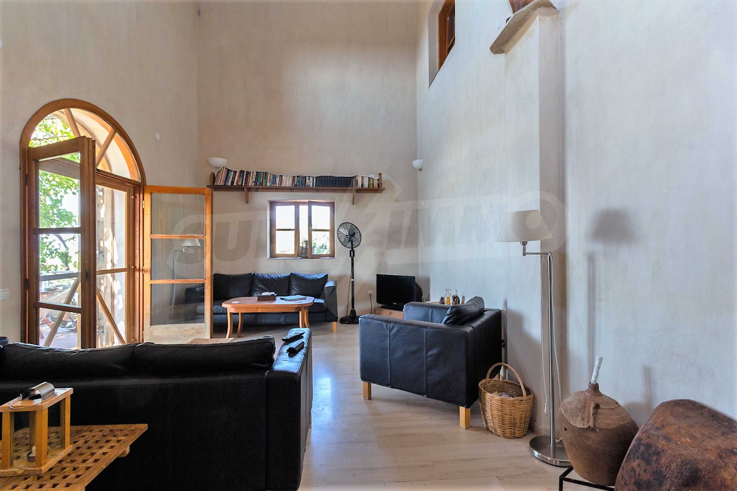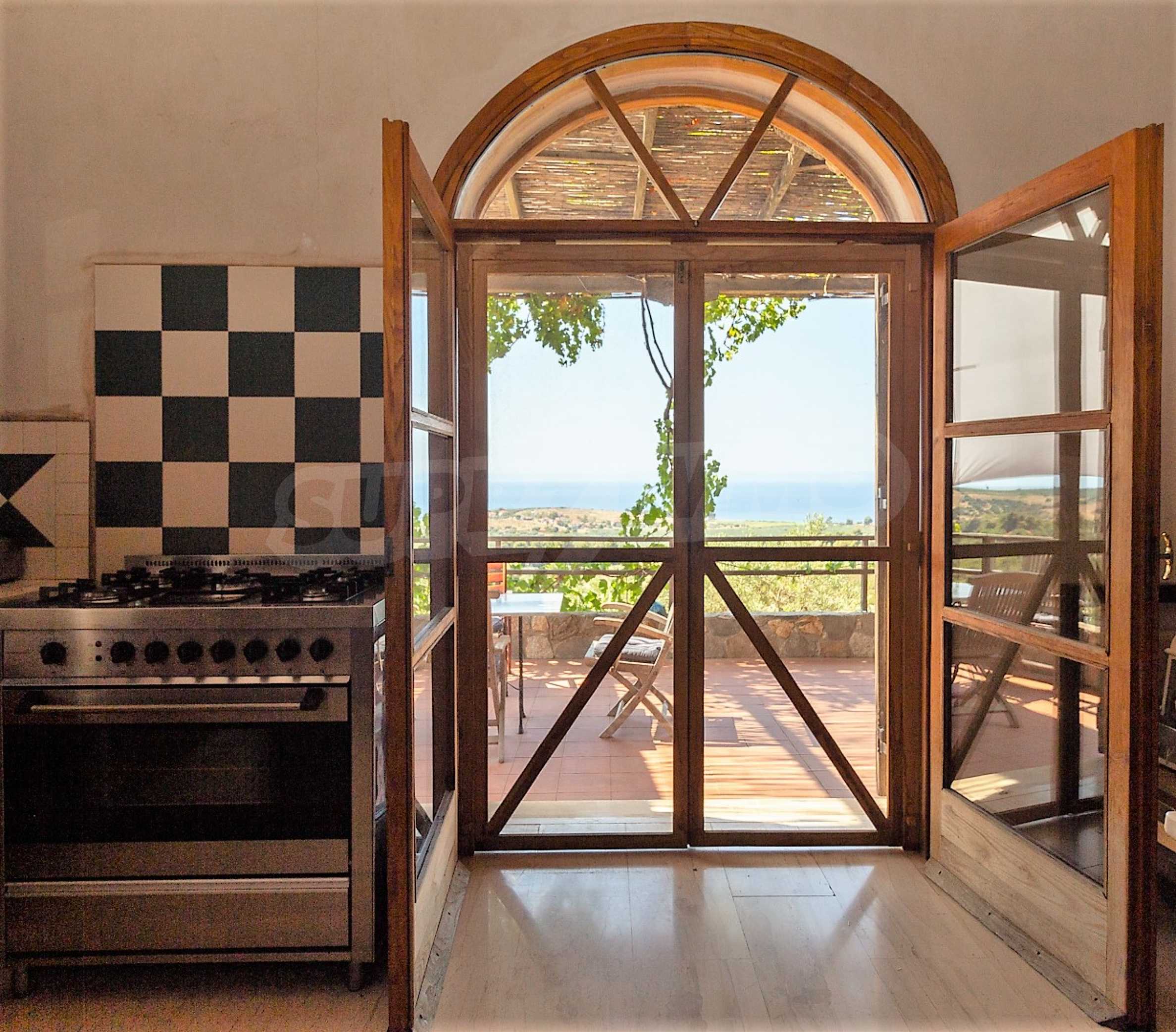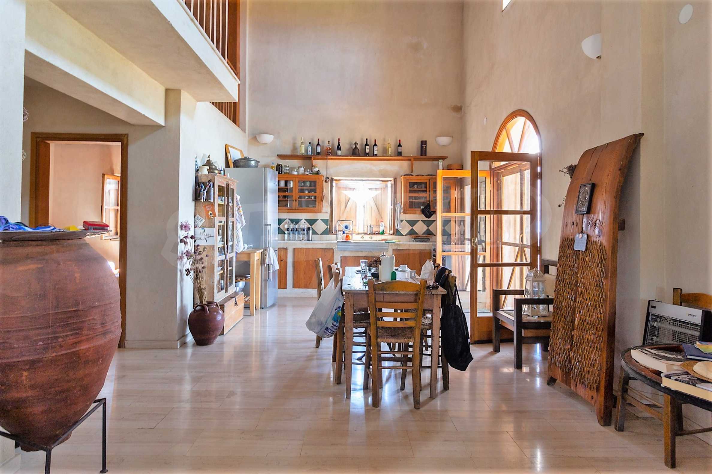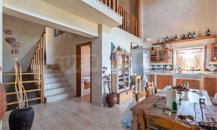 Представяме Ви тази неповторима резиденция в тоскански стил Ситония, Халкидики. Вилата е построена изцяло с естествени материали, камък от Партенонас, кестеново дърво от Света гора-Атон, стените умишлено са измазани с хоросан за да се подсили ефекта за тосканска автентичност, освен това, тези естествени и висококачествени материали действат като естествена излоация, която подържа постоянна температъра във вилата зима и лято. Имота включва и 14 декара земя, 4 от които са маслинова гора.