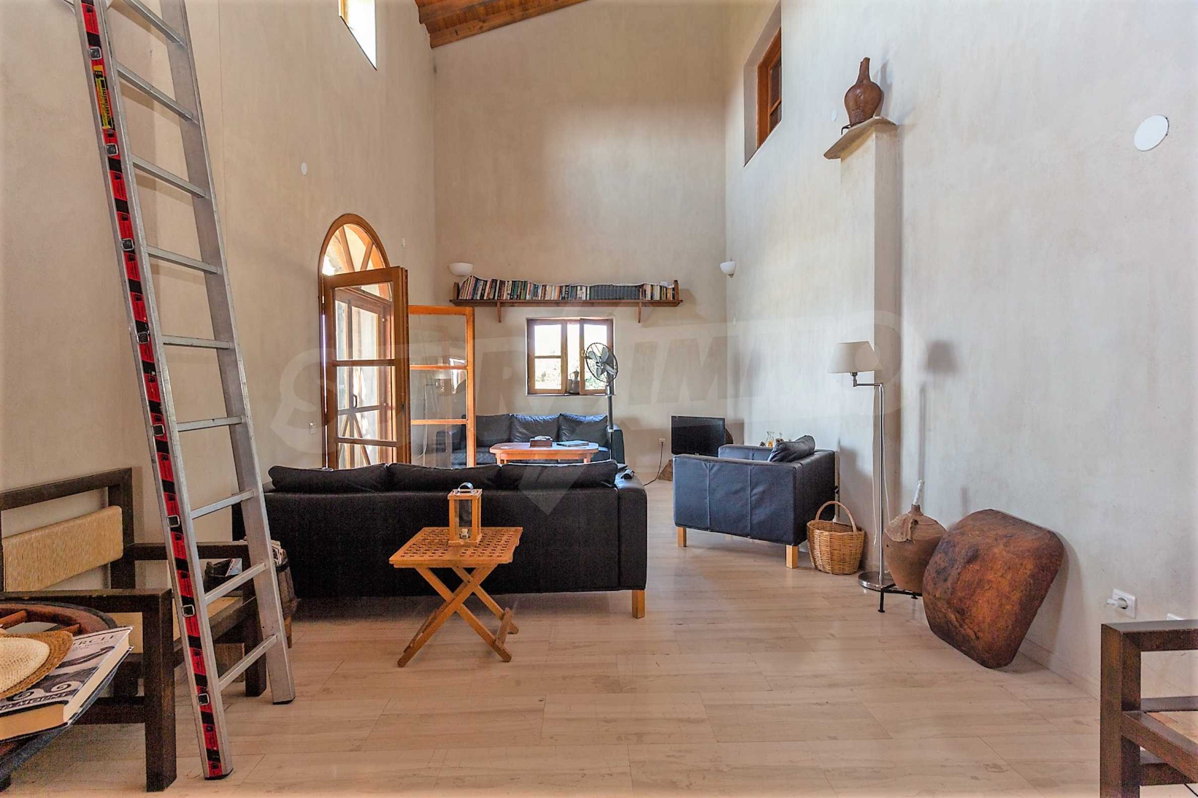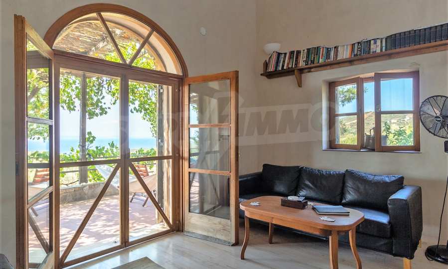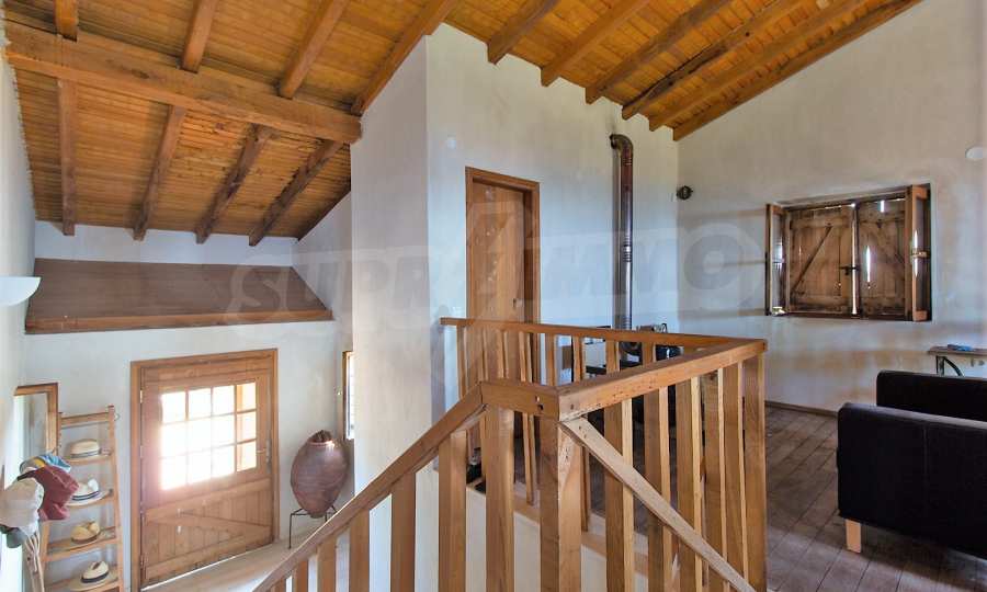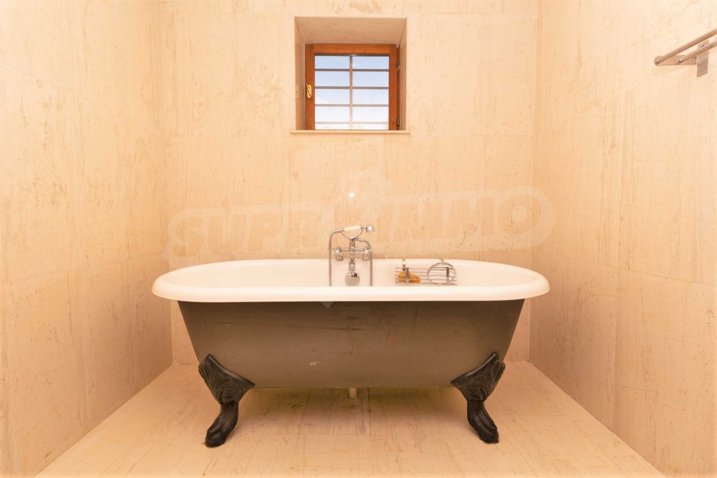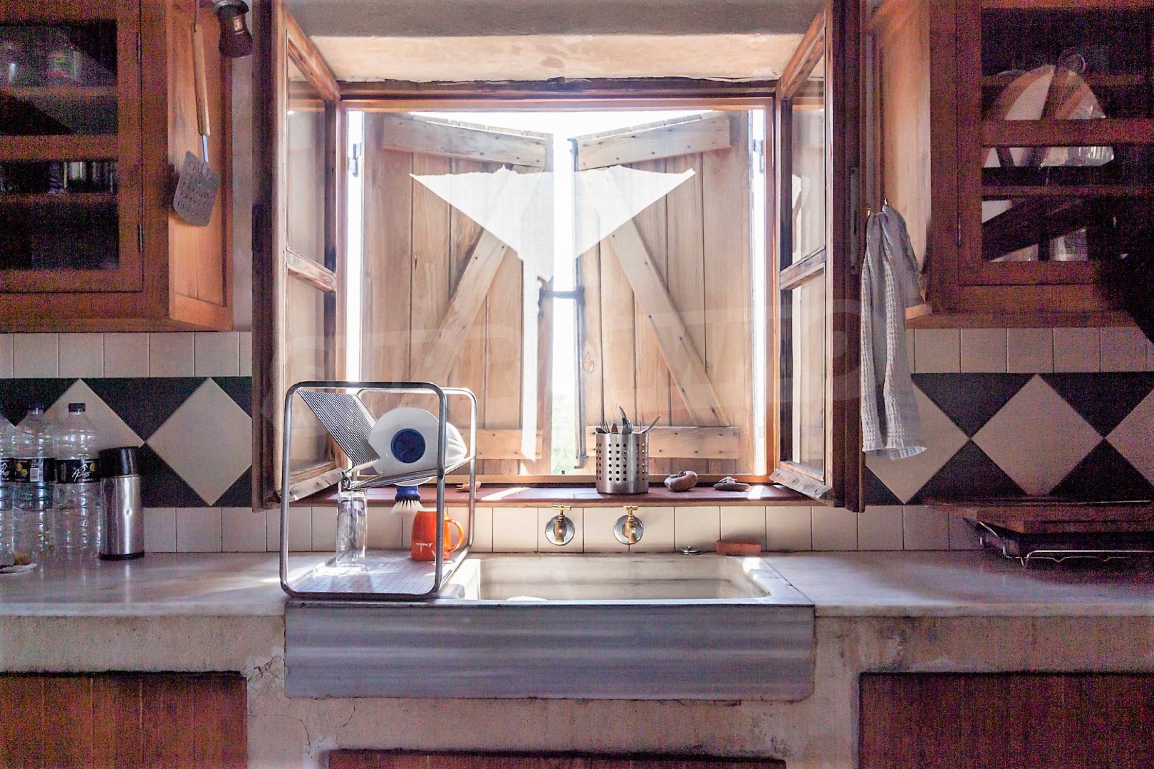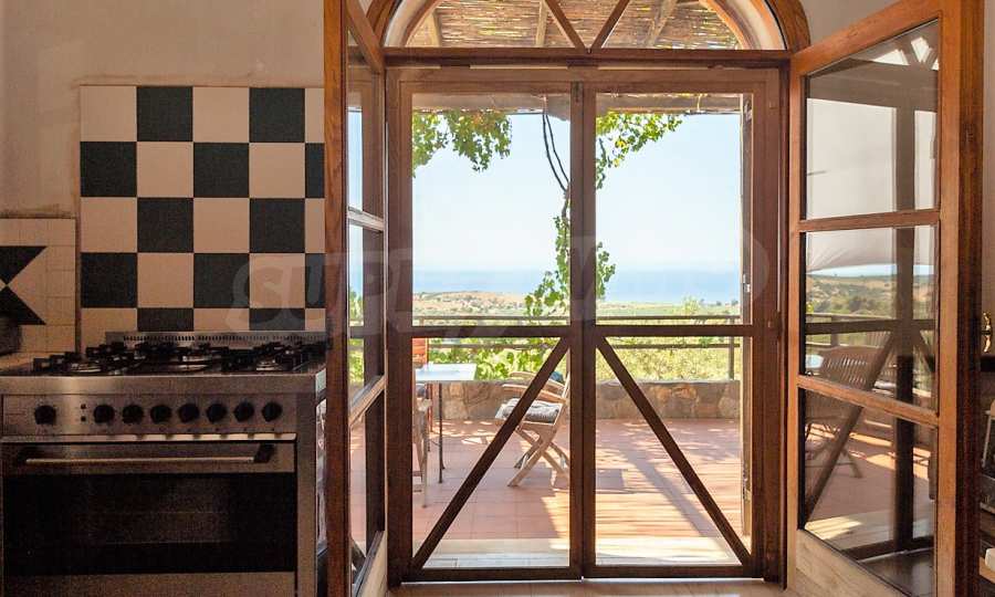 Представяме Ви тази неповторима резиденция в тоскански стил Ситония, Халкидики. Вилата е построена изцяло с естествени материали, камък от Партенонас, кестеново дърво от Света гора-Атон, стените умишлено са измазани с хоросан за да се подсили ефекта за тосканска автентичност, освен това, тези естествени и висококачествени материали действат като естествена излоация, която подържа постоянна температъра във вилата зима и лято. Имота включва и 14 декара земя, 4 от които са маслинова гора.