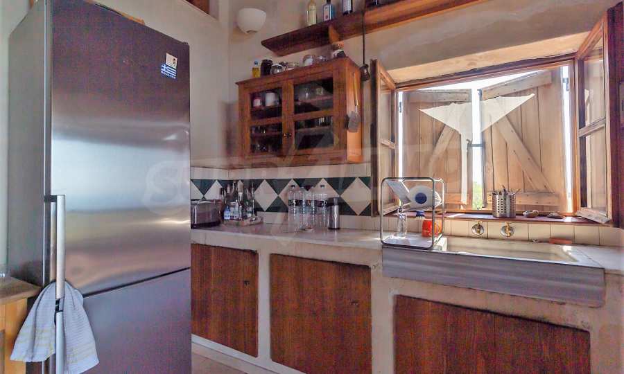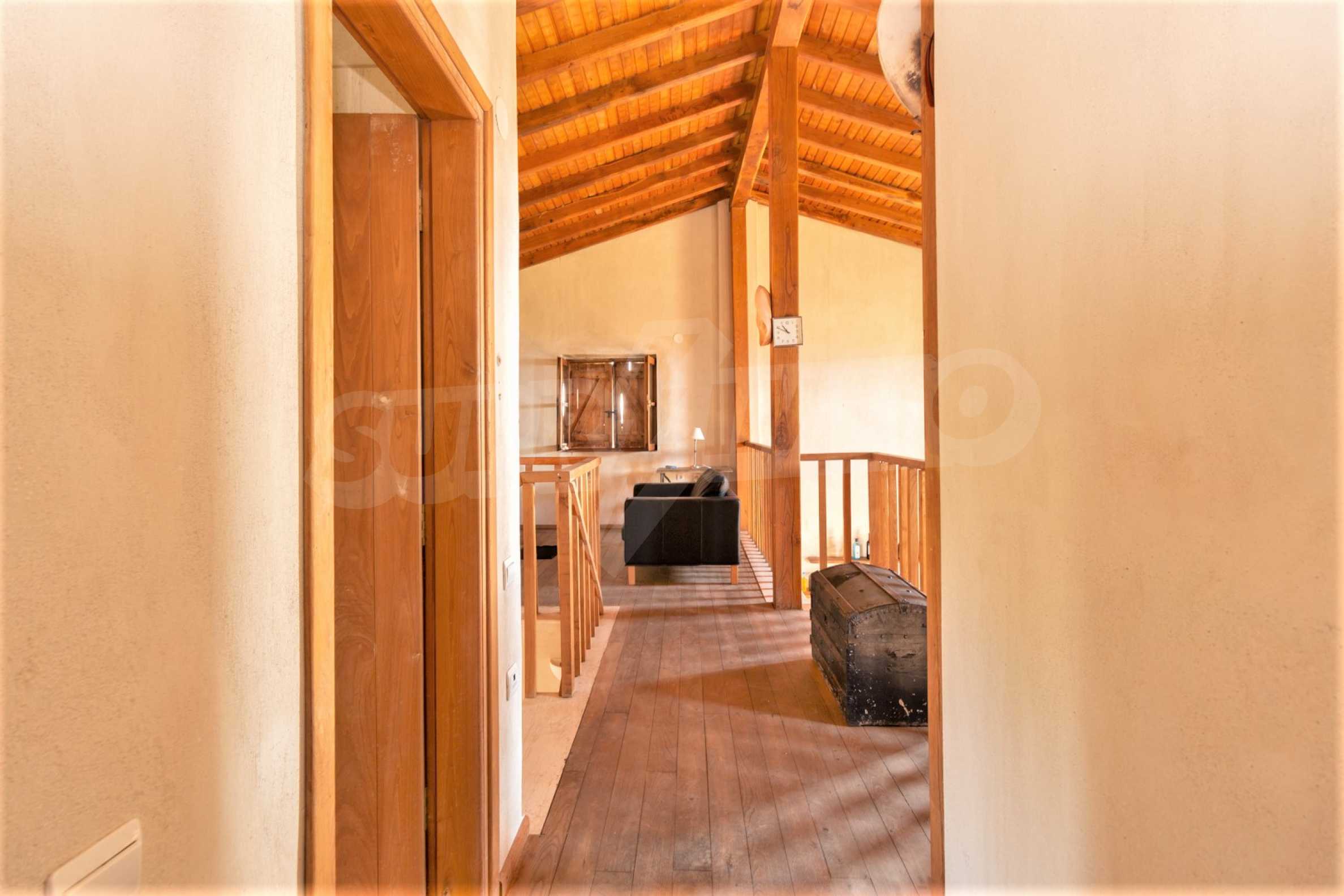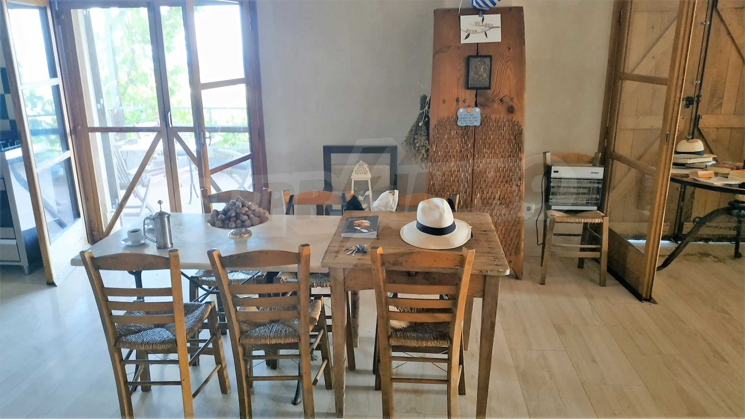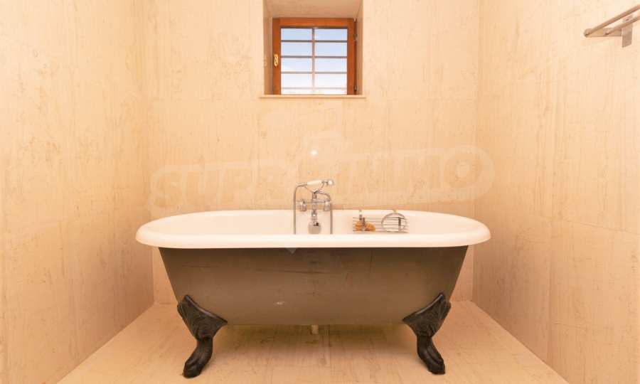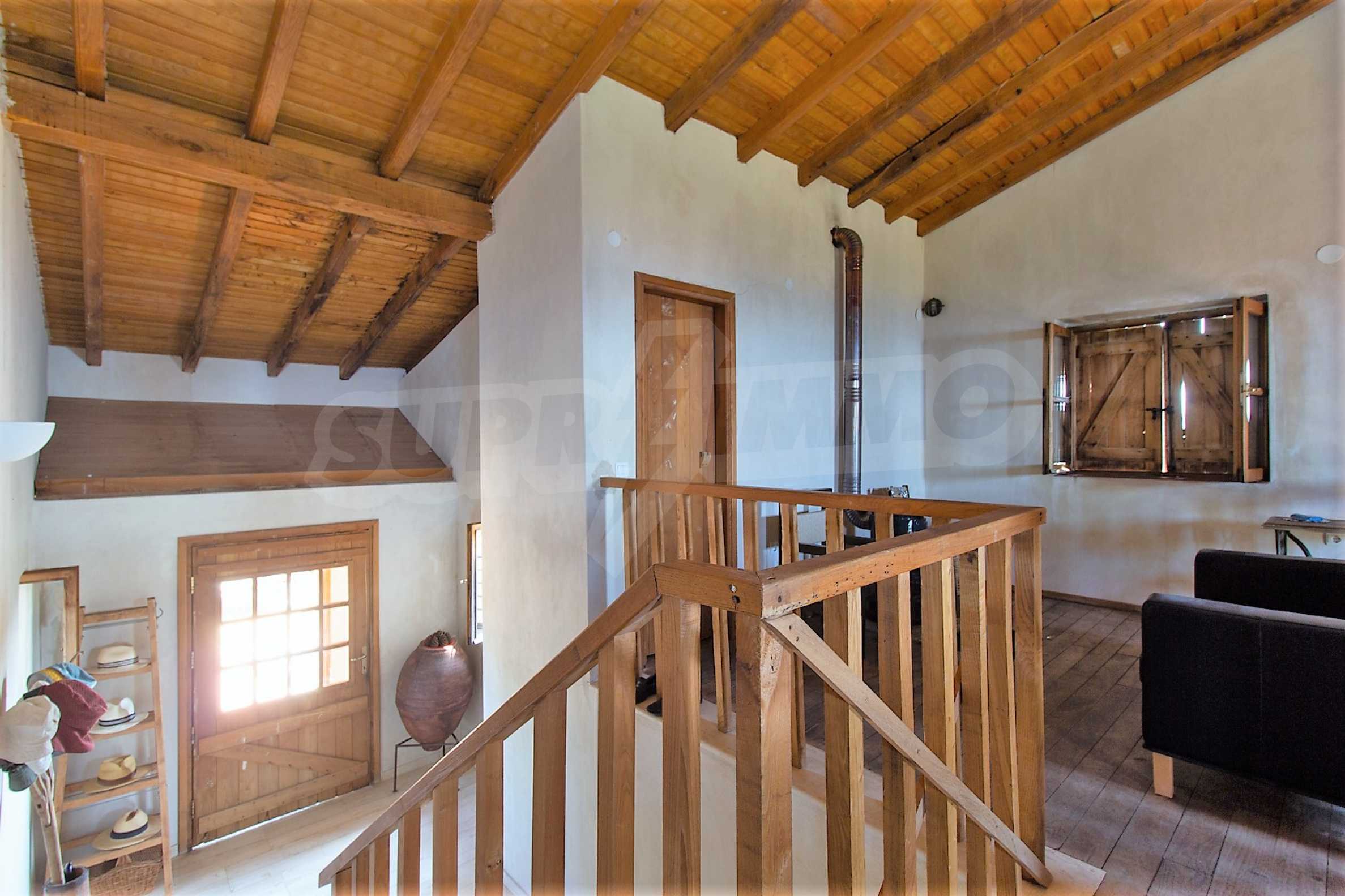 Представяме Ви тази неповторима резиденция в тоскански стил Ситония, Халкидики. Вилата е построена изцяло с естествени материали, камък от Партенонас, кестеново дърво от Света гора-Атон, стените умишлено са измазани с хоросан за да се подсили ефекта за тосканска автентичност, освен това, тези естествени и висококачествени материали действат като естествена излоация, която подържа постоянна температъра във вилата зима и лято. Имота включва и 14 декара земя, 4 от които са маслинова гора.