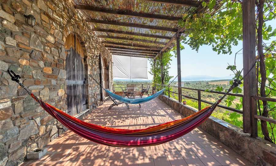 Представяме Ви тази неповторима резиденция в тоскански стил Ситония, Халкидики. Вилата е построена изцяло с естествени материали, камък от Партенонас, кестеново дърво от Света гора-Атон, стените умишлено са измазани с хоросан за да се подсили ефекта за тосканска автентичност, освен това, тези естествени и висококачествени материали действат като естествена излоация, която подържа постоянна температъра във вилата зима и лято. Имота включва и 14 декара земя, 4 от които са маслинова гора.