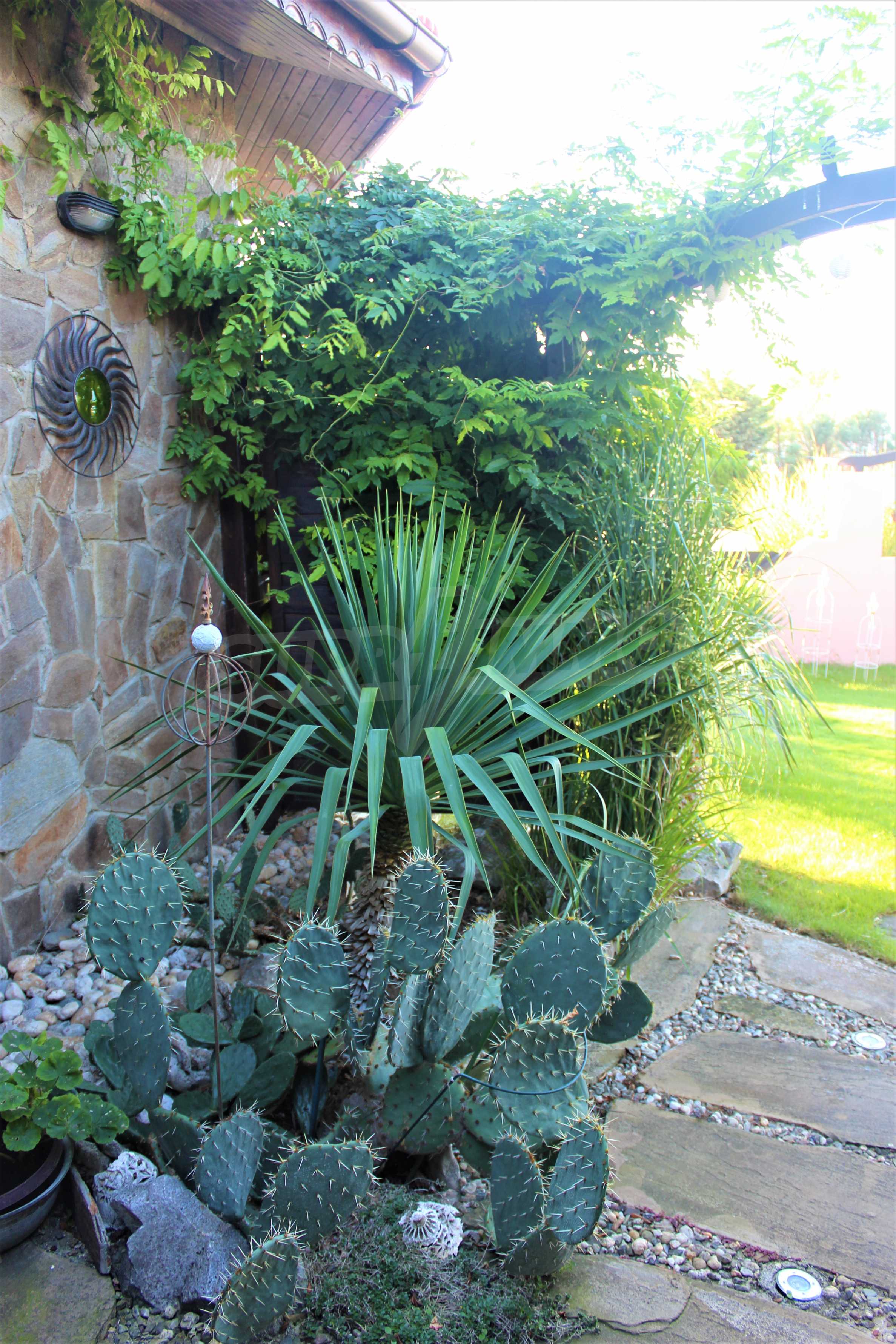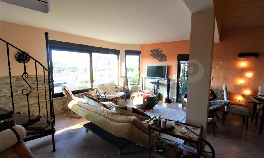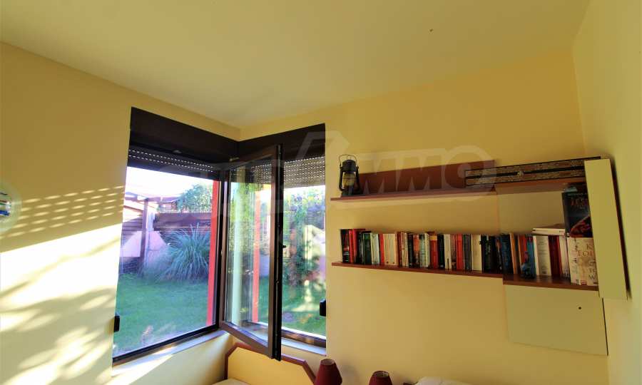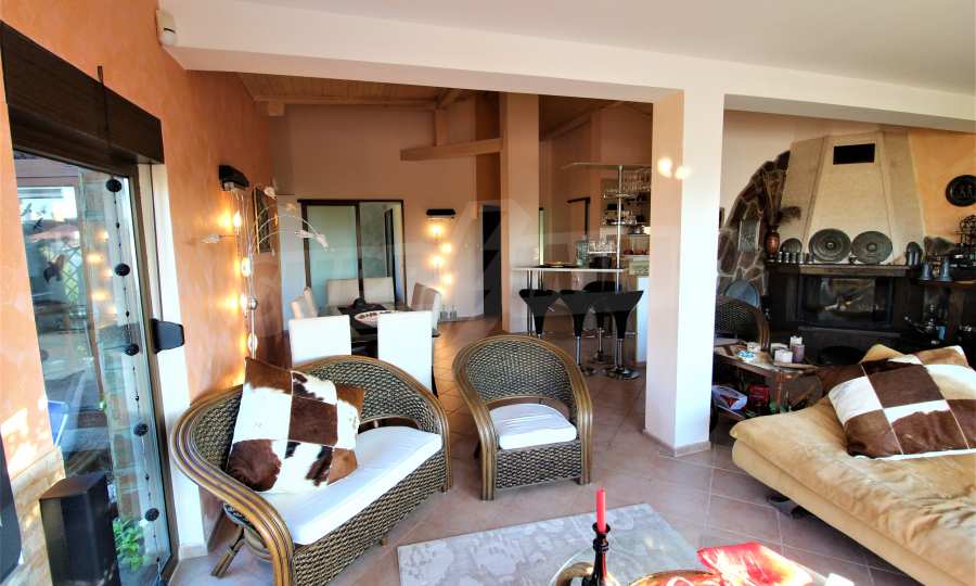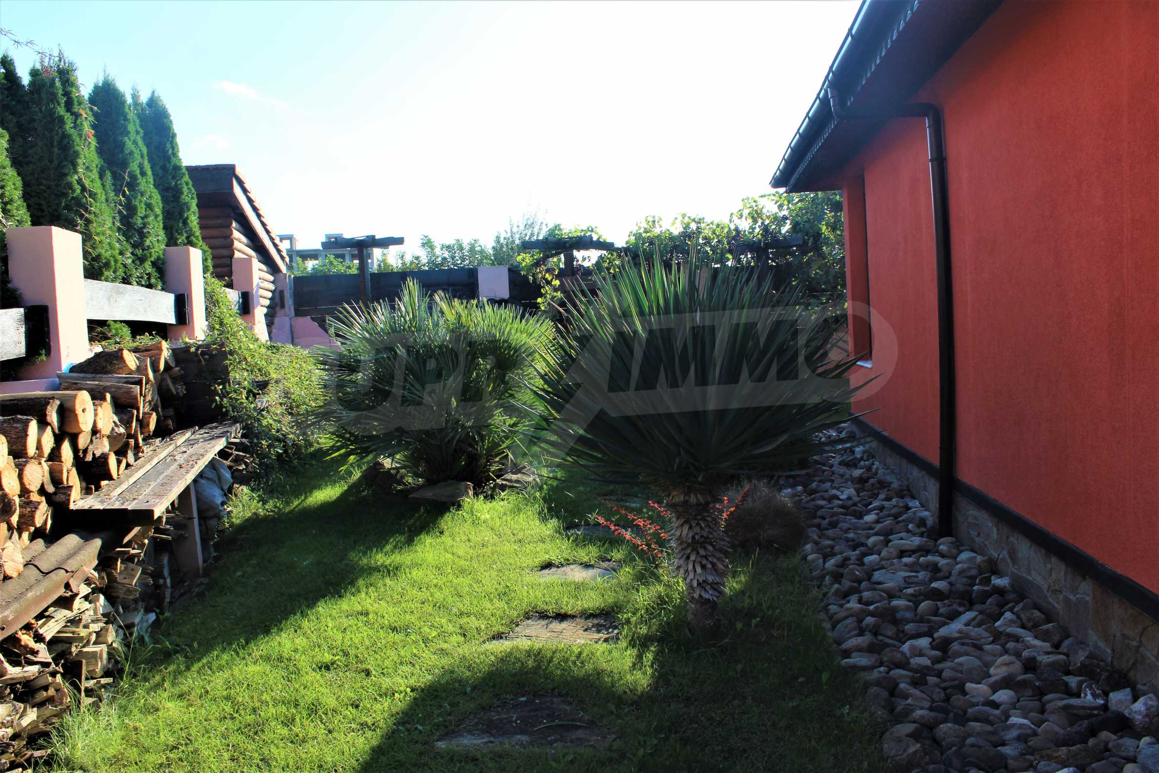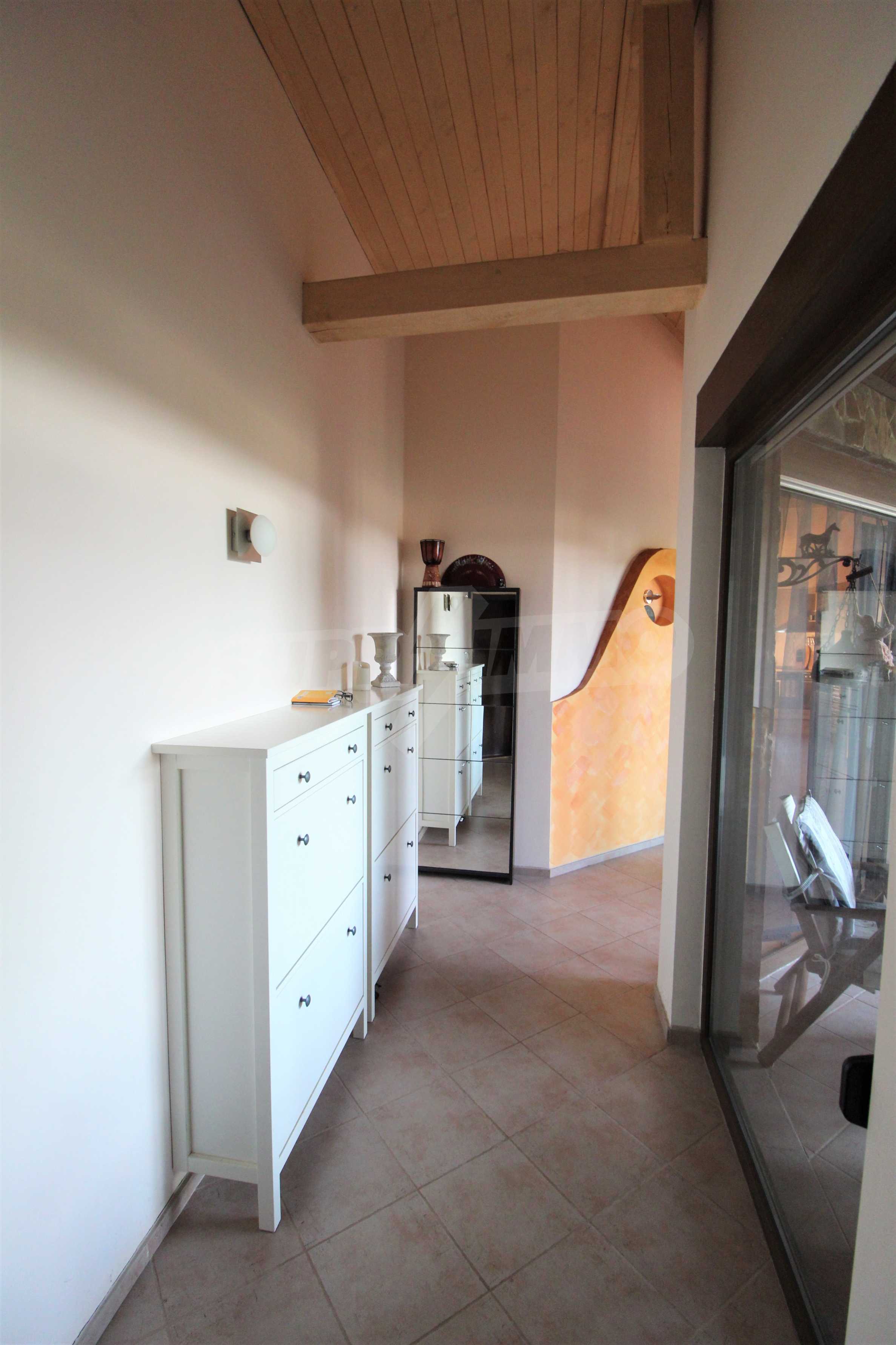 Къщата е качествено и комфортно обзаведена, с атрактивен интериор, решен в топли тонове, от качествени, естествени материали, като камък, дърво, ратан и поръчкови ковани елементи, с декоративни мазилки и ефектни съвременни акценти.
