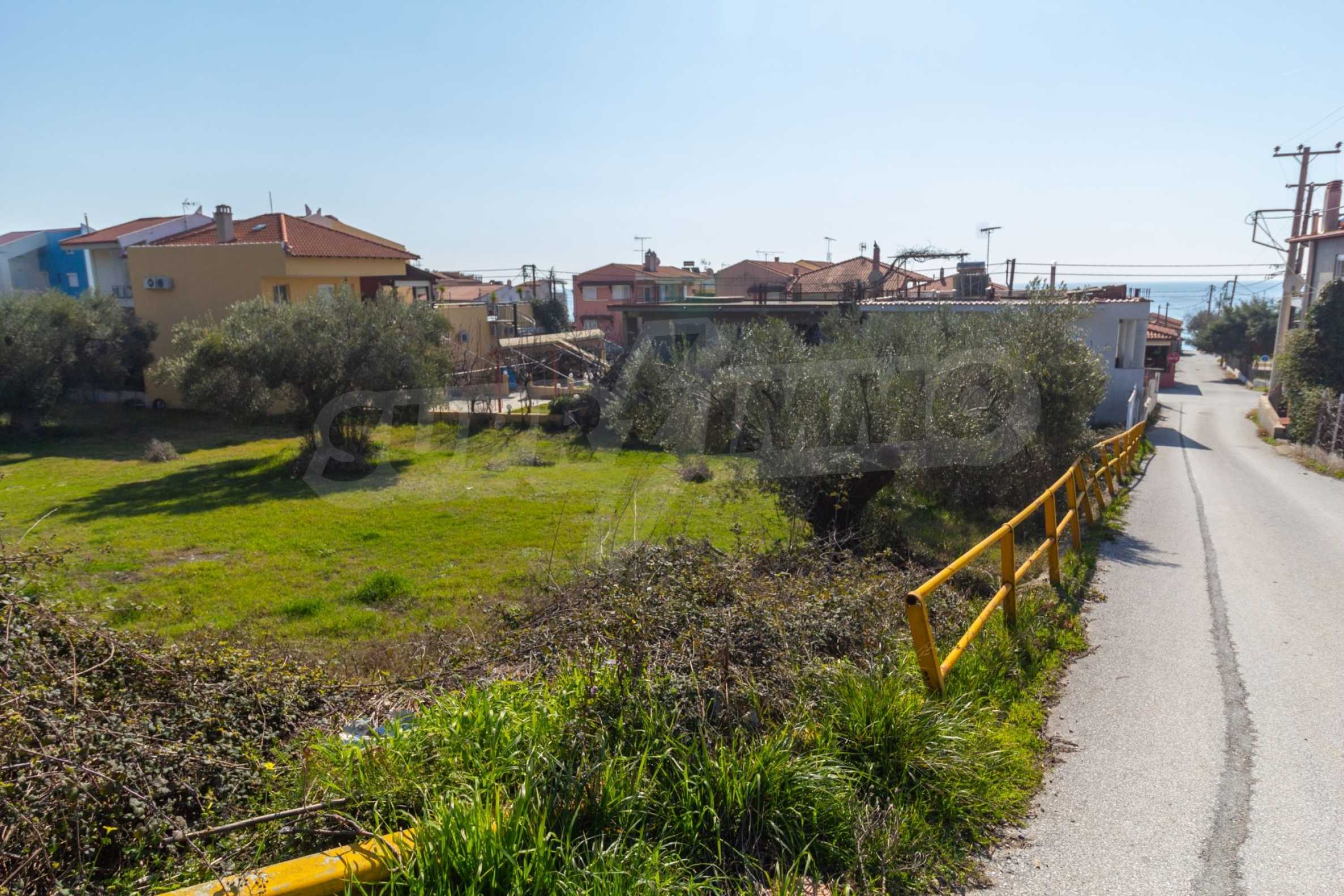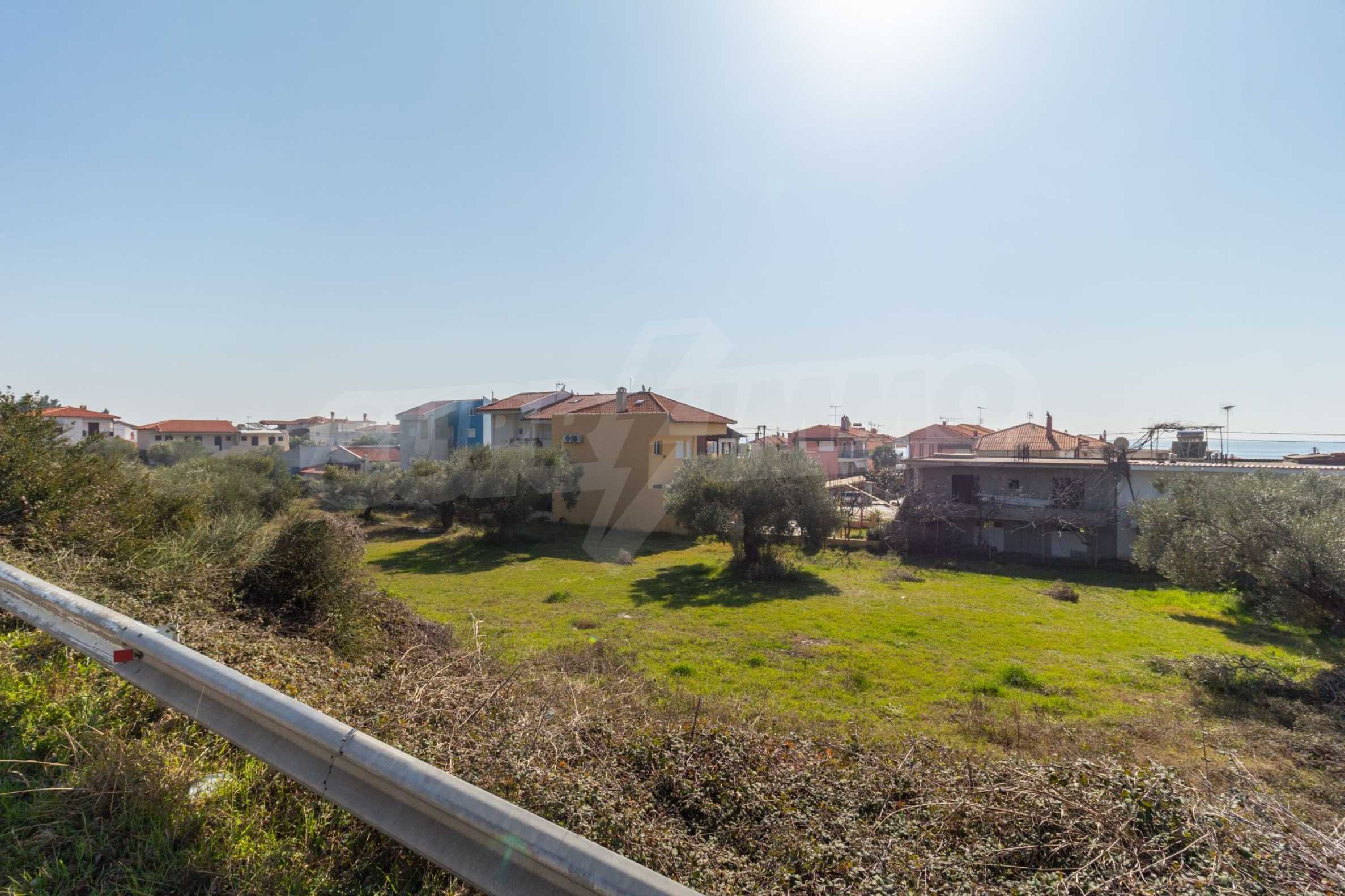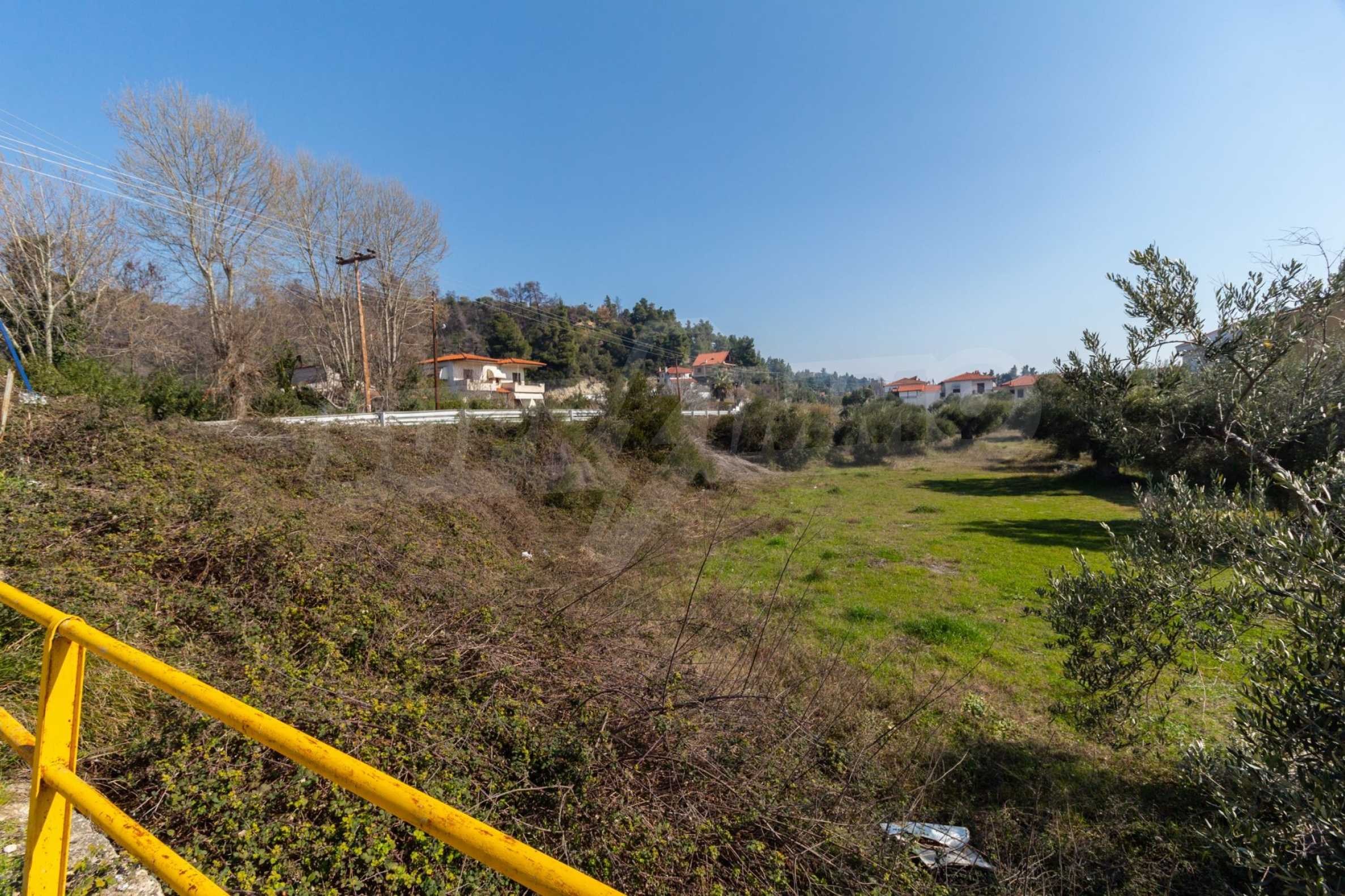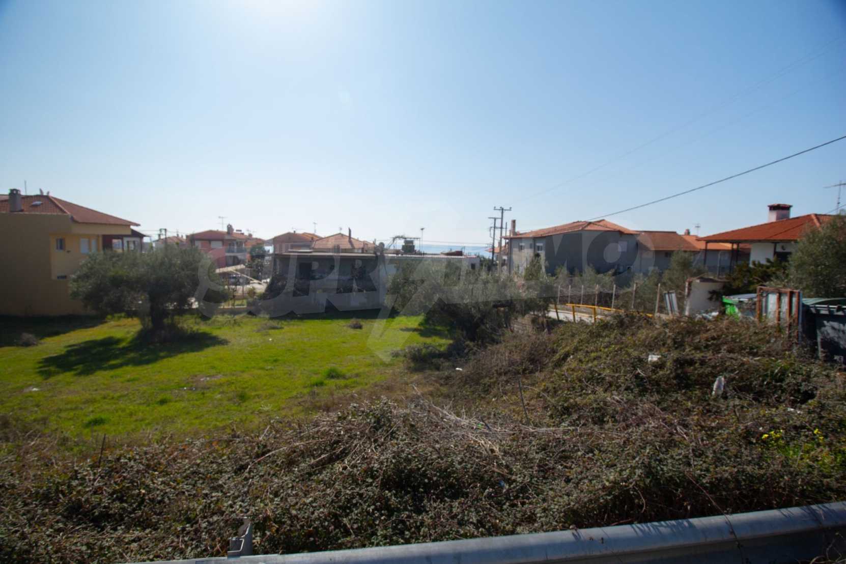 Ъглов парцел, 880 кв.м, в Касандра, Халкидики с безпрепятствен постоянен изглед и с източна ориентация. Ограденият имот е само на 130 м. от плажа и с лице към главния път. Парцелът, който има маслинови дървета, е завършен и застроим (може да се построи 400 кв.м).