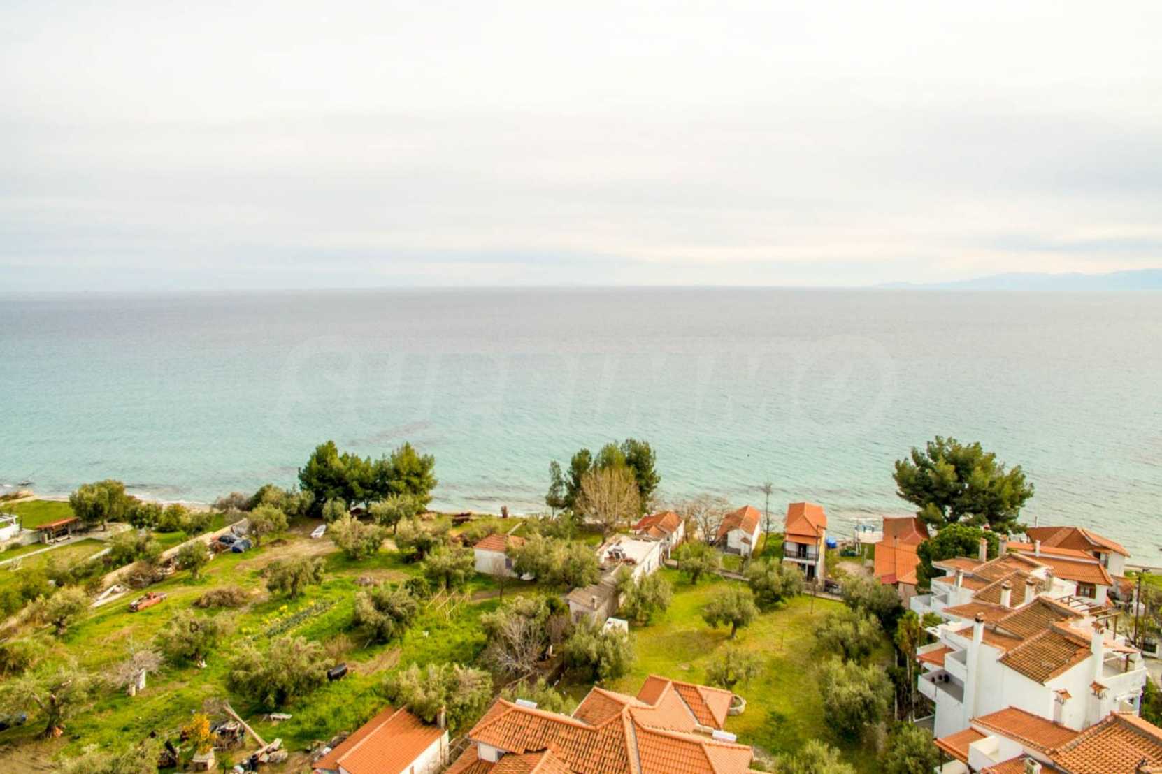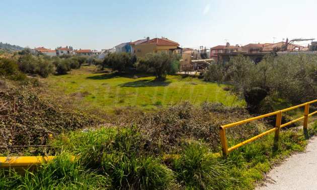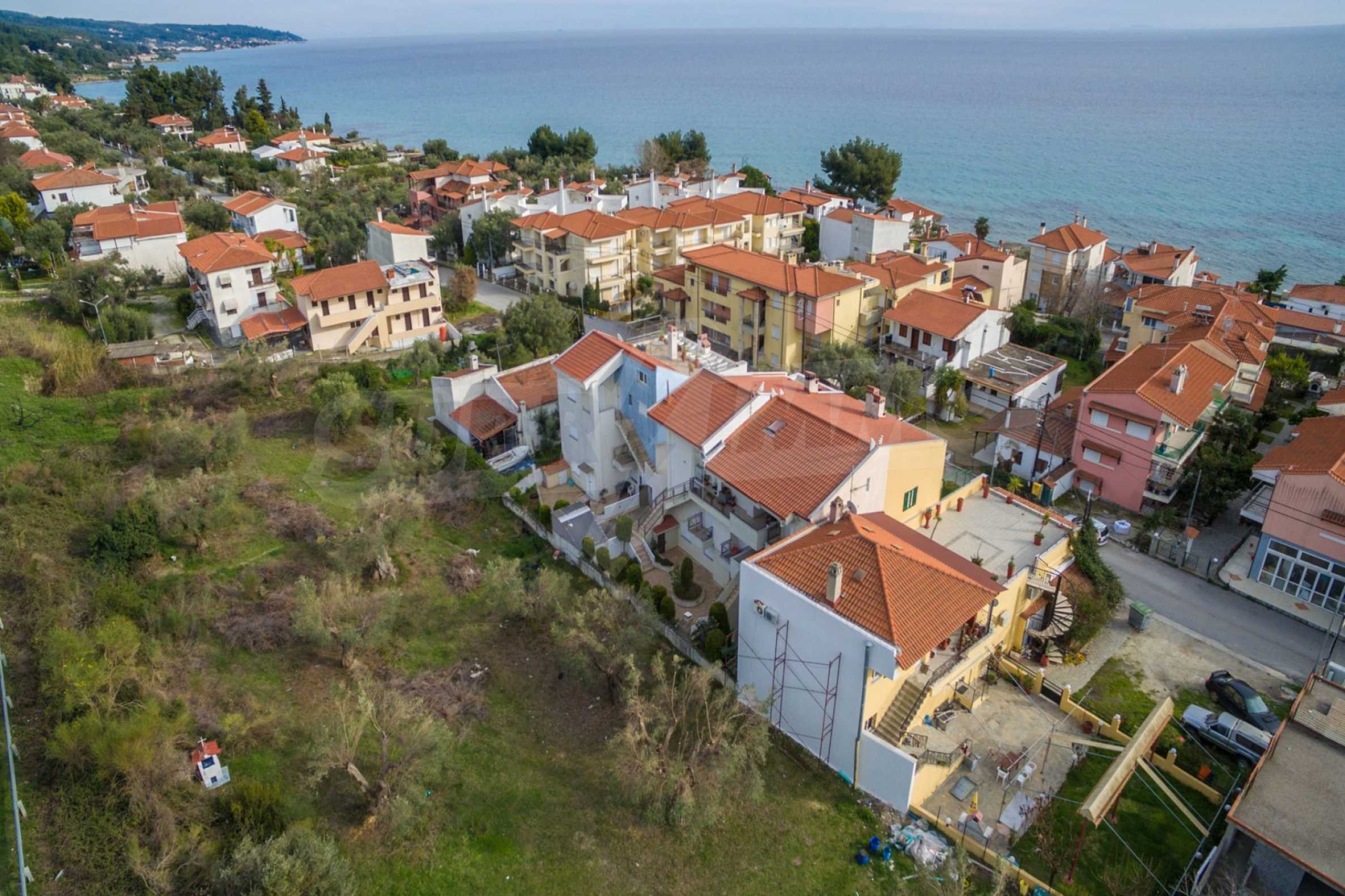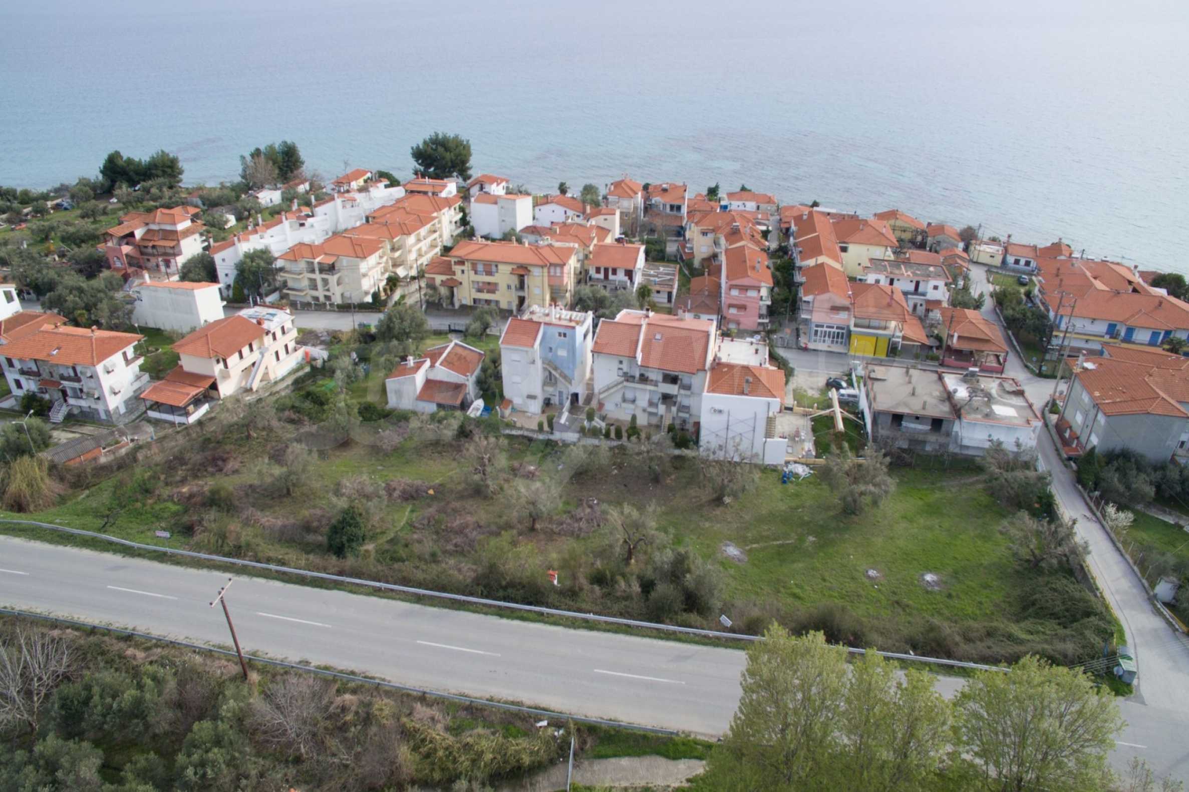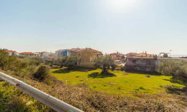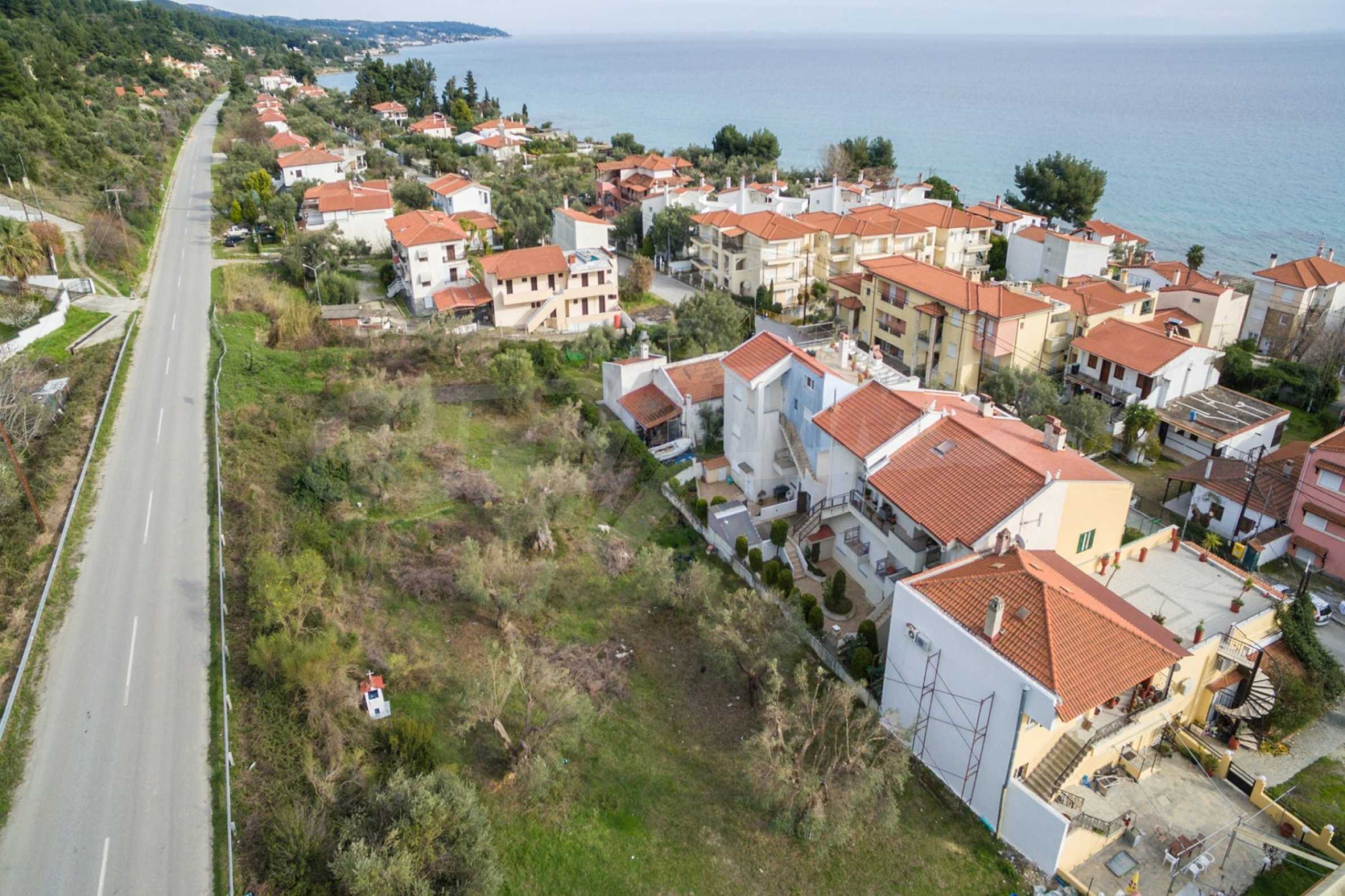 Ъглов парцел, 880 кв.м, в Касандра, Халкидики с безпрепятствен постоянен изглед и с източна ориентация. Ограденият имот е само на 130 м. от плажа и с лице към главния път. Парцелът, който има маслинови дървета, е завършен и застроим (може да се построи 400 кв.м).