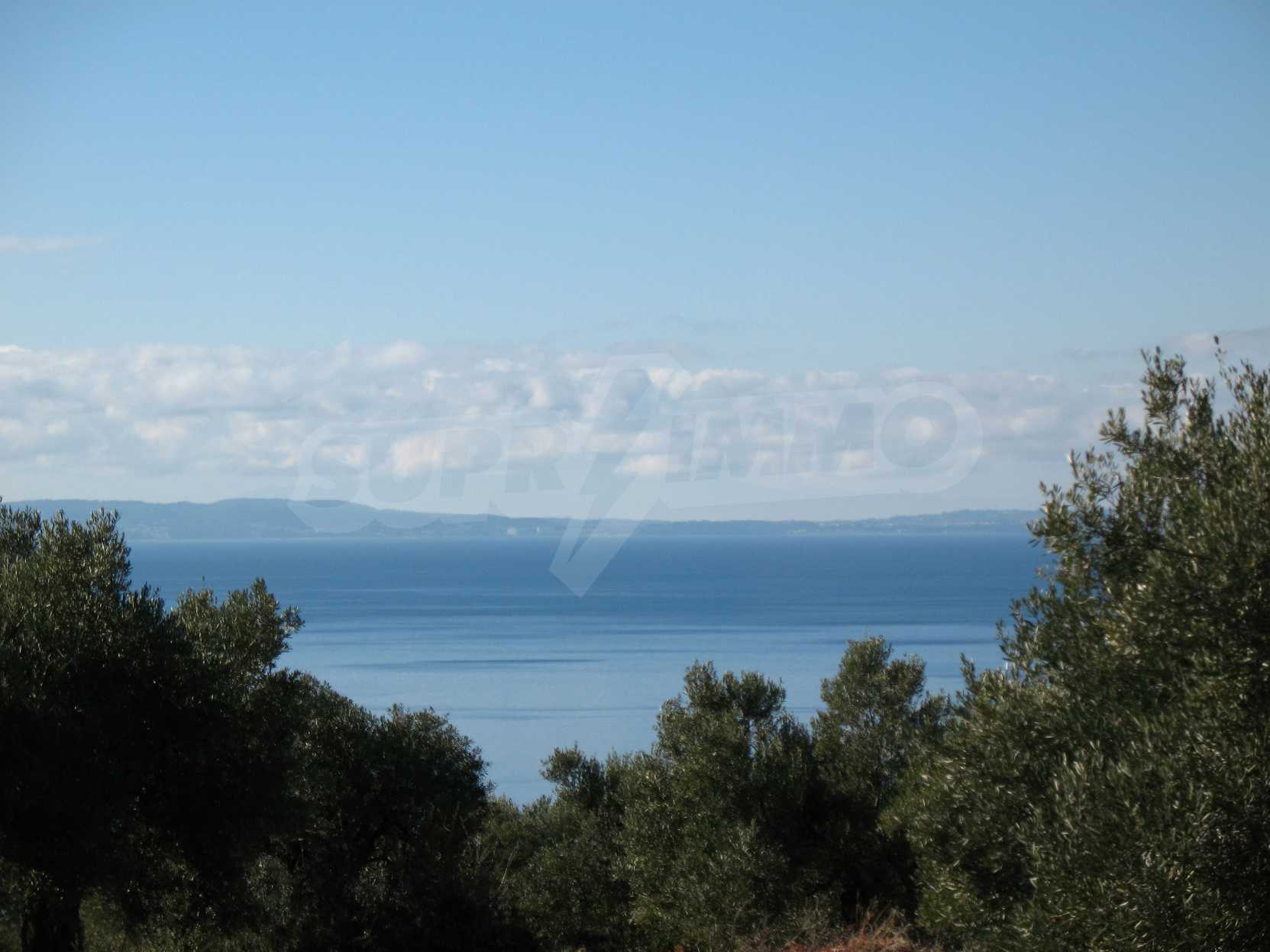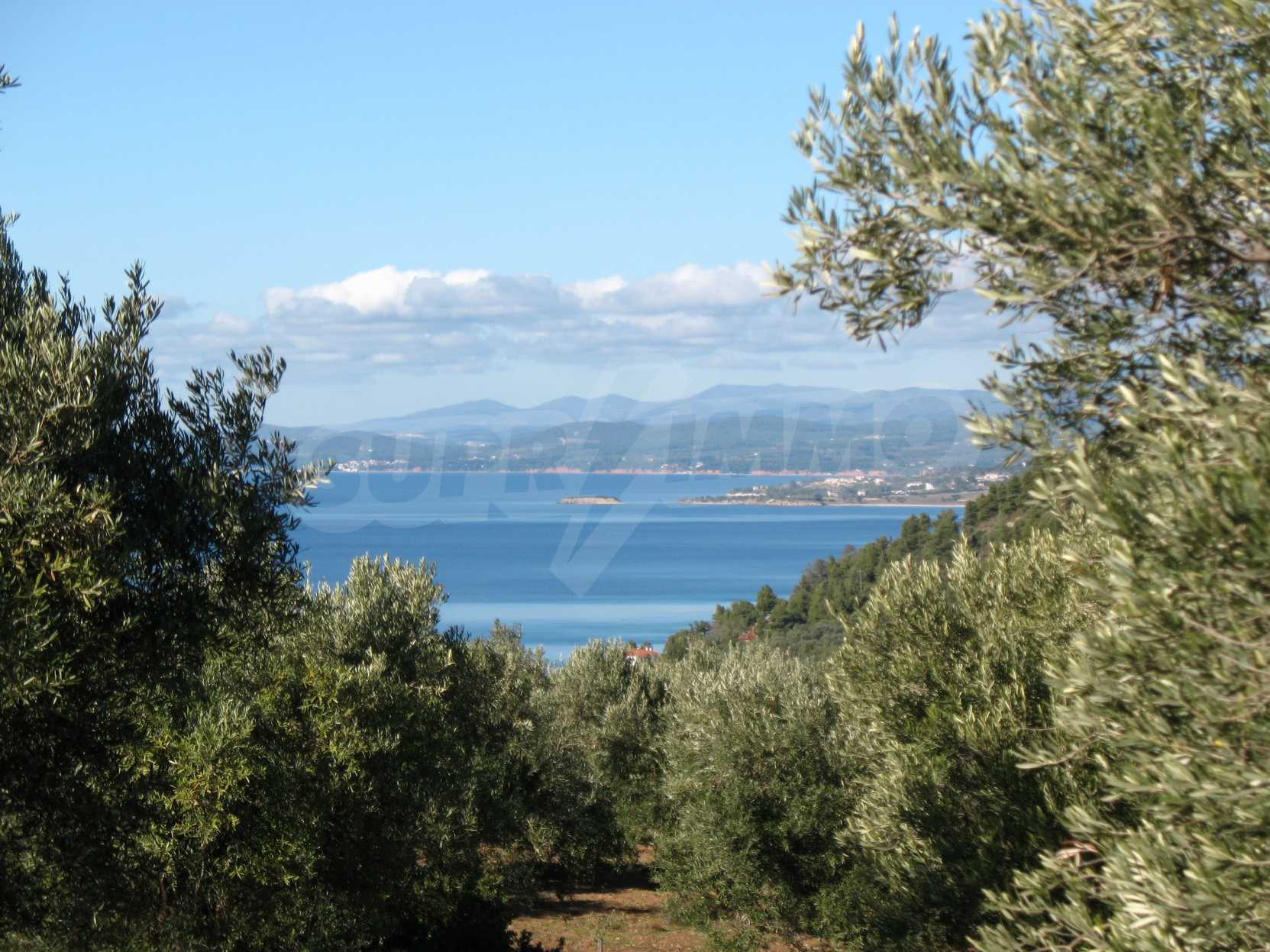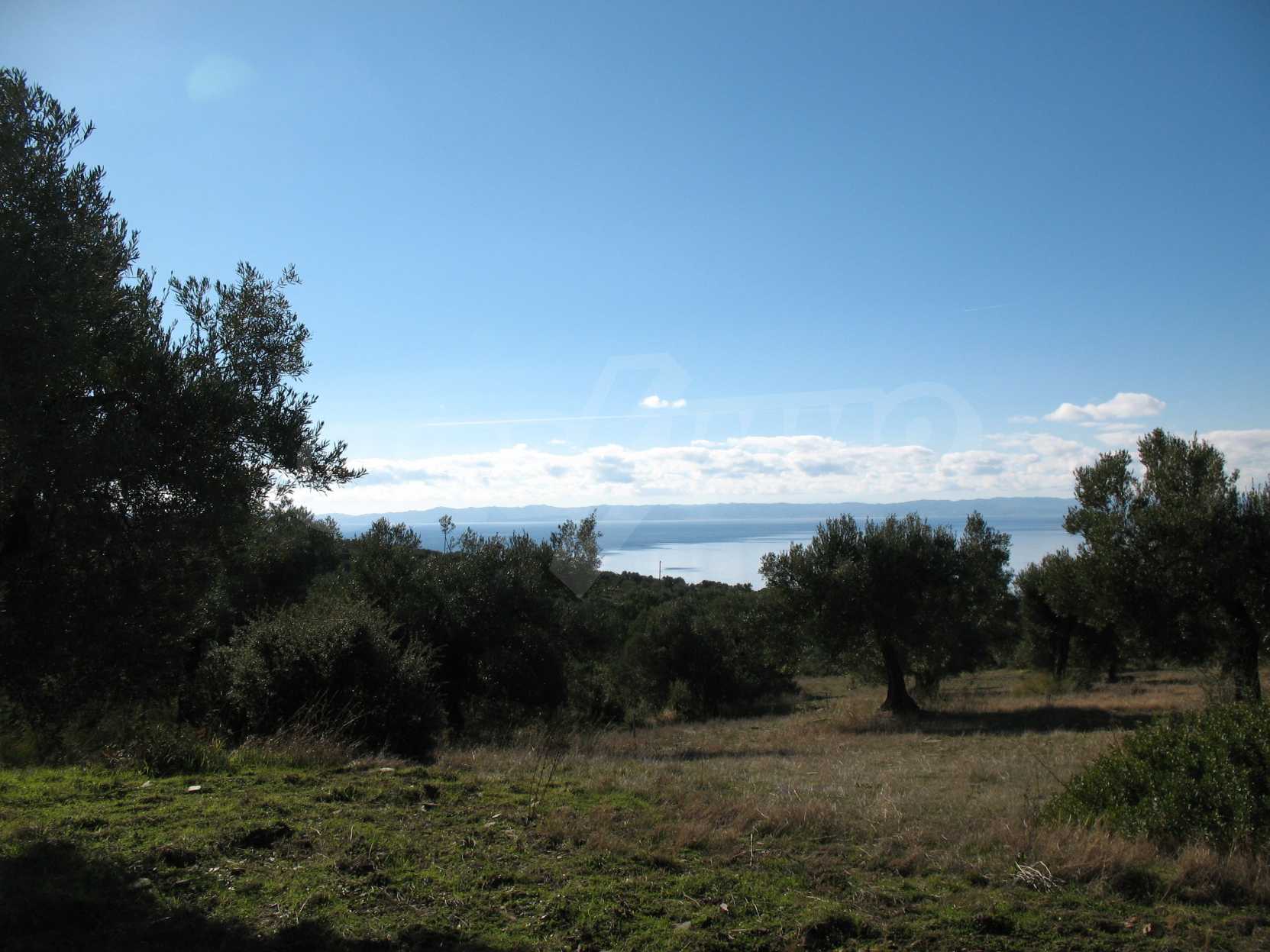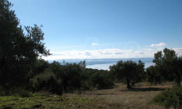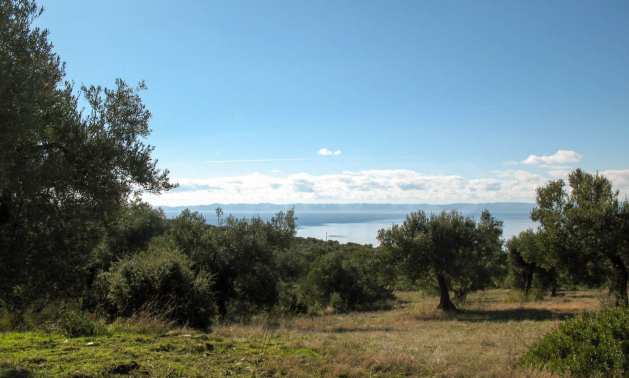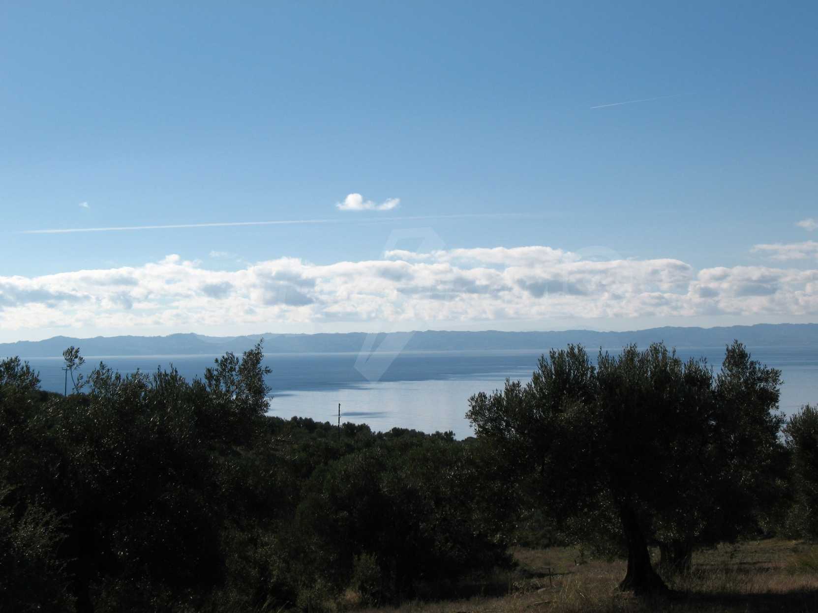 Амфитеатрално поле, 4099 кв.м, в Ситония, Халкидики с безпрепятствен постоянен изглед към морето и със западна ориентация. Имотът е завършен, застроим и има активно разрешение за строеж. Полето е идеално за изграждане на вила и професионално използване.