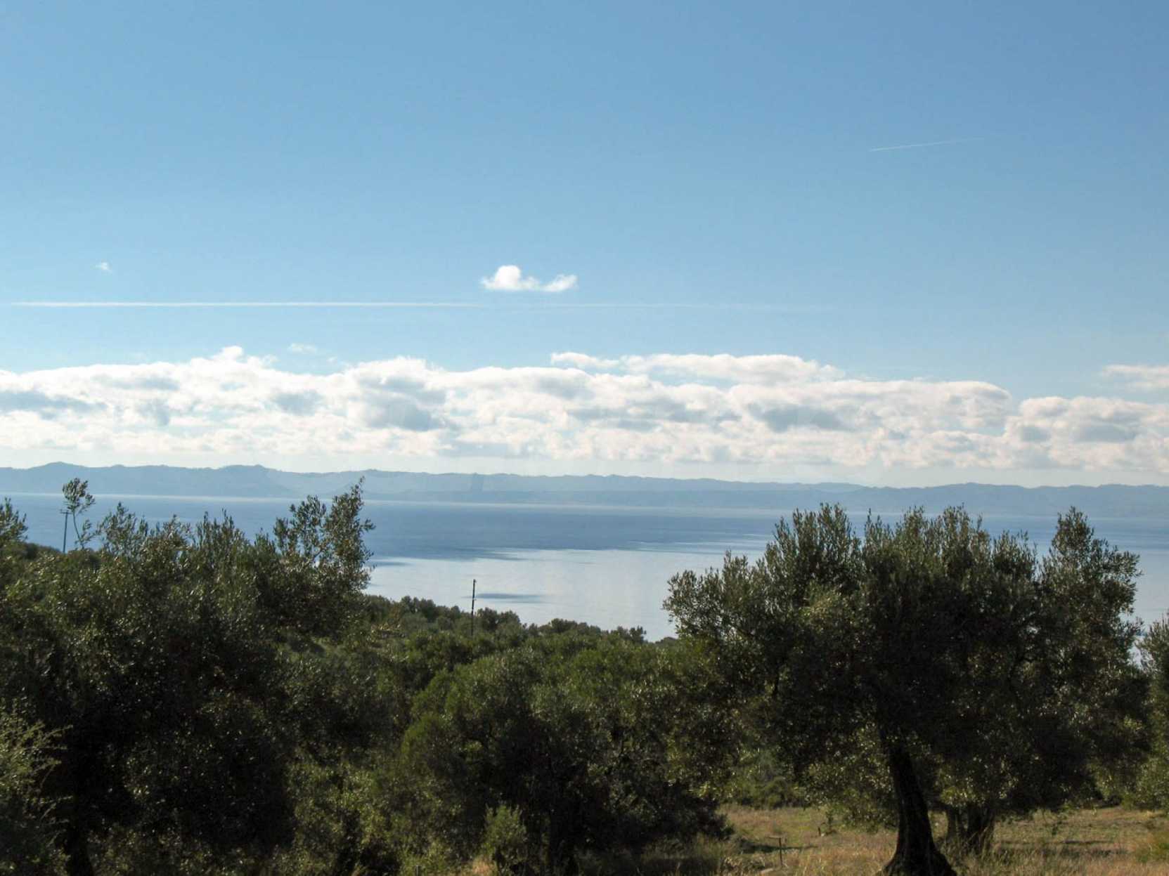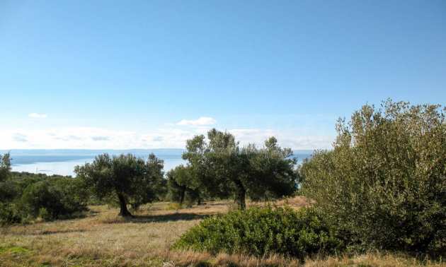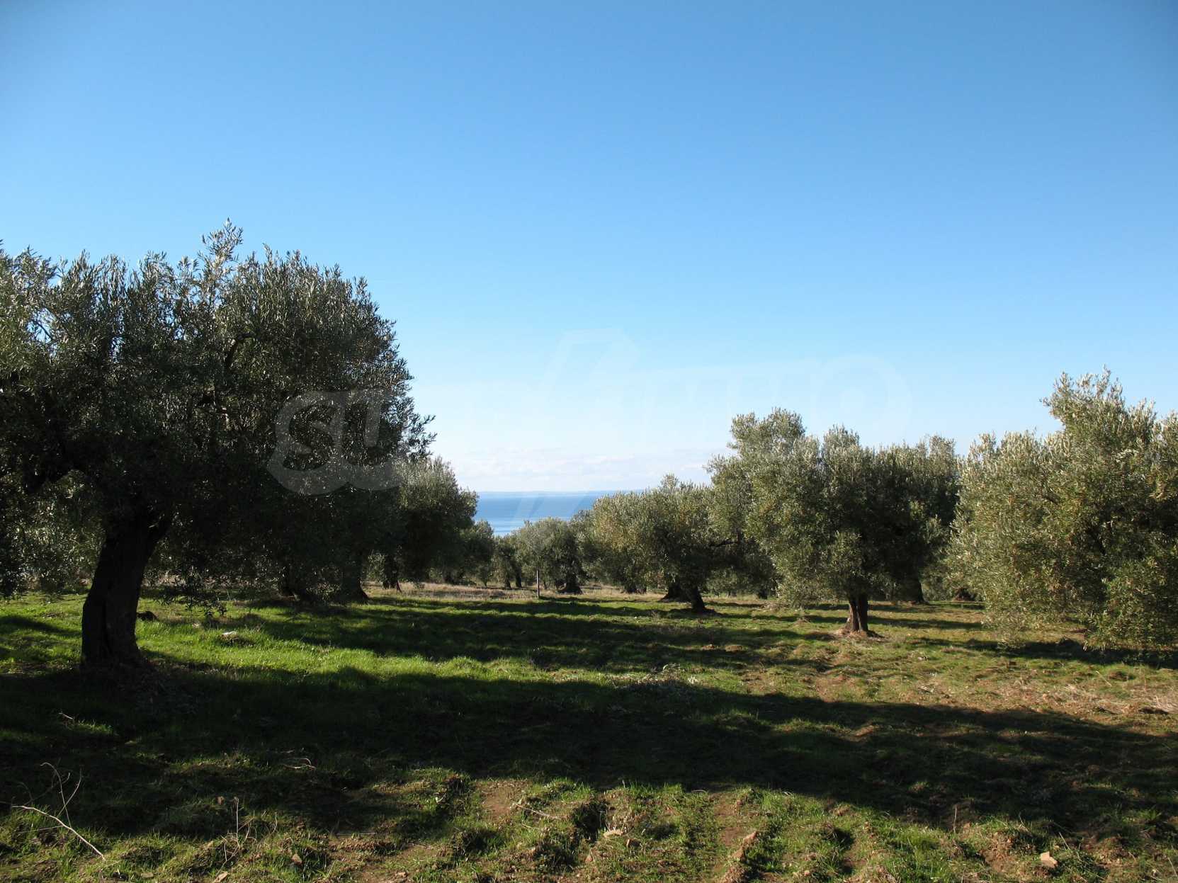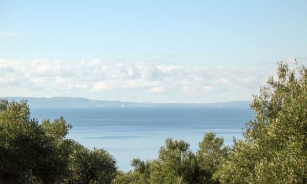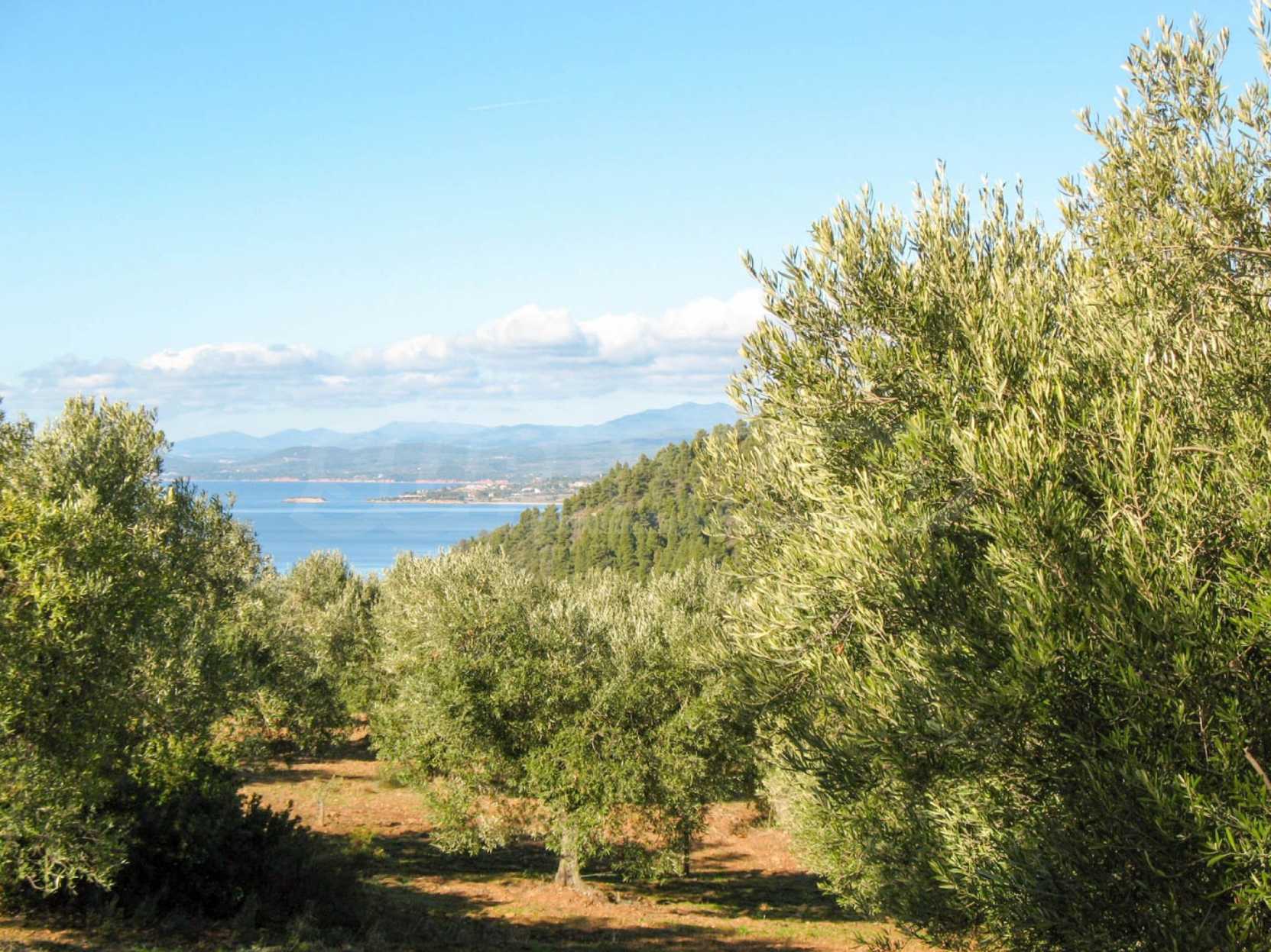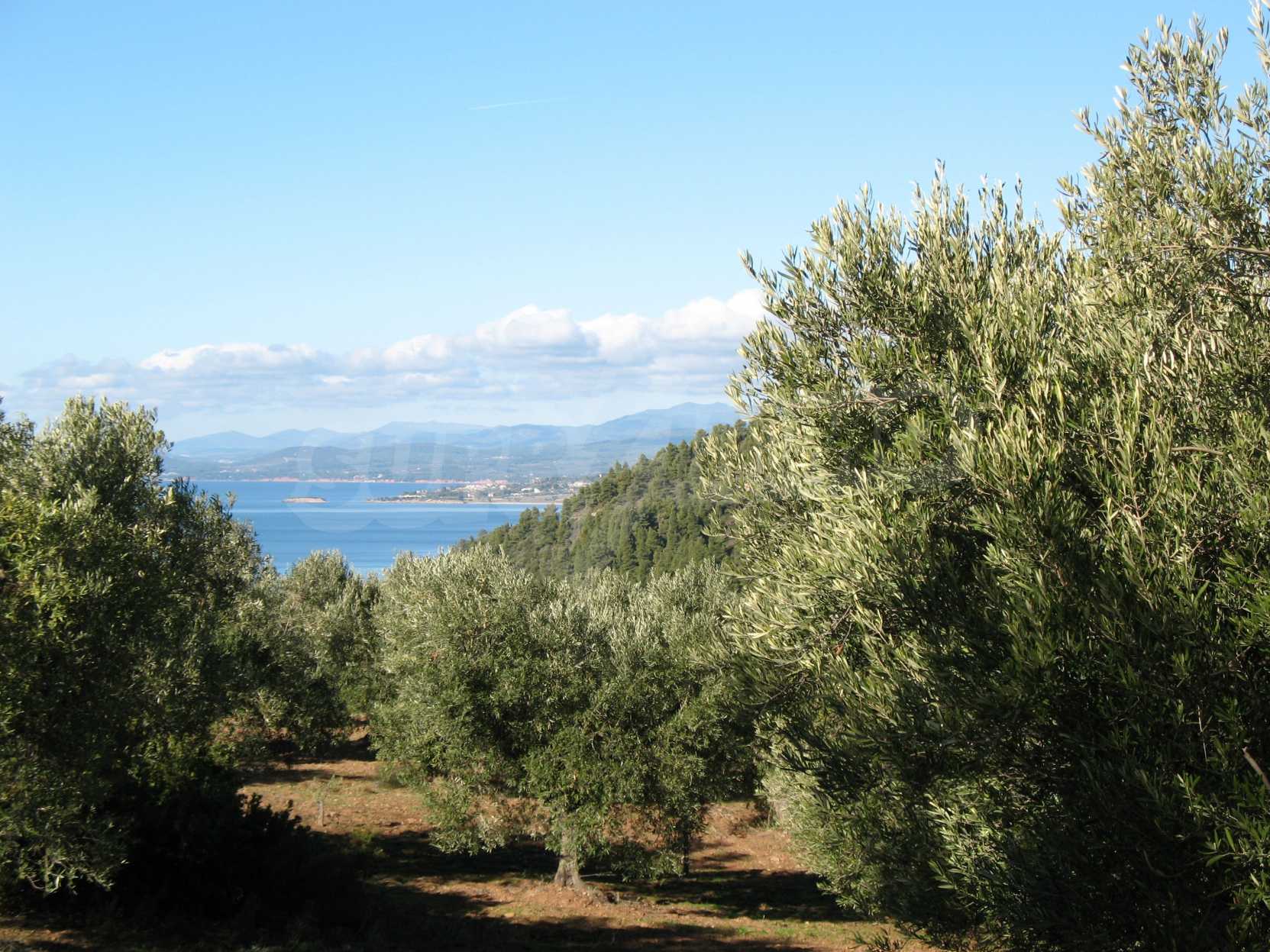 Амфитеатрално поле, 4099 кв.м, в Ситония, Халкидики с безпрепятствен постоянен изглед към морето и със западна ориентация. Имотът е завършен, застроим и има активно разрешение за строеж. Полето е идеално за изграждане на вила и професионално използване.