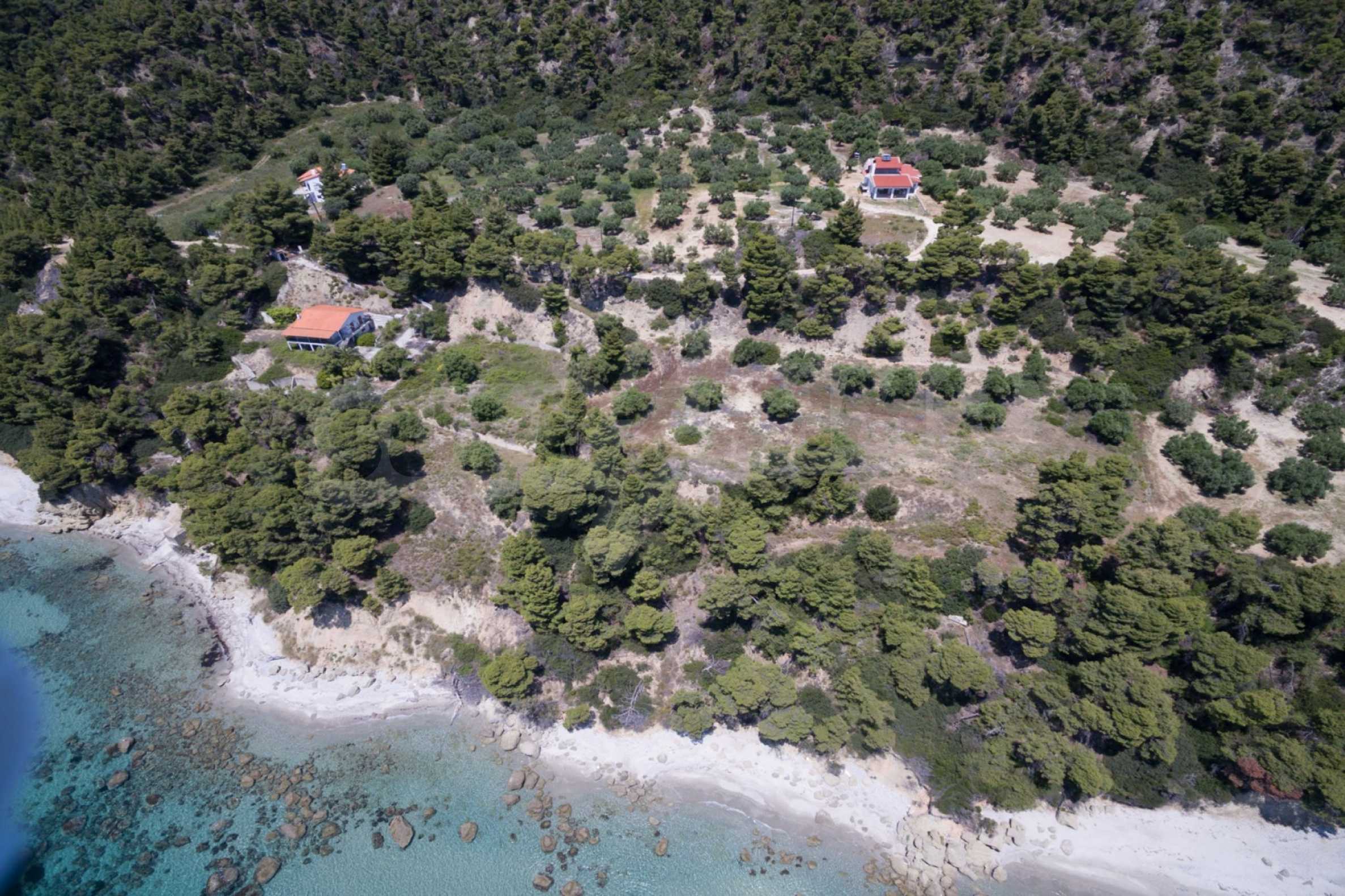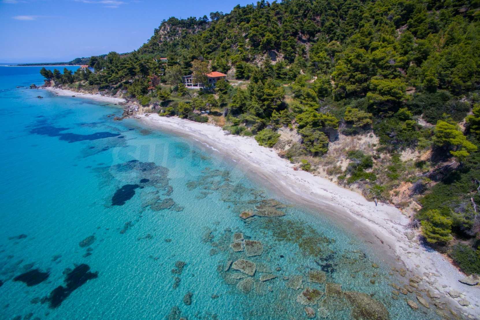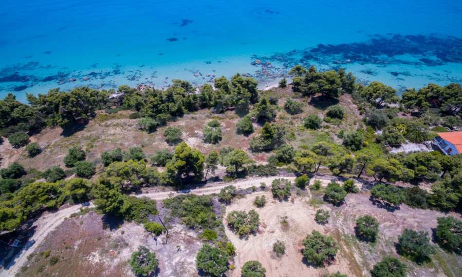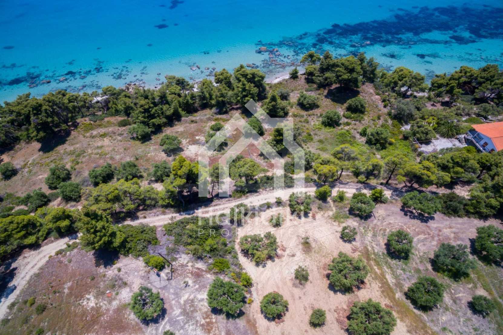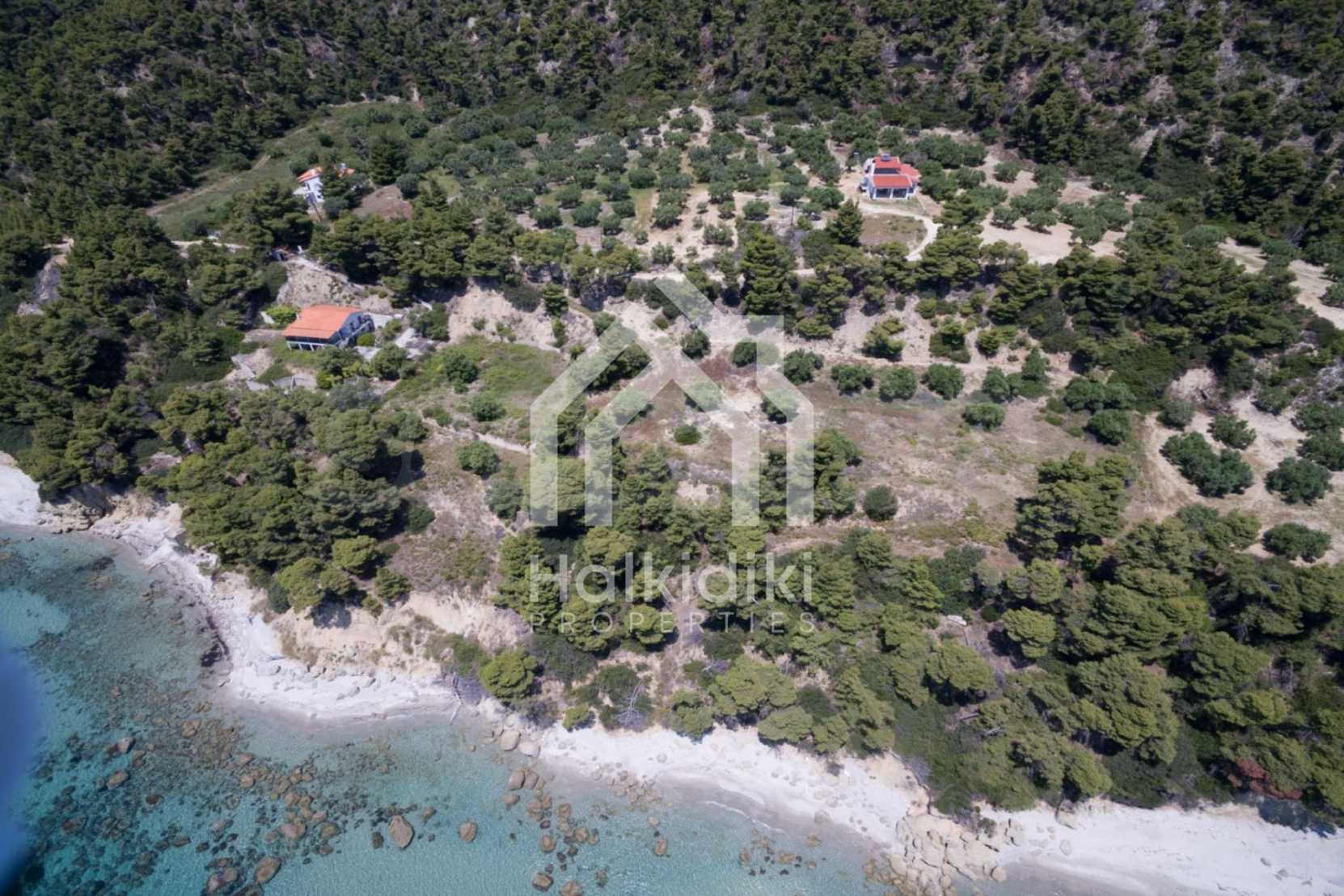 Засадено дърво поле, 4,320 кв.м, в Касандра, Халкидики с безпрепятствен постоянен изглед и с югозападна ориентация. Наклоненият имот е първо на морето, с изключителен достъп до плажа, и е на 1,8 км. от центъра на селото. Полето, което е пълно и застрояващо (може да се построи 200 кв.м), е идеално за изграждане на къща.
