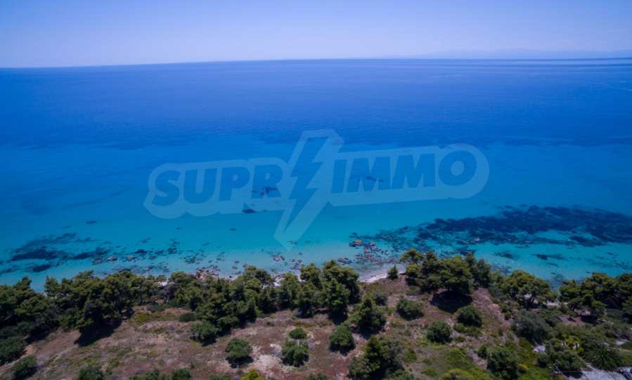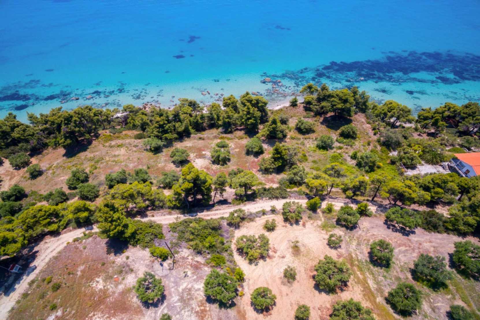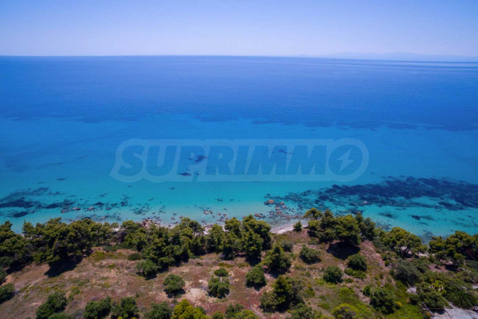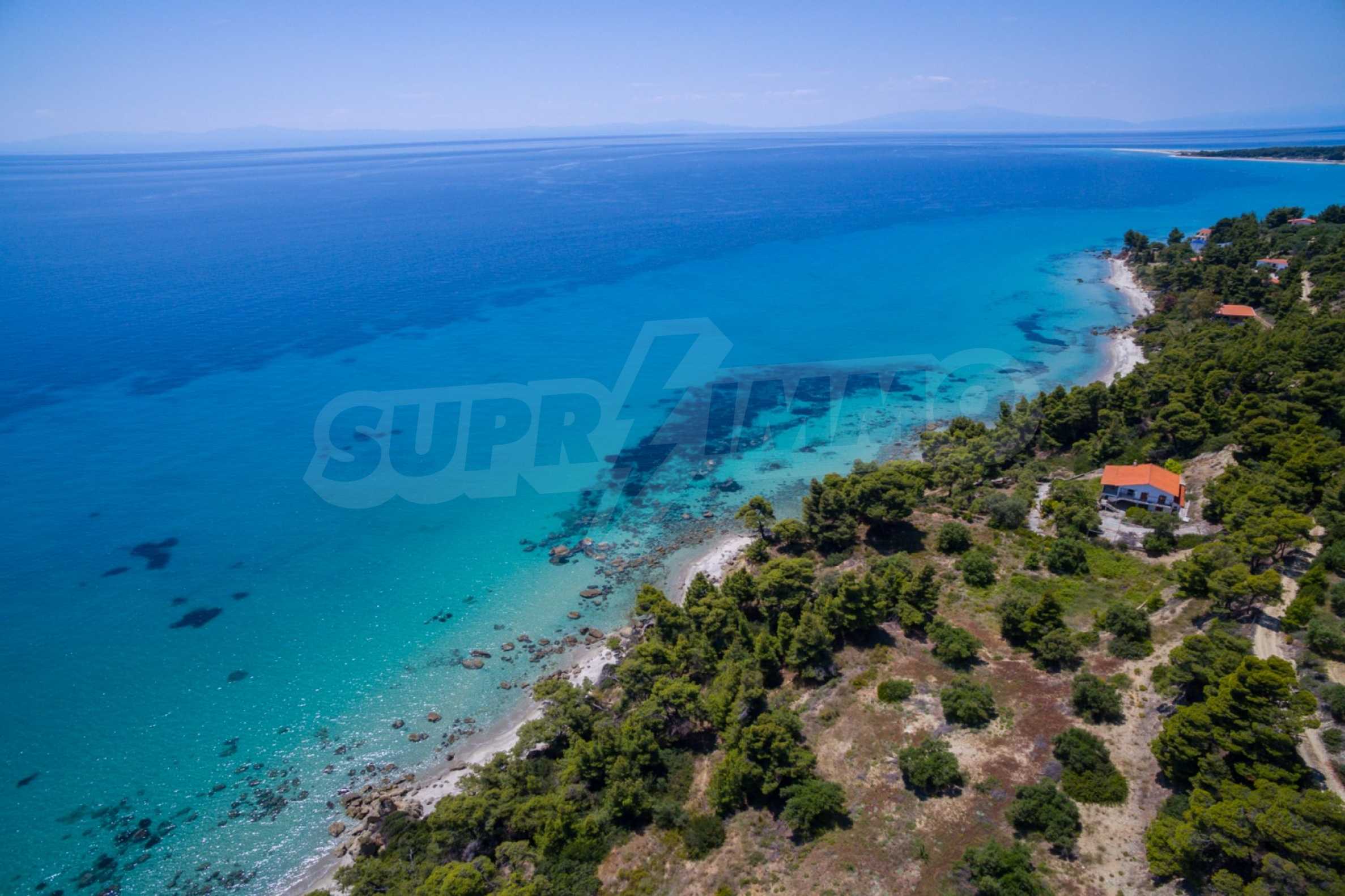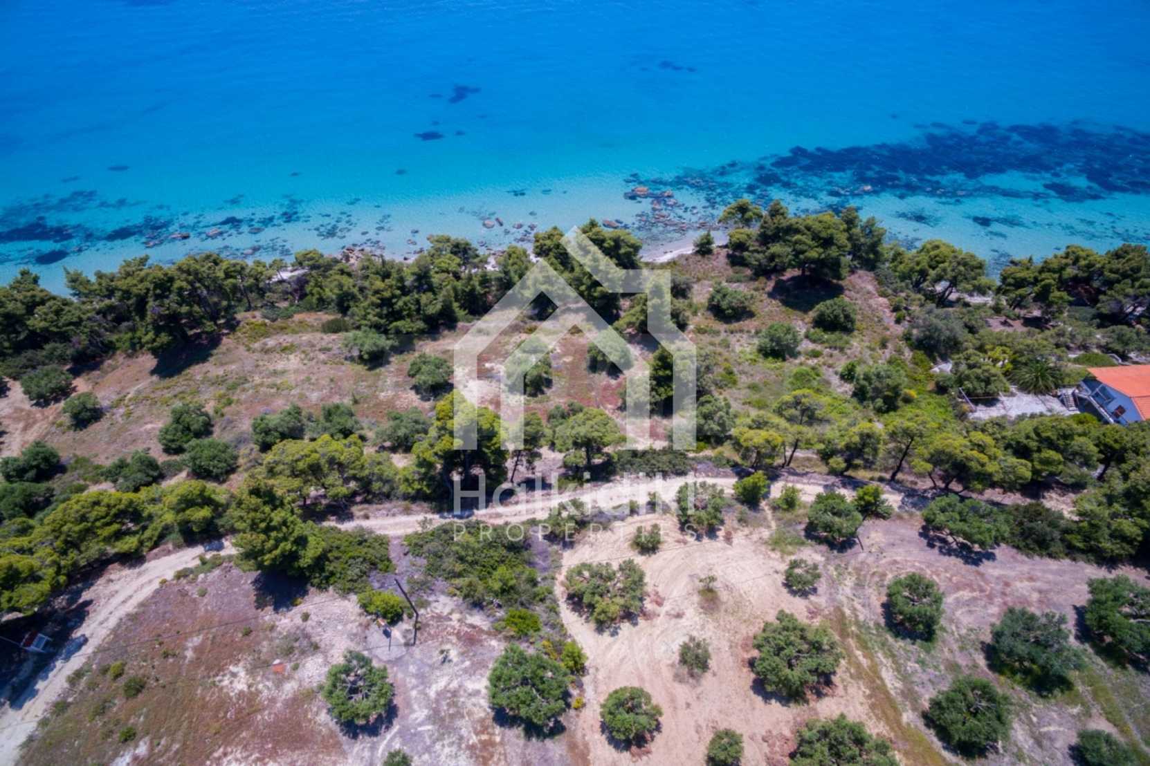 Засадено дърво поле, 4,320 кв.м, в Касандра, Халкидики с безпрепятствен постоянен изглед и с югозападна ориентация. Наклоненият имот е първо на морето, с изключителен достъп до плажа, и е на 1,8 км. от центъра на селото. Полето, което е пълно и застрояващо (може да се построи 200 кв.м), е идеално за изграждане на къща.