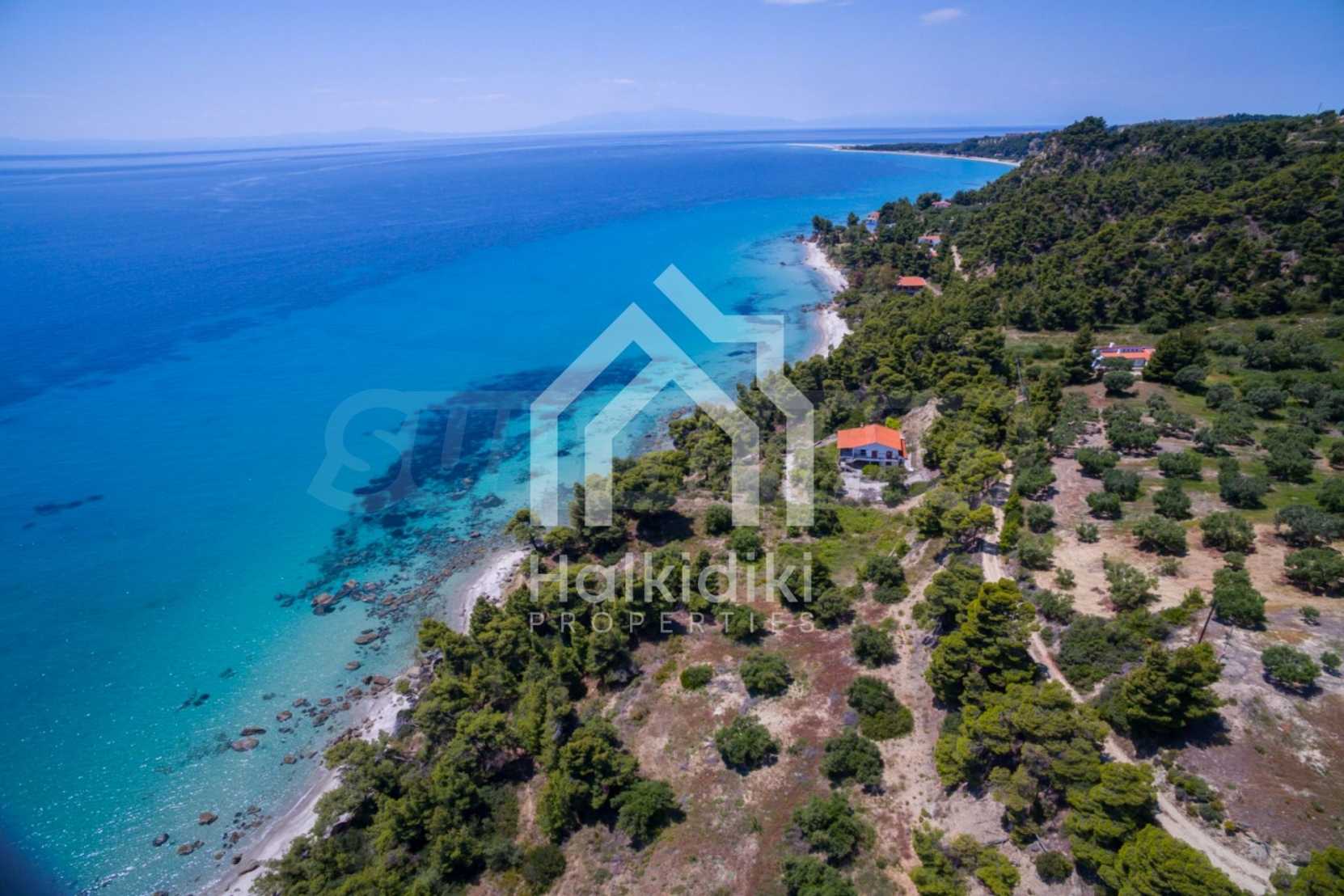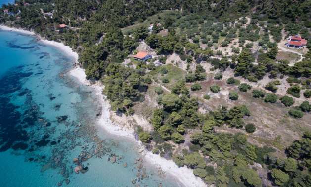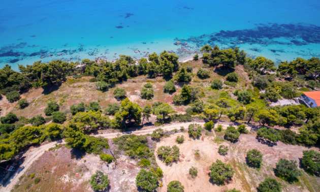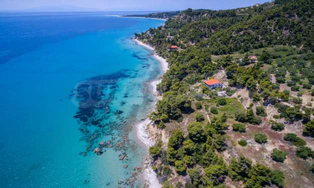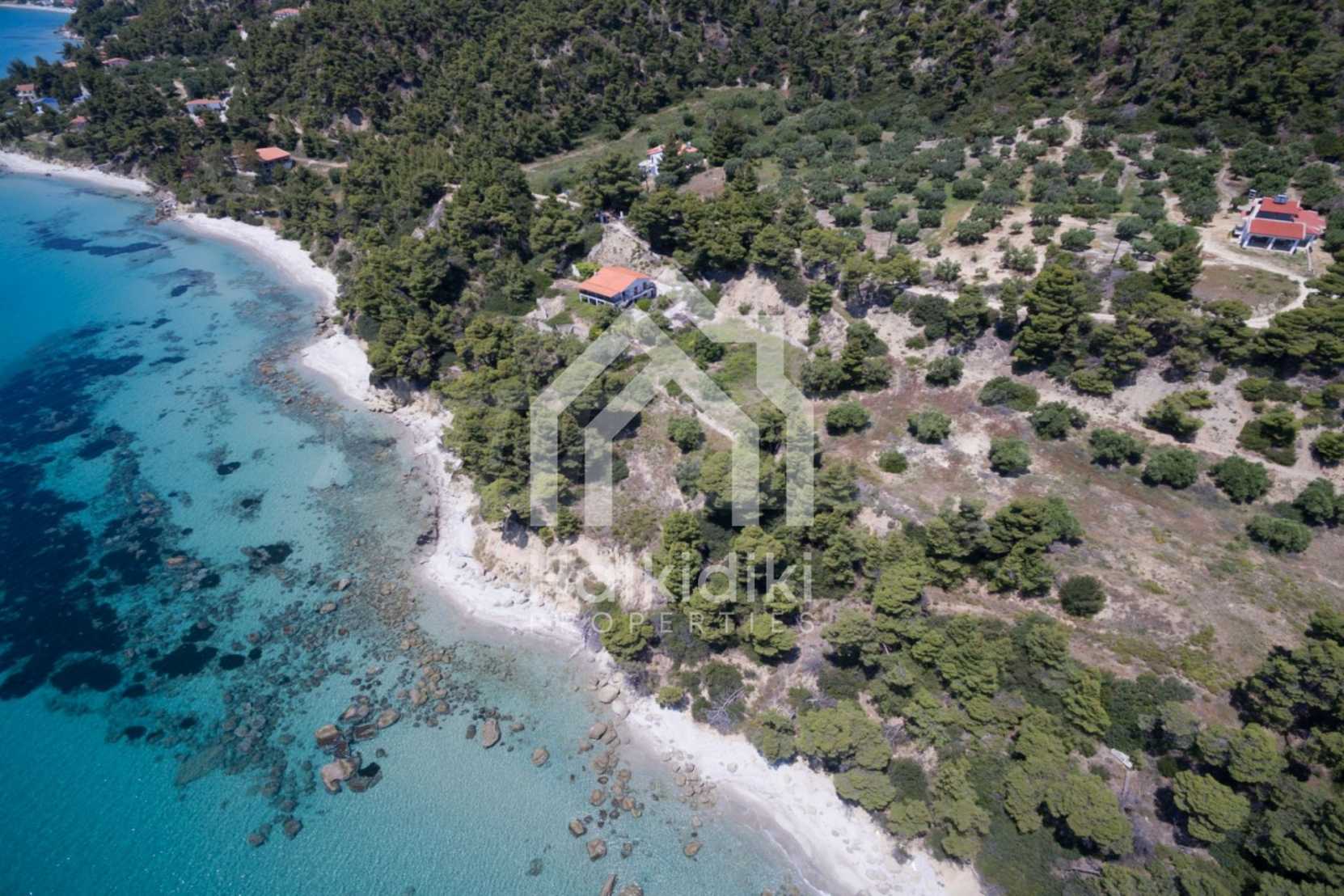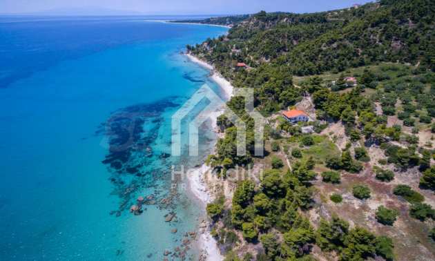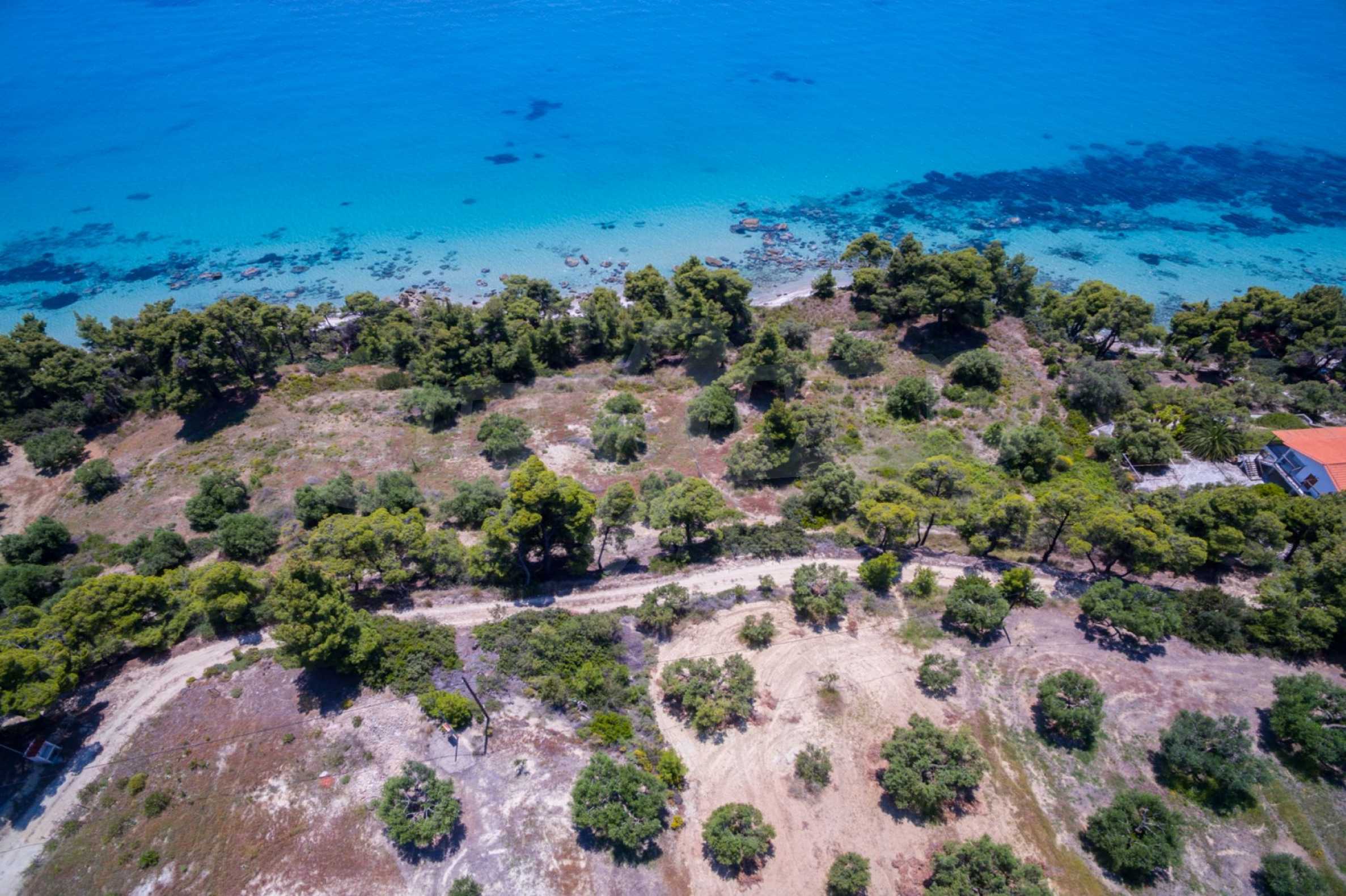 Засадено дърво поле, 4,320 кв.м, в Касандра, Халкидики с безпрепятствен постоянен изглед и с югозападна ориентация. Наклоненият имот е първо на морето, с изключителен достъп до плажа, и е на 1,8 км. от центъра на селото. Полето, което е пълно и застрояващо (може да се построи 200 кв.м), е идеално за изграждане на къща.