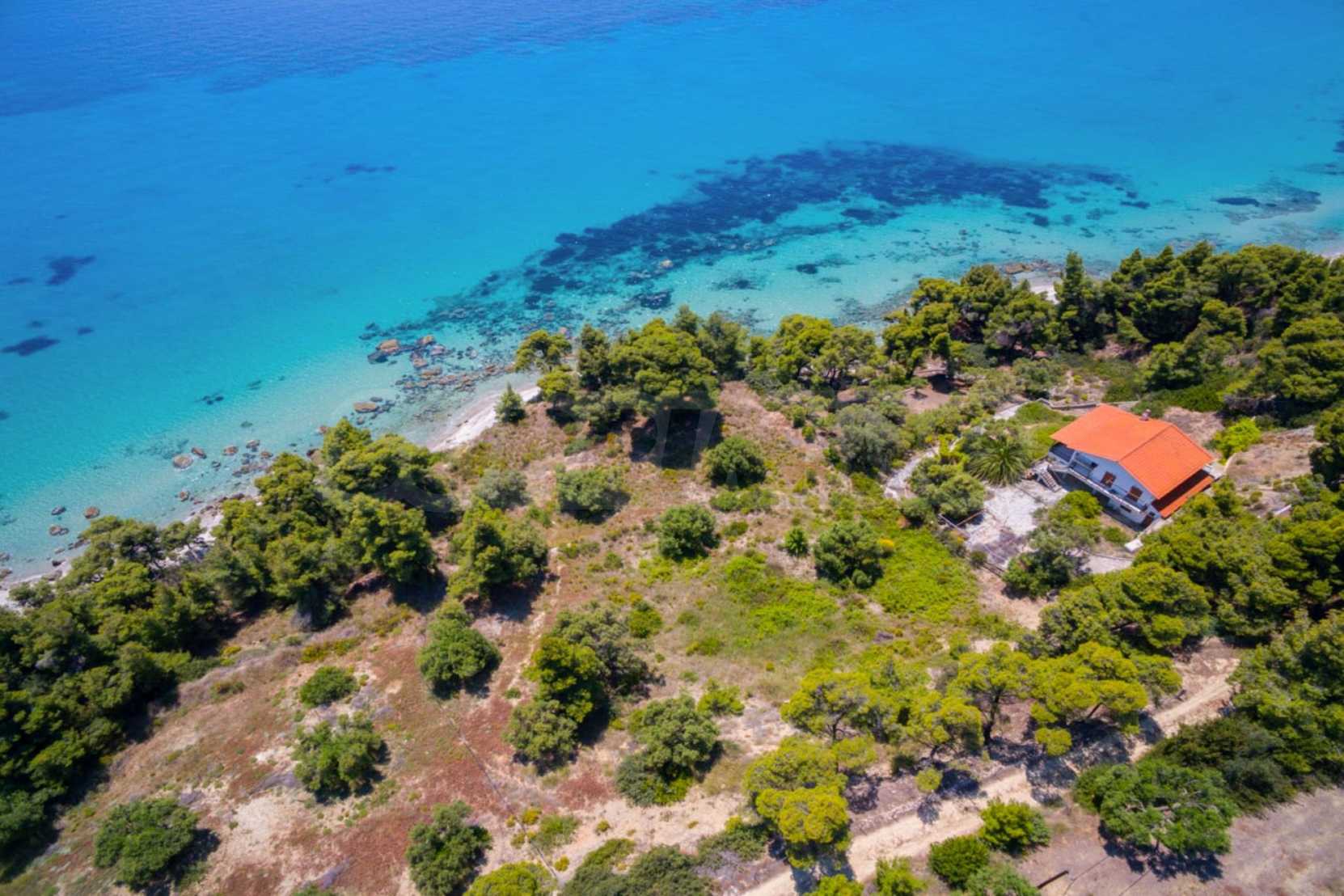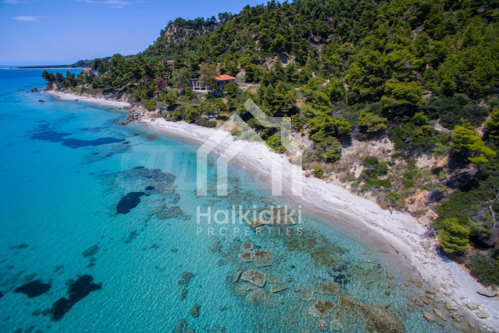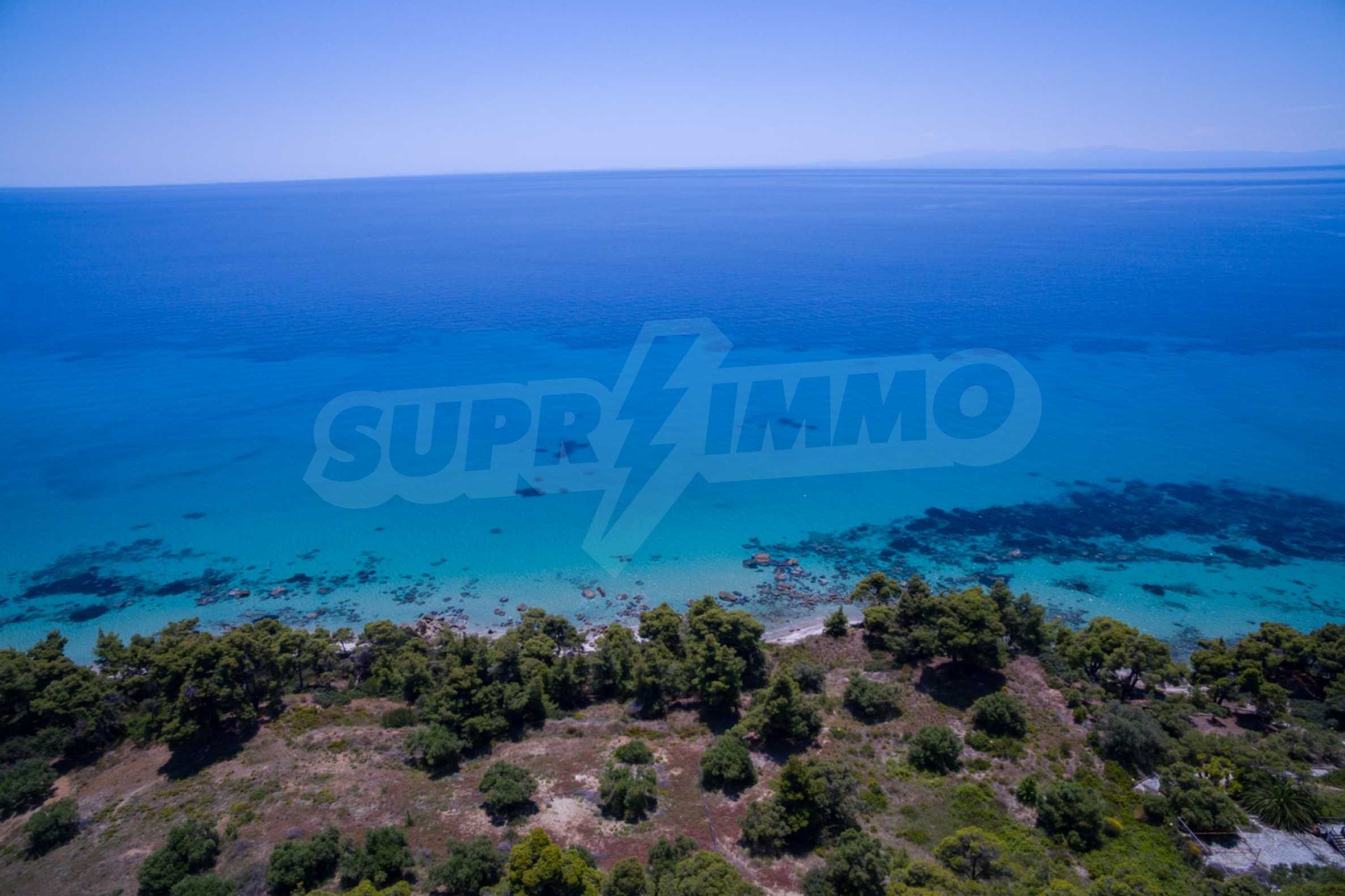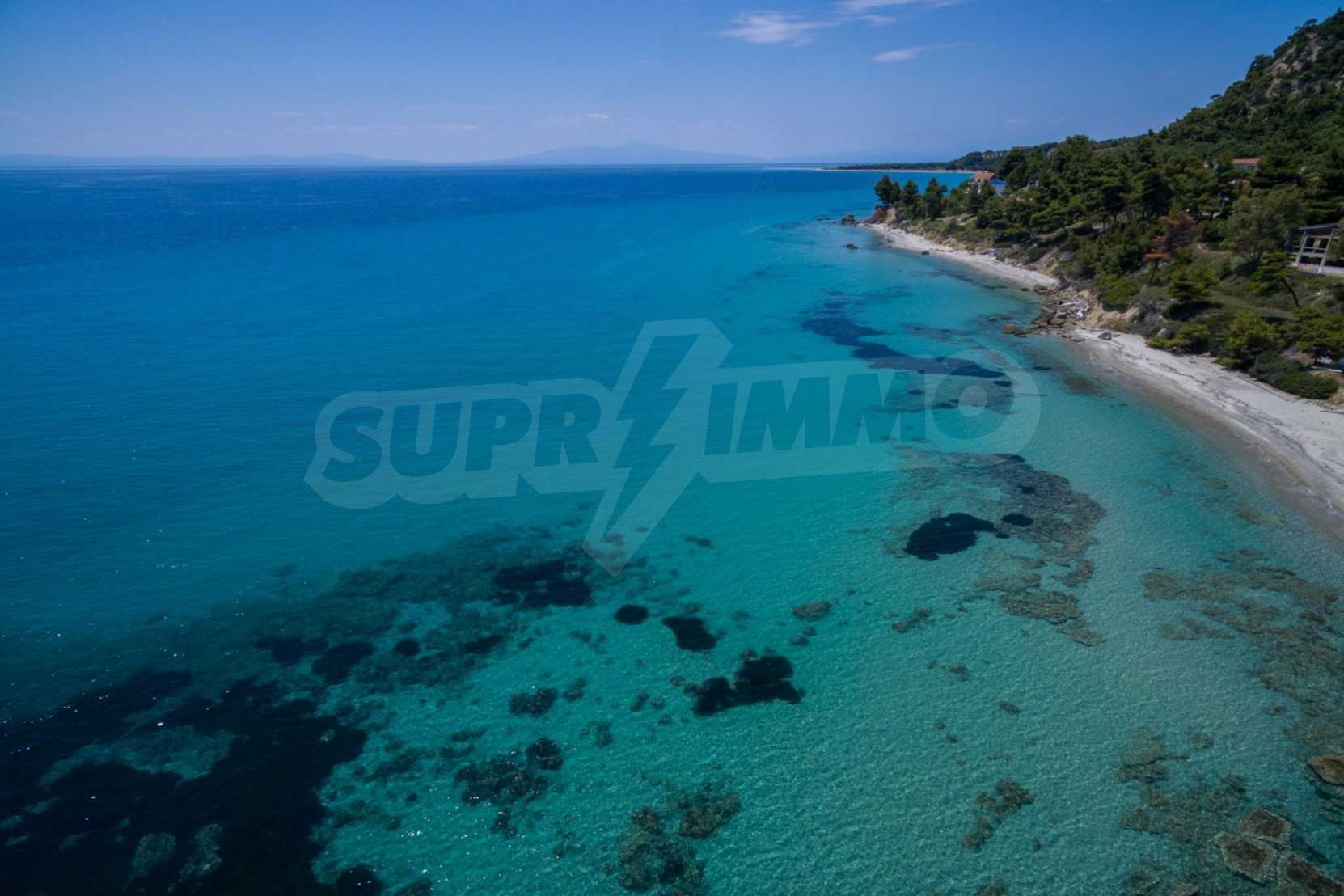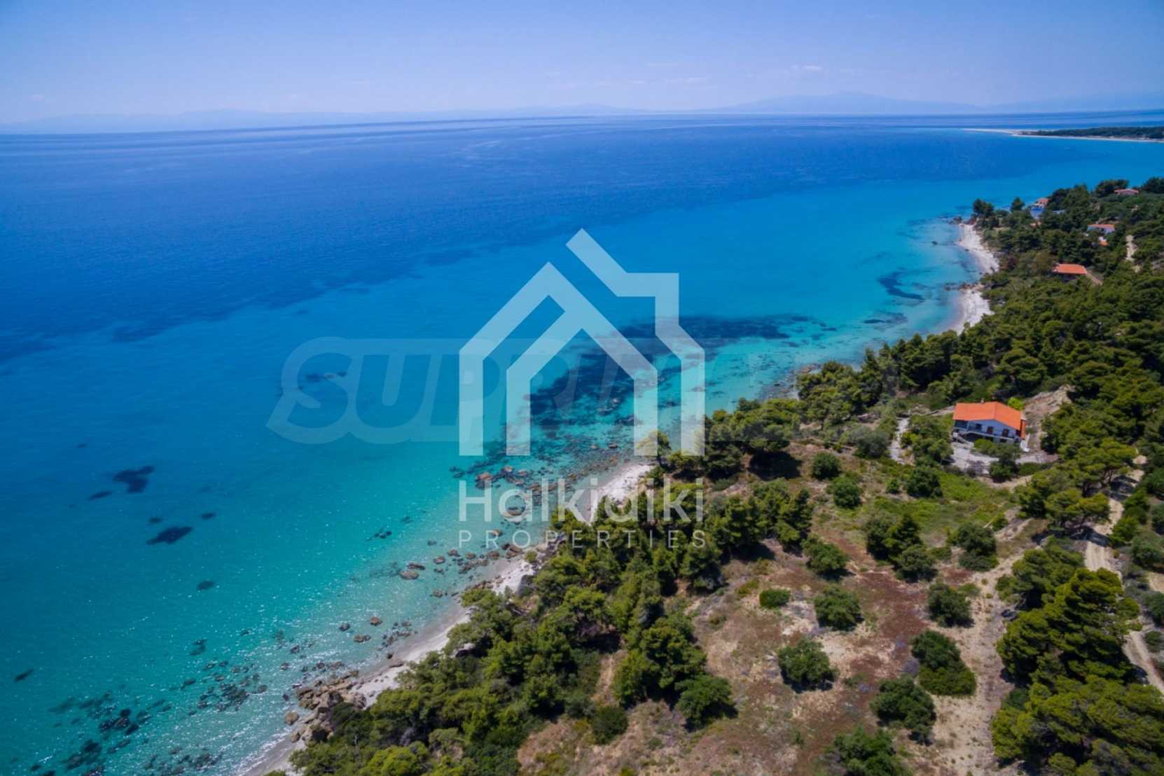 Засадено дърво поле, 4,320 кв.м, в Касандра, Халкидики с безпрепятствен постоянен изглед и с югозападна ориентация. Наклоненият имот е първо на морето, с изключителен достъп до плажа, и е на 1,8 км. от центъра на селото. Полето, което е пълно и застрояващо (може да се построи 200 кв.м), е идеално за изграждане на къща.
