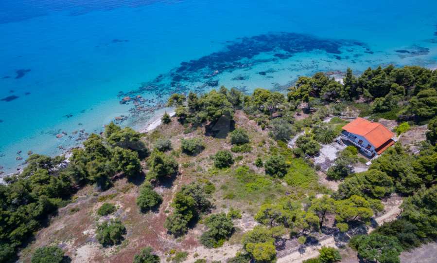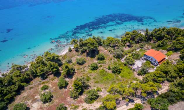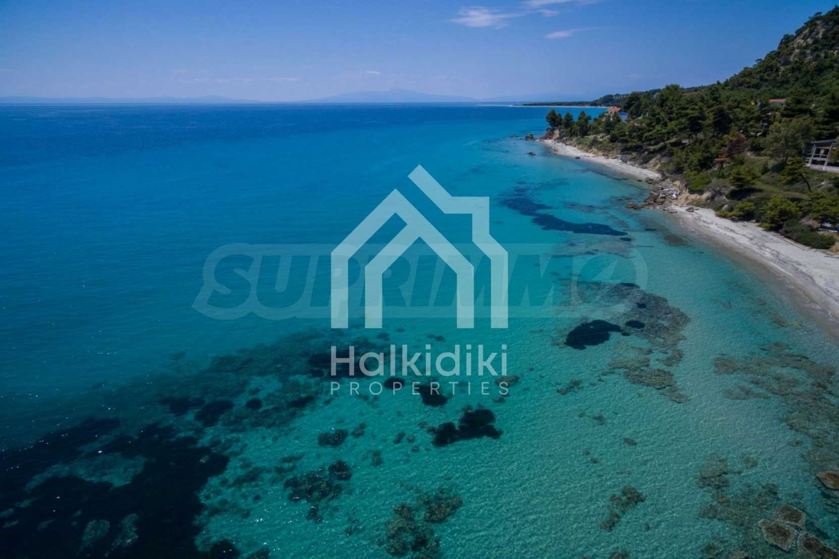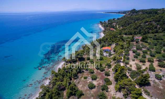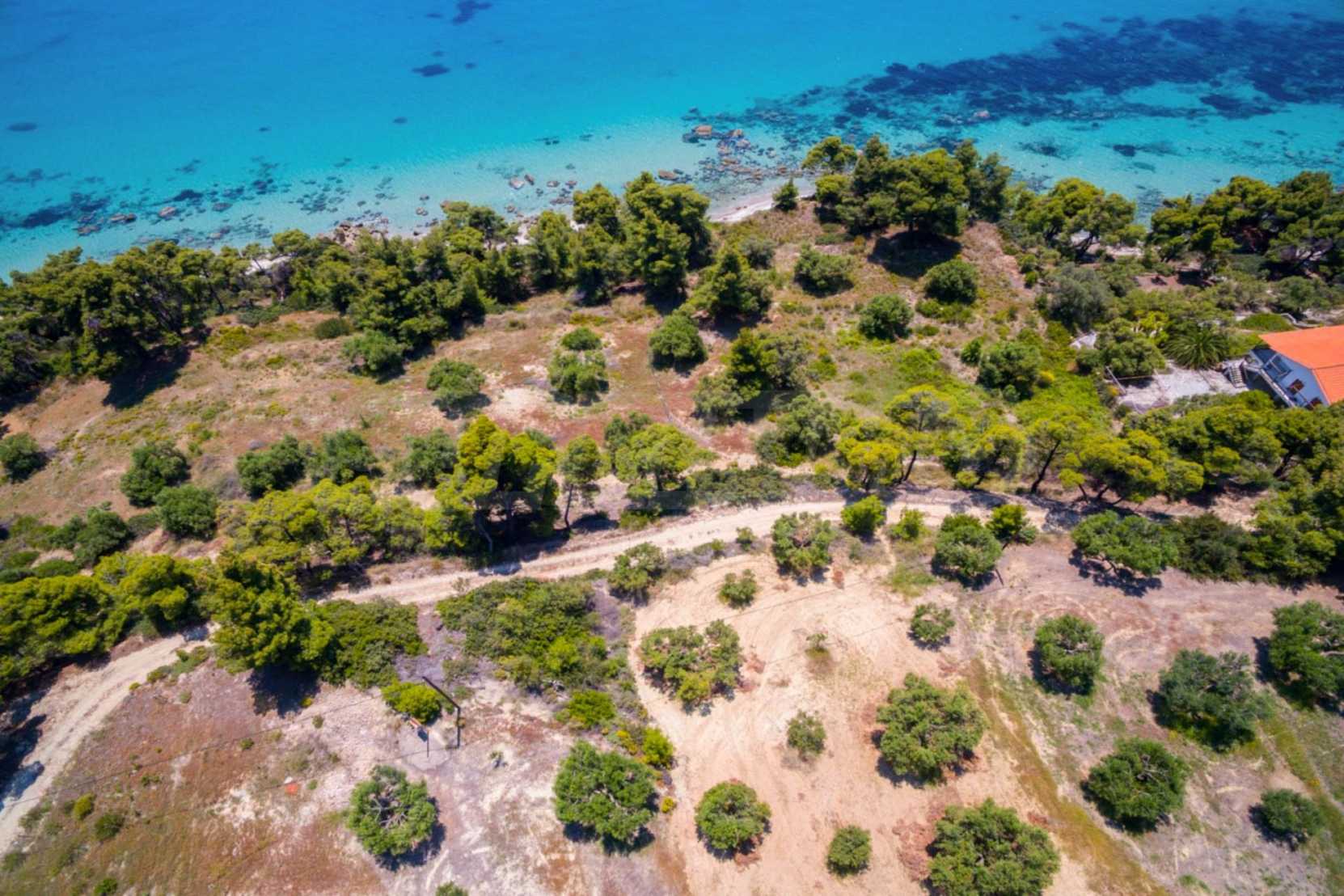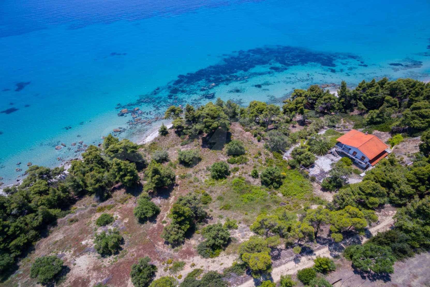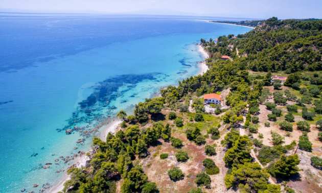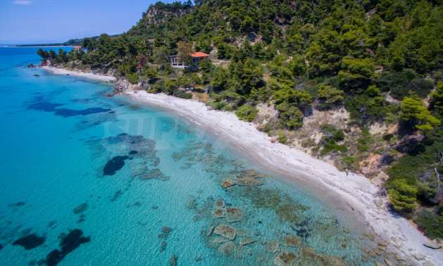 Засадено дърво поле, 4,320 кв.м, в Касандра, Халкидики с безпрепятствен постоянен изглед и с югозападна ориентация. Наклоненият имот е първо на морето, с изключителен достъп до плажа, и е на 1,8 км. от центъра на селото. Полето, което е пълно и застрояващо (може да се построи 200 кв.м), е идеално за изграждане на къща.
