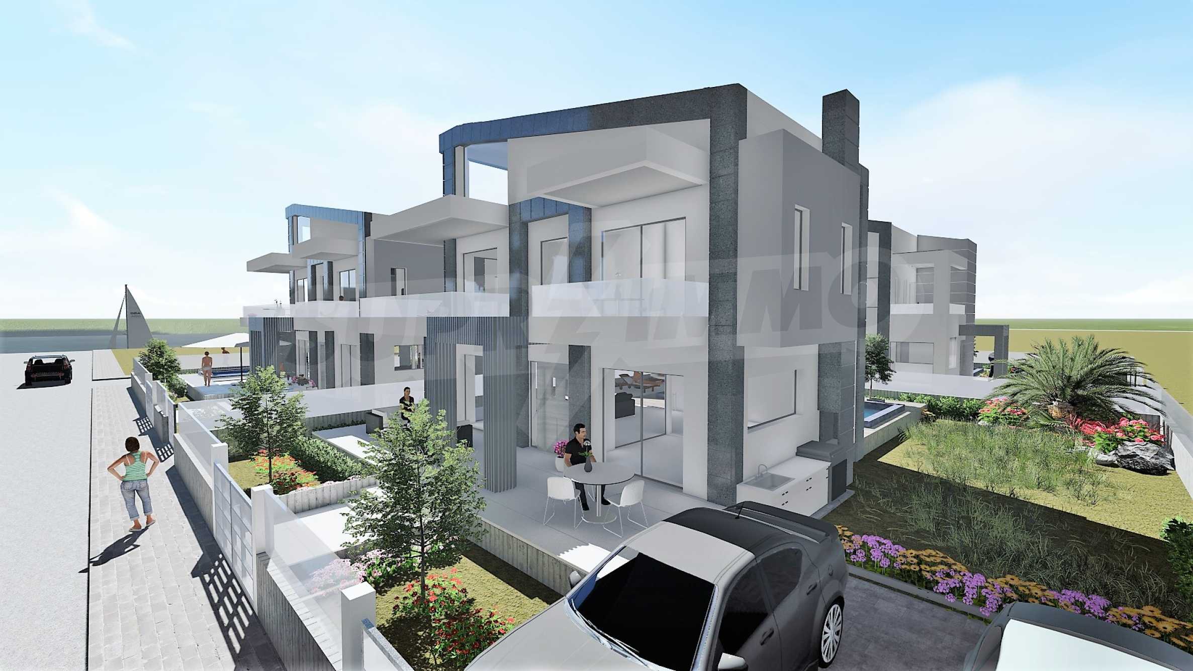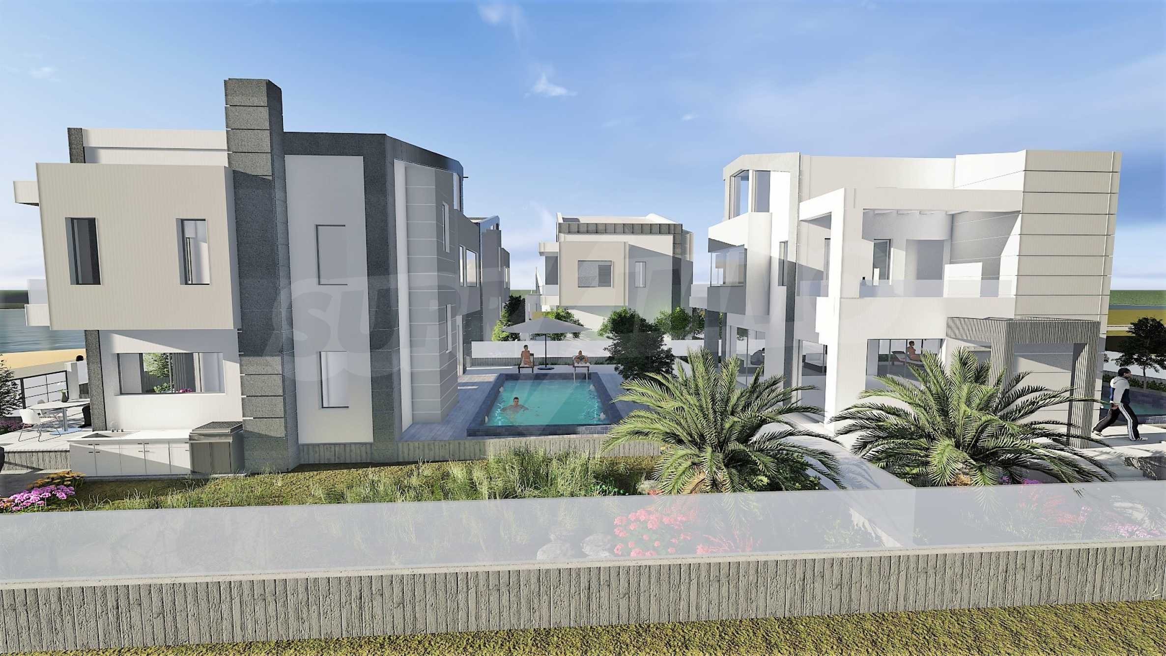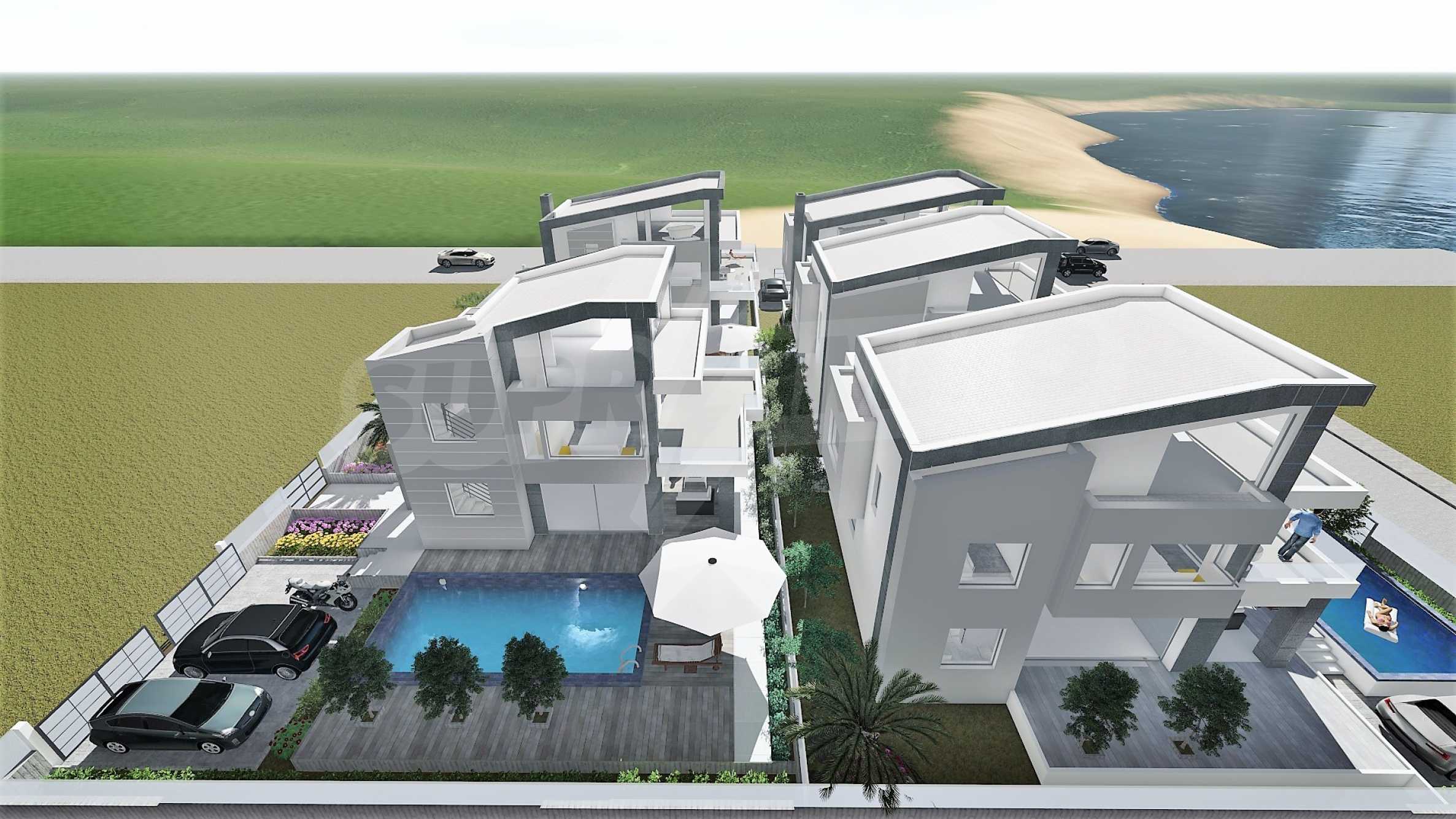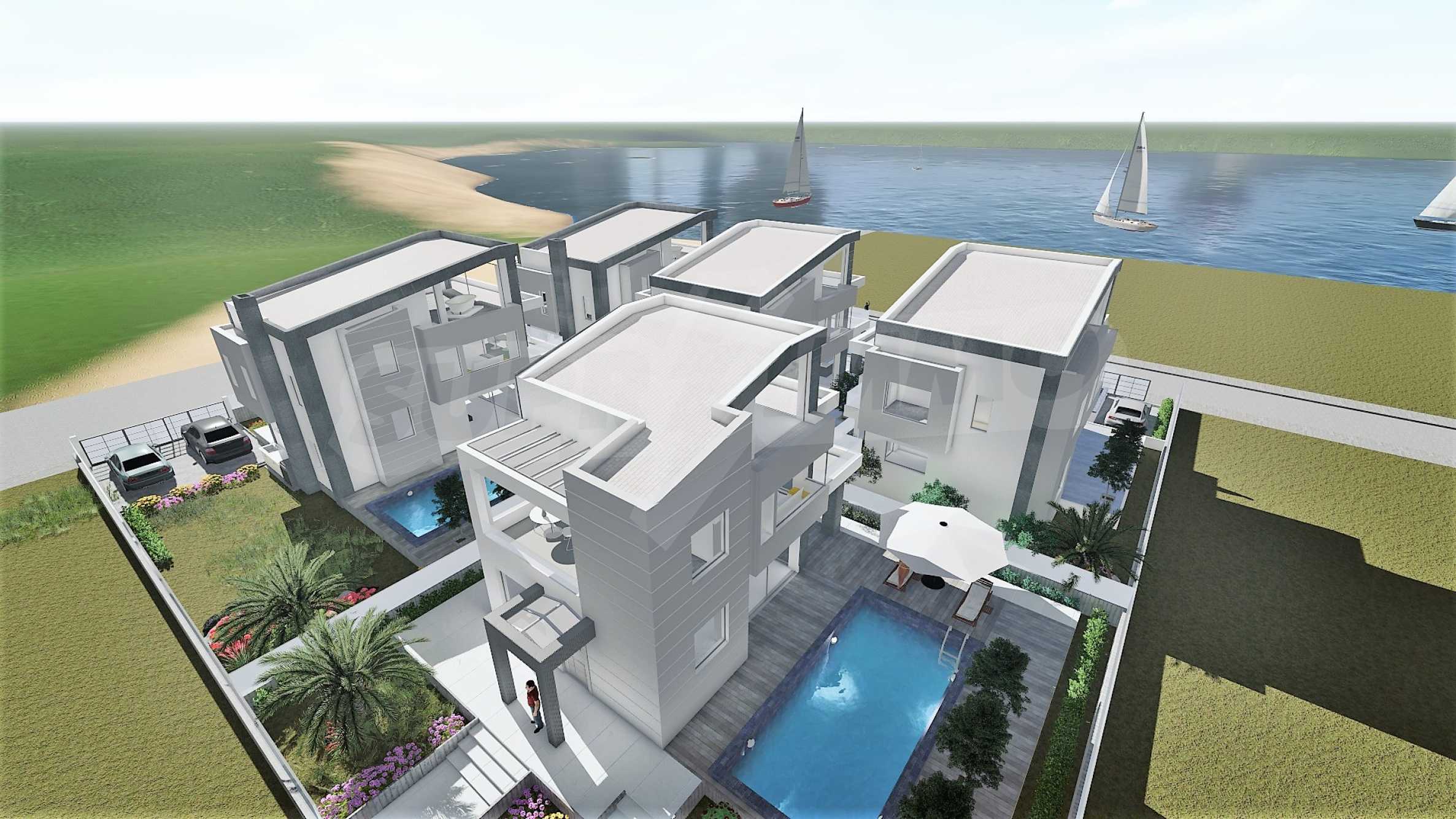 Тази изключителна къща е част от новострояща се група-комплекс от 14 самостоятелни вили първа линия на морето и е само на 30 м.от плажа. Красивите морски гледки от всички точки на имота са един допълнителен и безусловен плюс за него.