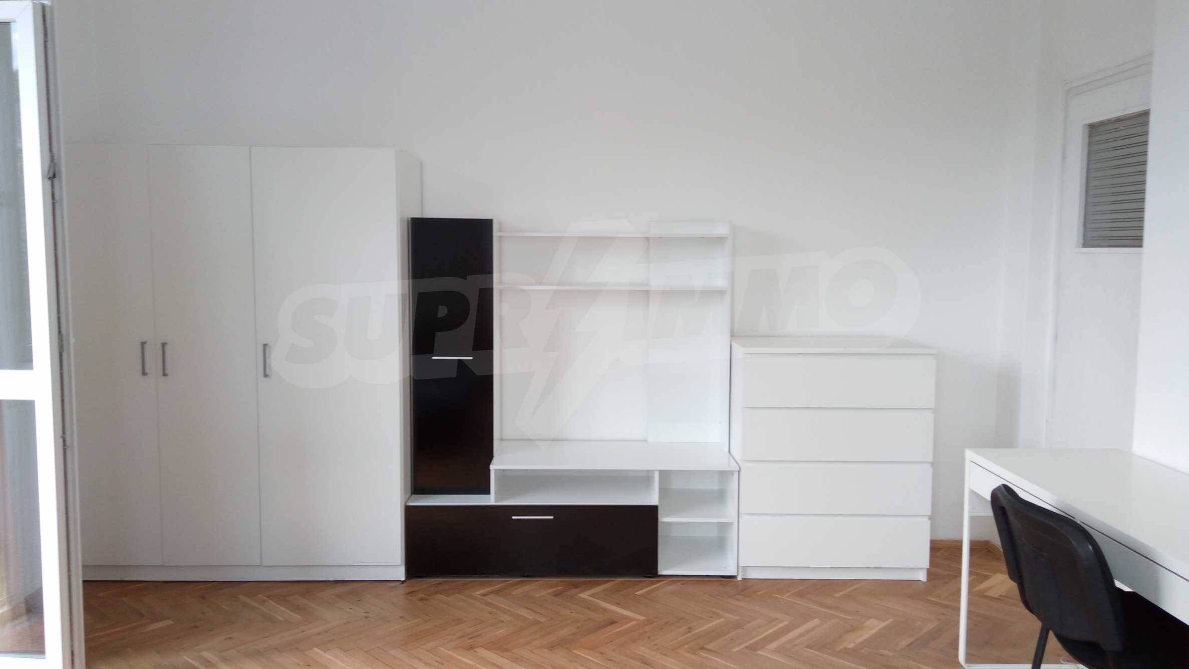 Апартаментът е след основен ремонт и се състои от хол с трапезна част и кухненски бокс, една спалня, малка тераса с гледка към улицата, баня с тоалетна. Обзавеждането и цялото оборудване са нови и неизползвани до сега. Апартаментът е оборудван с всичко необходимо. Изключително удобна локация до парк Заимов, бул. Мадрид, спирки на трамваи , автобуси. На по-малко от 10 мин. пеша се намира Метростанция, паметника на Васил Левски и Софийски университет.