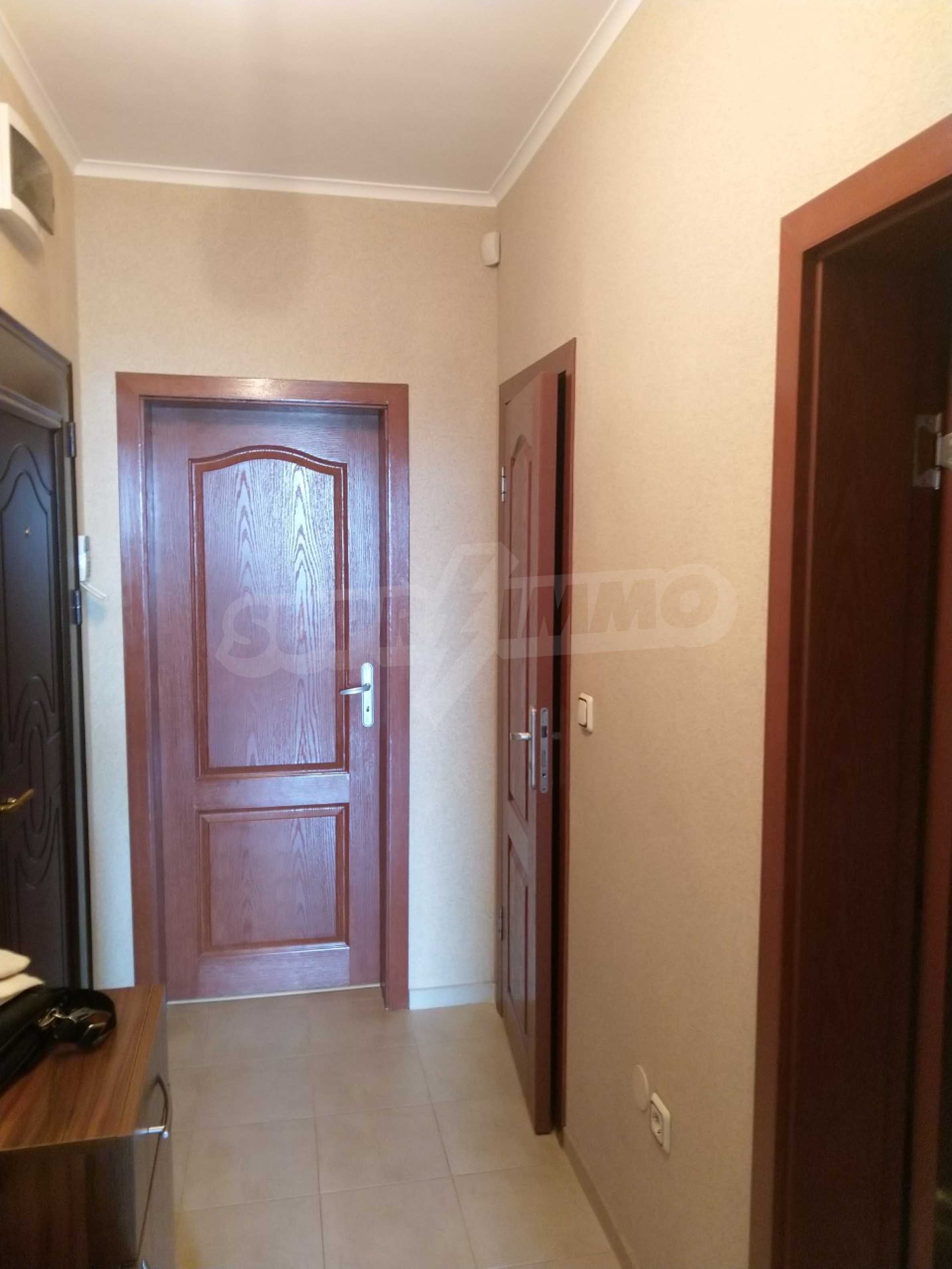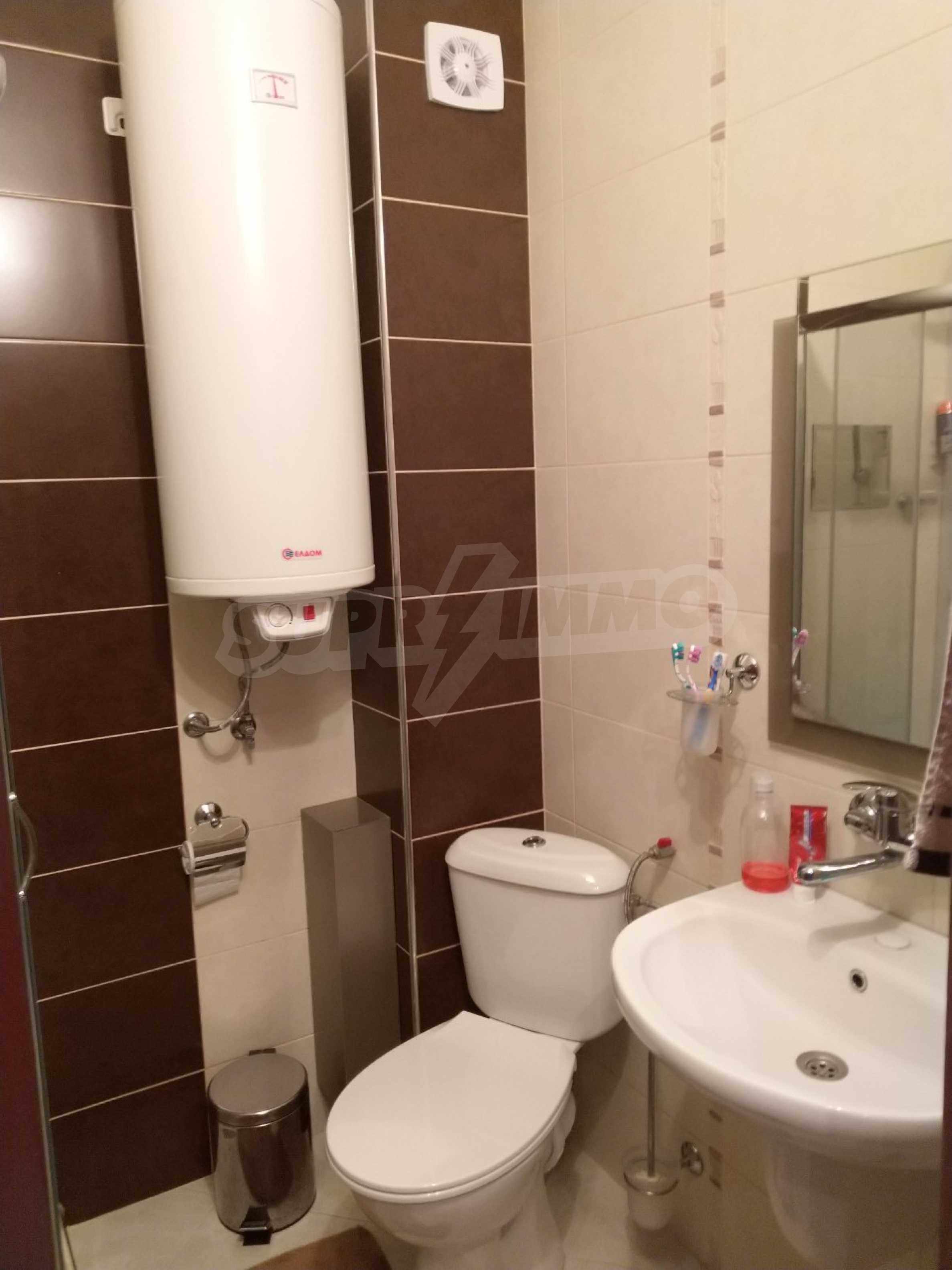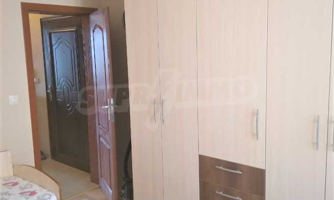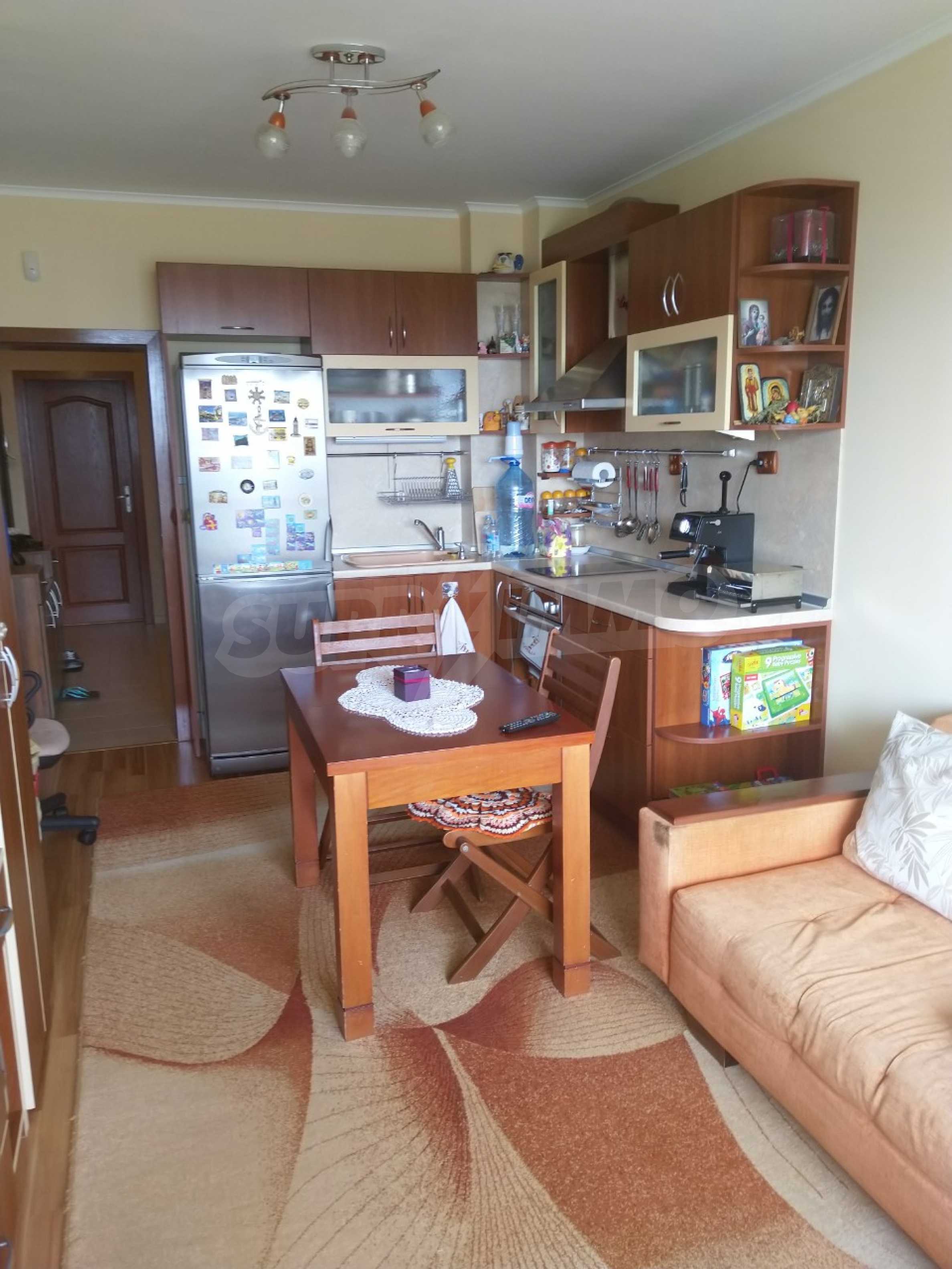 Жилището се продава обзаведено и оборудвано с всичко необходимо и представлява : антре, хол с кухня, излаз на панорамна безпрофилно остъклена южна тераса, спалня към вътрешен двор, баня с тоалетна в едно, килер-перално.