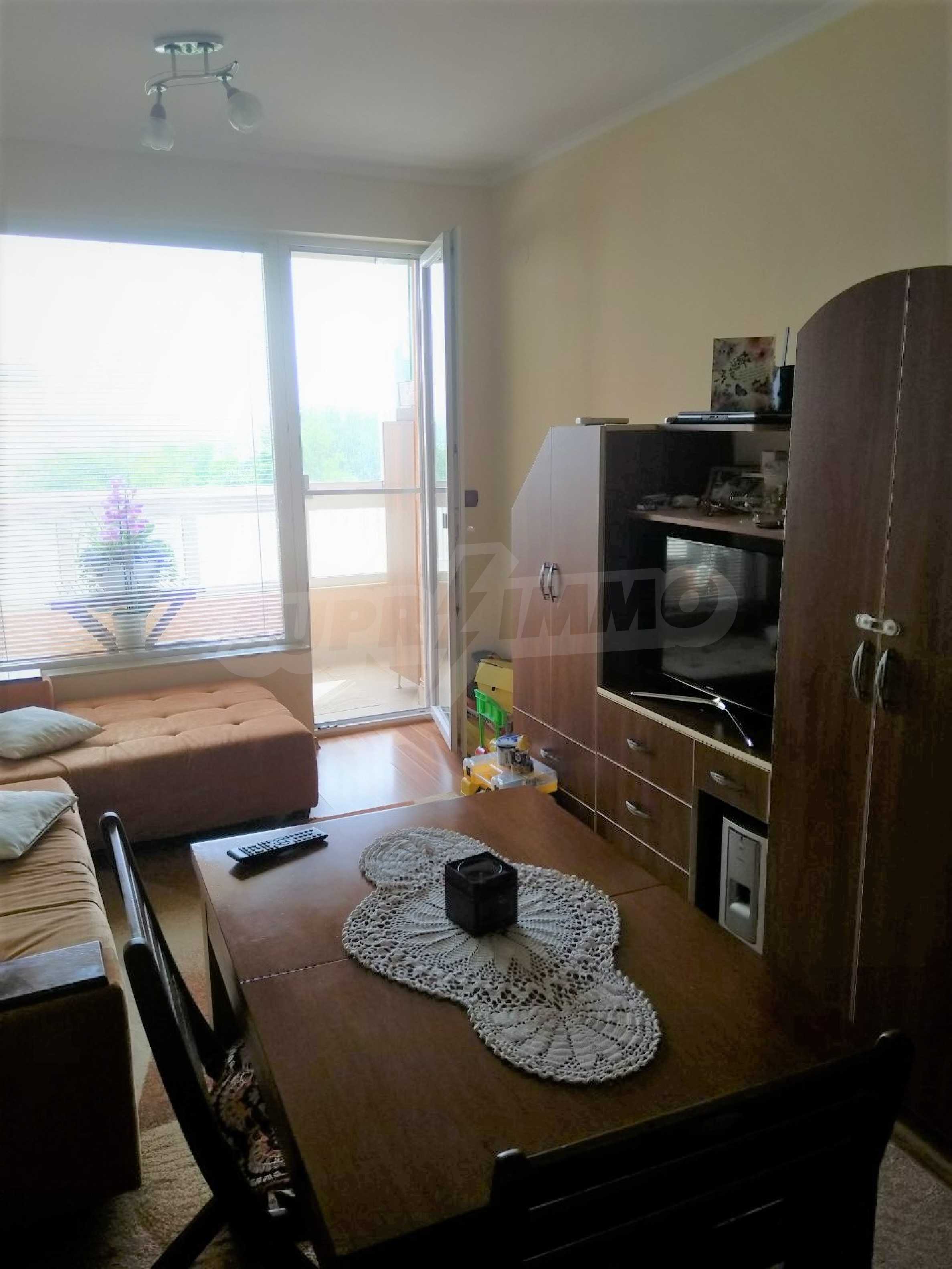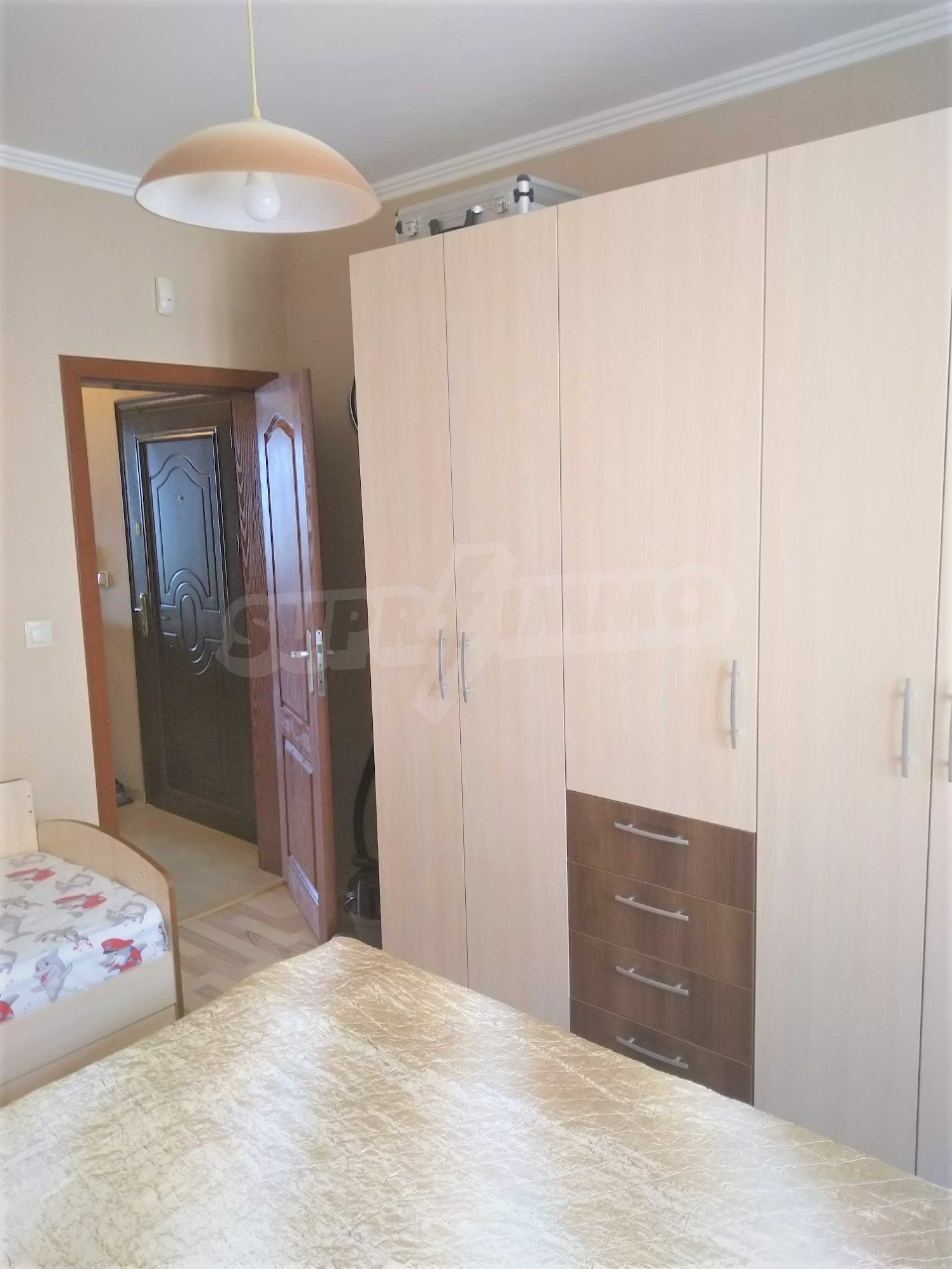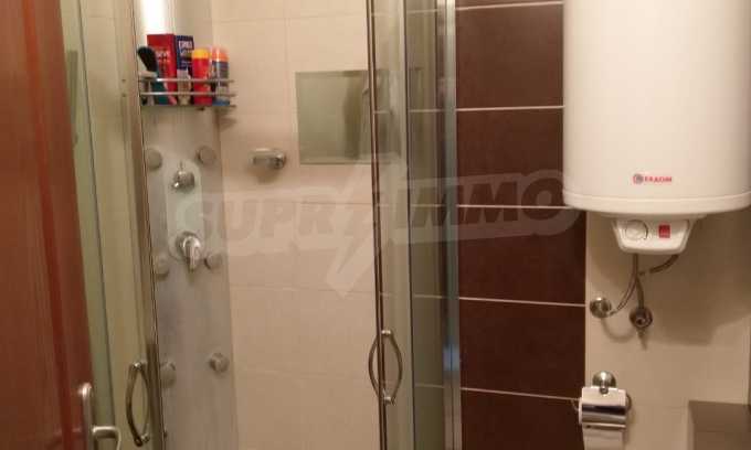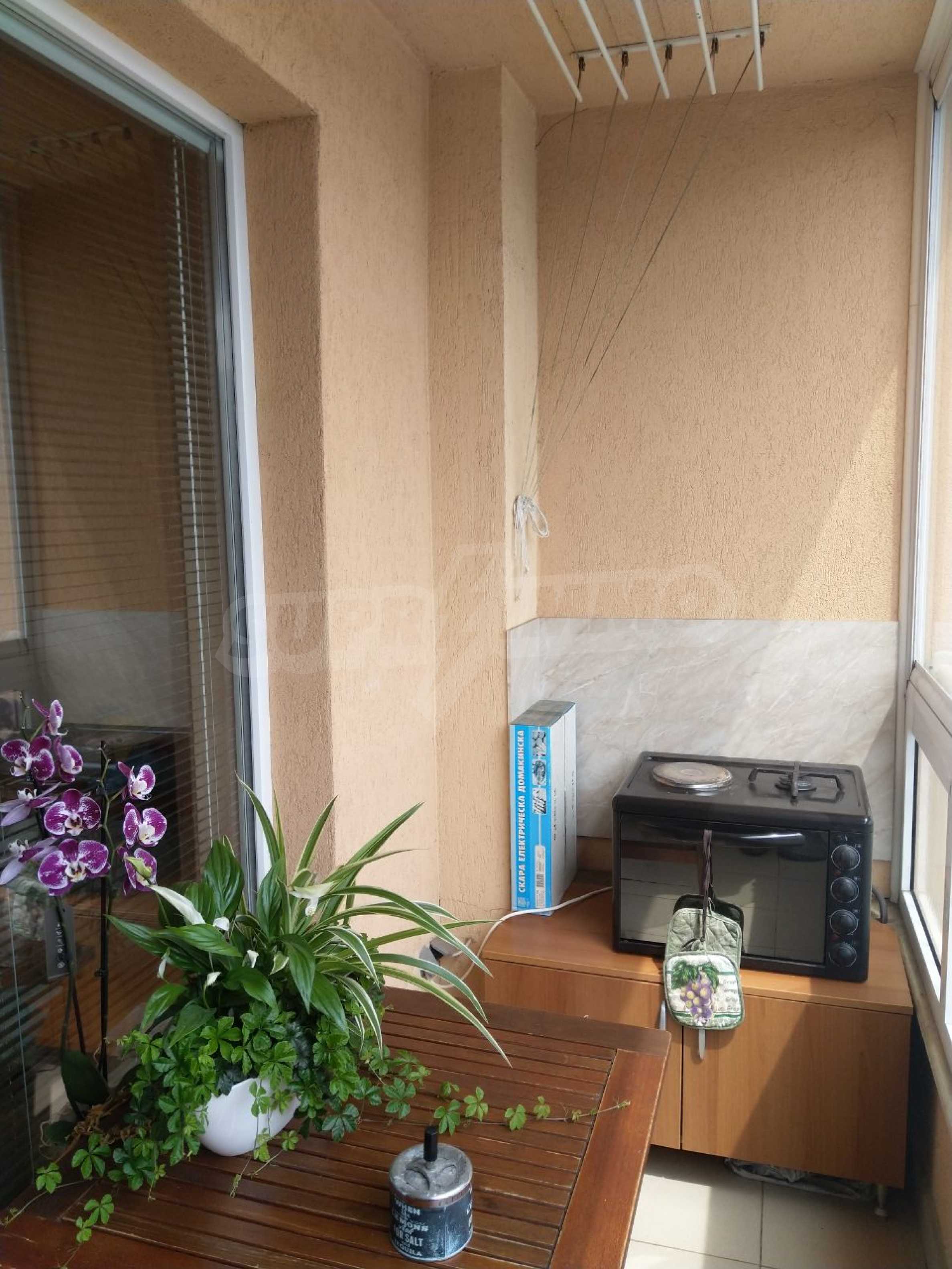 Жилището се продава обзаведено и оборудвано с всичко необходимо и представлява : антре, хол с кухня, излаз на панорамна безпрофилно остъклена южна тераса, спалня към вътрешен двор, баня с тоалетна в едно, килер-перално.