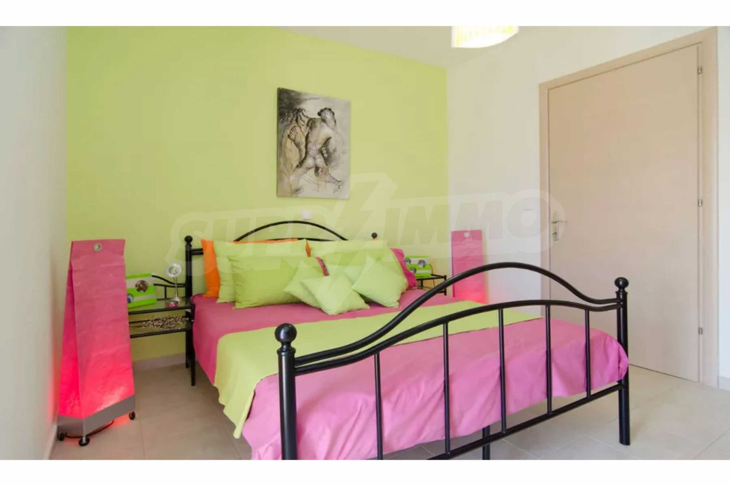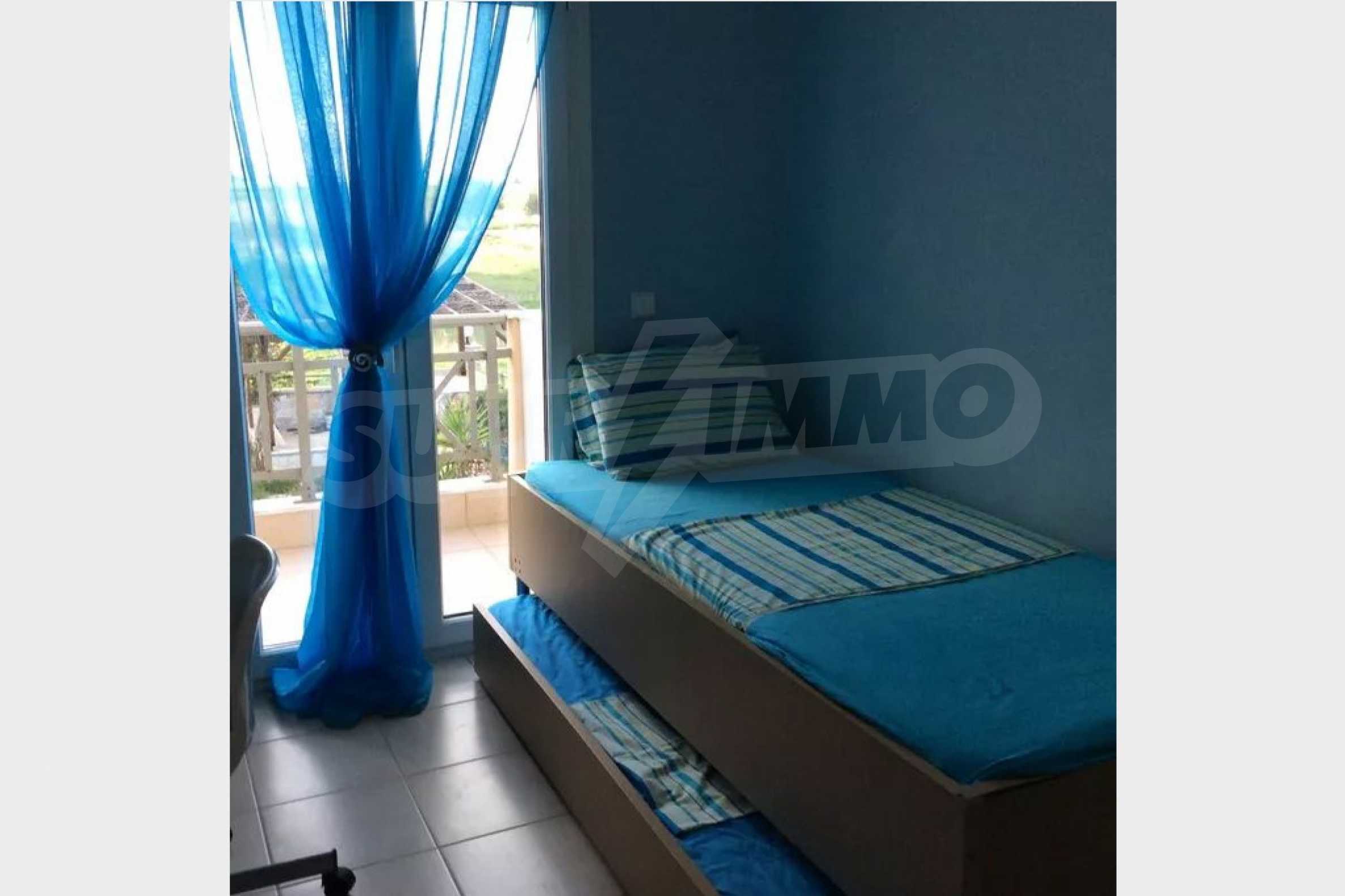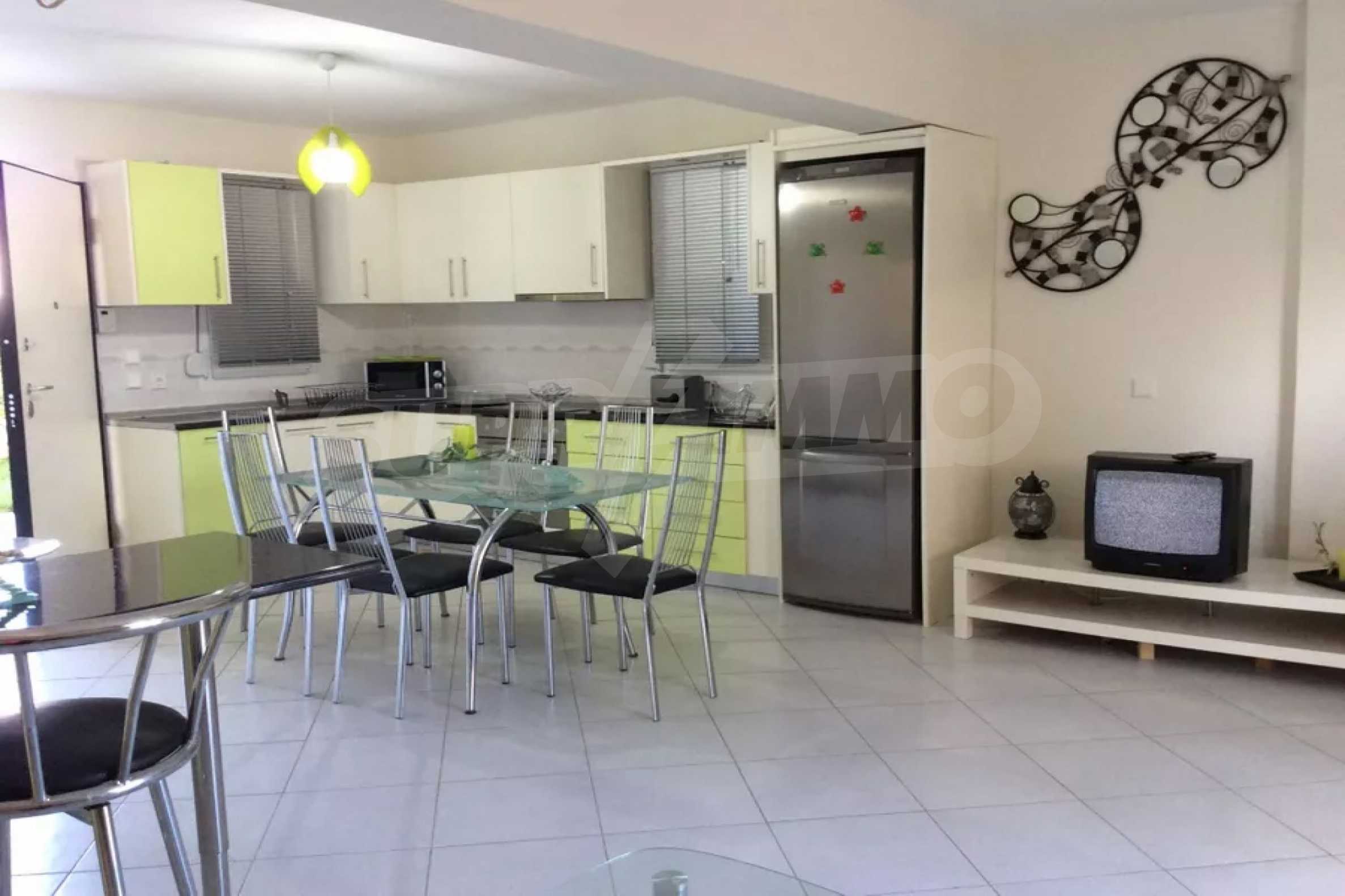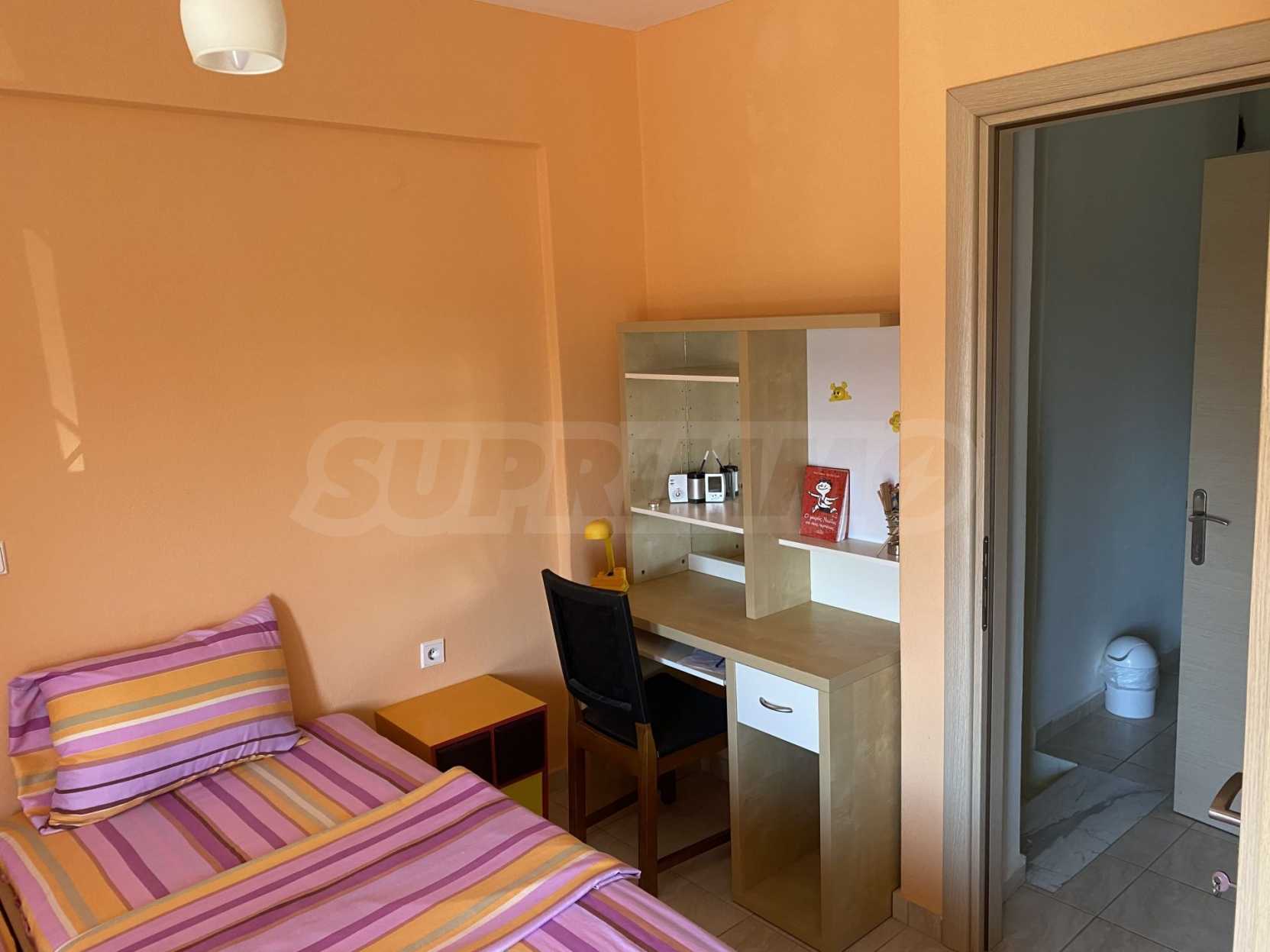 Красив мезонет, 128 кв.м, в Касандра, Халкидики с източна ориентация и с безпрепятствен постоянен изглед. Имотът е на 750 м. от плажа и на 400 м. от центъра на селото. Мезонетът е разделен на три нива, състоящ се от хол, свързан с кухнята, четири спални, пет бани и килер. Имотът също има големи тераси, място за паркиране и PVC дограма ,
