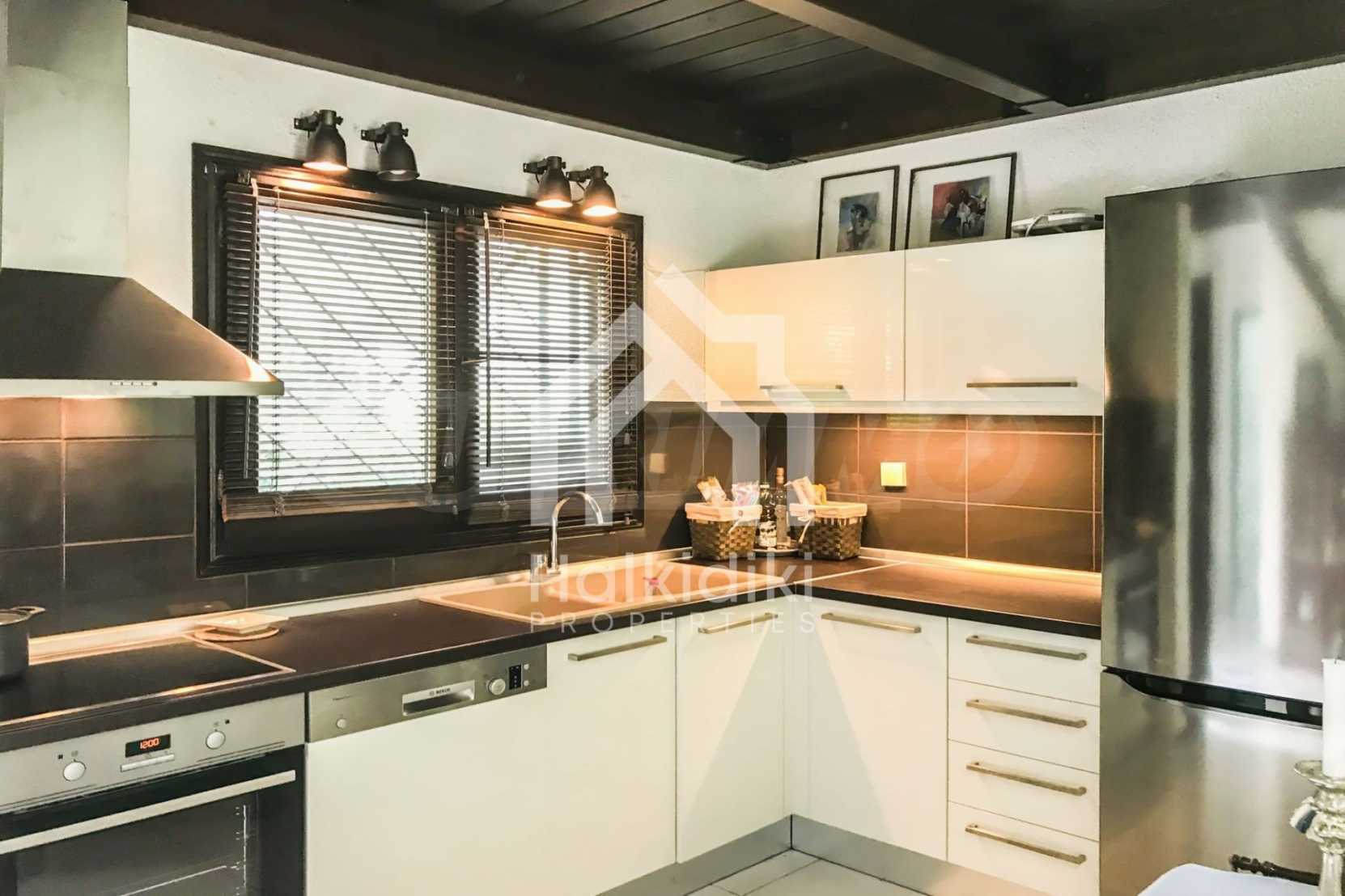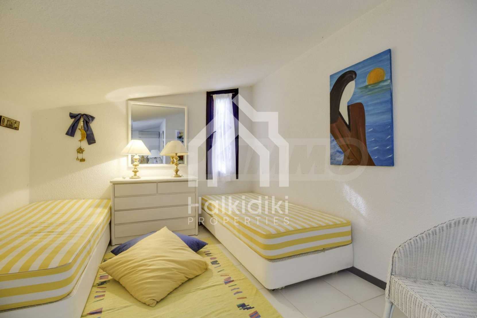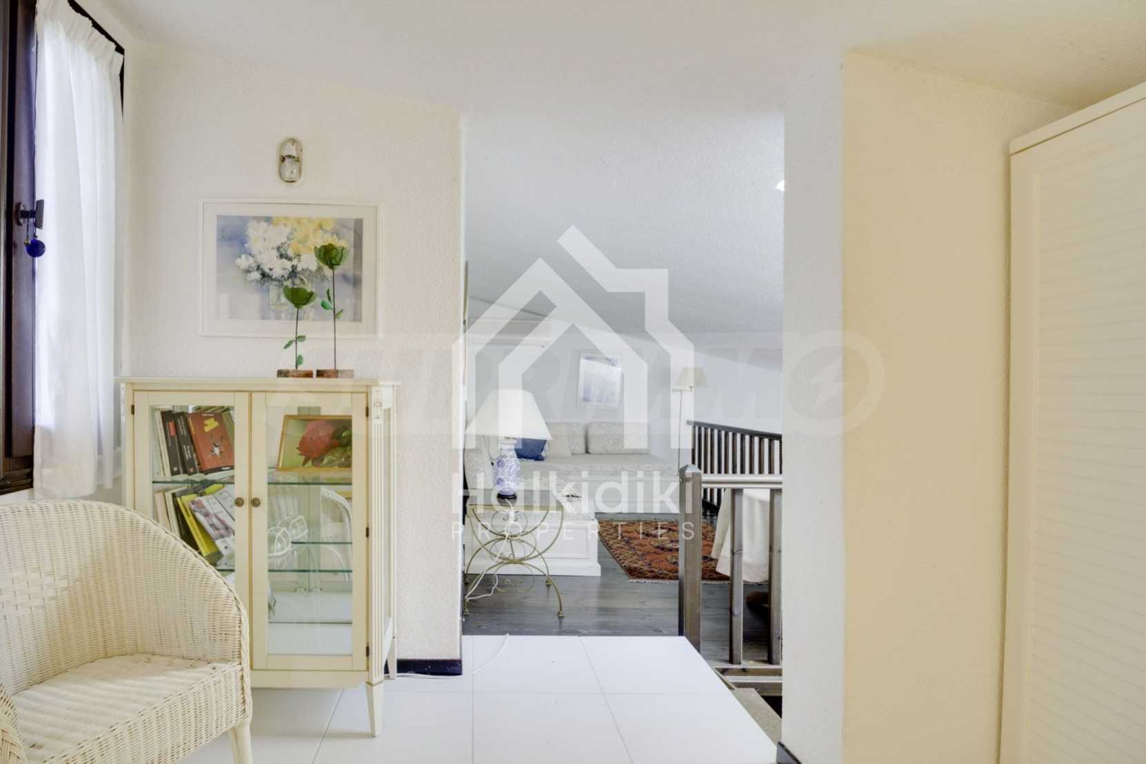 Прекрасен мезонет в Касандра, Халкидики, 80 кв.м, заобиколен от пейзаж с голяма красота, който плавно се съчетава с простата декорация и високата естетика. Къщата е близо до плажа и централния пазар на селото. Той е заобиколен от 780 кв.м градина и разполага с открит басейн, барбекю и паркинг. Интериорът е напълно обзаведен и оборудван, като предлага много удобства.