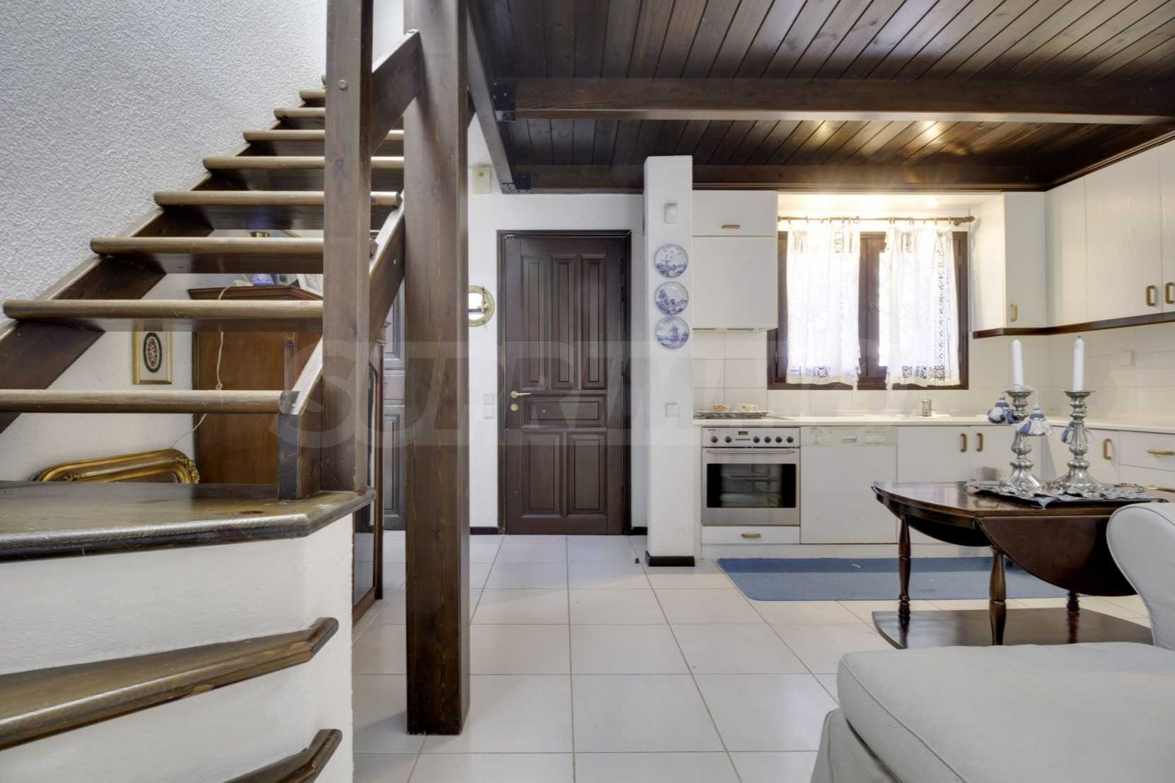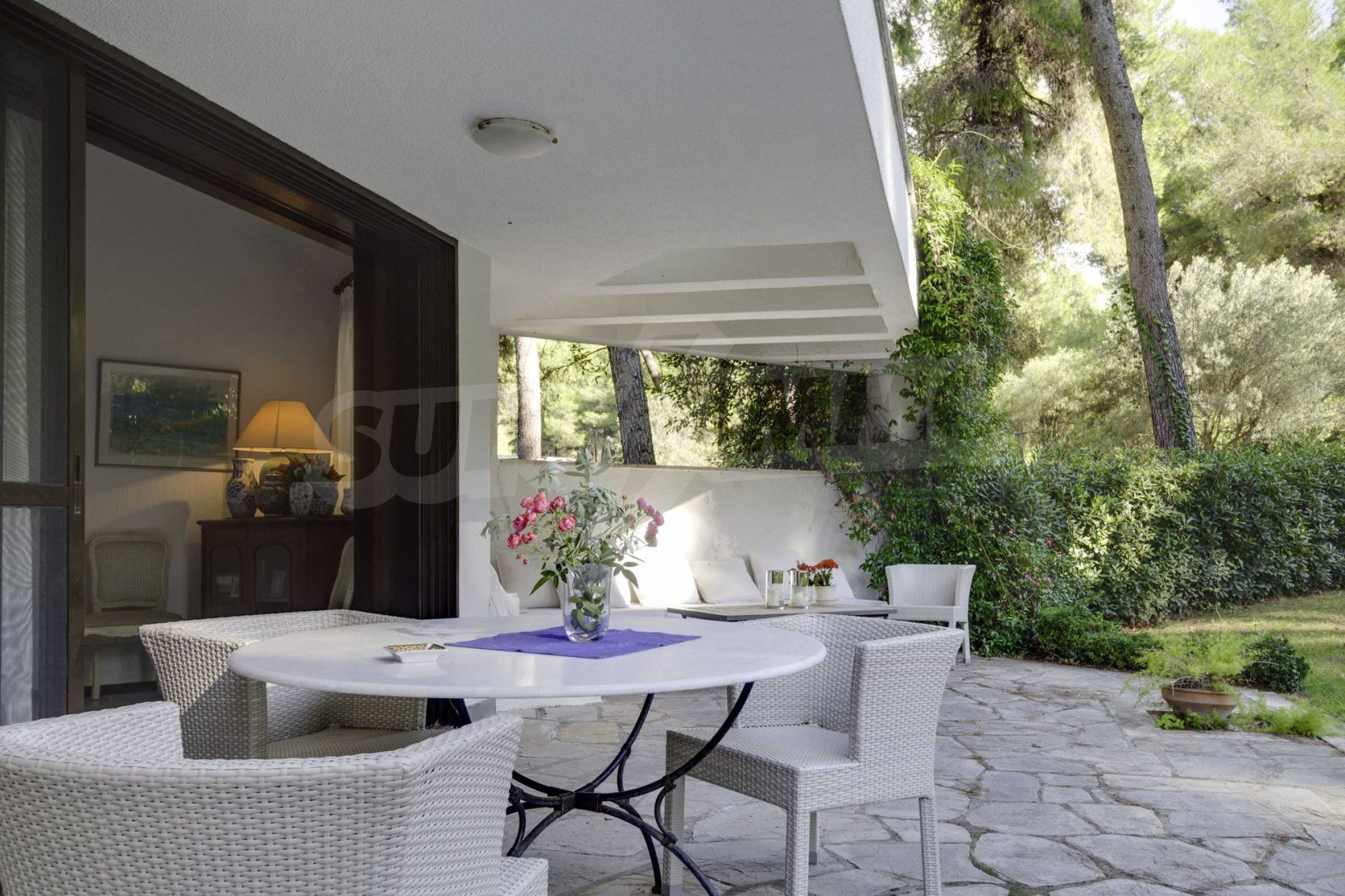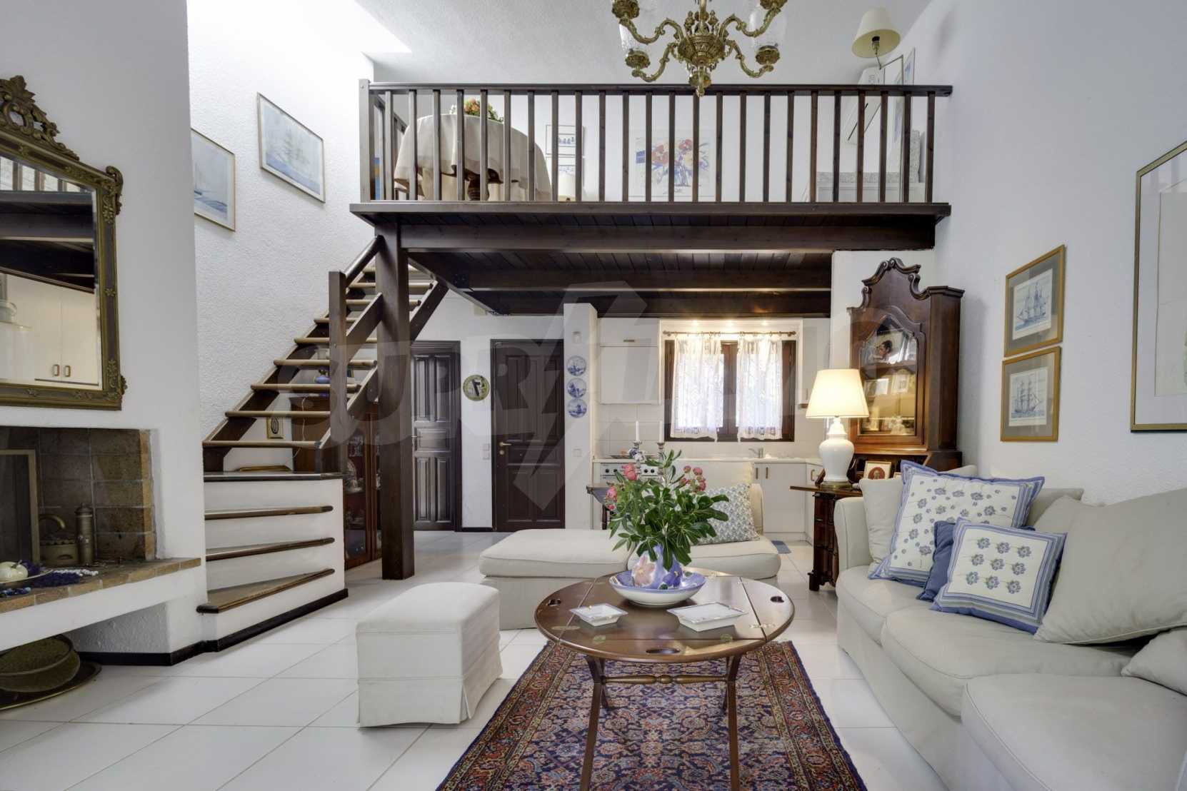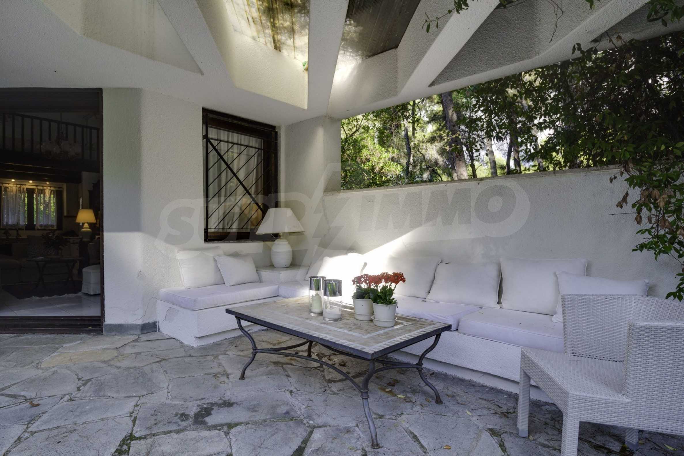Прекрасен мезонет в Касандра, Халкидики, 80 кв.м, заобиколен от пейзаж с голяма красота, който плавно се съчетава с простата декорация и високата естетика. Къщата е близо до плажа и централния пазар на селото. Той е заобиколен от 780 кв.м градина и разполага с открит басейн, барбекю и паркинг. Интериорът е напълно обзаведен и оборудван, като предлага много удобства.