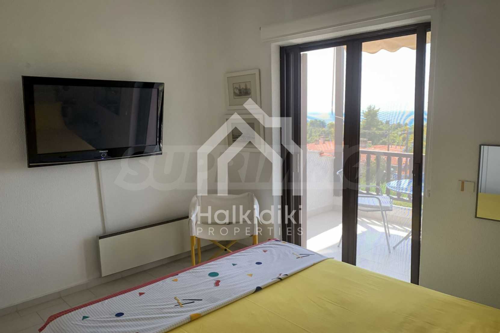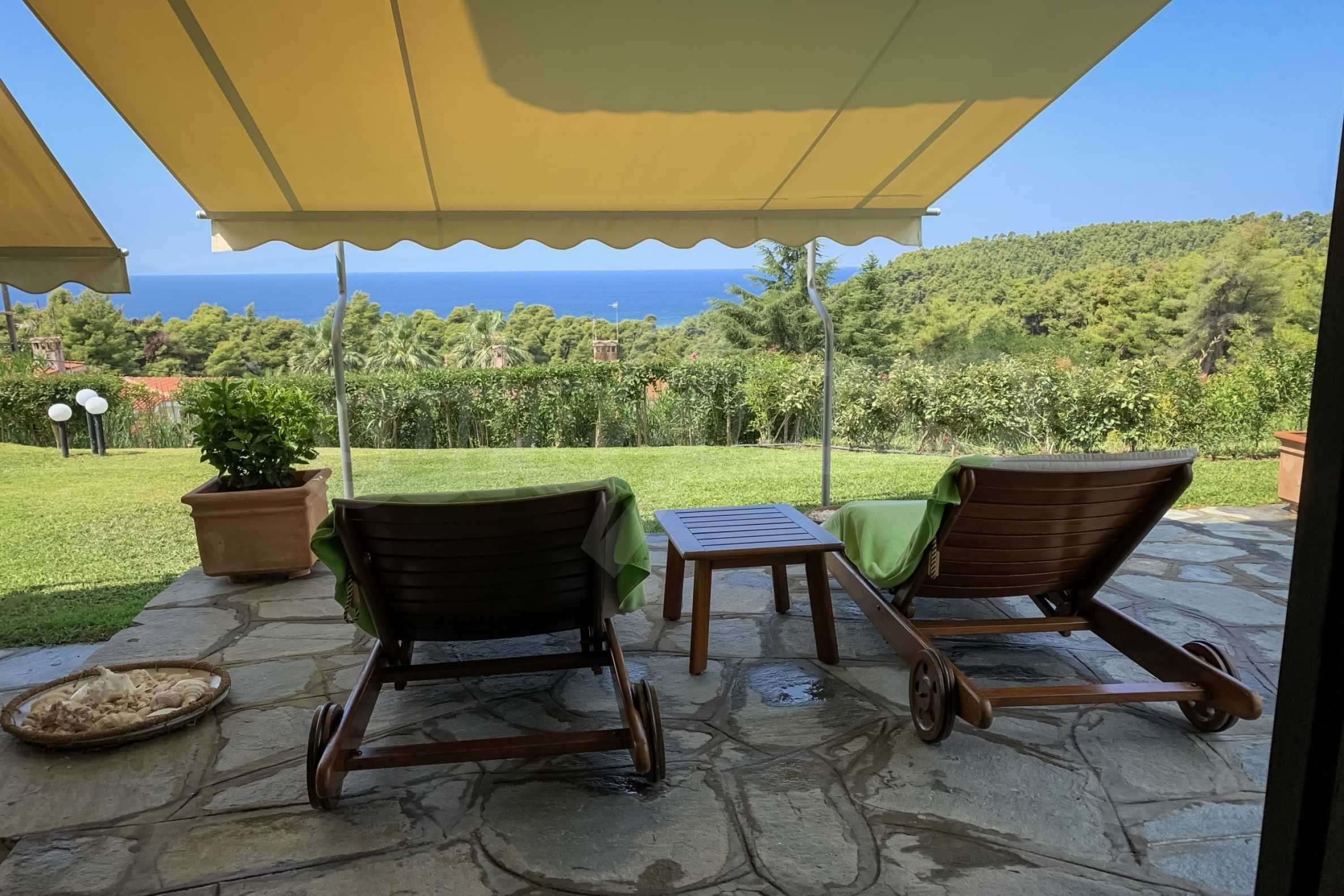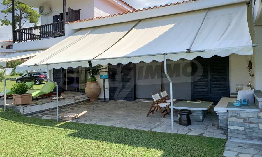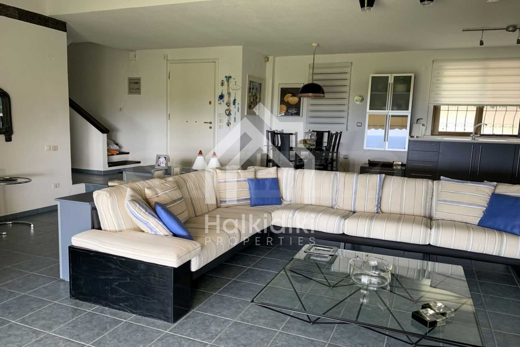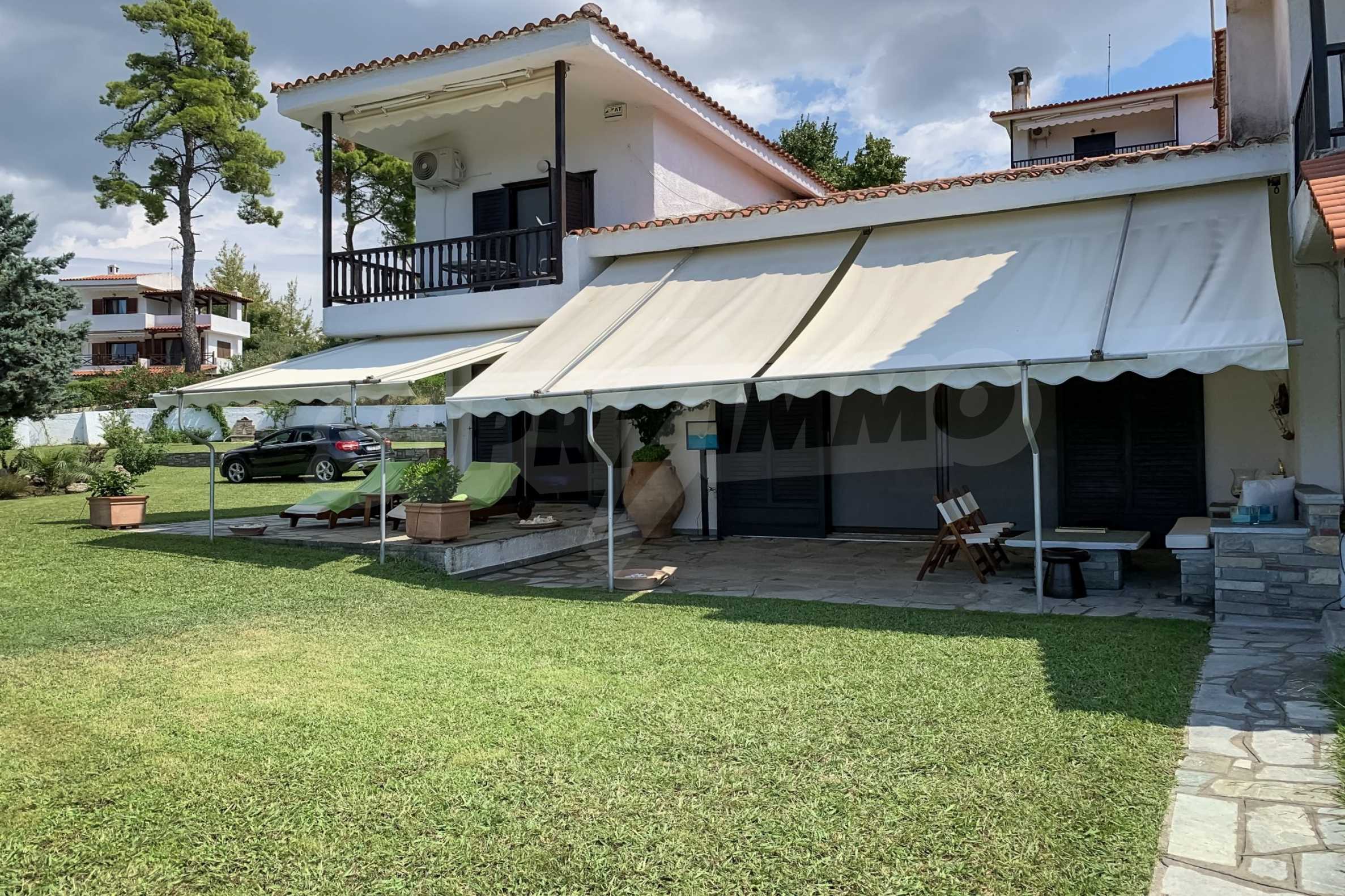 Обзаведена самостоятелна къща, 250 кв.м, в Касандра, Халкидики с безпрепятствен постоянен изглед към морето и със западна ориентация. Имотът е на 700 м. от плажа и на 2 км. от центъра на селото. Къщата е разделена на три нива, състояща се от хол, свързан с кухнята, три спални, две бани, тоалетна и складово помещение. Имотът също има просторна градина, слънчев нагревател и павилион.
