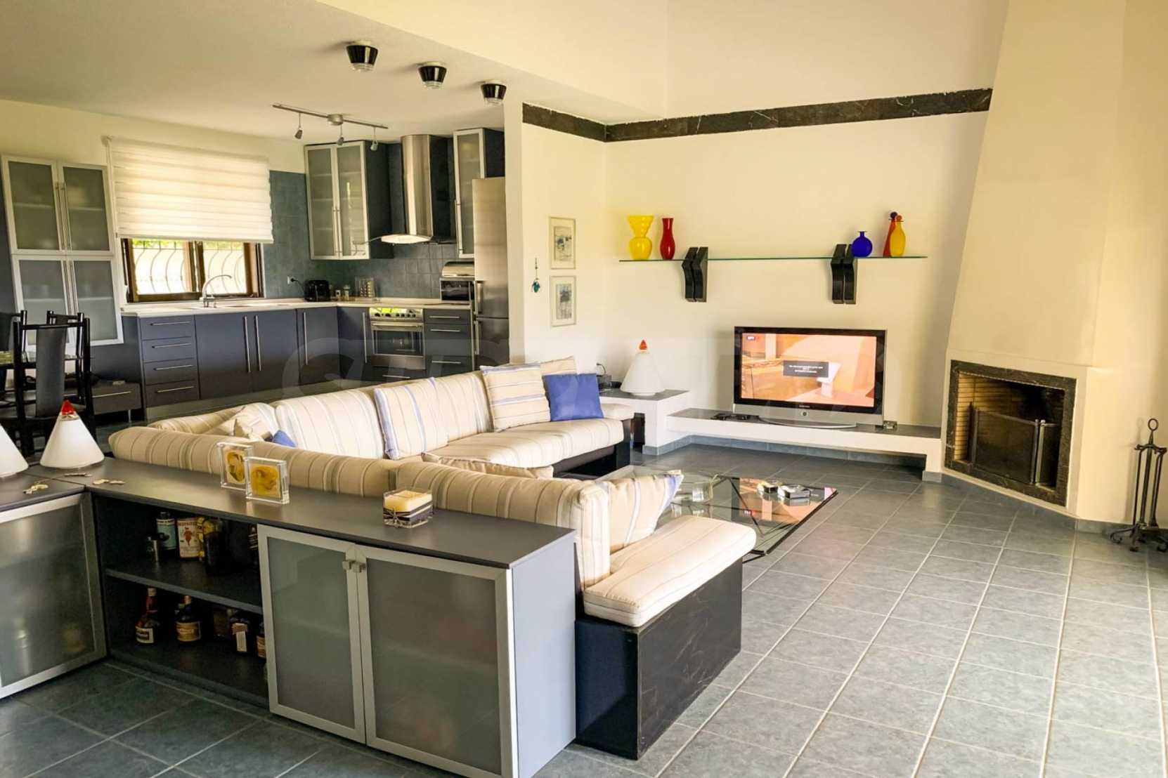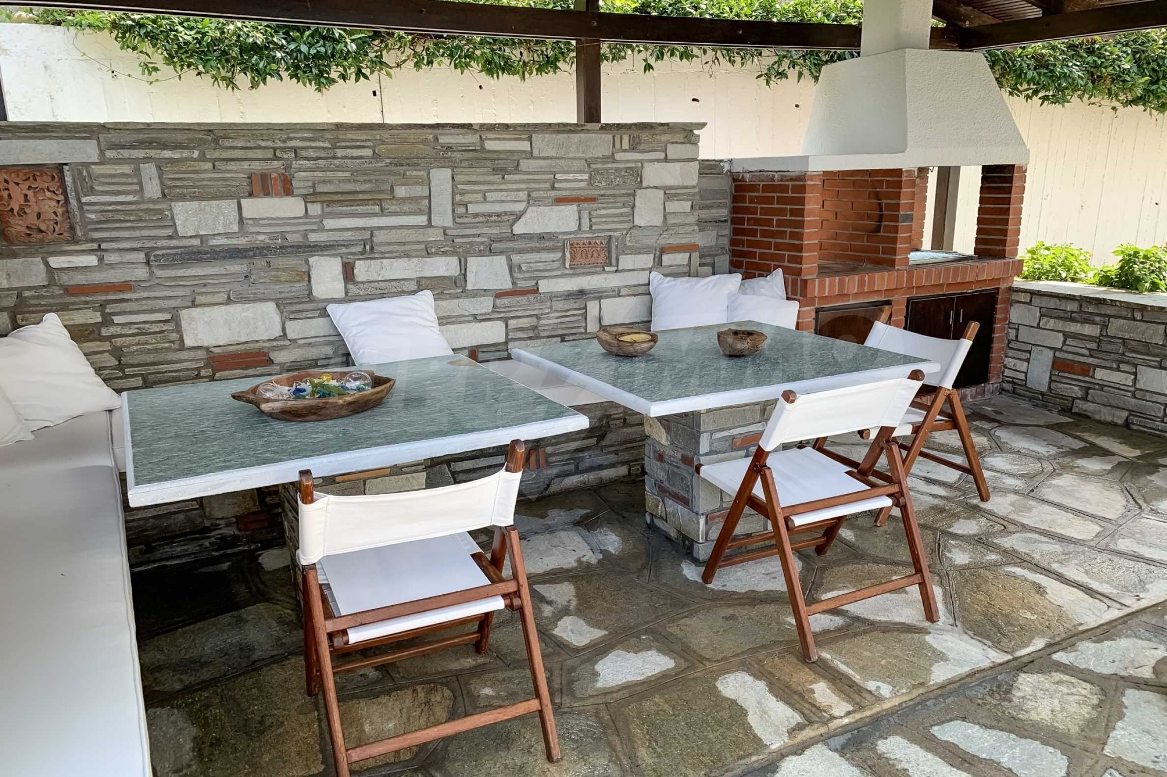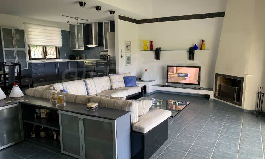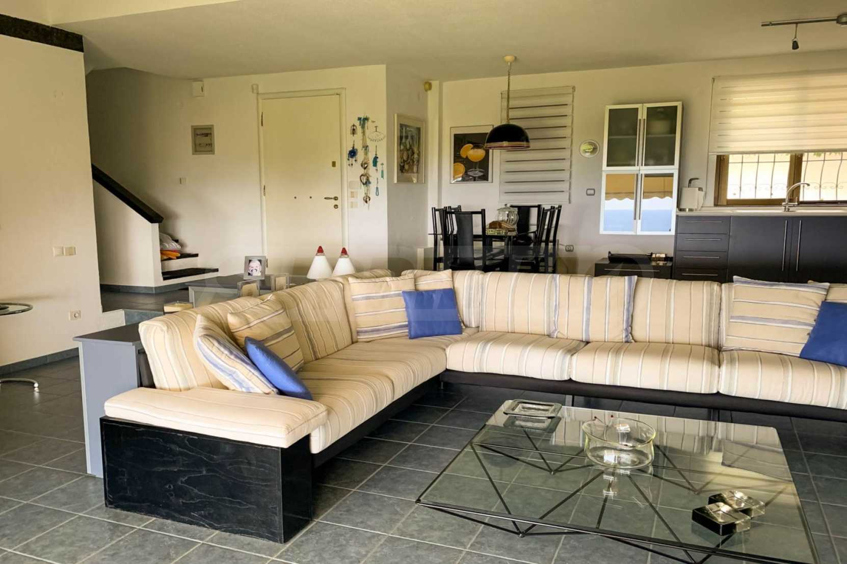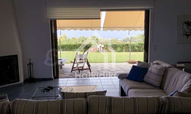 Обзаведена самостоятелна къща, 250 кв.м, в Касандра, Халкидики с безпрепятствен постоянен изглед към морето и със западна ориентация. Имотът е на 700 м. от плажа и на 2 км. от центъра на селото. Къщата е разделена на три нива, състояща се от хол, свързан с кухнята, три спални, две бани, тоалетна и складово помещение. Имотът също има просторна градина, слънчев нагревател и павилион.