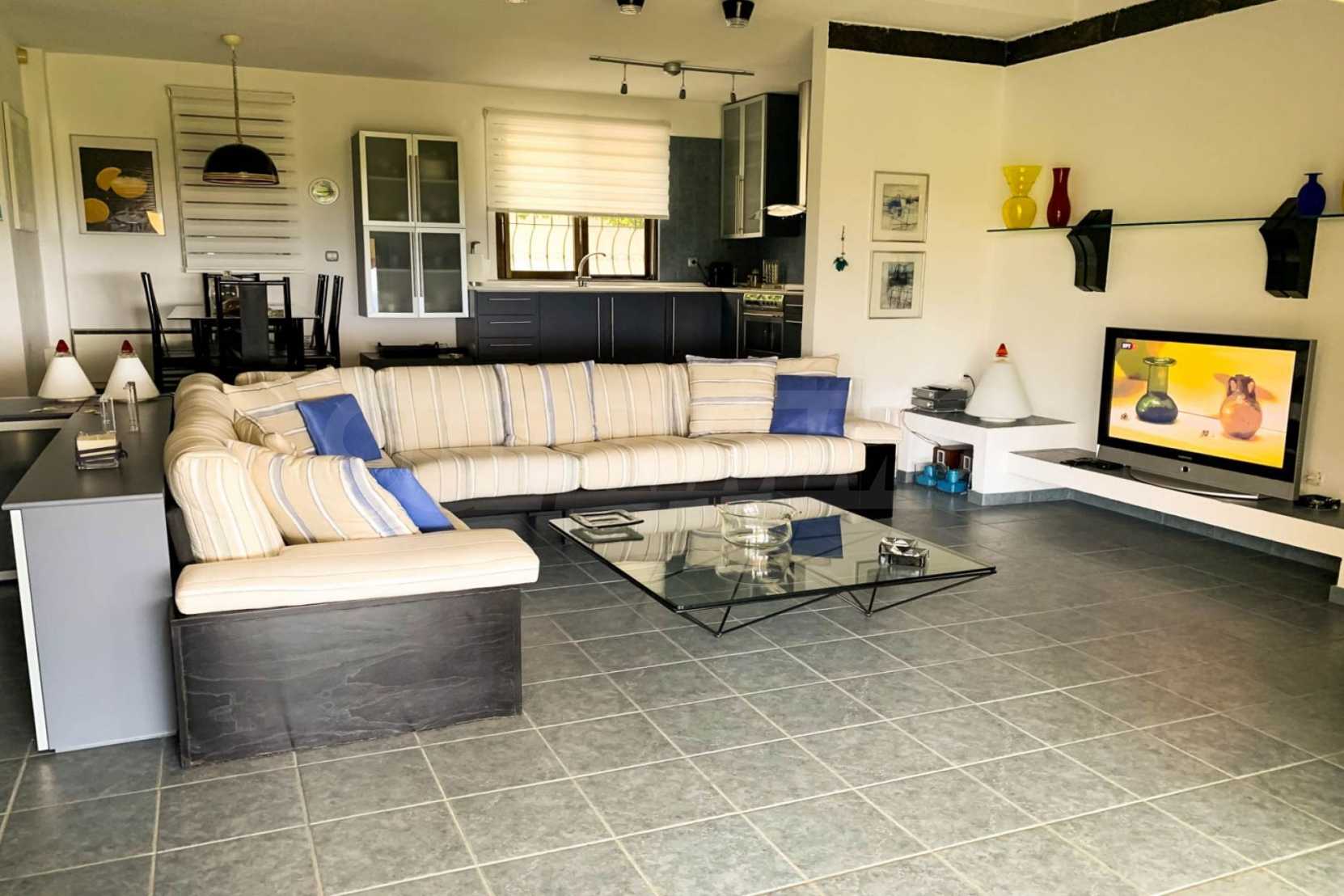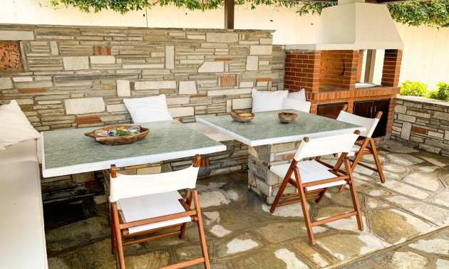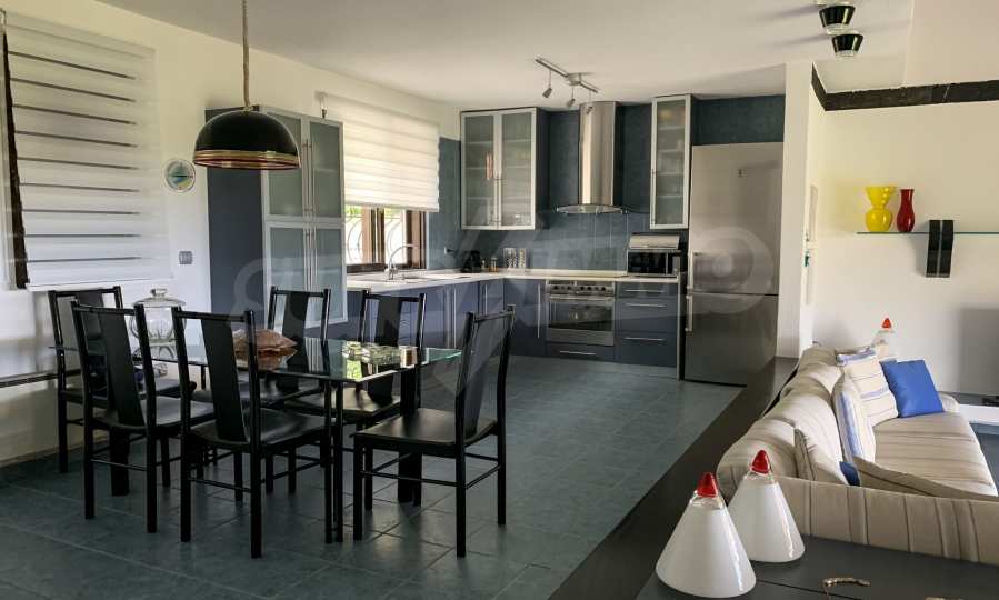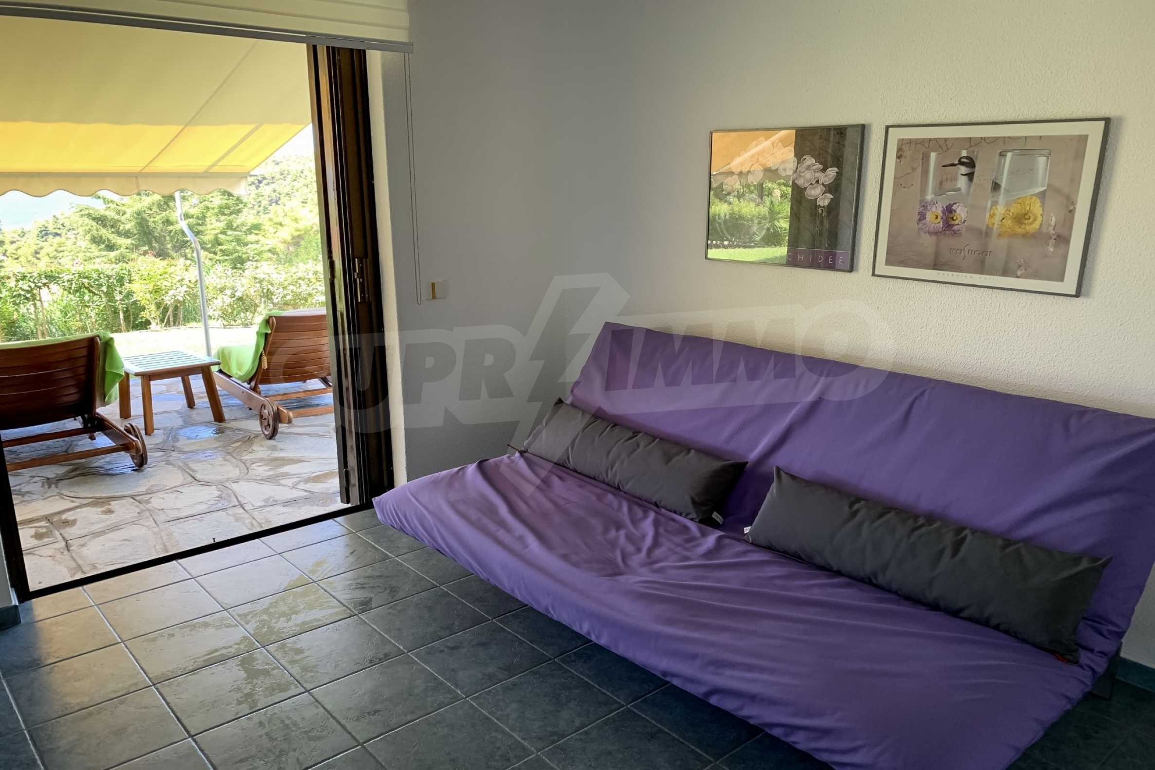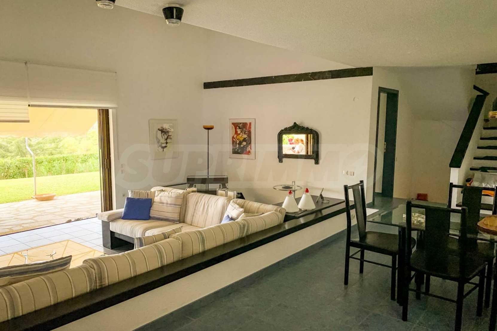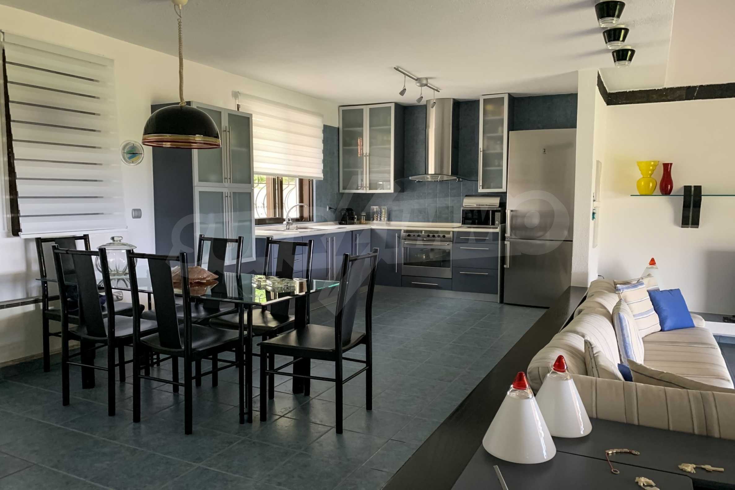 Обзаведена самостоятелна къща, 250 кв.м, в Касандра, Халкидики с безпрепятствен постоянен изглед към морето и със западна ориентация. Имотът е на 700 м. от плажа и на 2 км. от центъра на селото. Къщата е разделена на три нива, състояща се от хол, свързан с кухнята, три спални, две бани, тоалетна и складово помещение. Имотът също има просторна градина, слънчев нагревател и павилион.