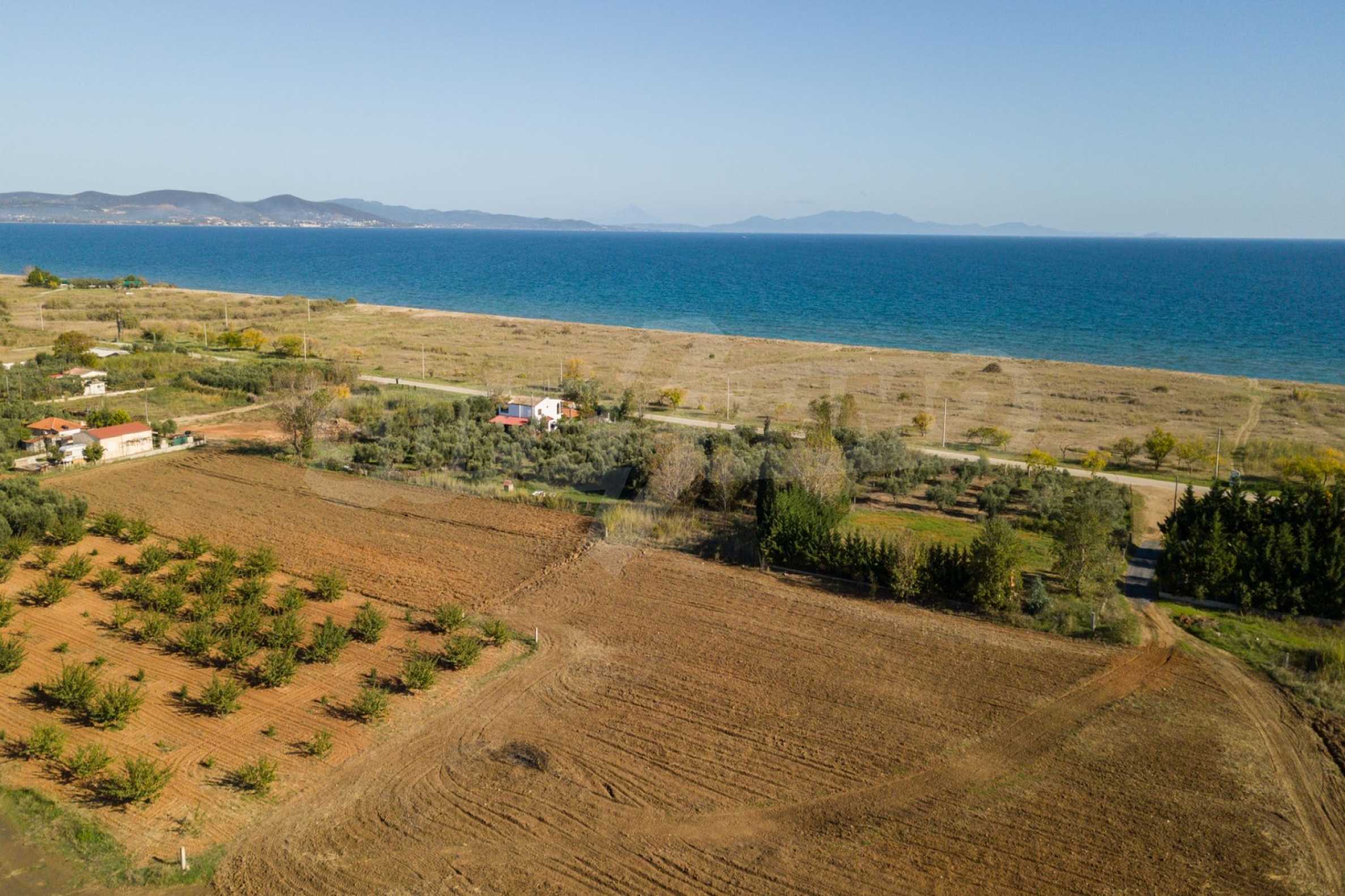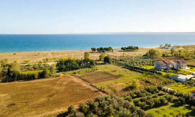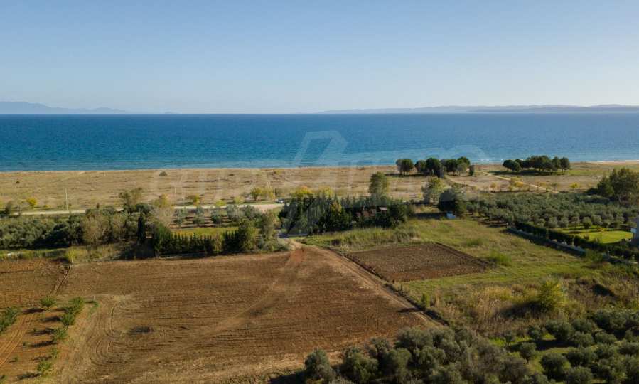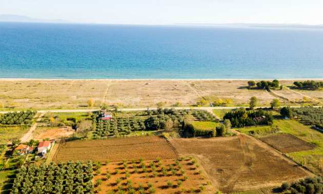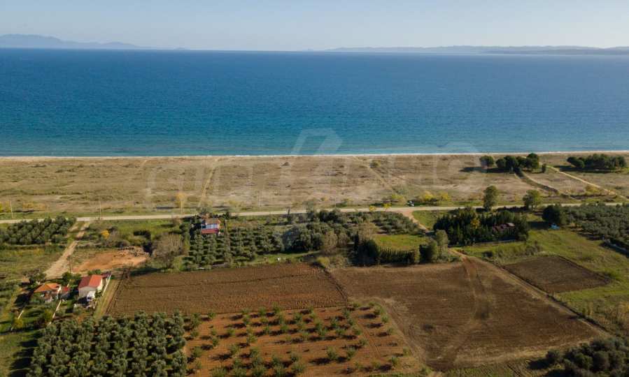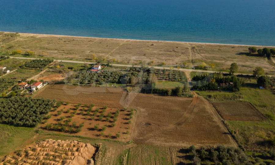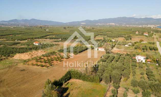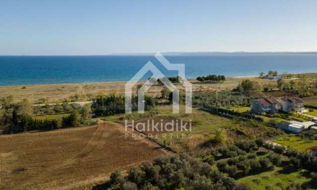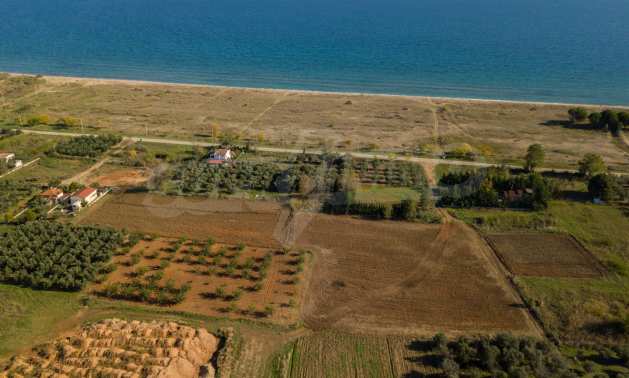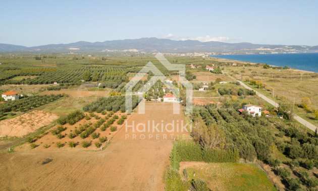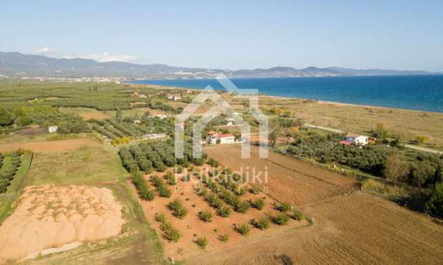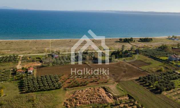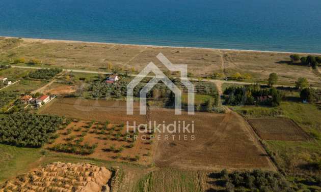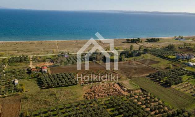 Плоско поле, 5800 кв.м, в Касандра, Халкидики с безпрепятствен постоянен изглед и с югоизточна ориентация. Имотът е на 50 m. от плажа и комплекс от къщи. Полето е пълно и застрояващо (може да се построи 200 кв.м). Имотът е идеален за изграждане на вила.