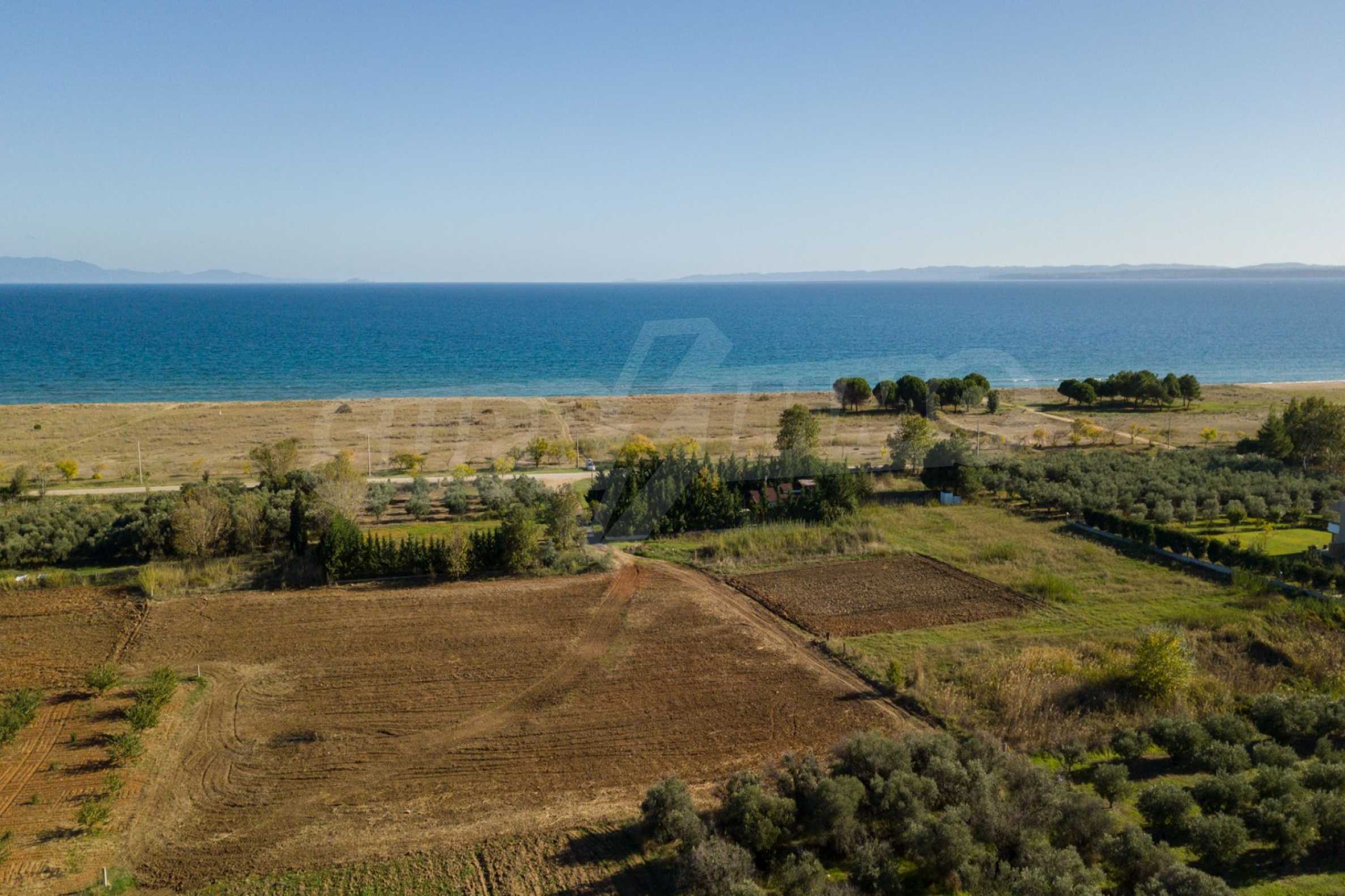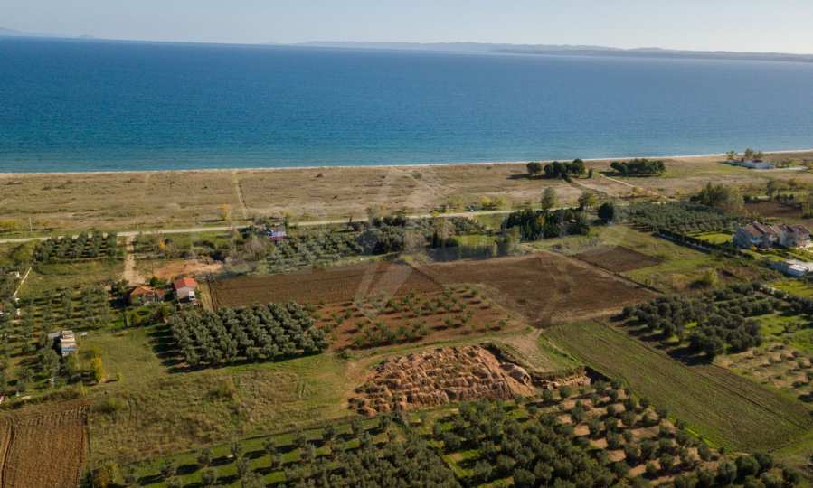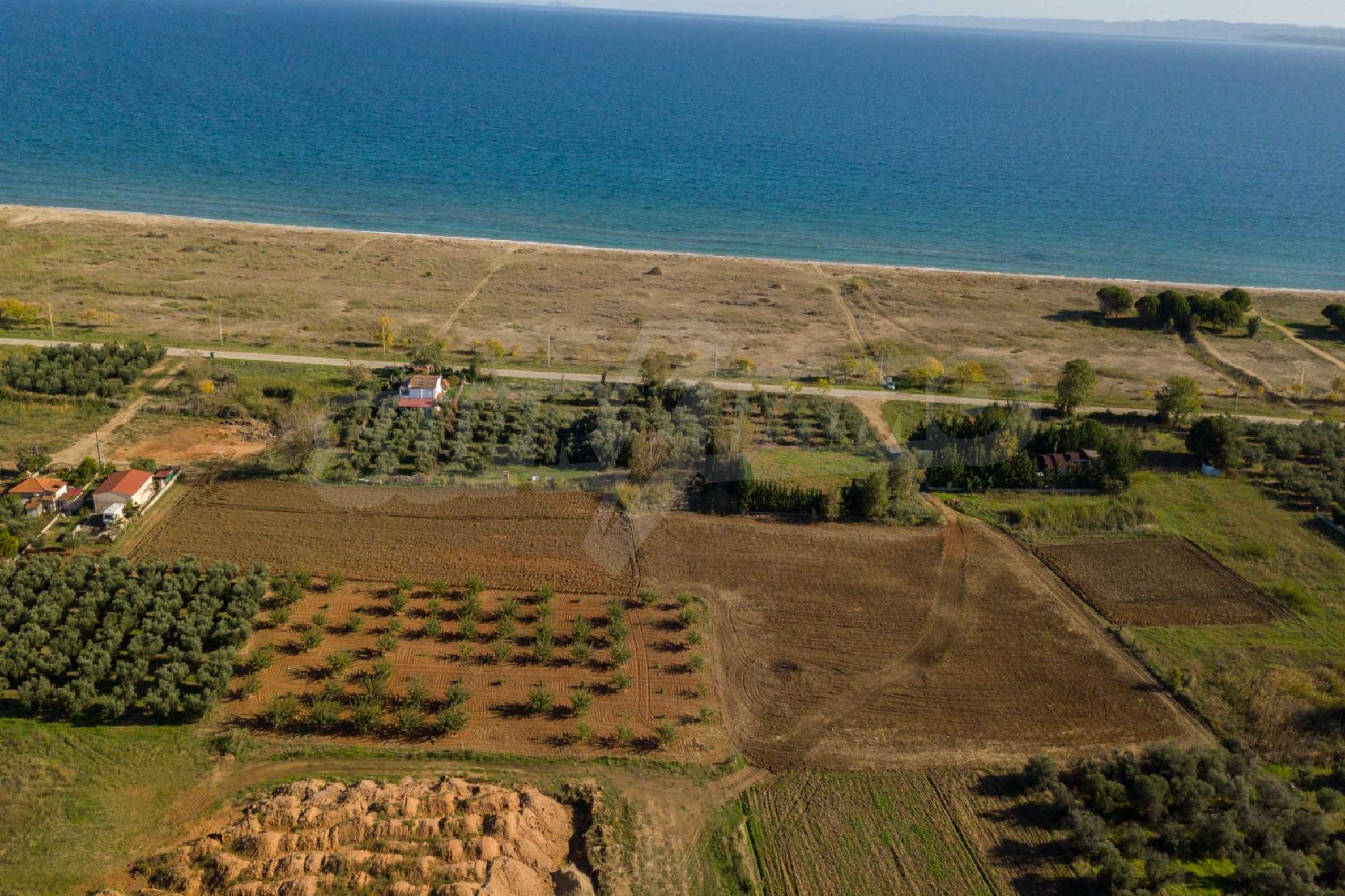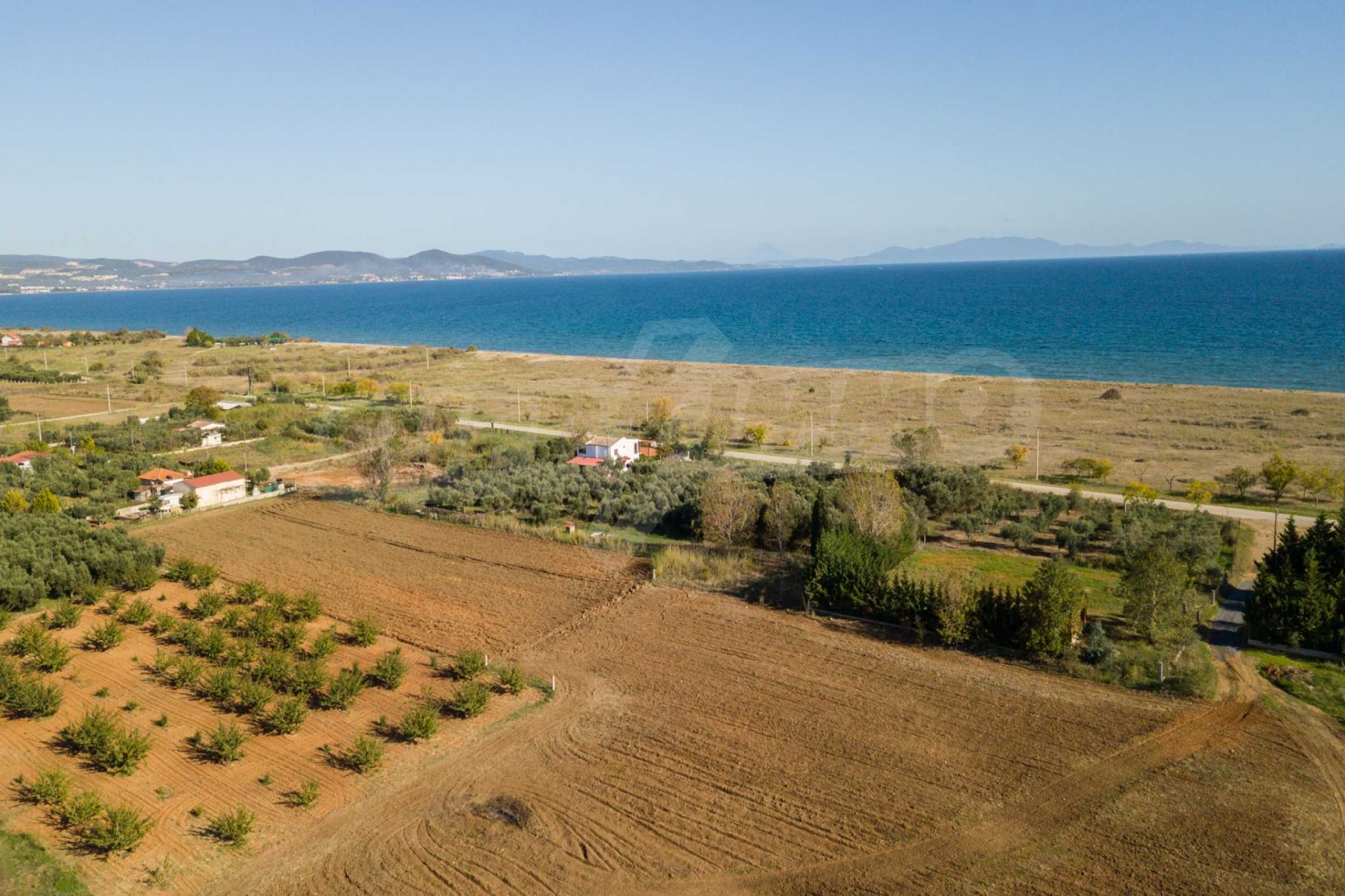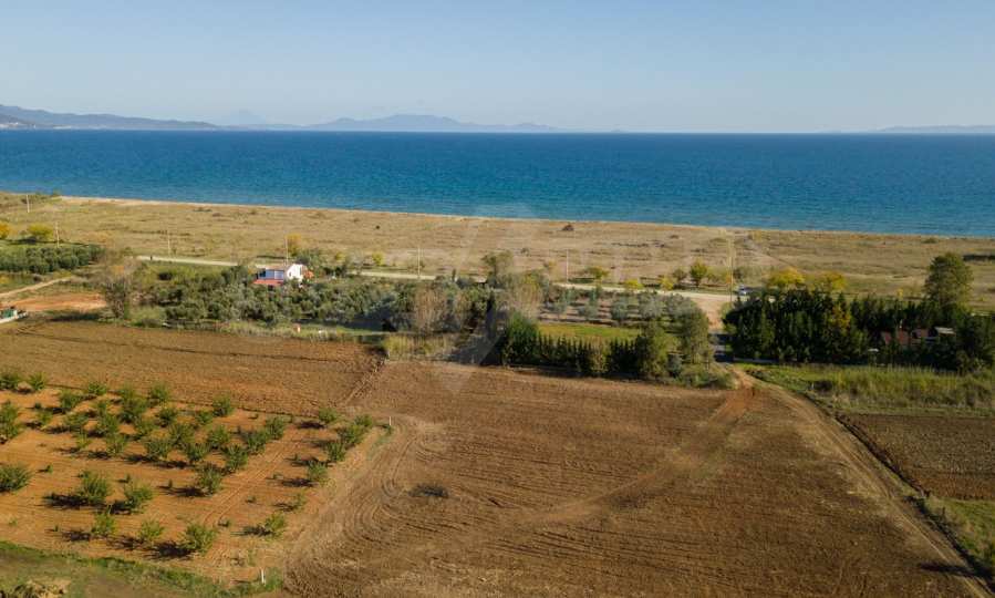 Плоско поле, 5800 кв.м, в Касандра, Халкидики с безпрепятствен постоянен изглед и с югоизточна ориентация. Имотът е на 50 m. от плажа и комплекс от къщи. Полето е пълно и застрояващо (може да се построи 200 кв.м). Имотът е идеален за изграждане на вила.