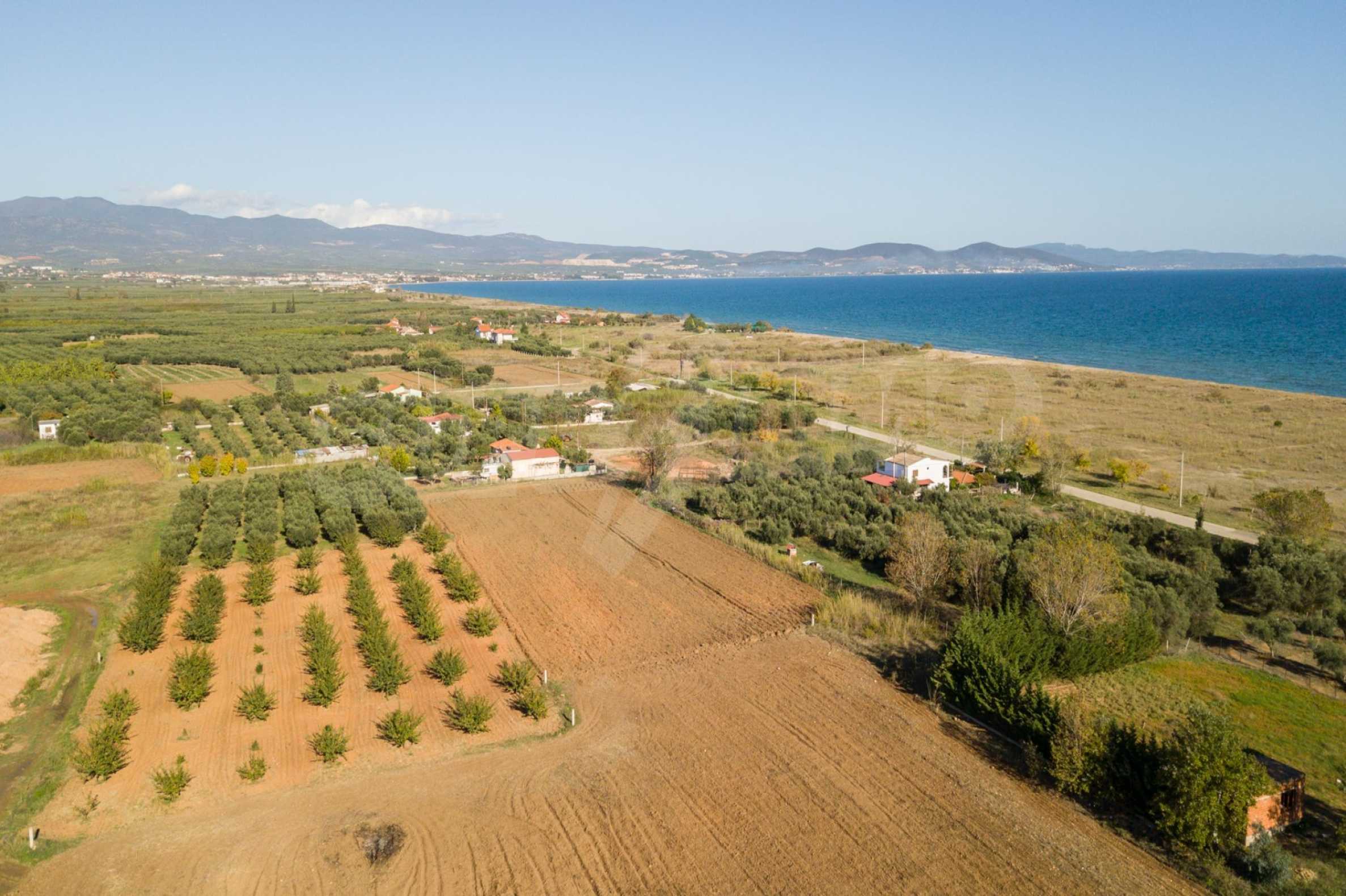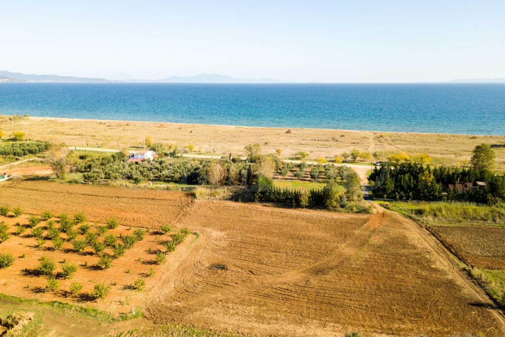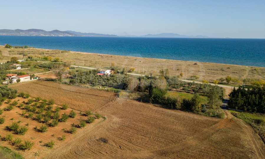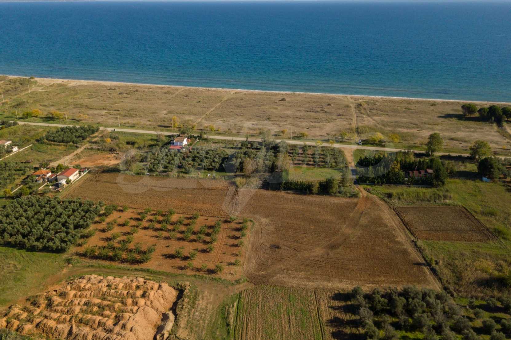 Плоско поле, 5800 кв.м, в Касандра, Халкидики с безпрепятствен постоянен изглед и с югоизточна ориентация. Имотът е на 50 m. от плажа и комплекс от къщи. Полето е пълно и застрояващо (може да се построи 200 кв.м). Имотът е идеален за изграждане на вила.