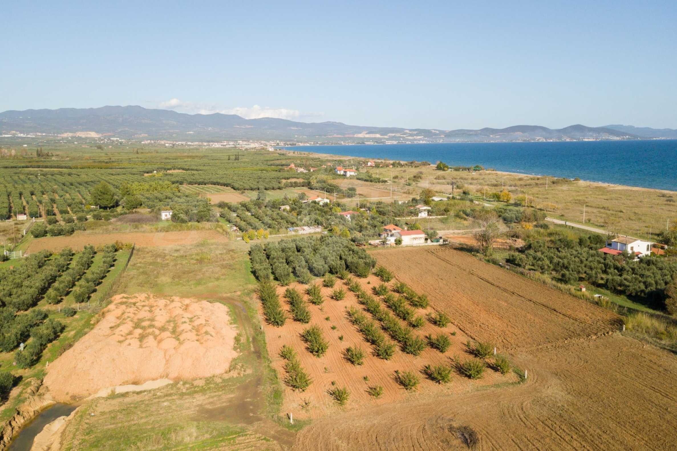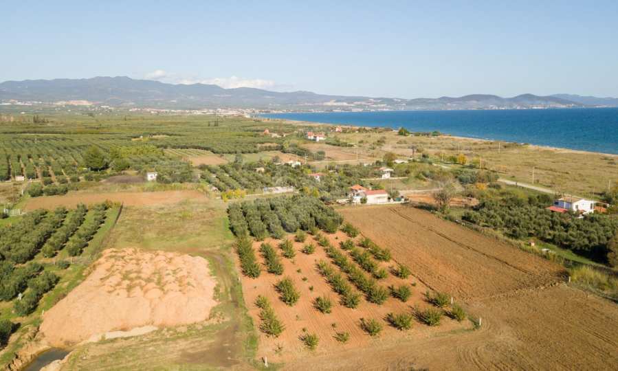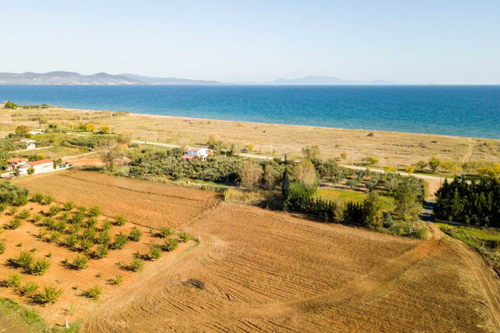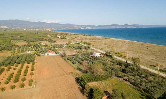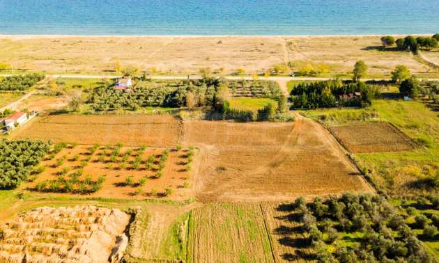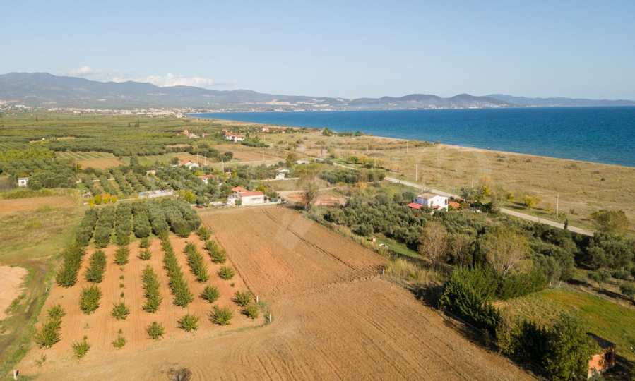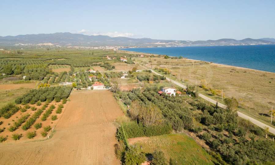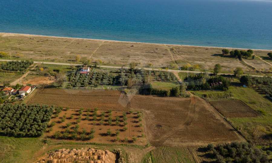 Плоско поле, 5800 кв.м, в Касандра, Халкидики с безпрепятствен постоянен изглед и с югоизточна ориентация. Имотът е на 50 m. от плажа и комплекс от къщи. Полето е пълно и застрояващо (може да се построи 200 кв.м). Имотът е идеален за изграждане на вила.